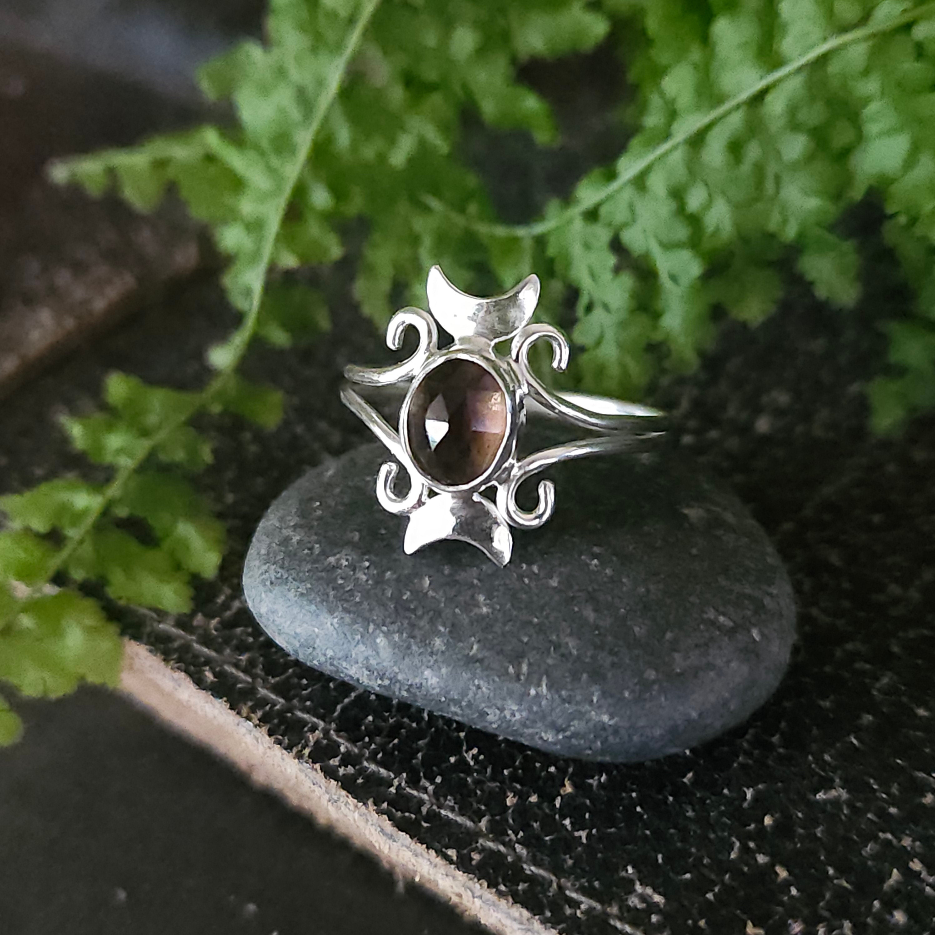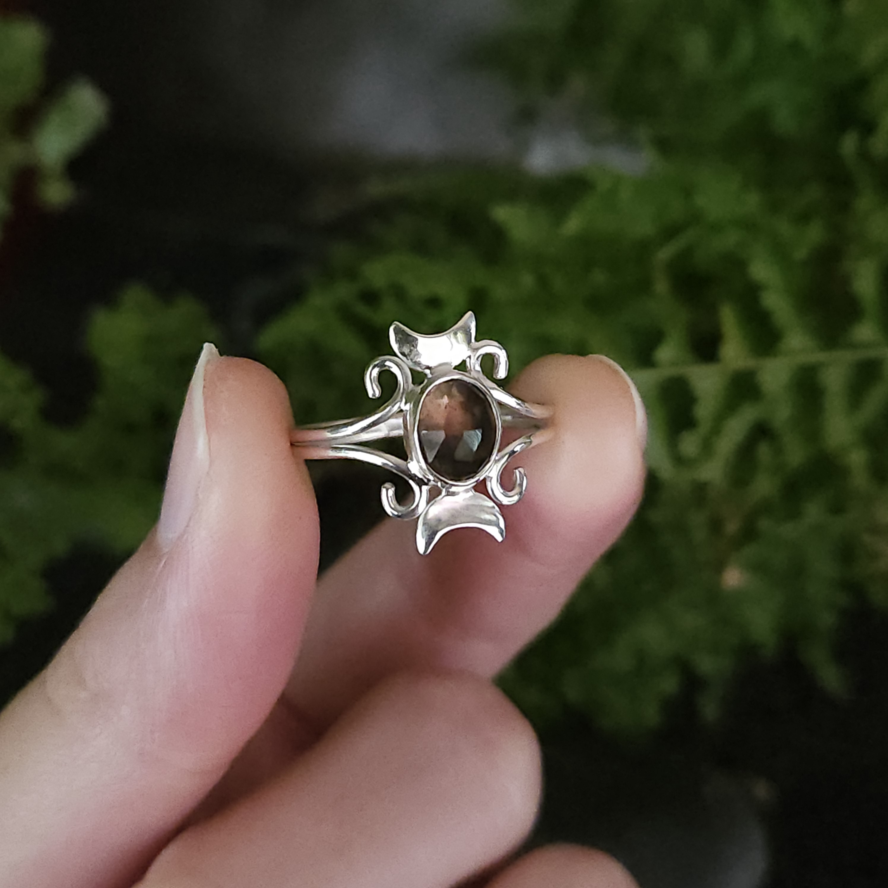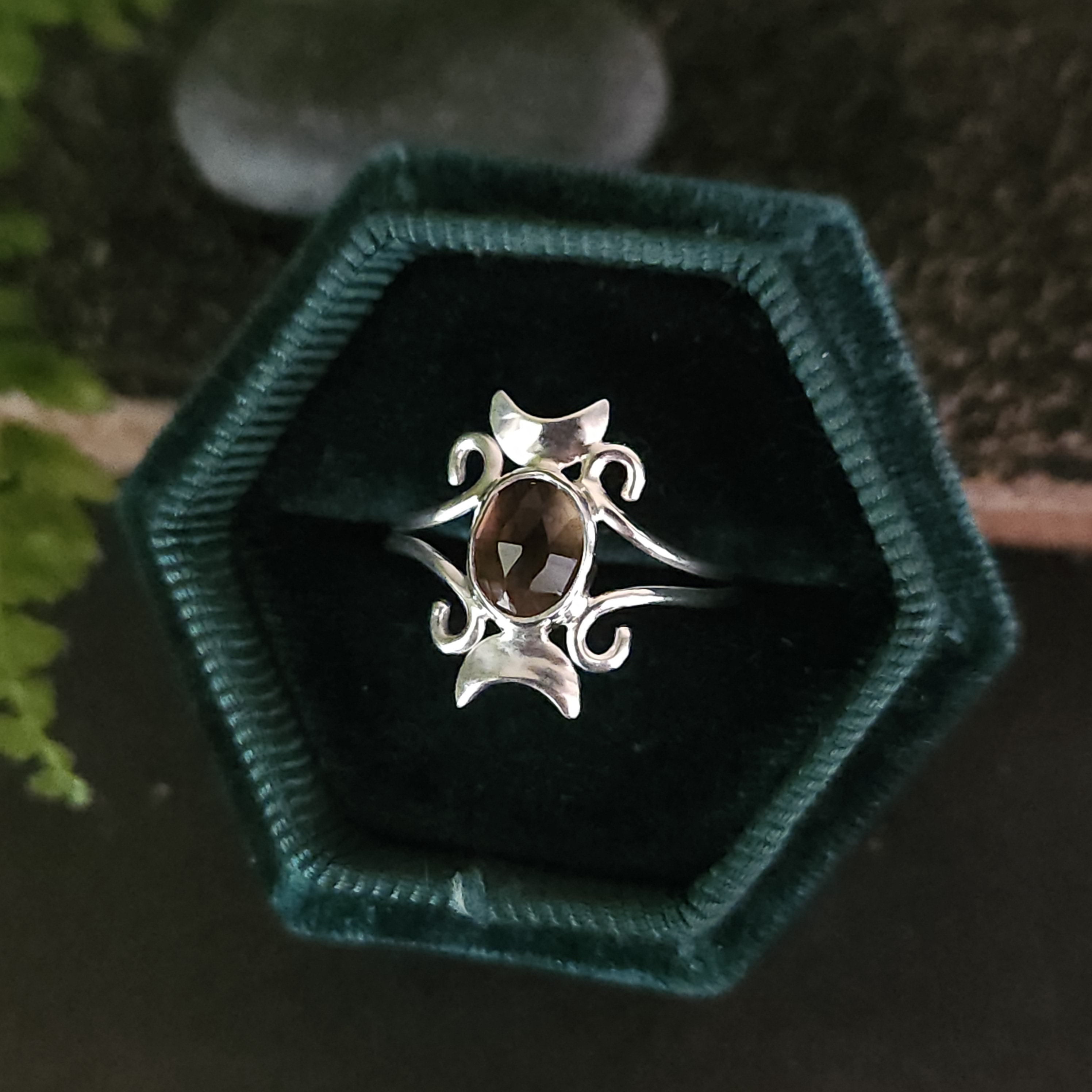 One of a kind handcrafted gemstone ring made using sterling silver and smoky quartz