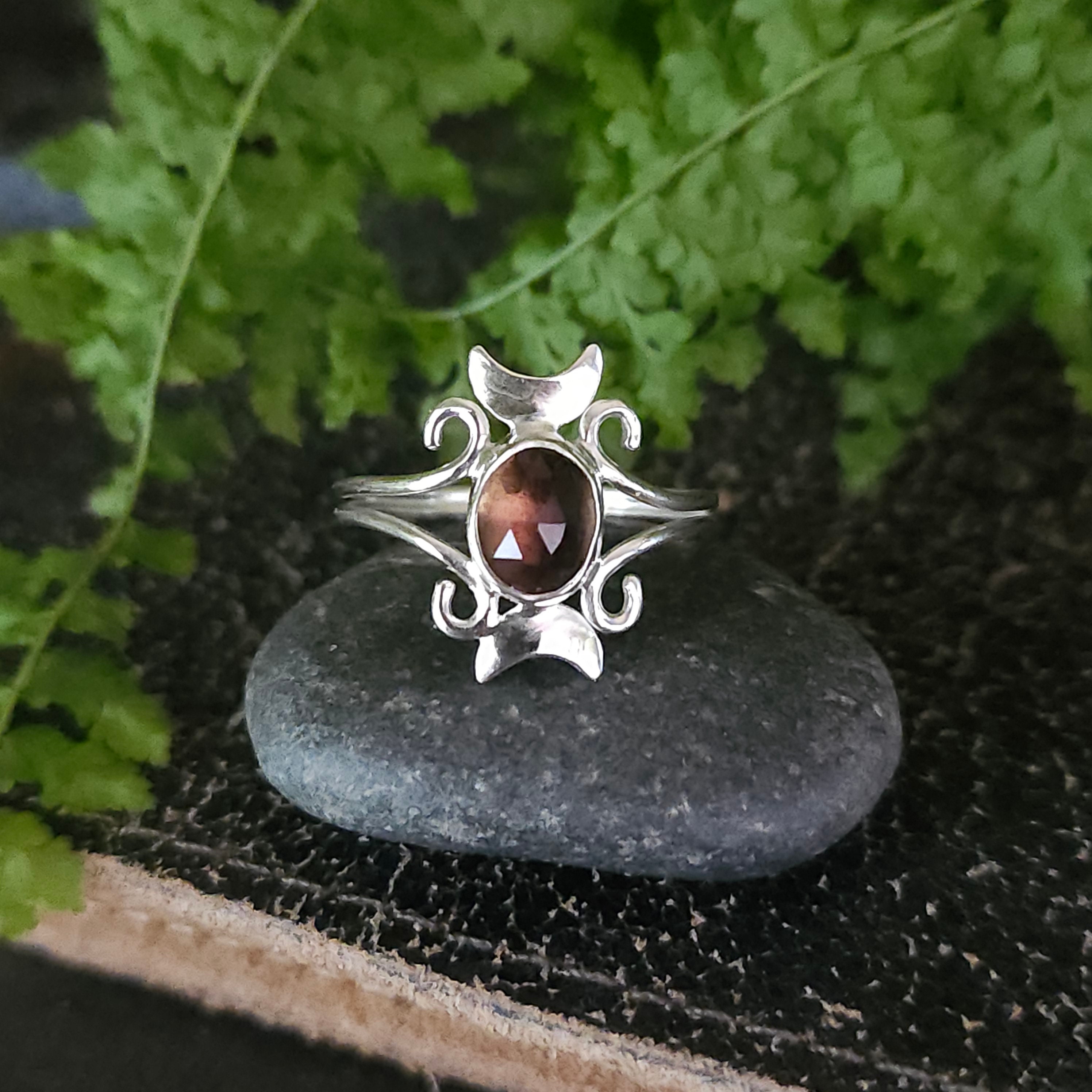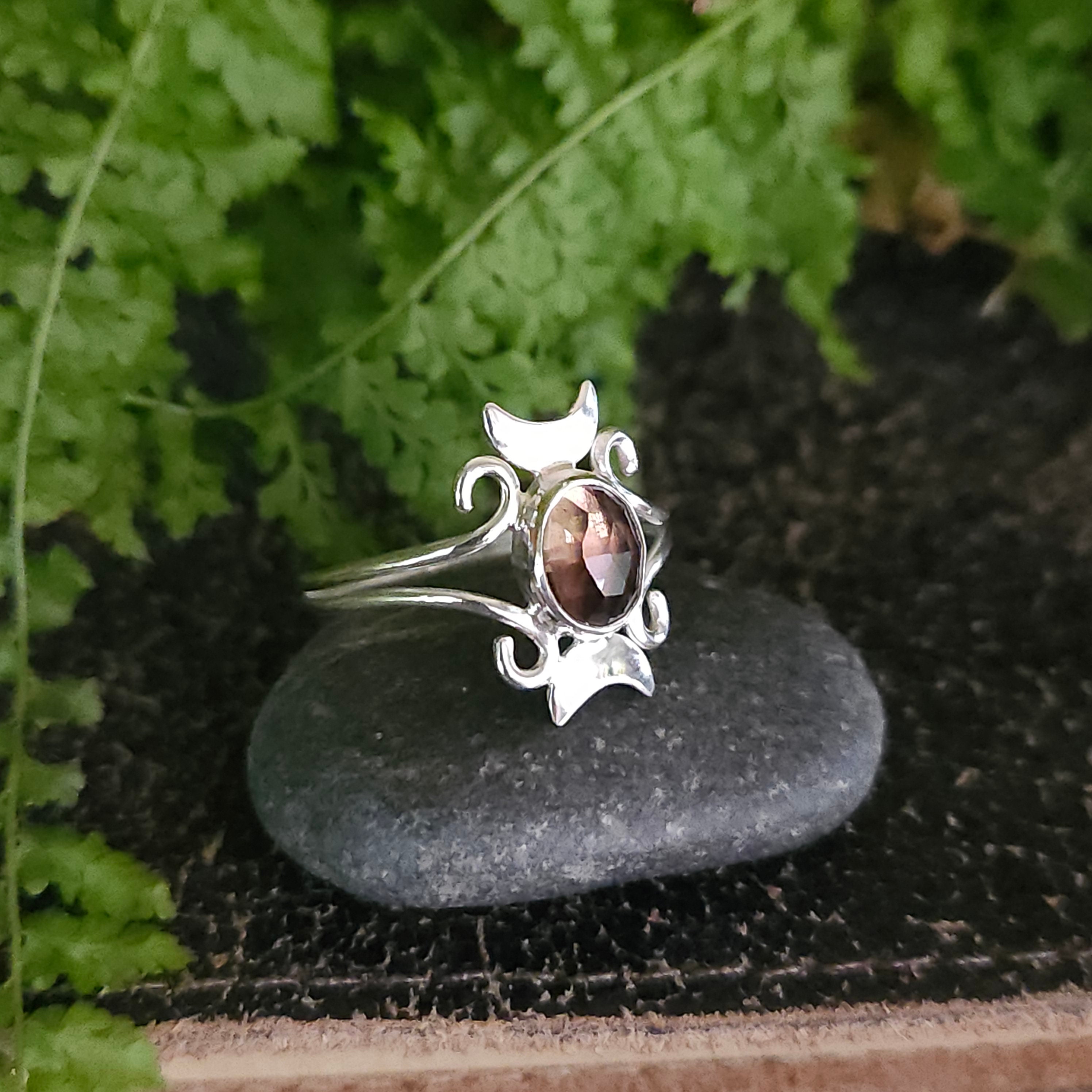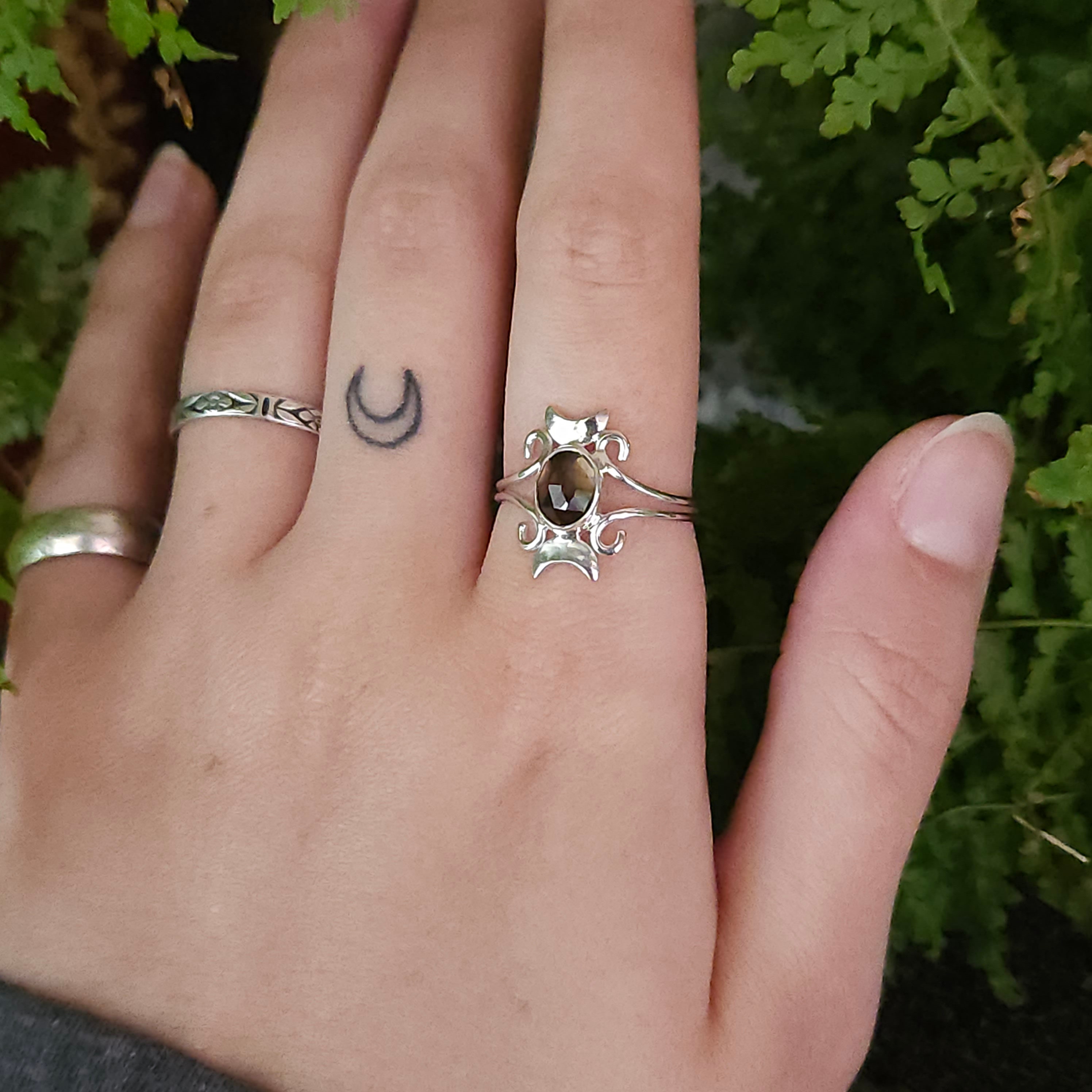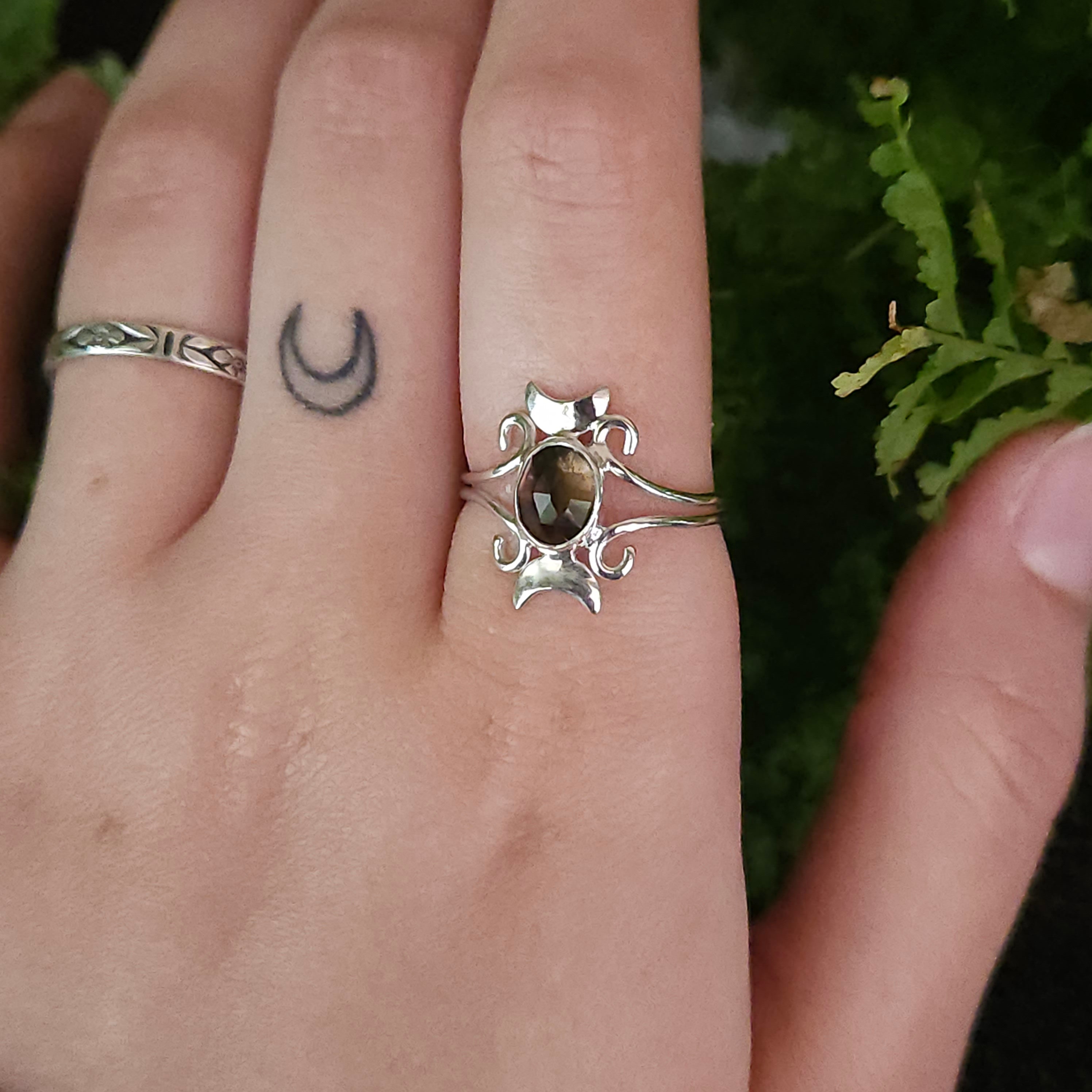 One of a kind handcrafted gemstone ring made using sterling silver and smoky quartz
