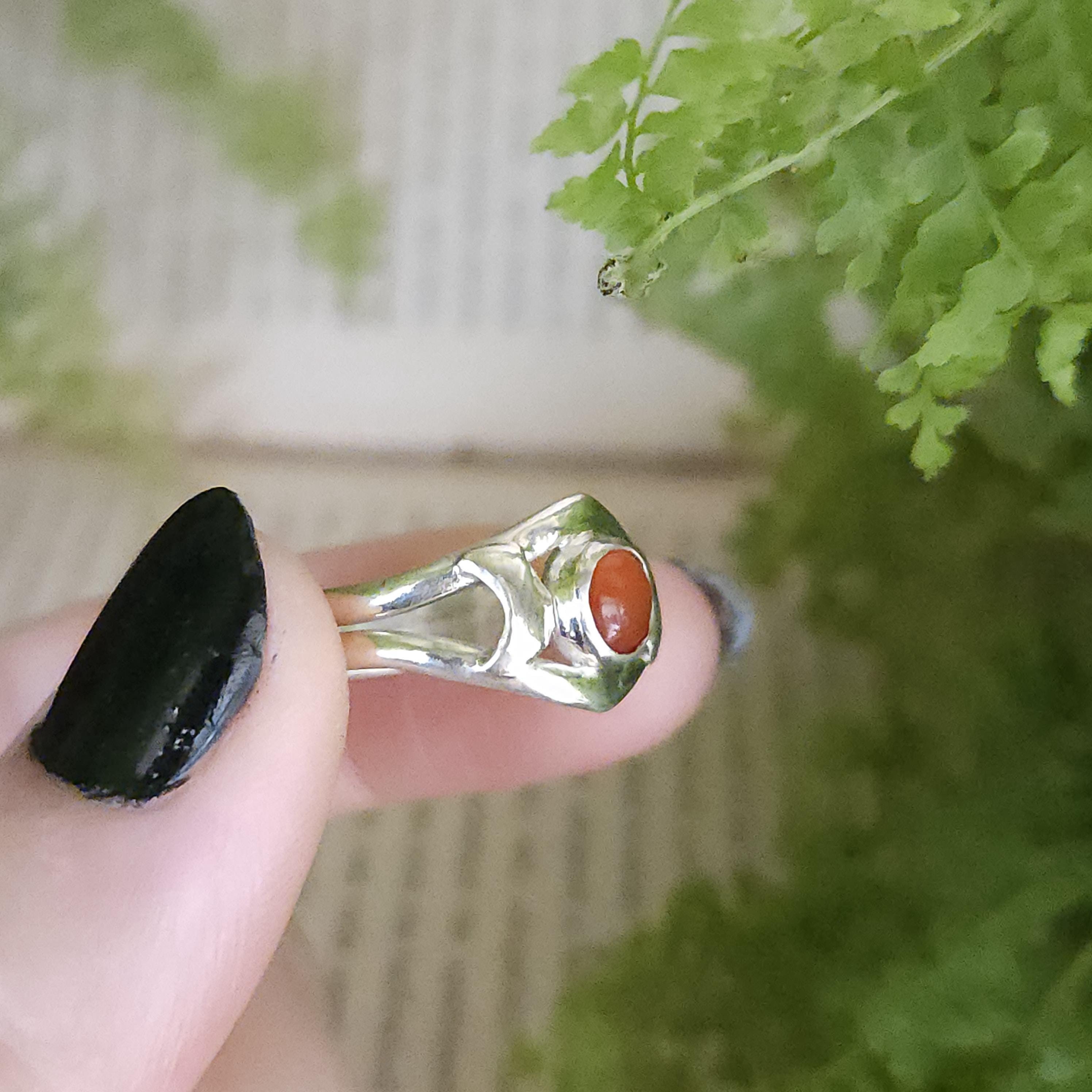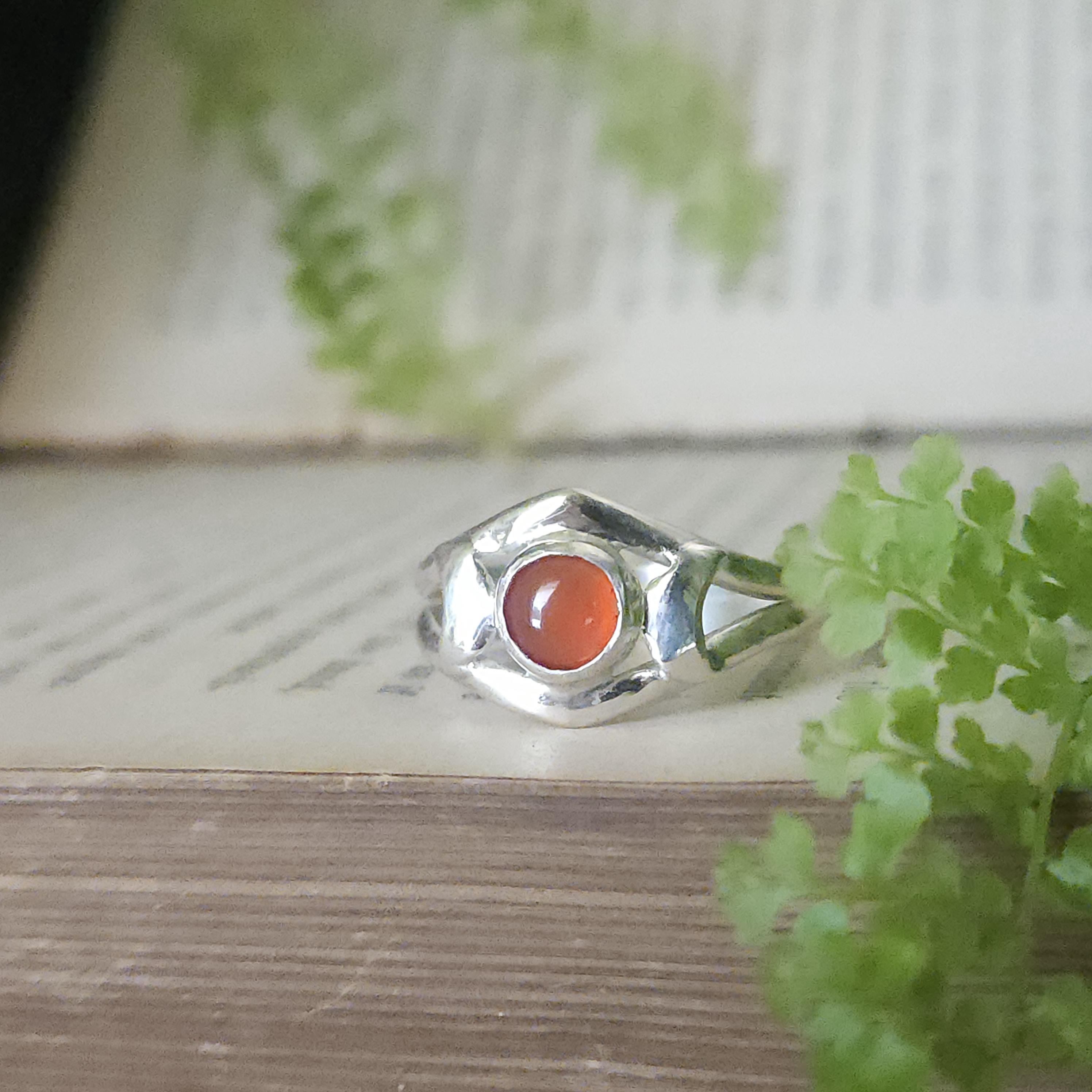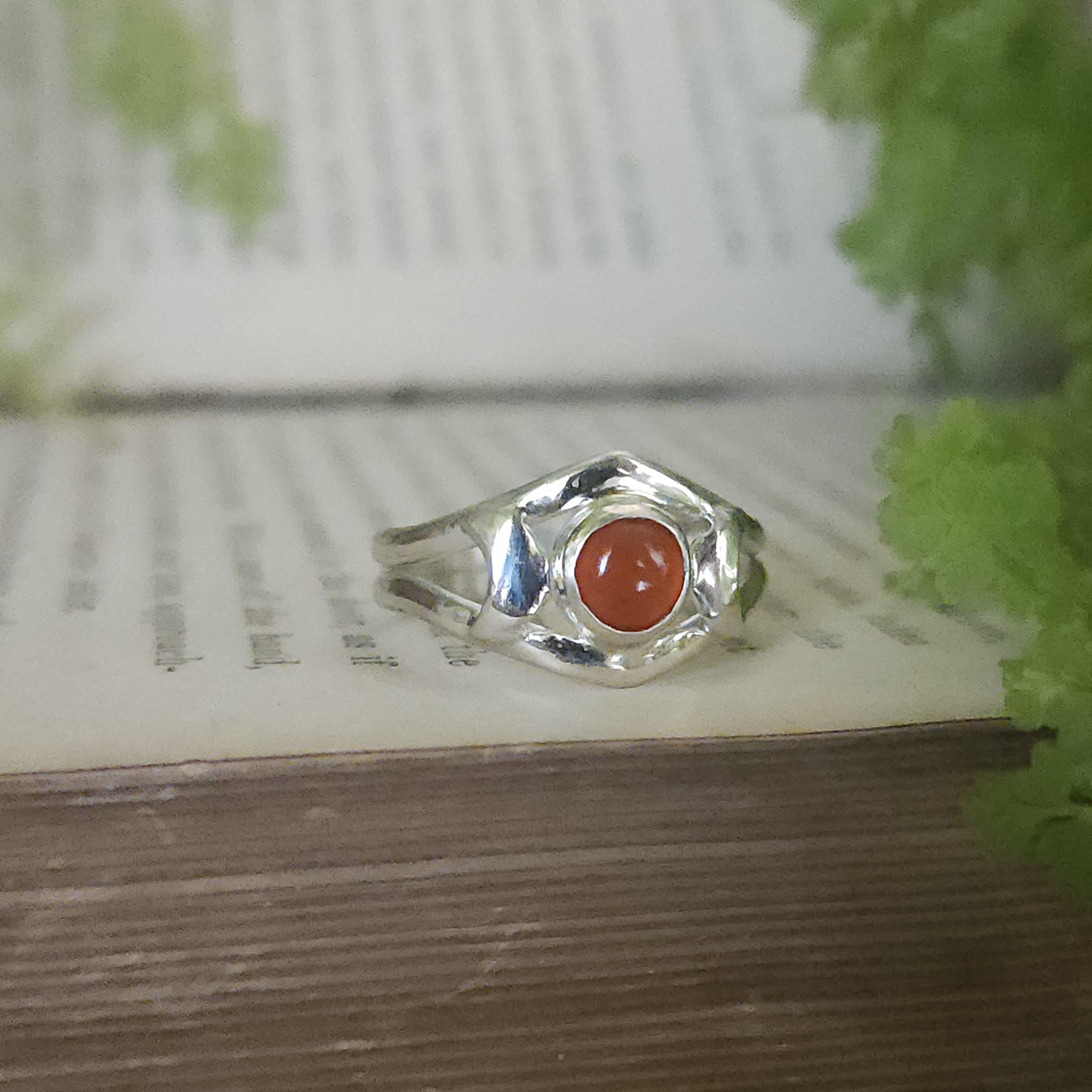 One of a kind handcrafted gemstone ring made using sterling silver and carnelian