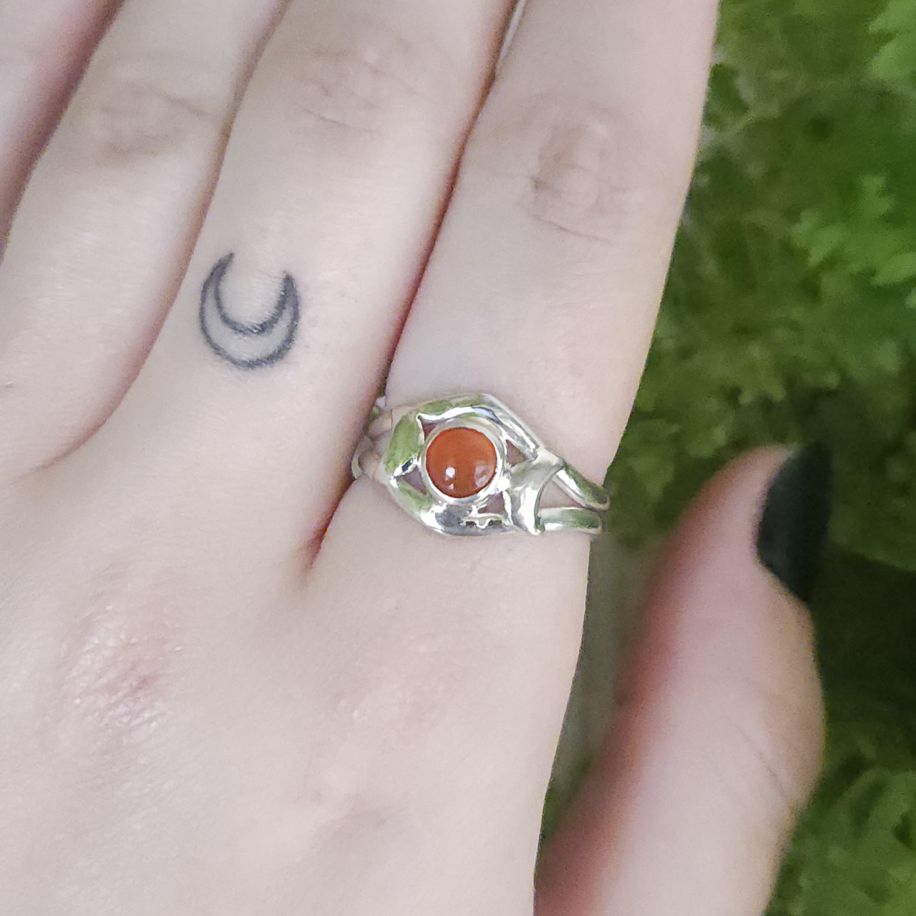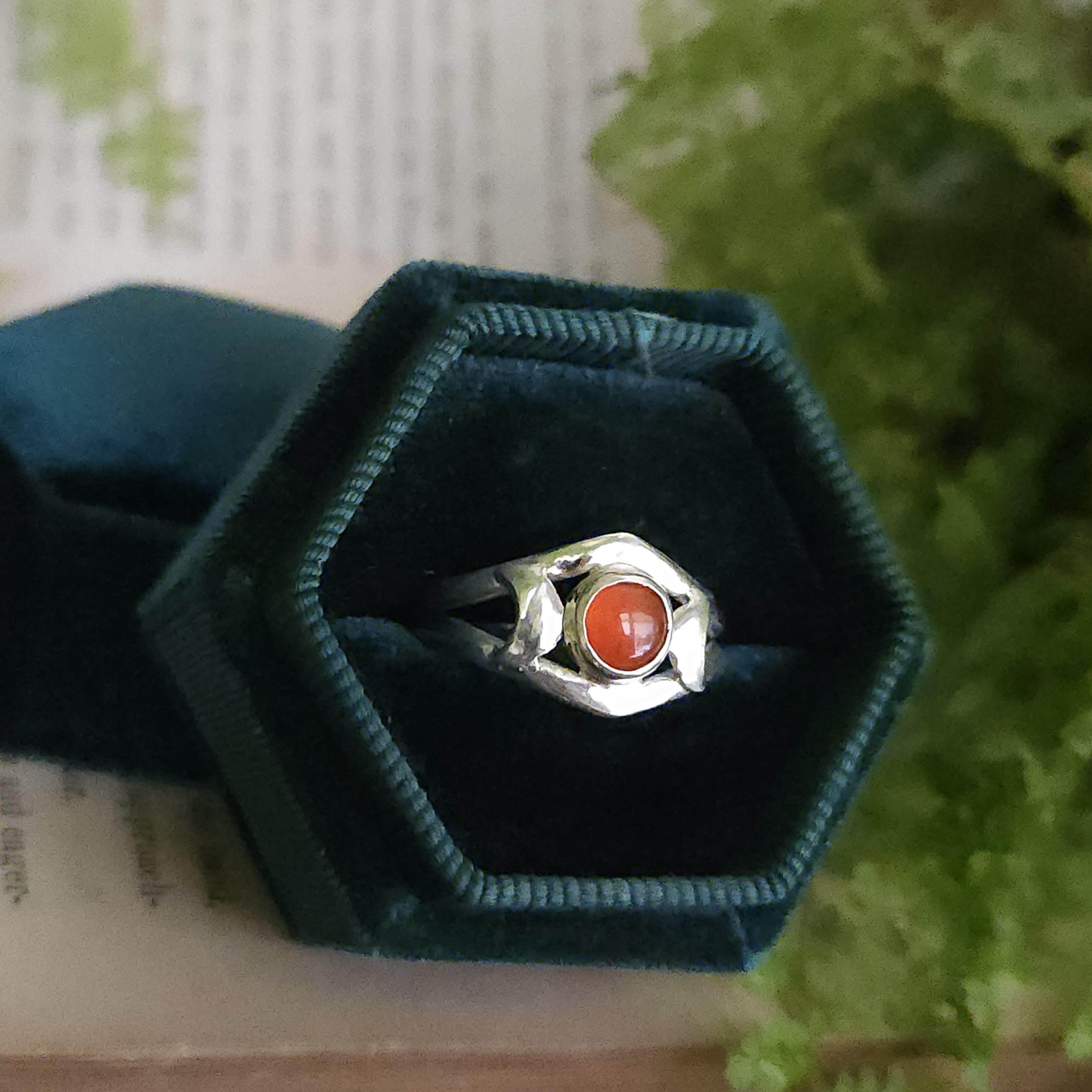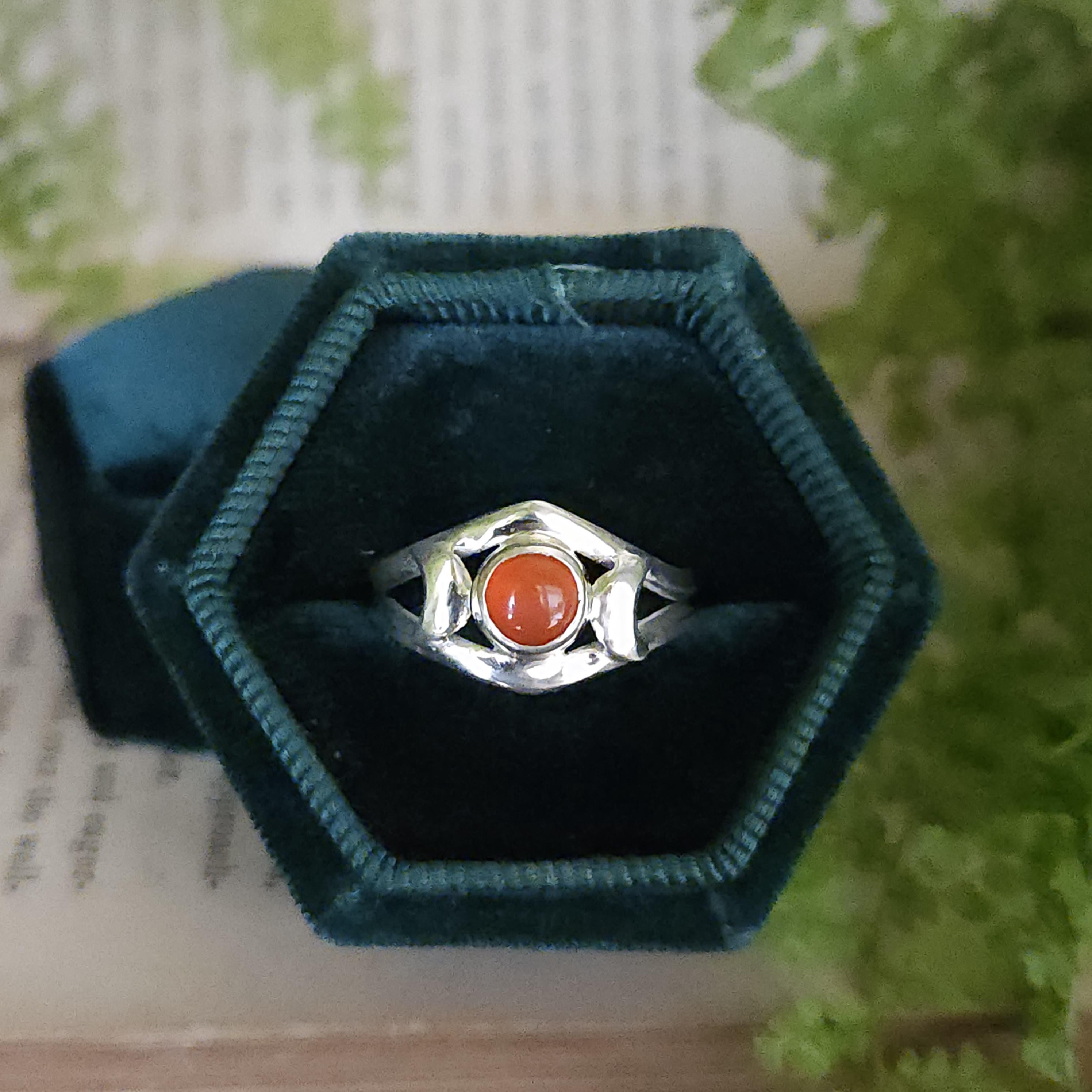 One of a kind handcrafted gemstone ring made using sterling silver and carnelian