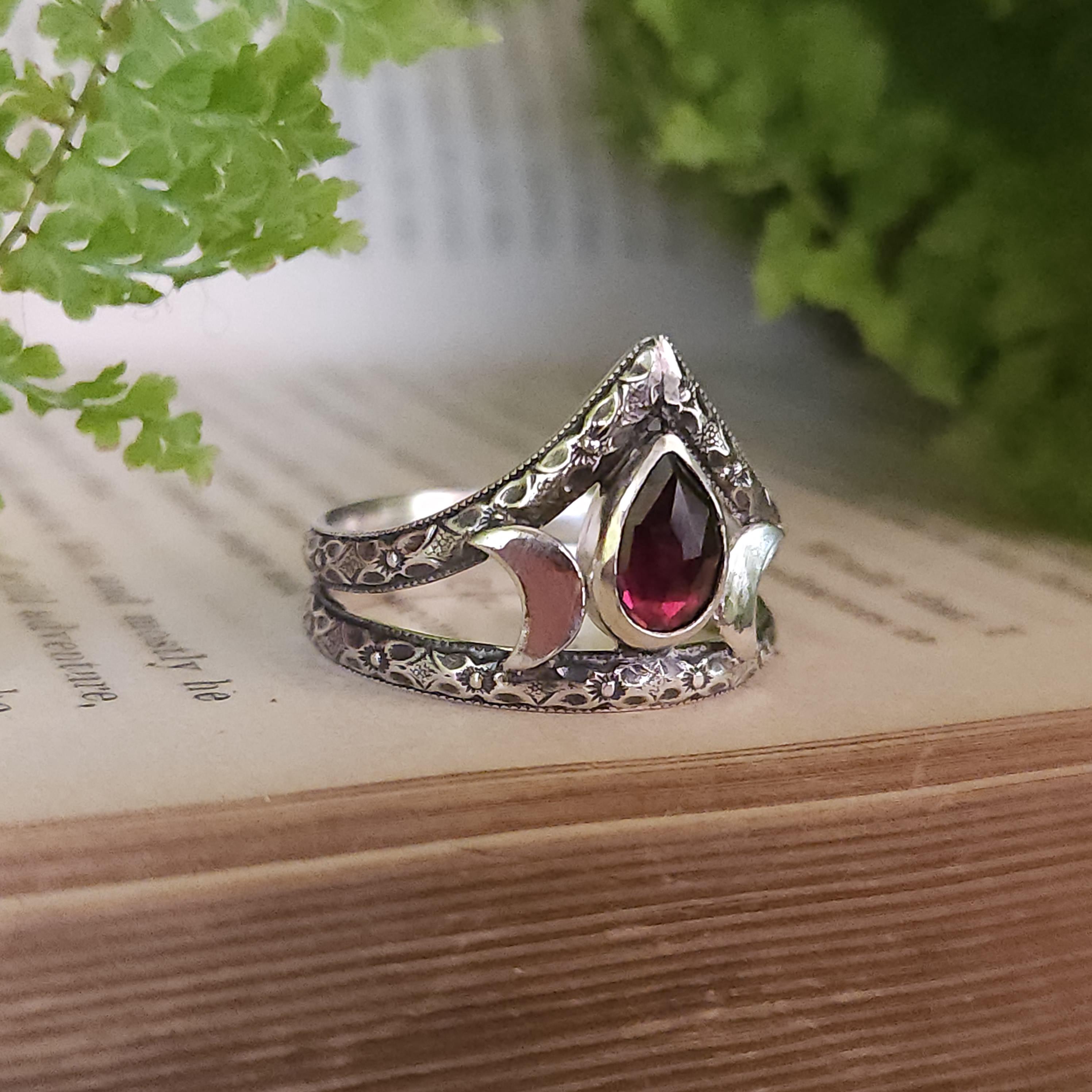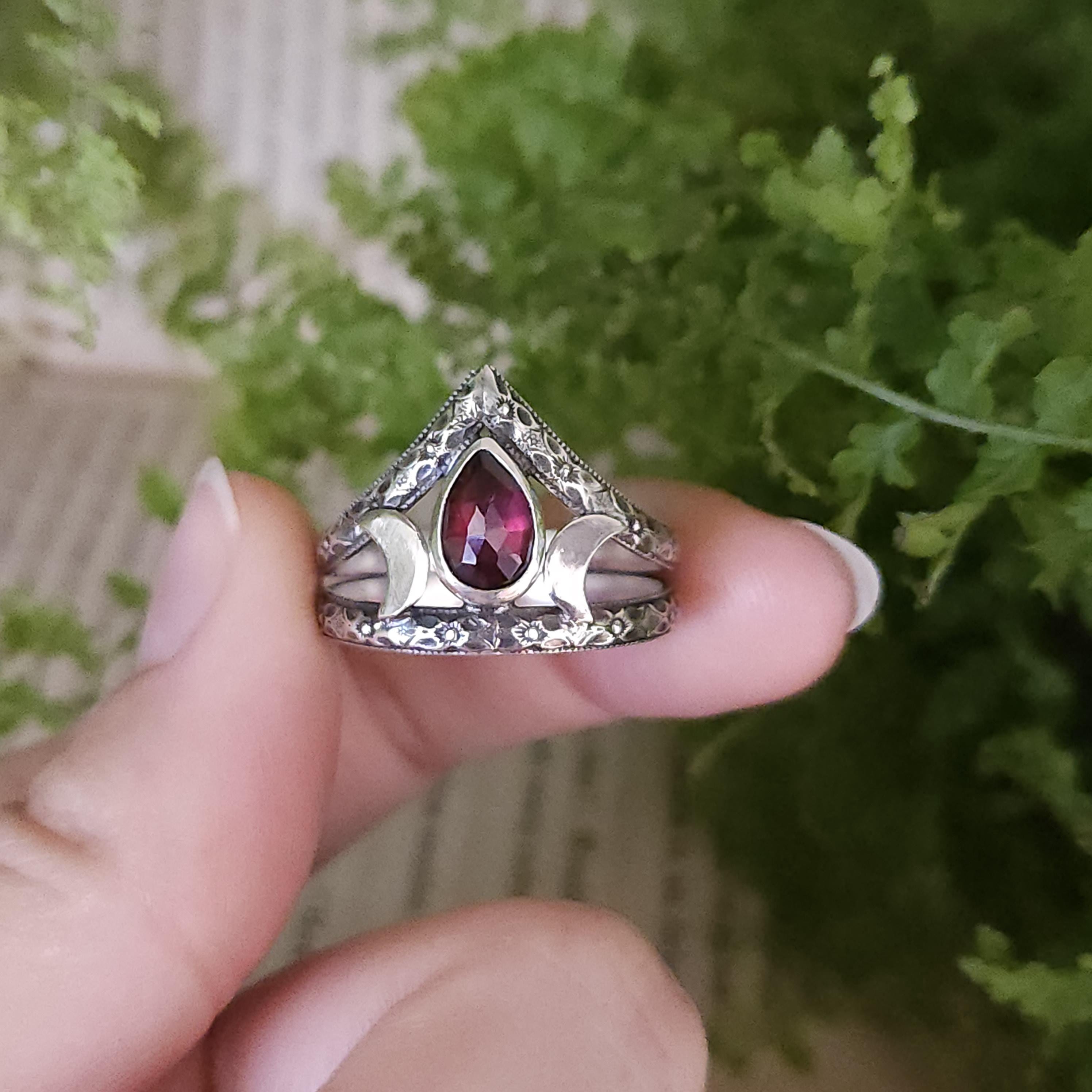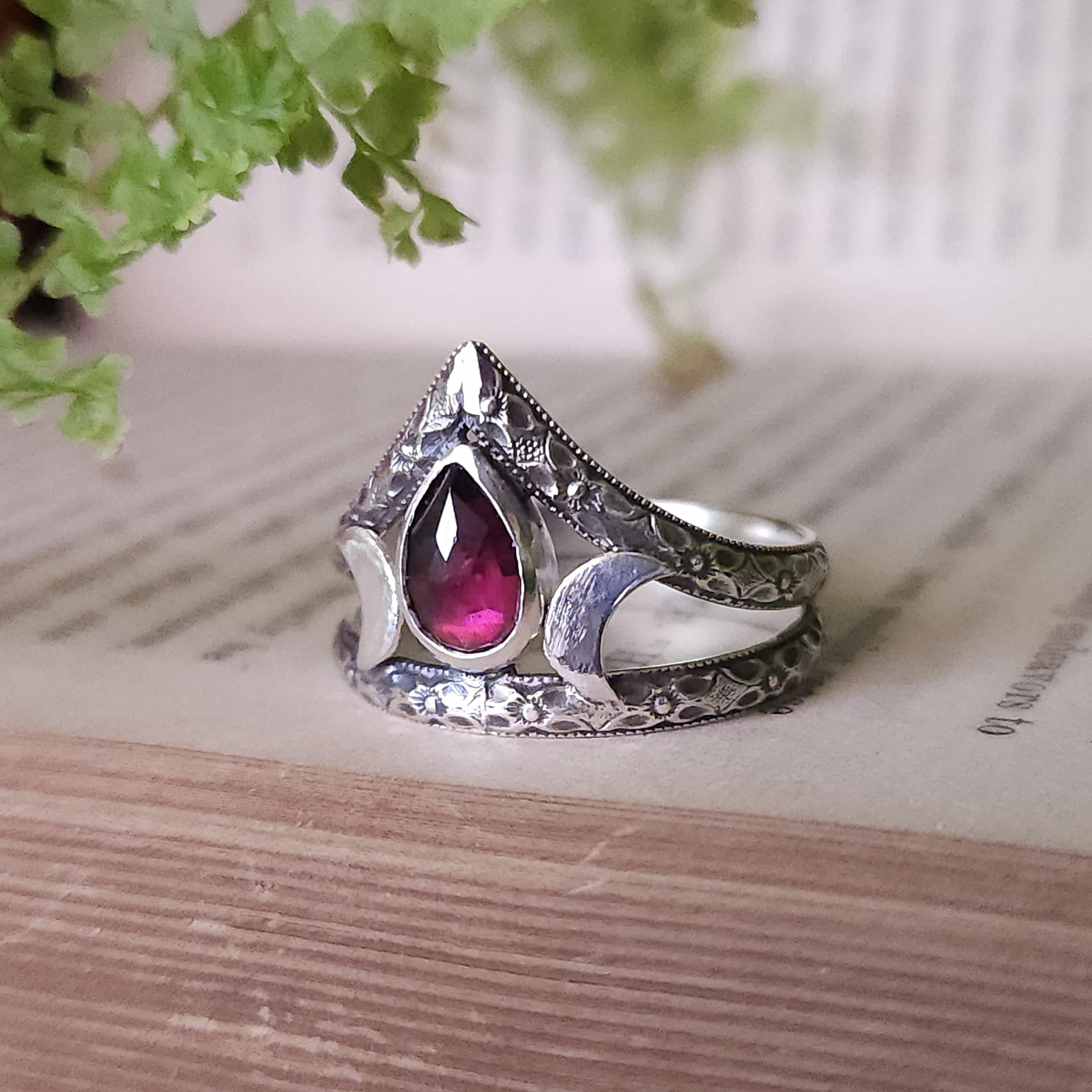 One of a kind handcrafted gemstone ring made using sterling silver and garnet