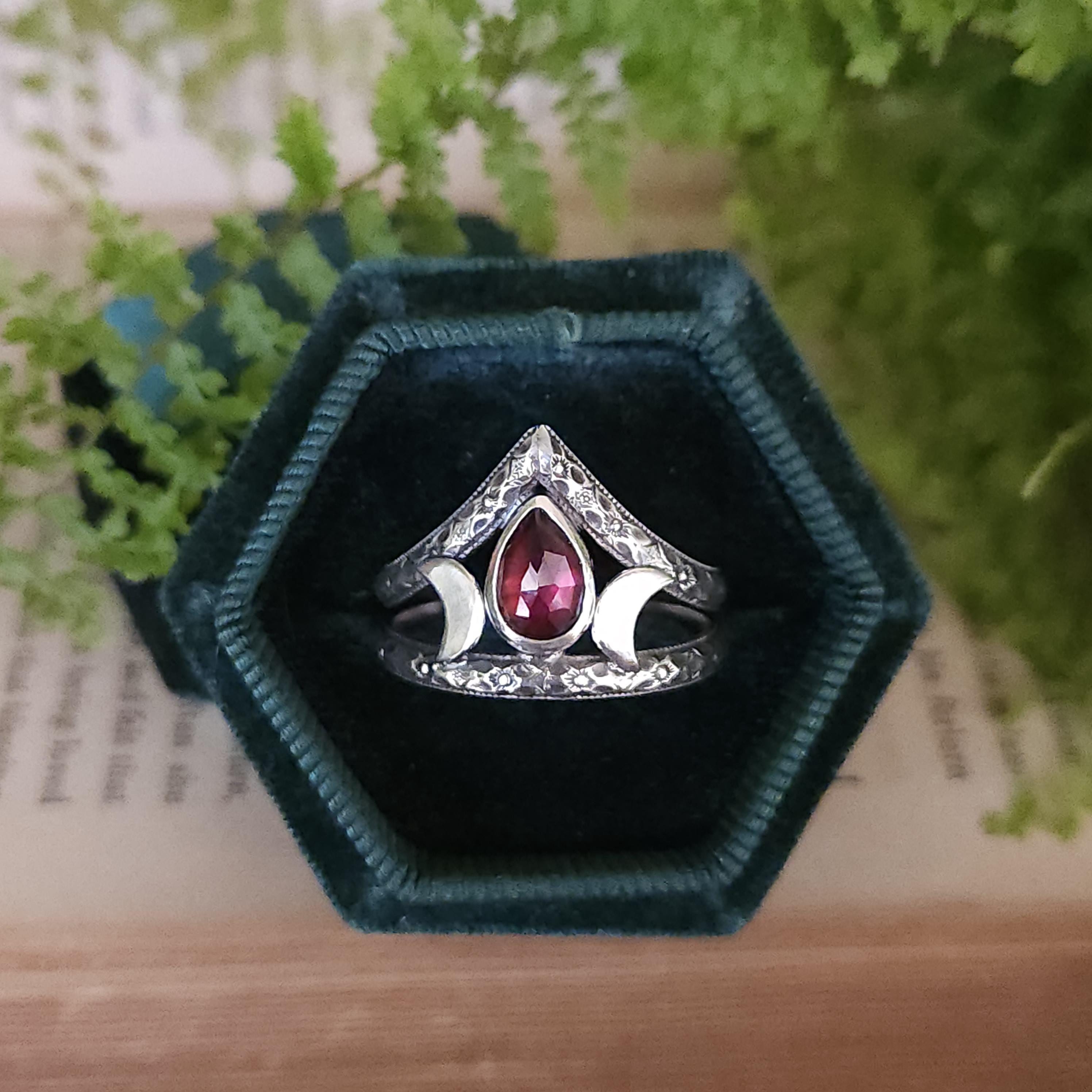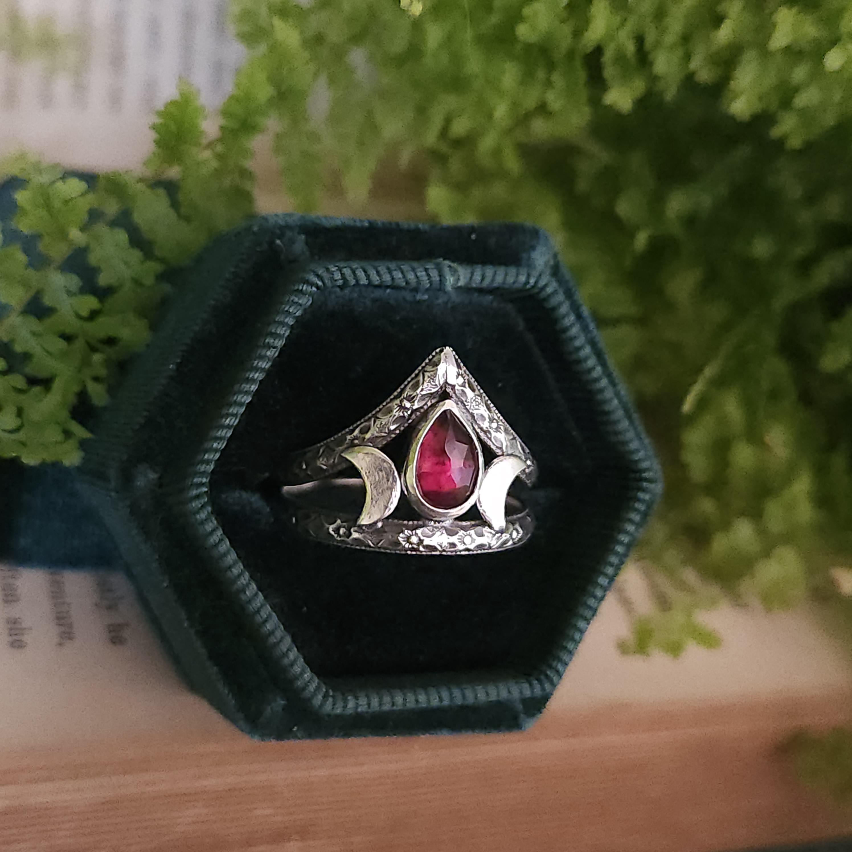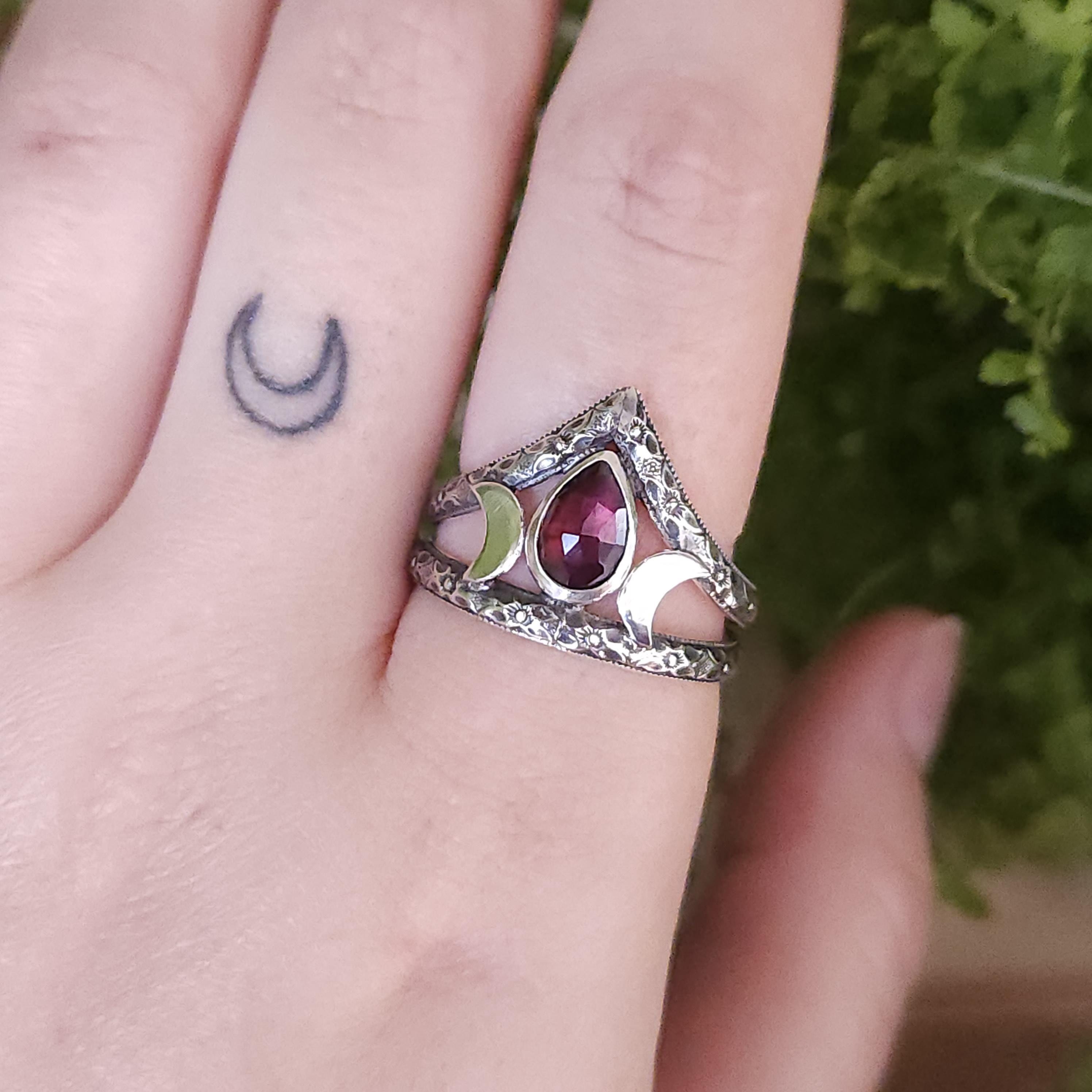 One of a kind handcrafted gemstone ring made using sterling silver and garnet