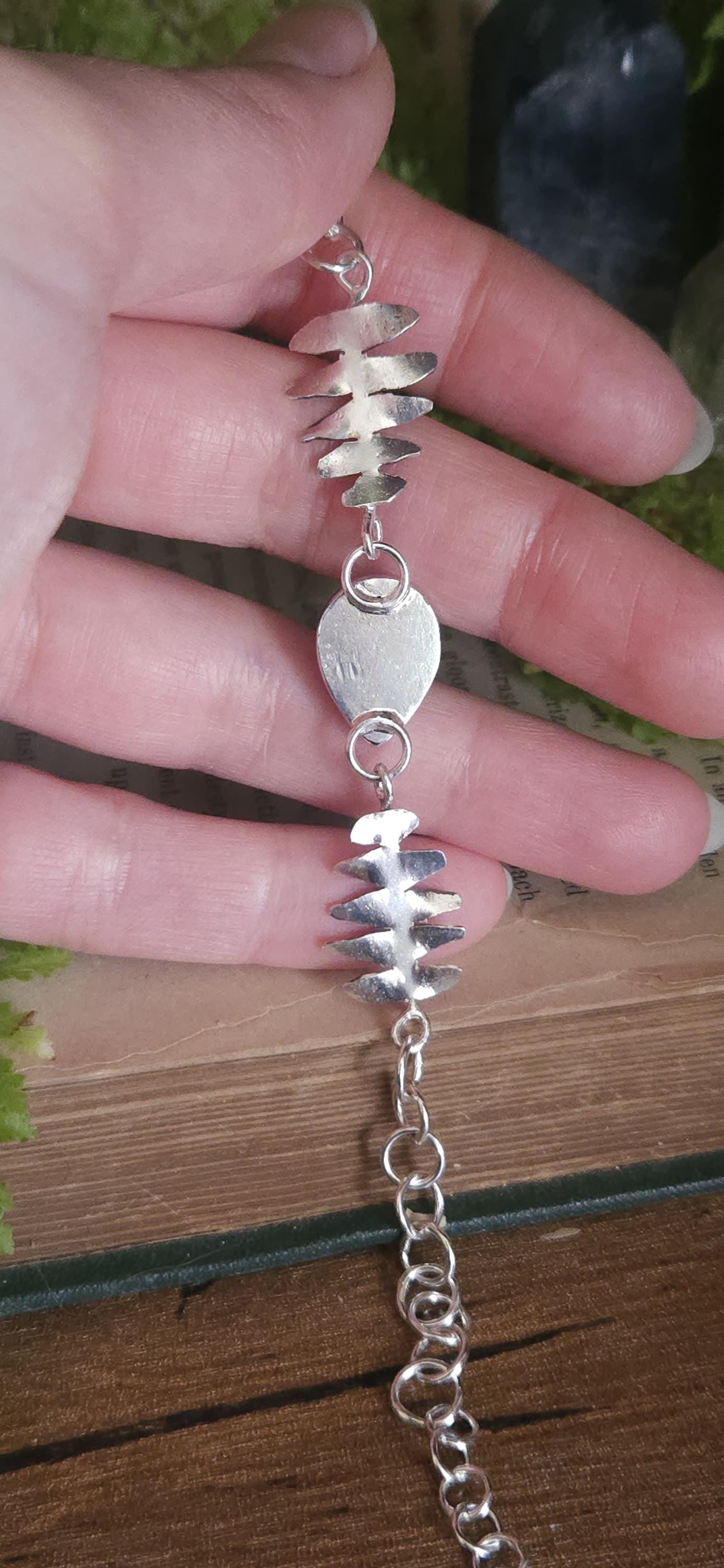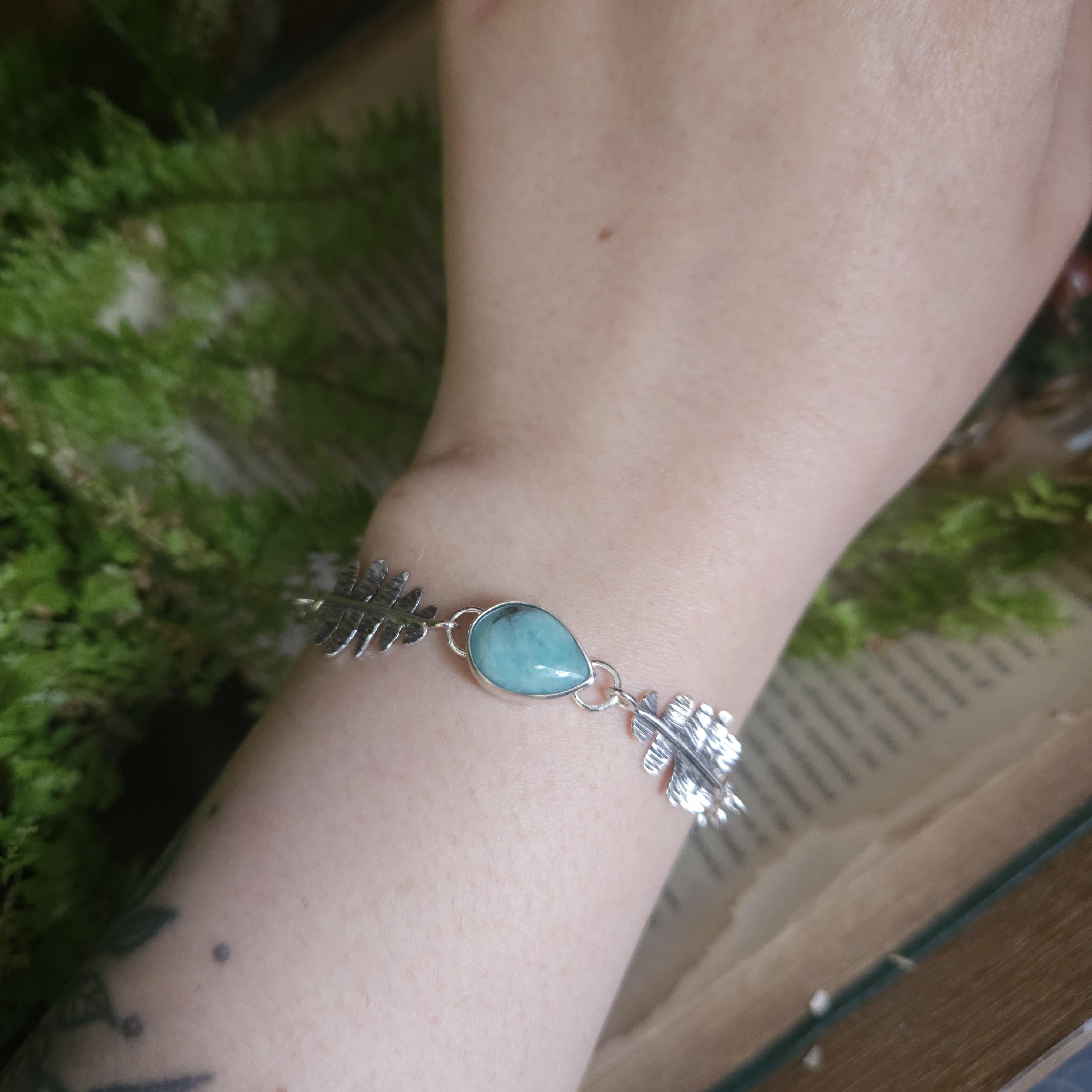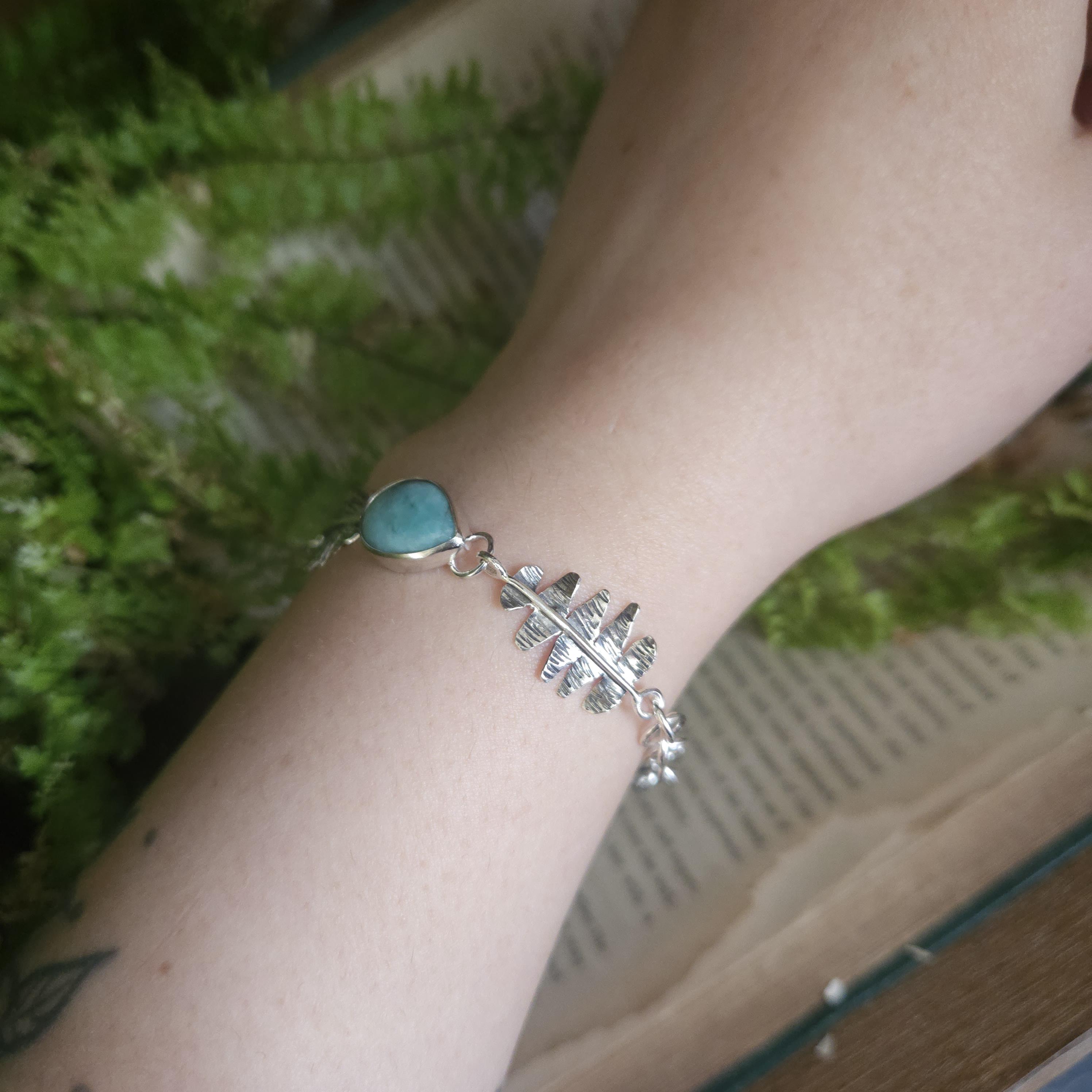 Each component was hand made by me, from the links to the ferns to the setting for the stone (: