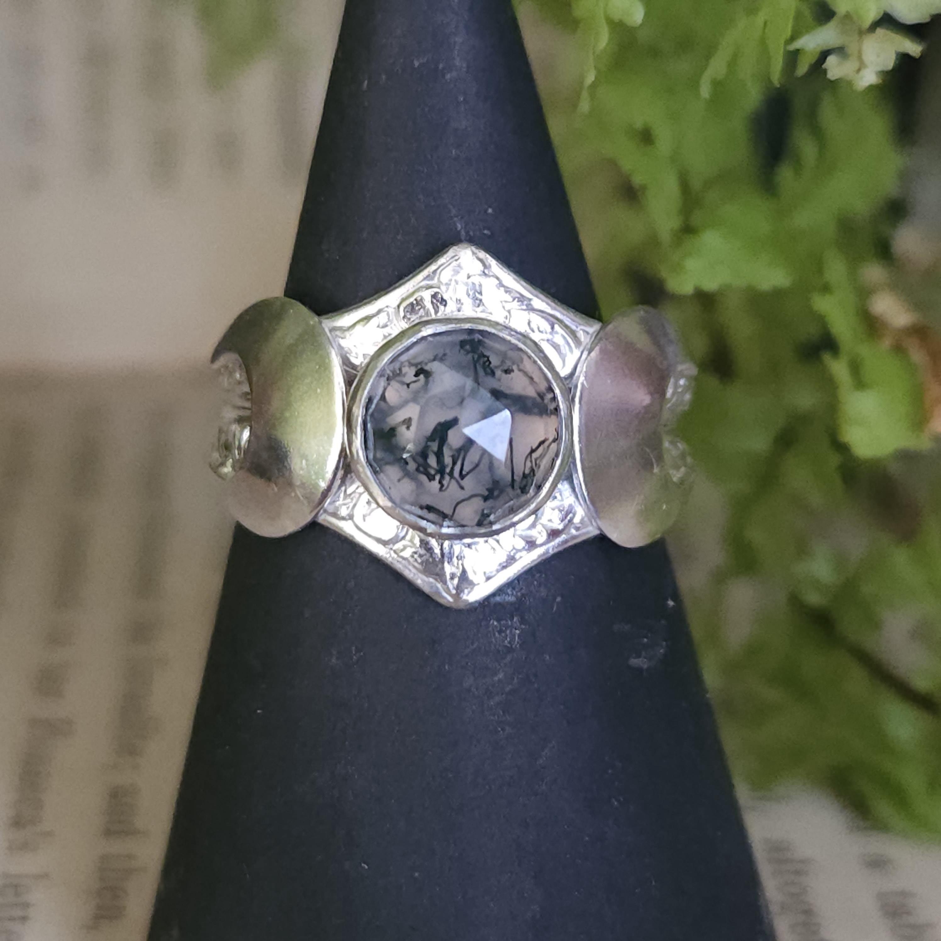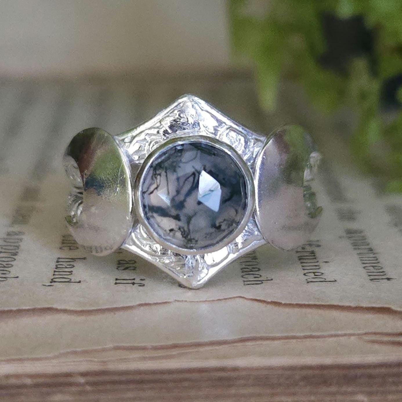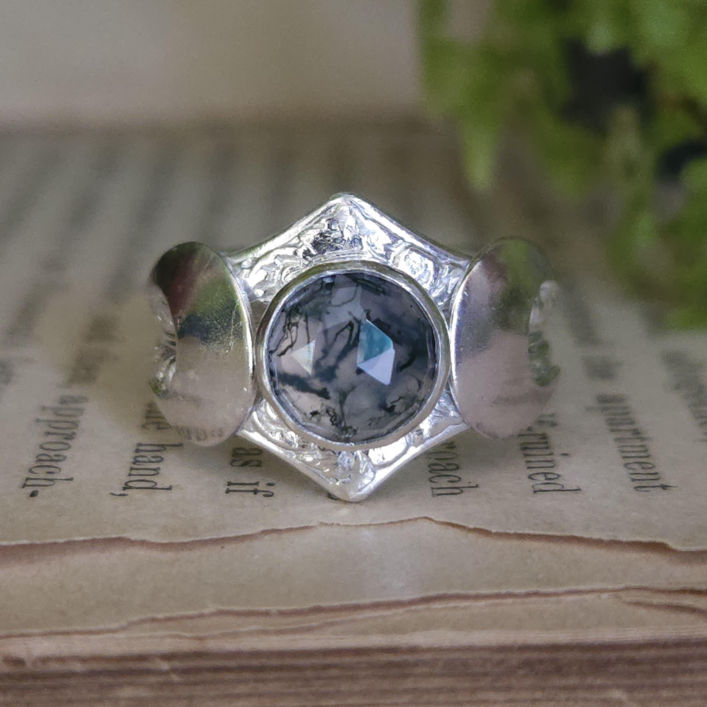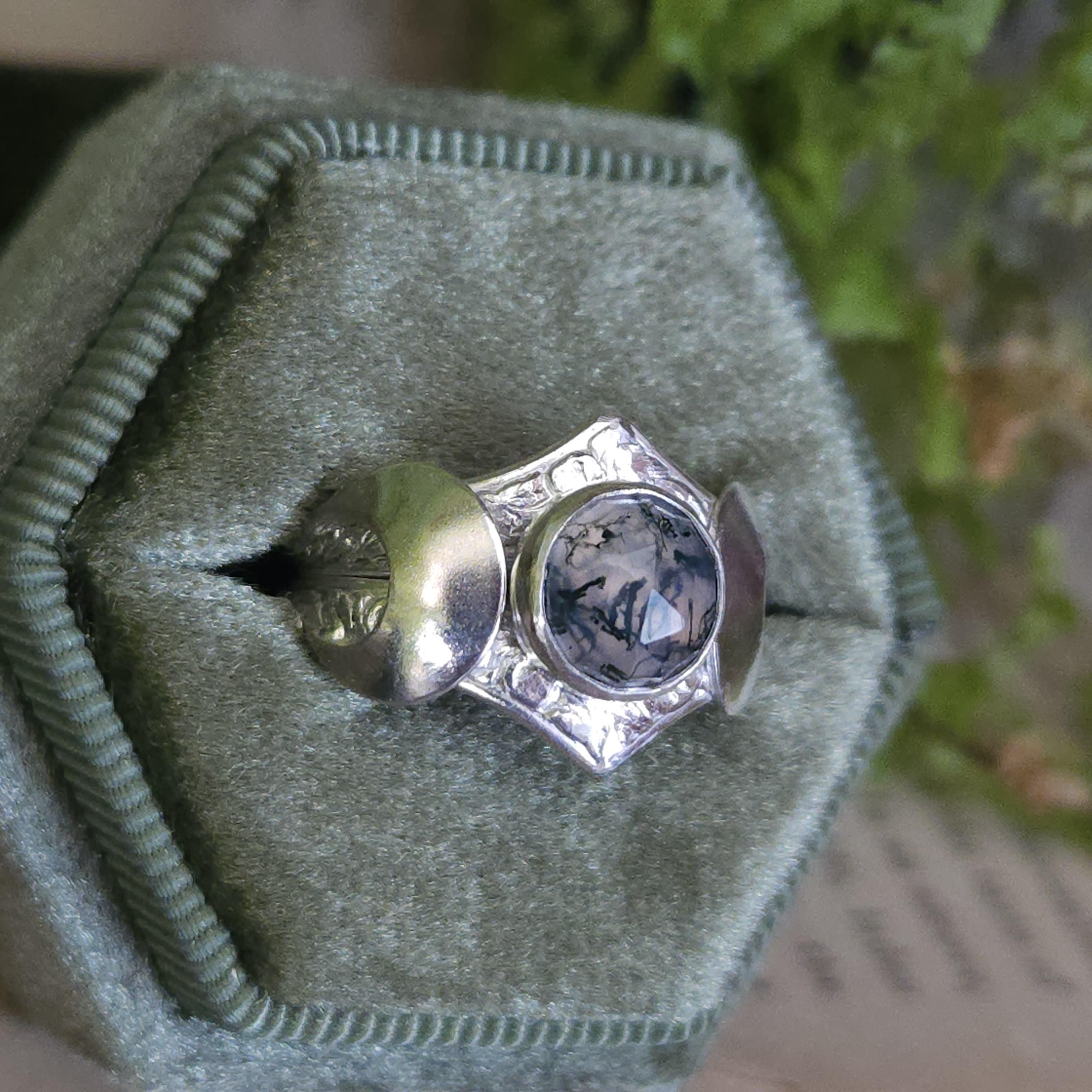 One of a kind handcrafted gemstone ring made using sterling silver and moss agate