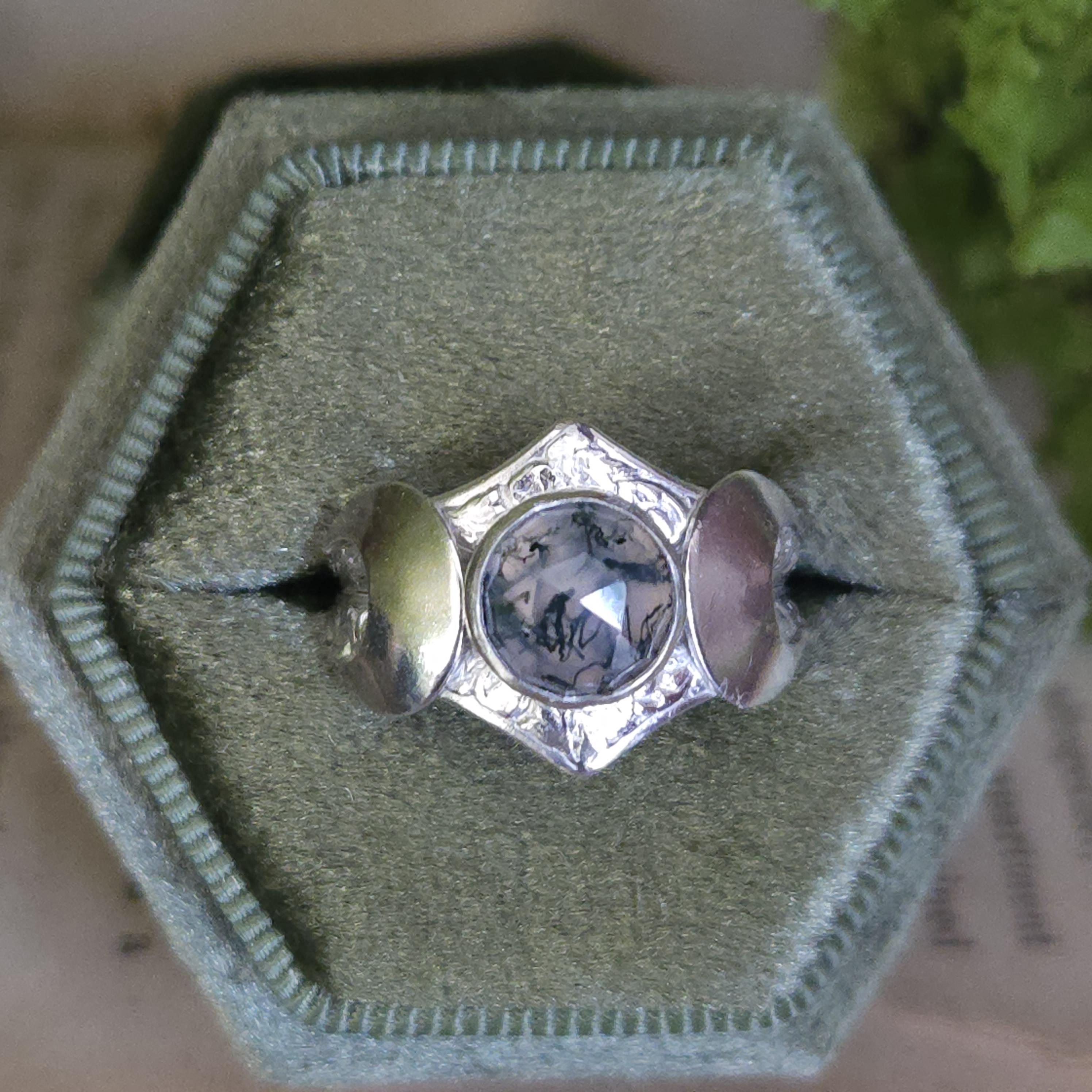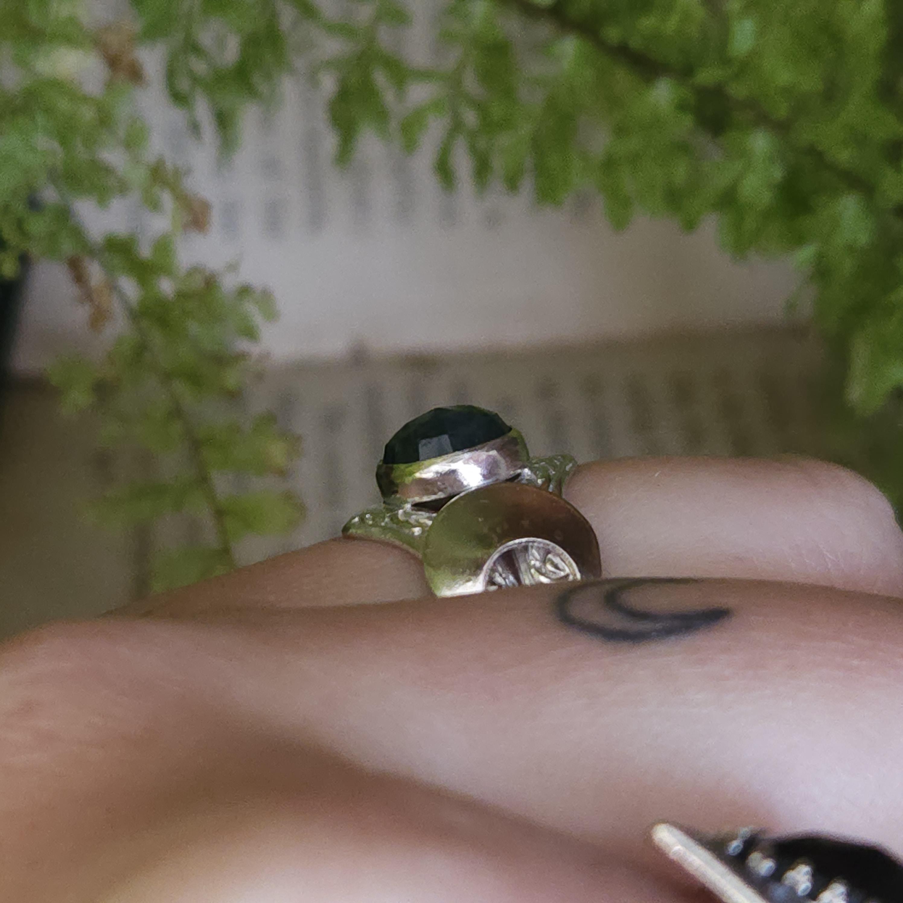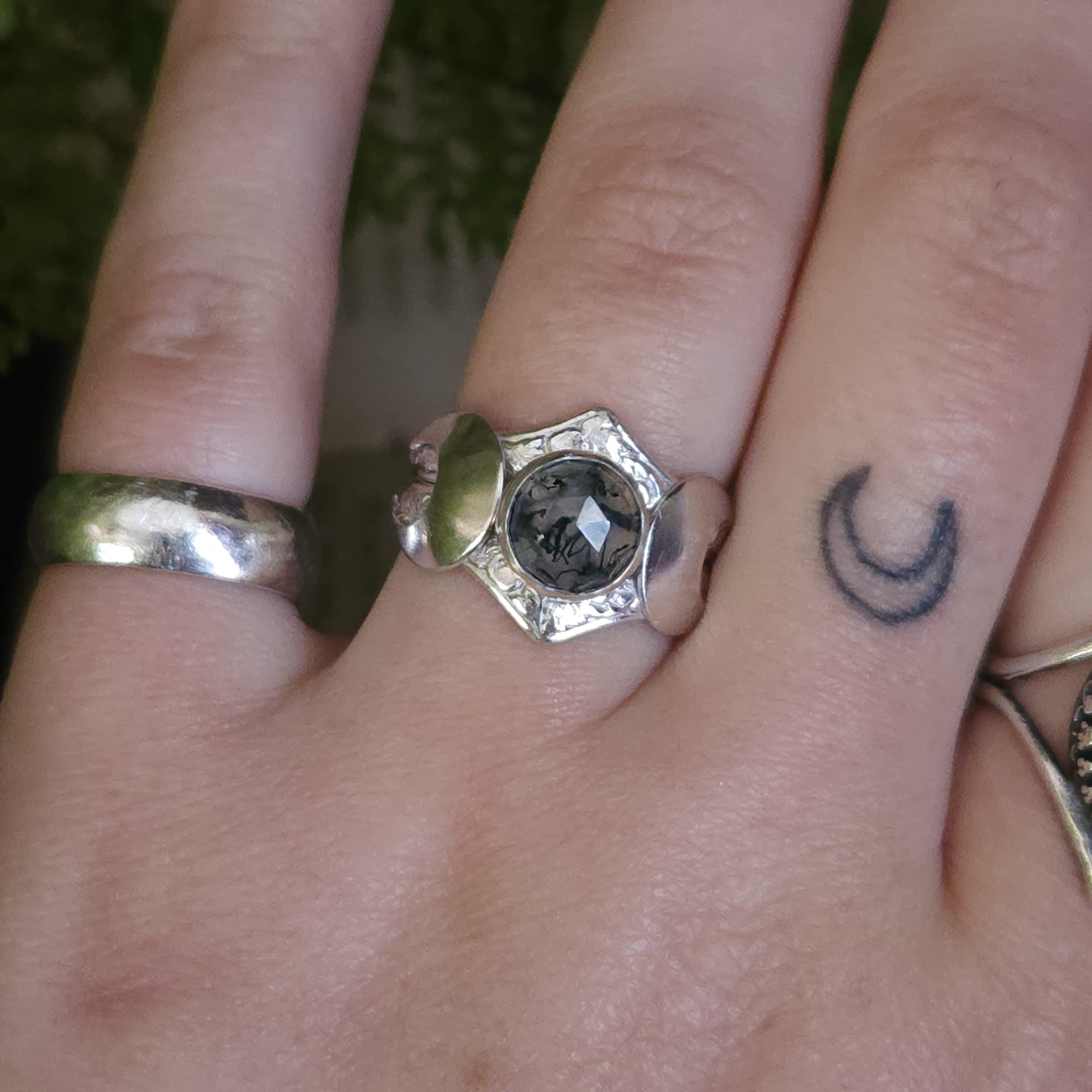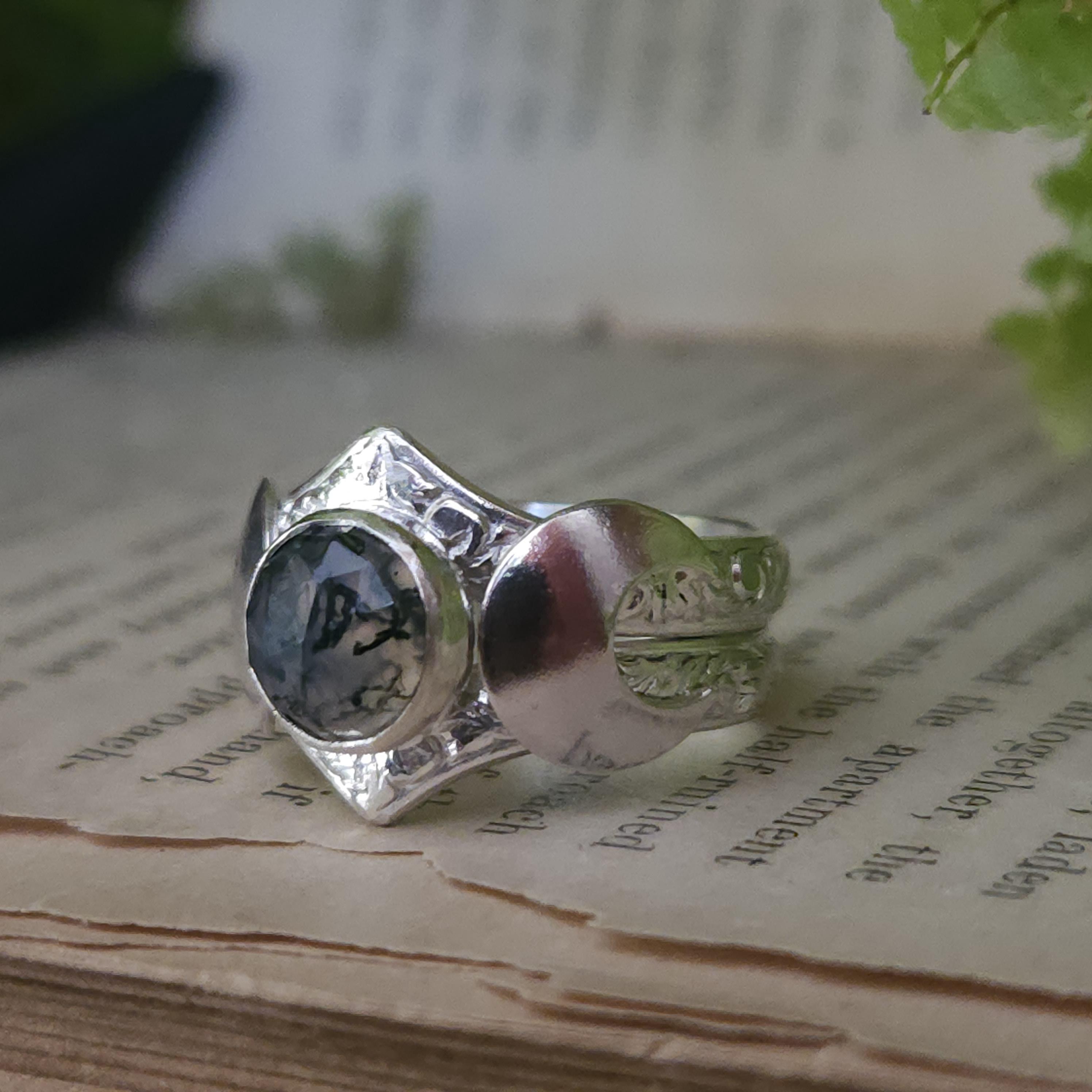 One of a kind handcrafted gemstone ring made using sterling silver and moss agate