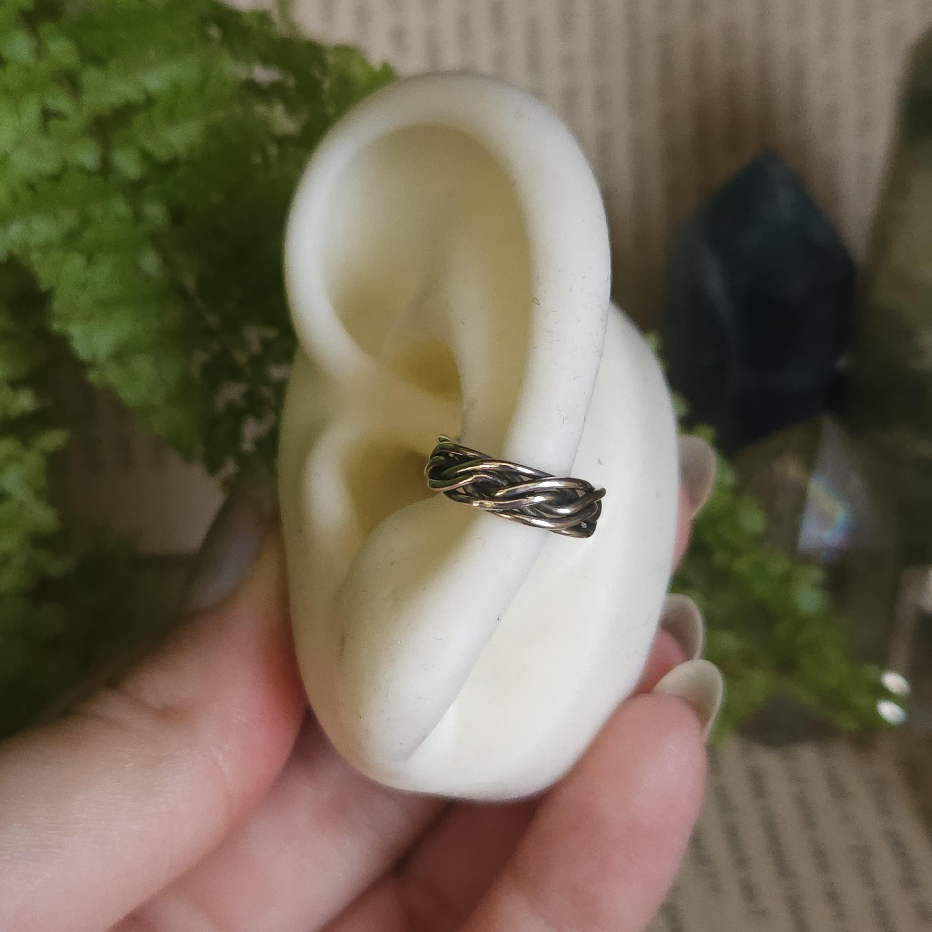 These are meant to sit in the conch of your ear. I recommend slipping it onto the thinnest part of your ear, then moving it into place. These are a bit hard to expand using your fingers, so I recommend using a spoon wedge open the opening if you need it a little bit wider.