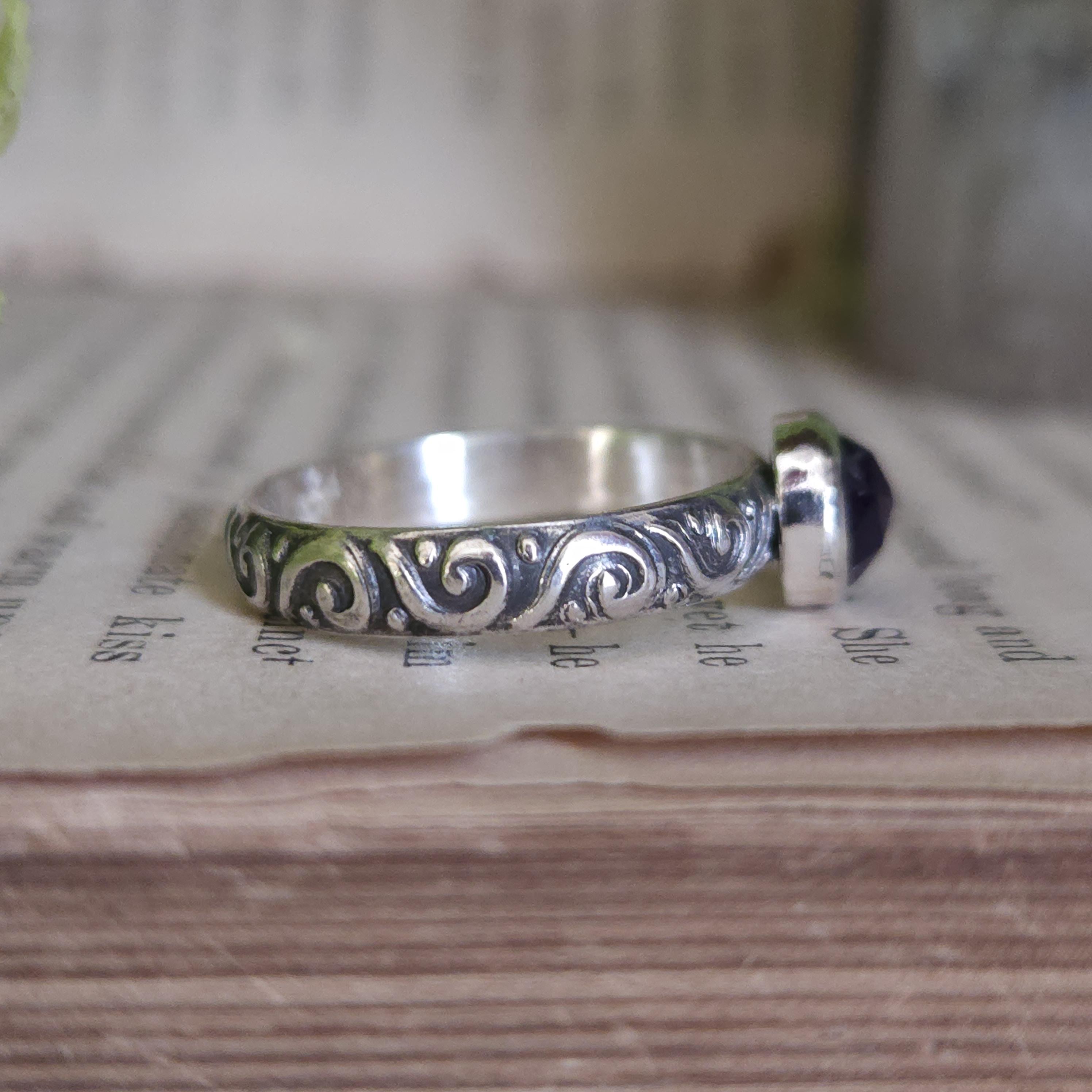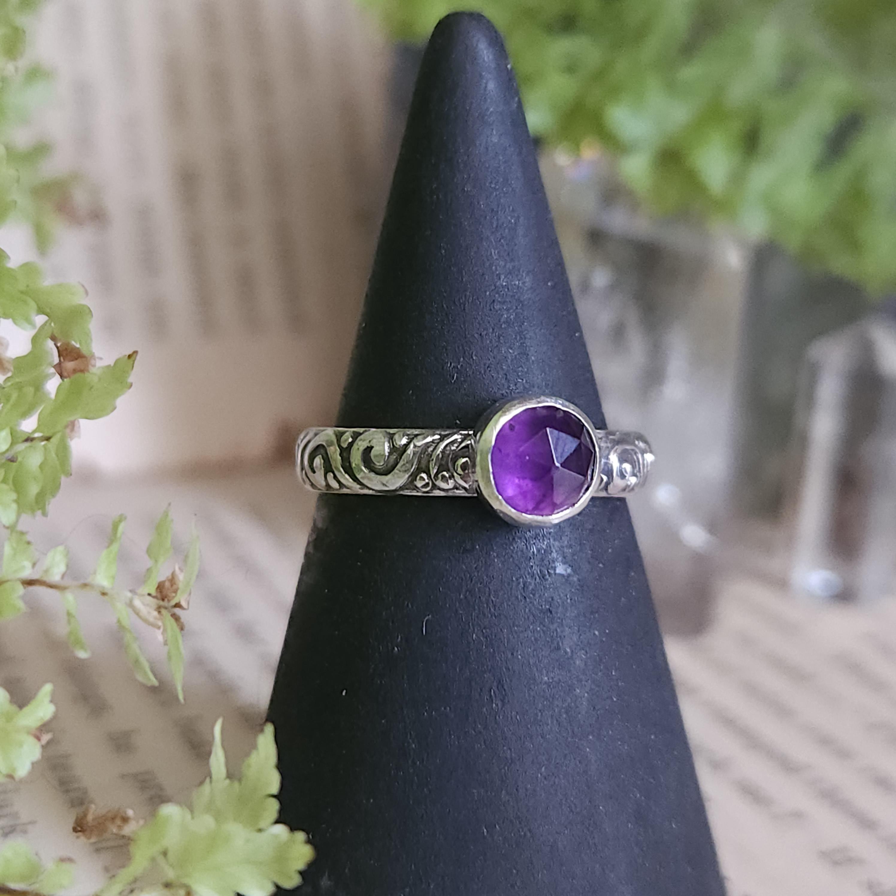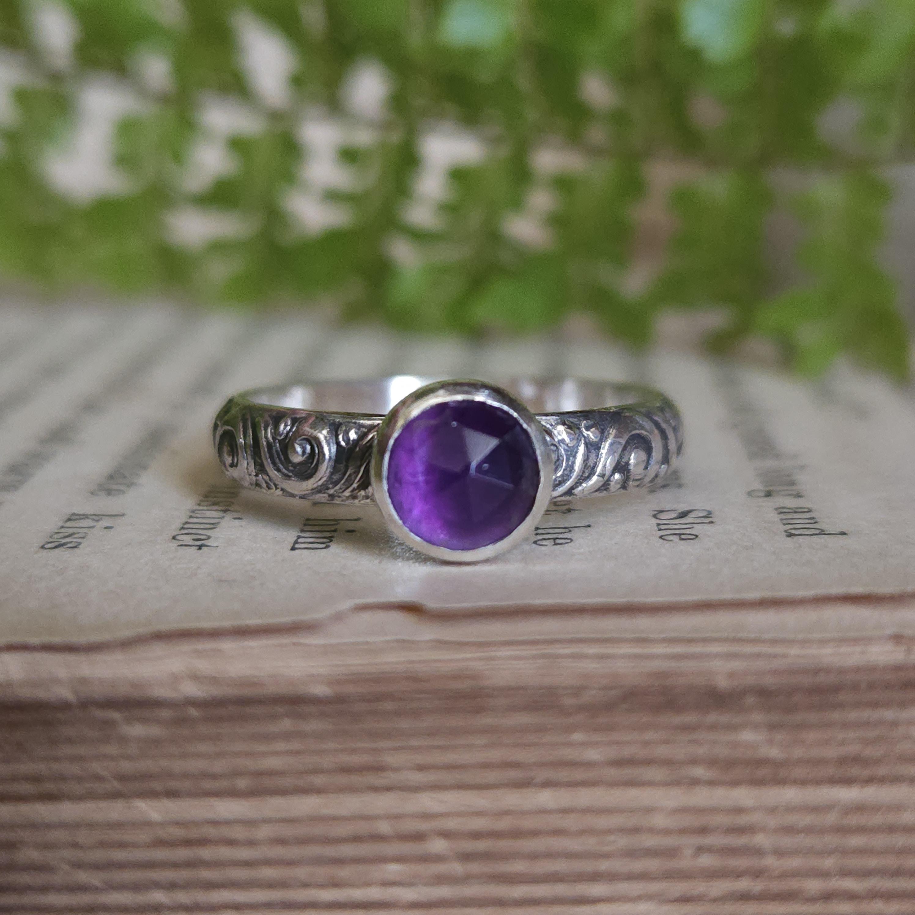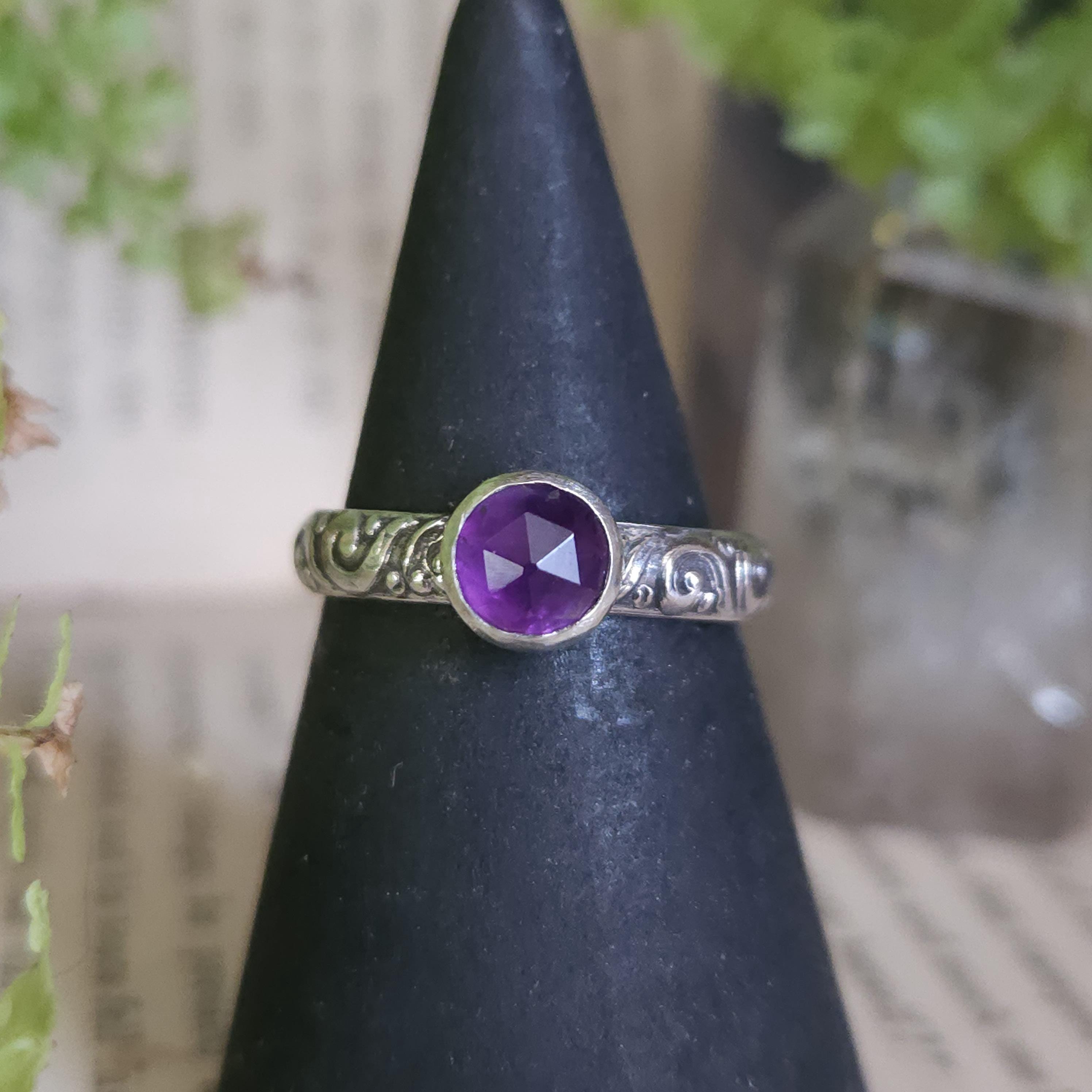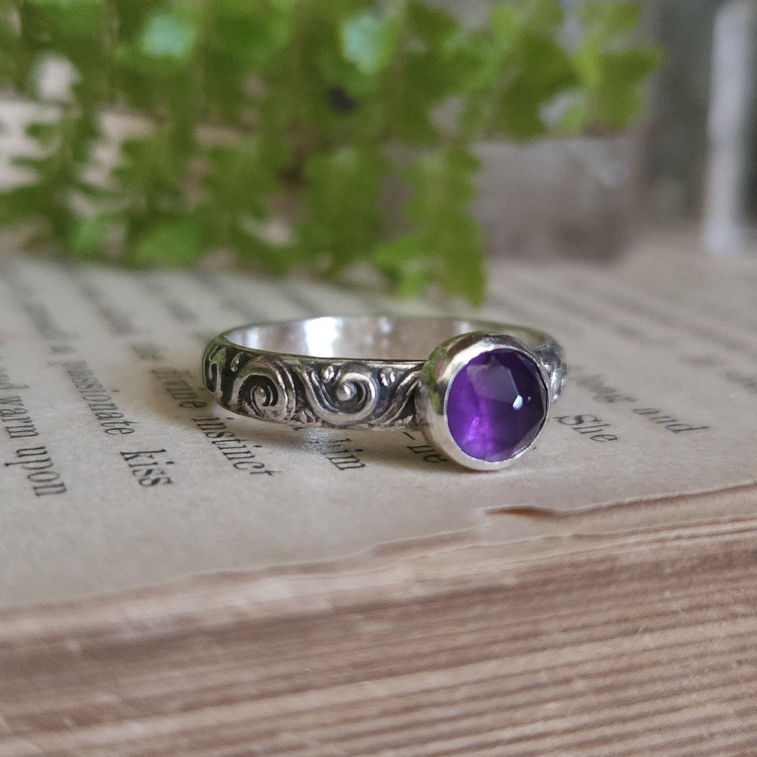 One of a kind handcrafted gemstone ring made using sterling silver and amethyst