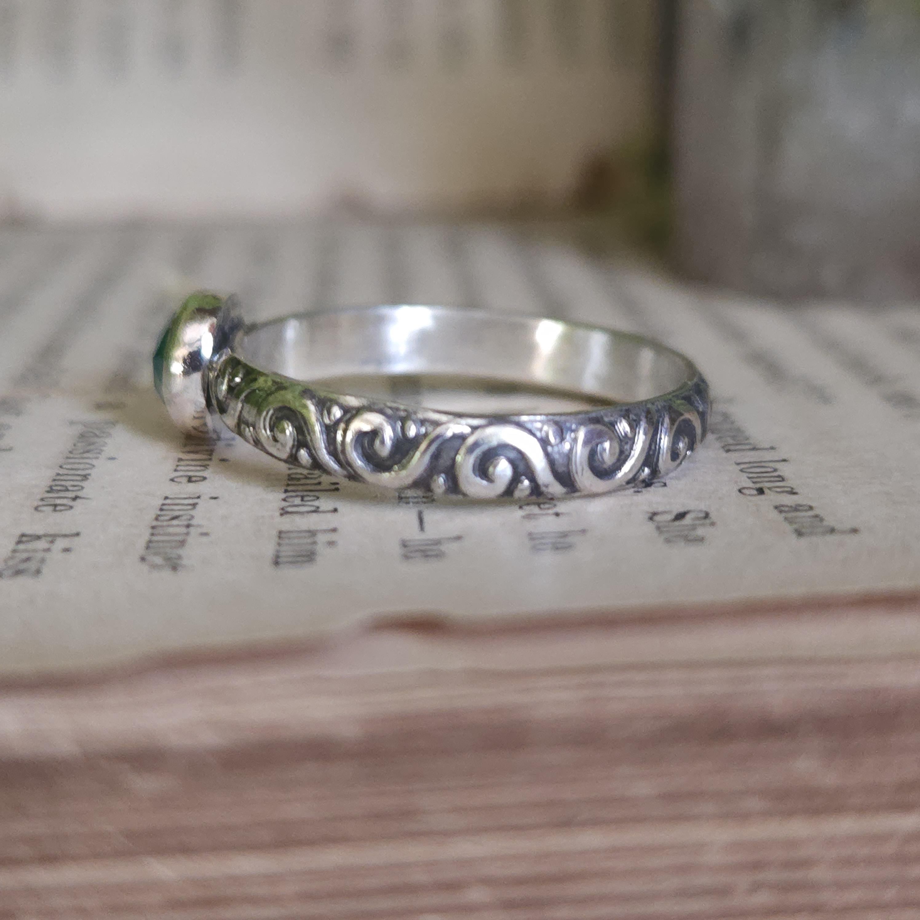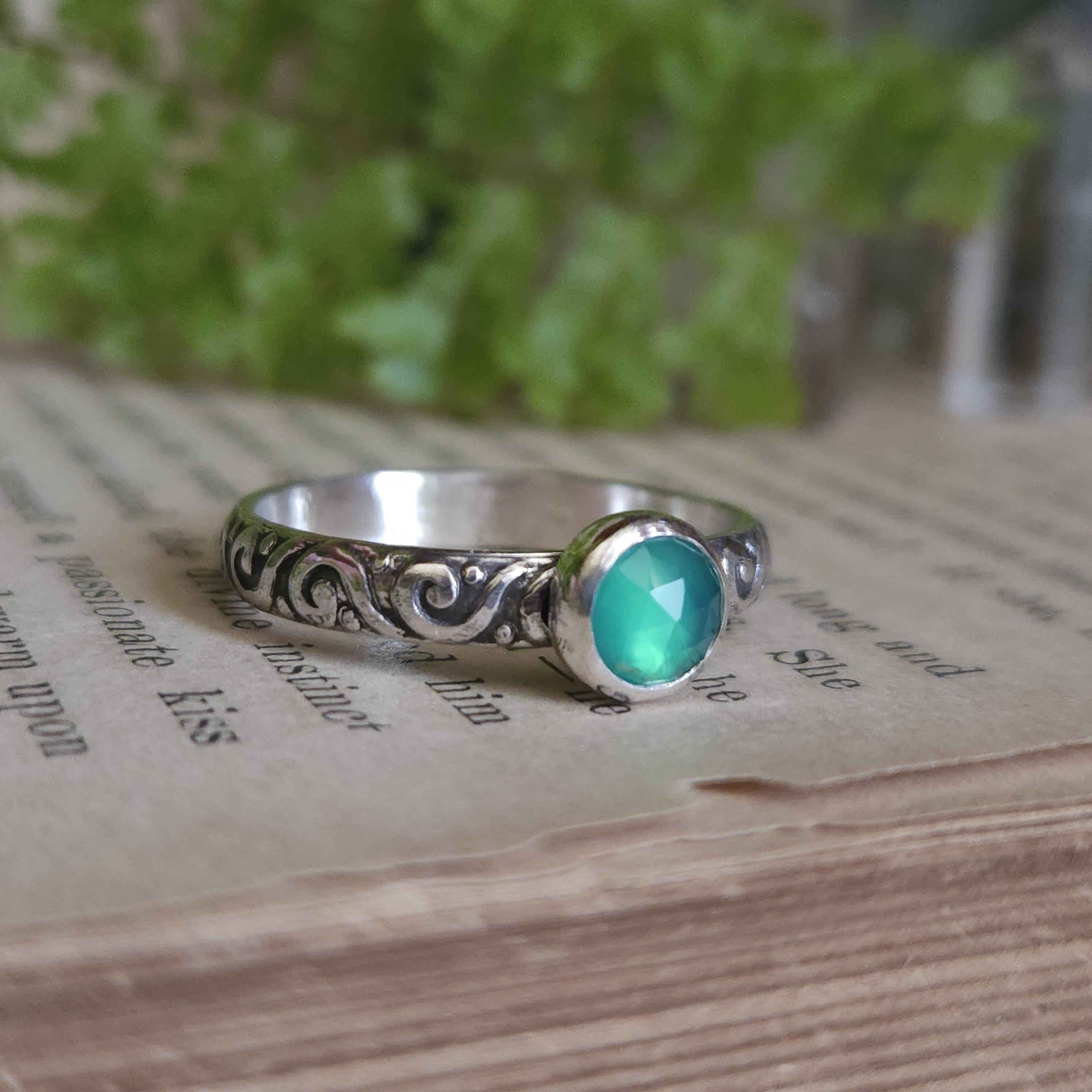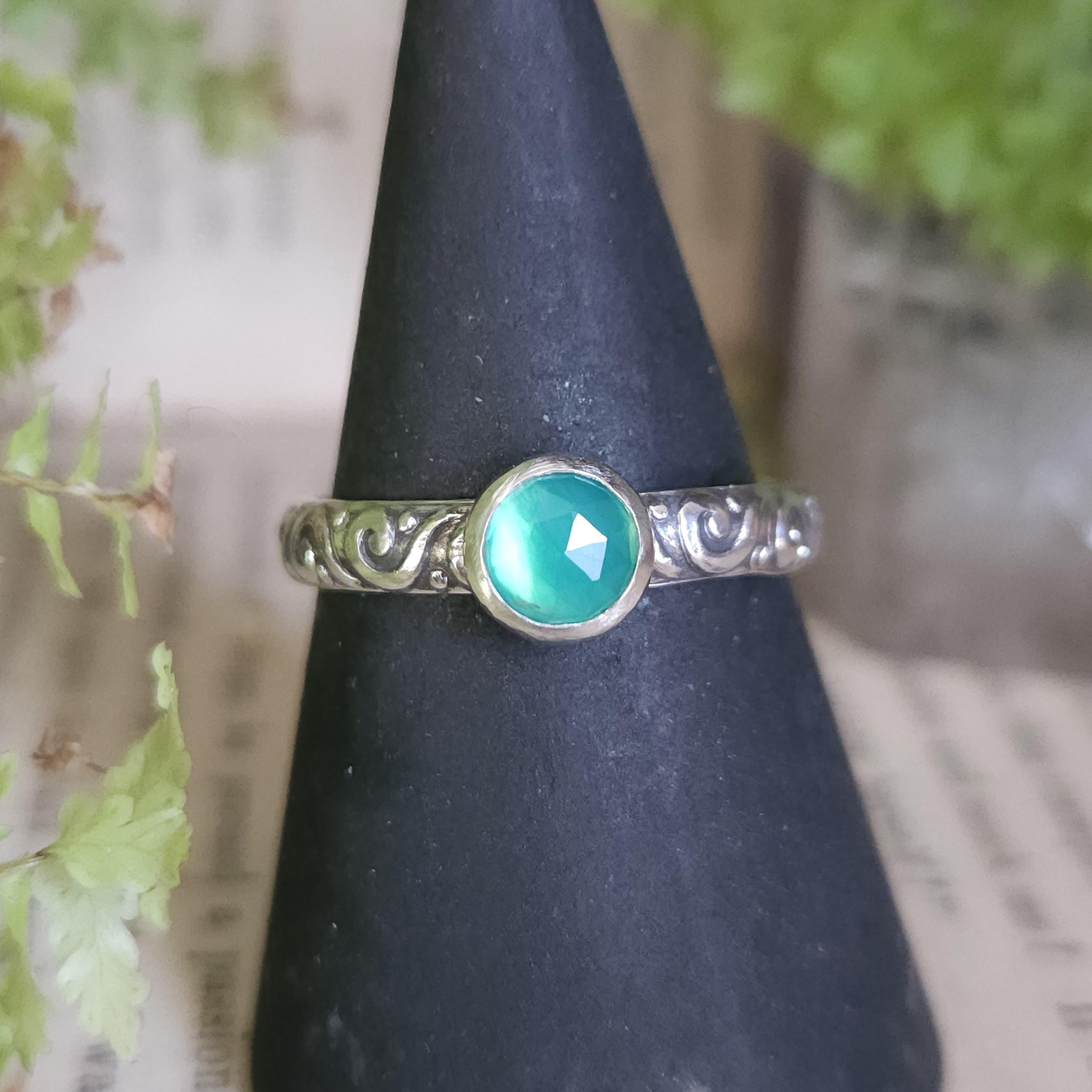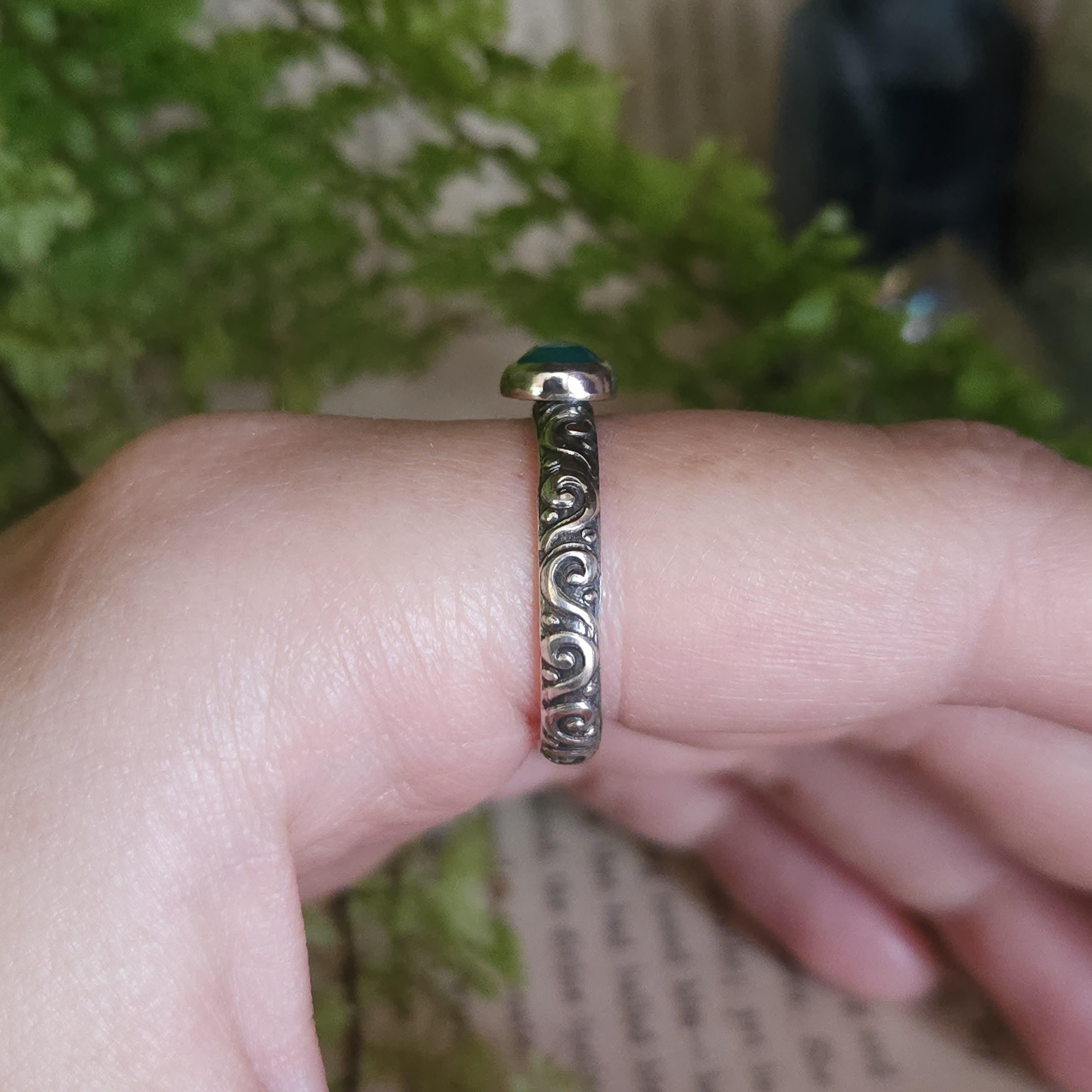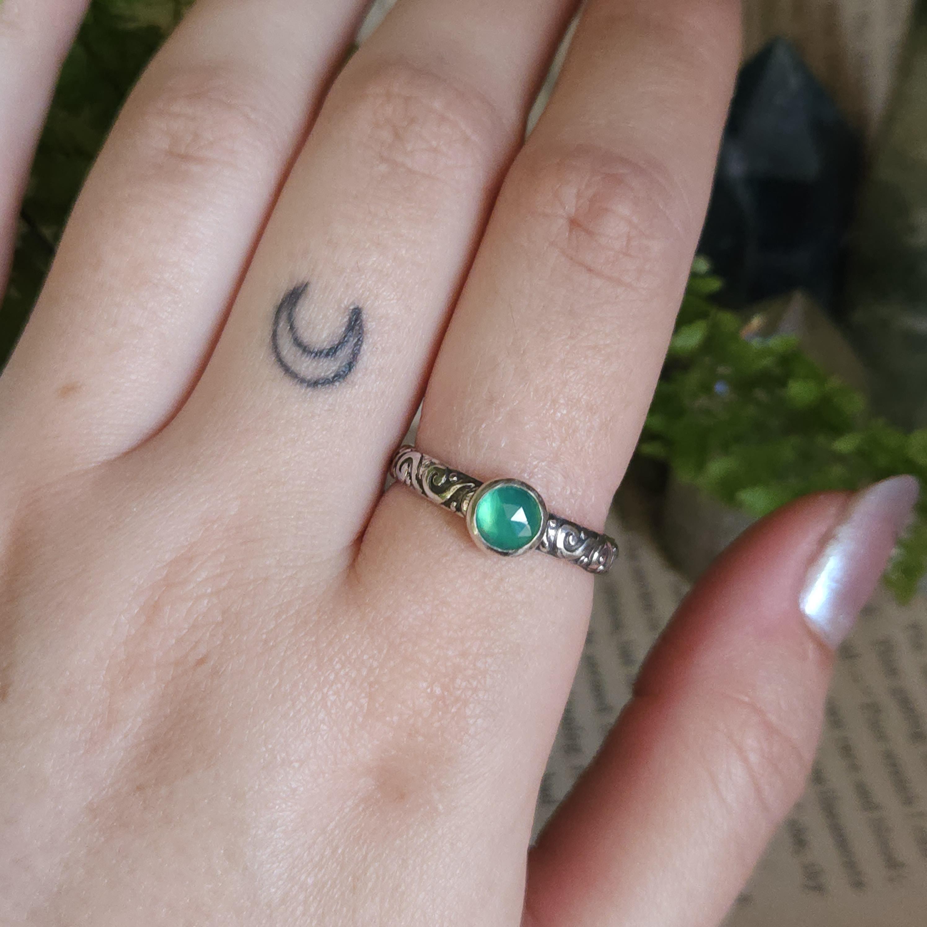 One of a kind handcrafted gemstone ring made using sterling silver and green onyx