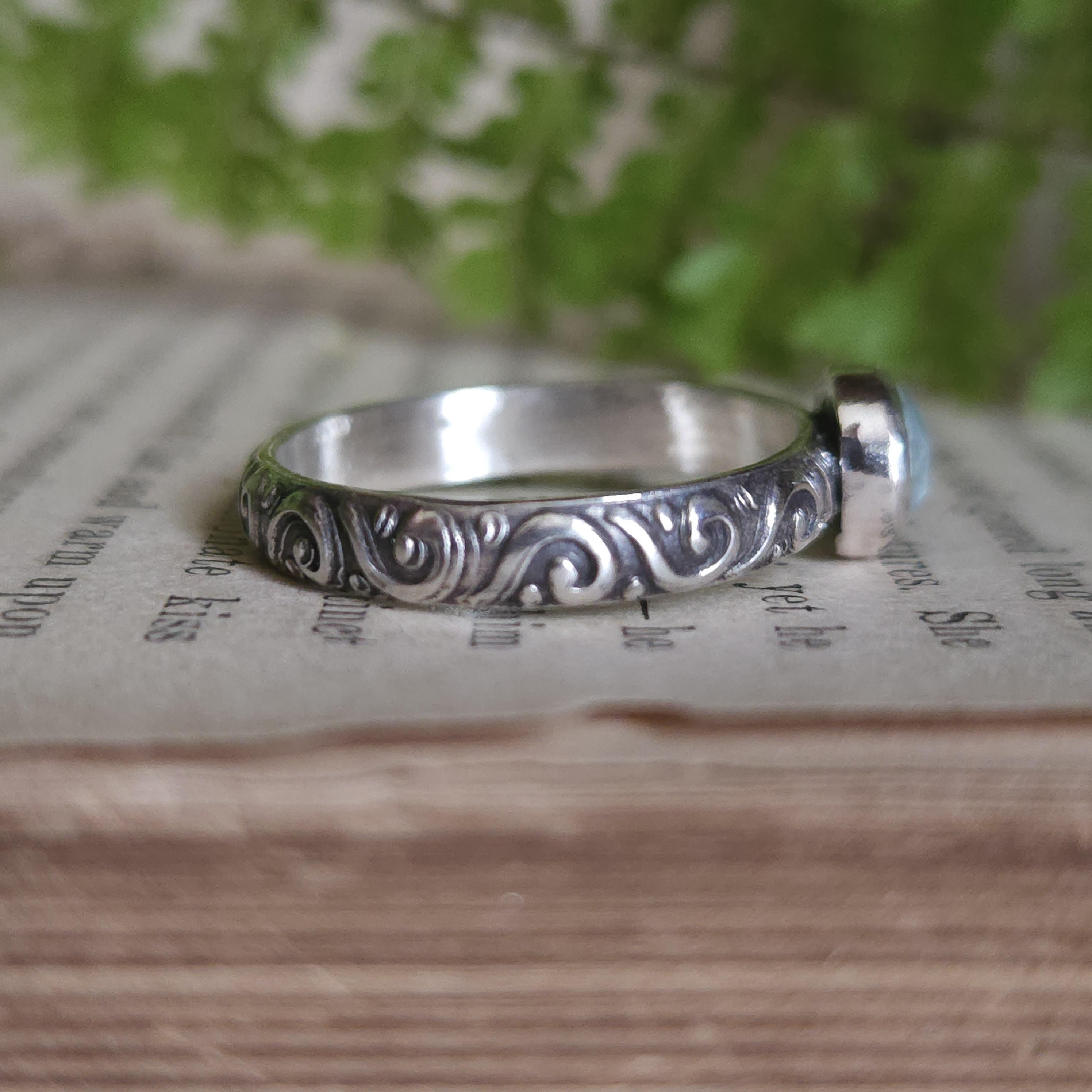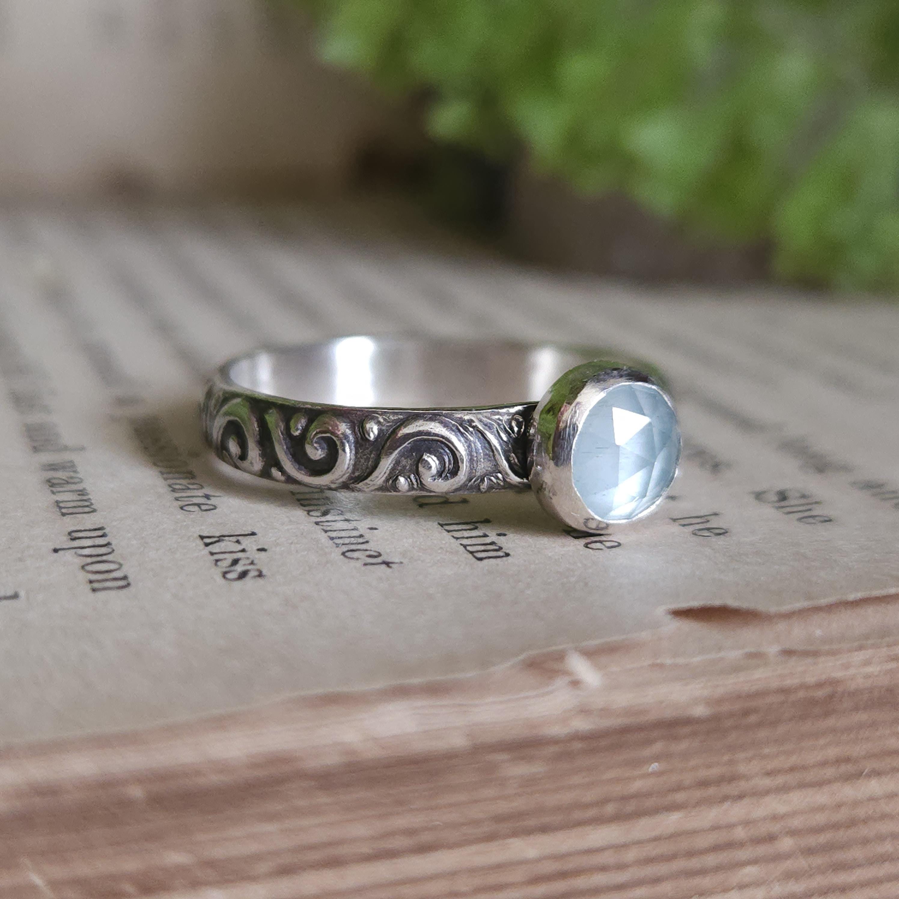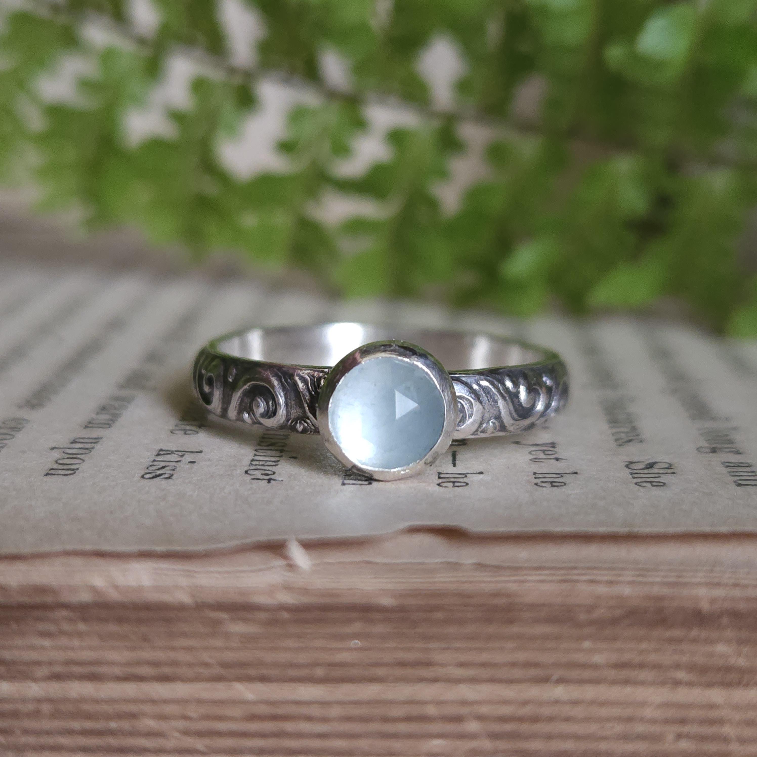One of a kind handcrafted gemstone ring made using sterling silver and aquamarine