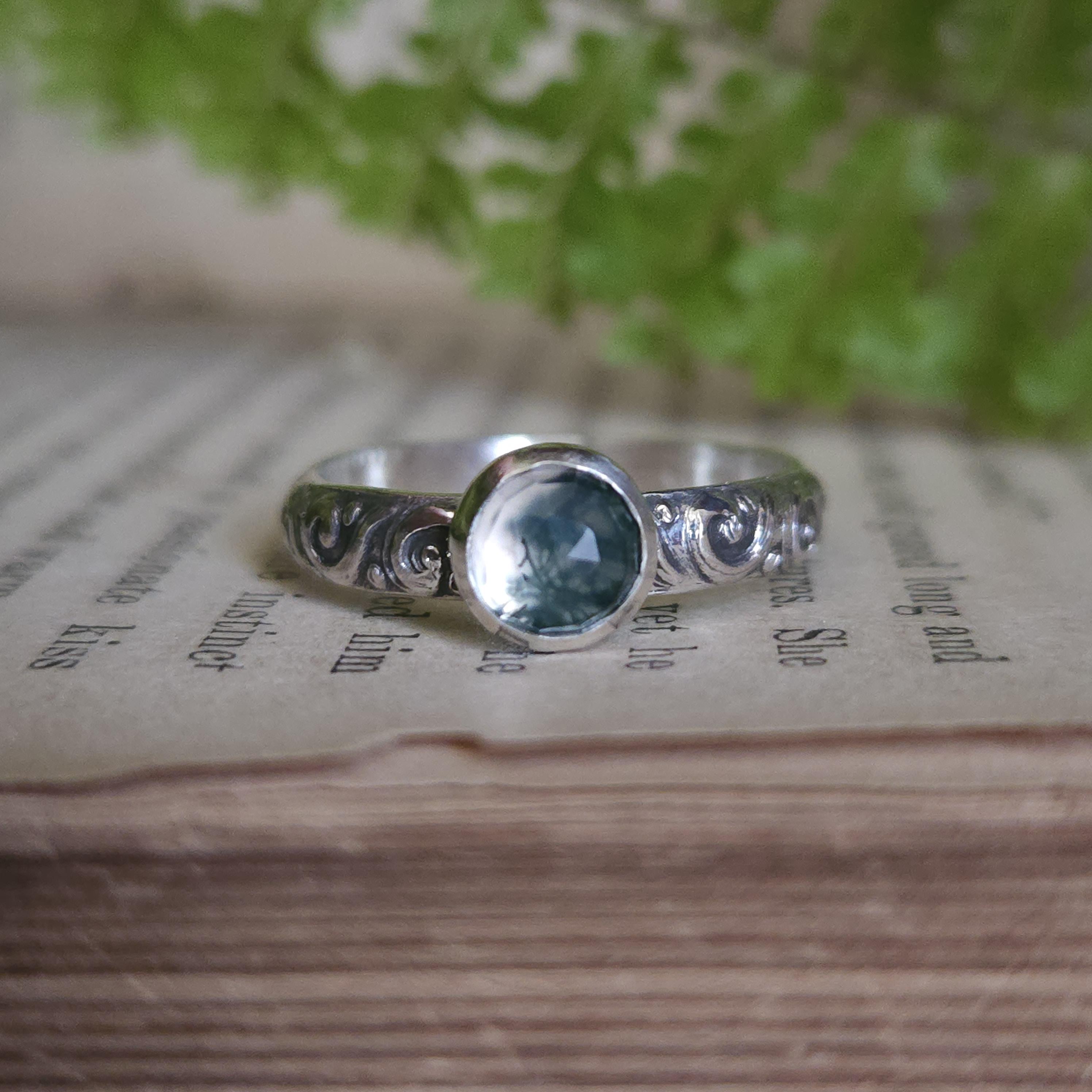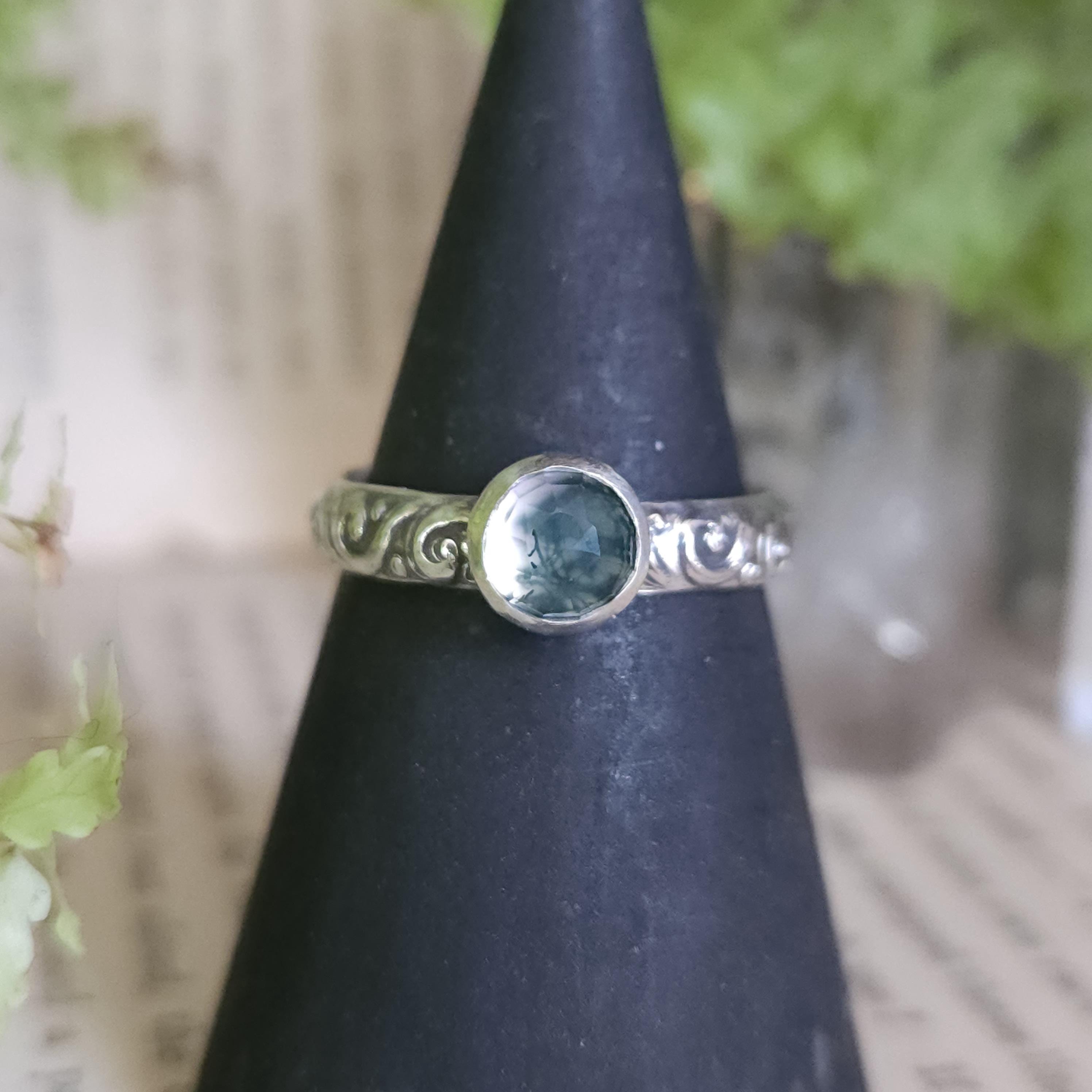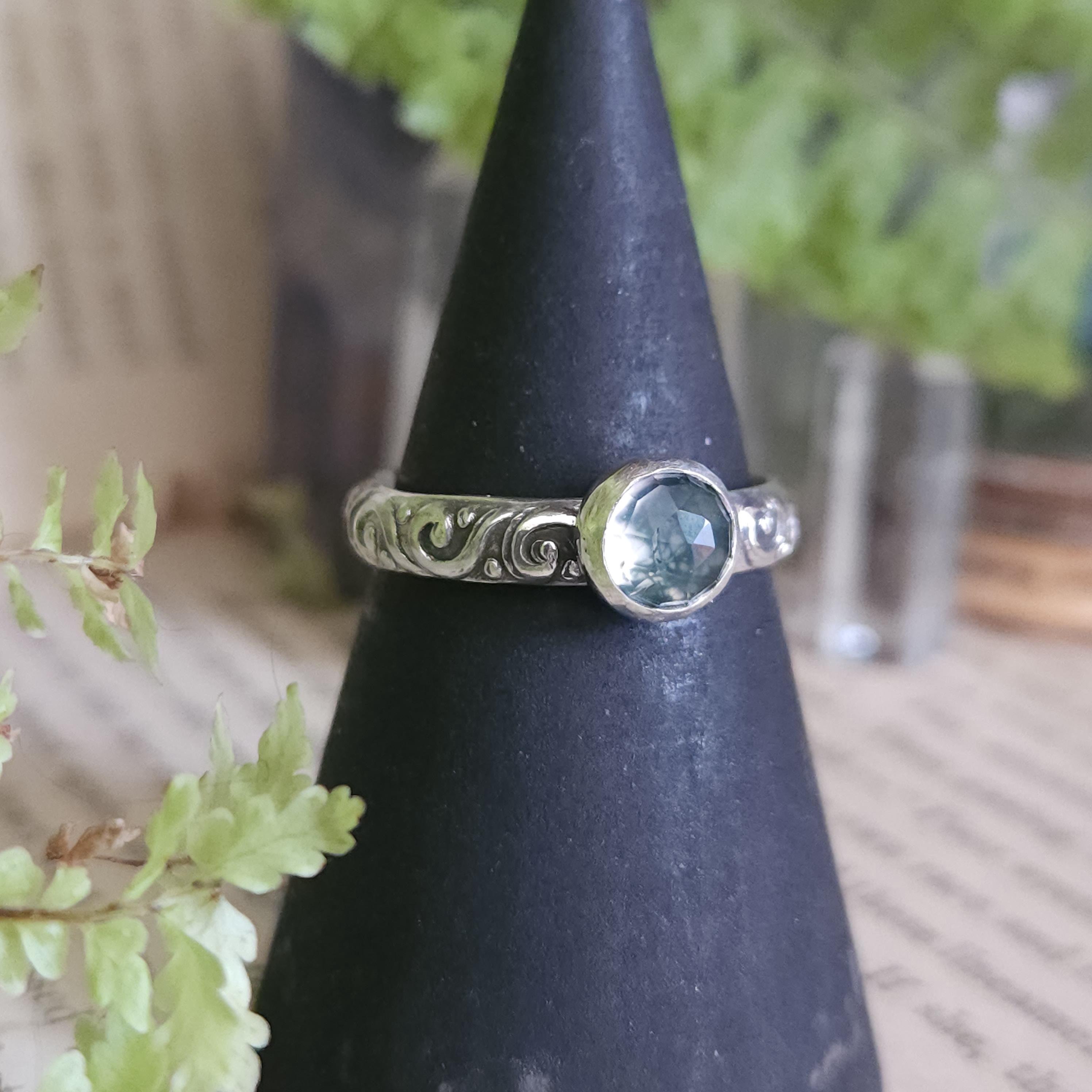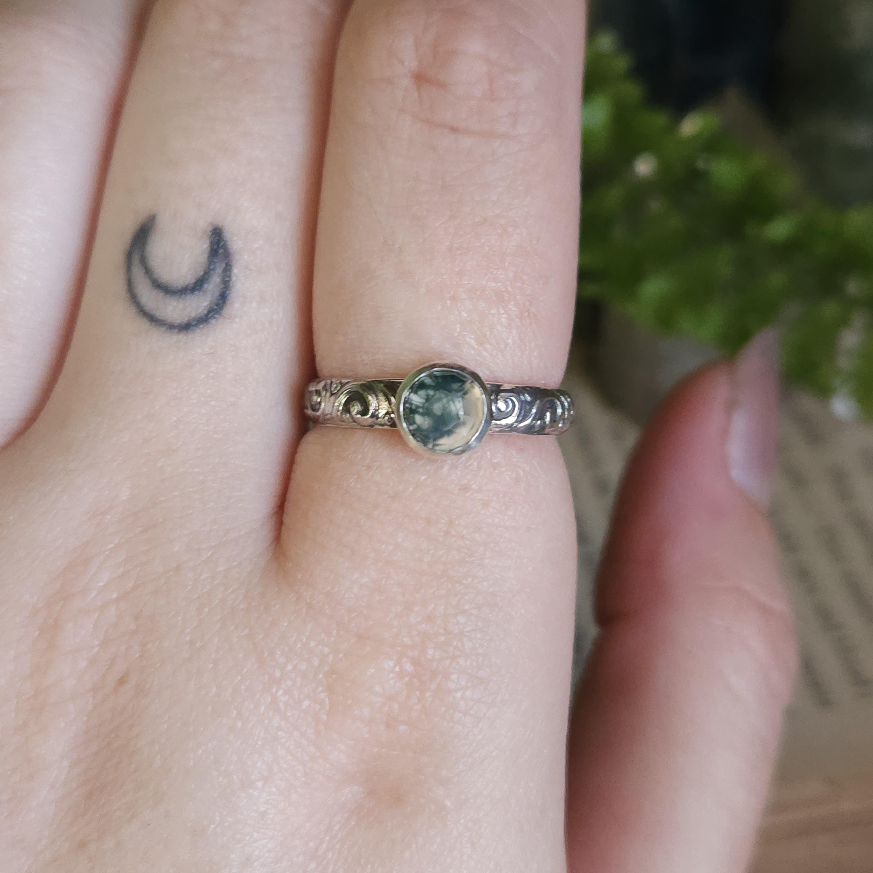 One of a kind handcrafted gemstone ring made using sterling silver and moss agate