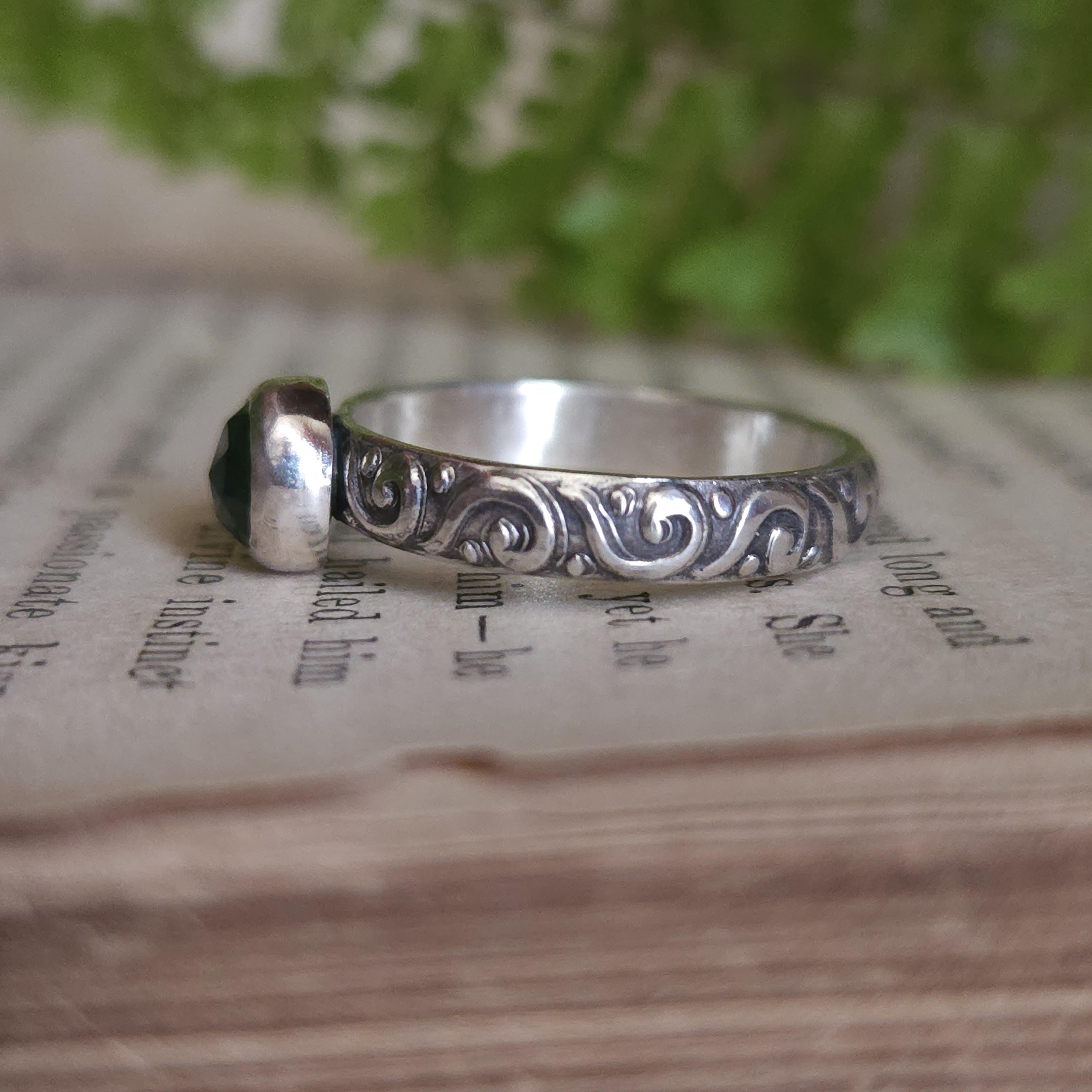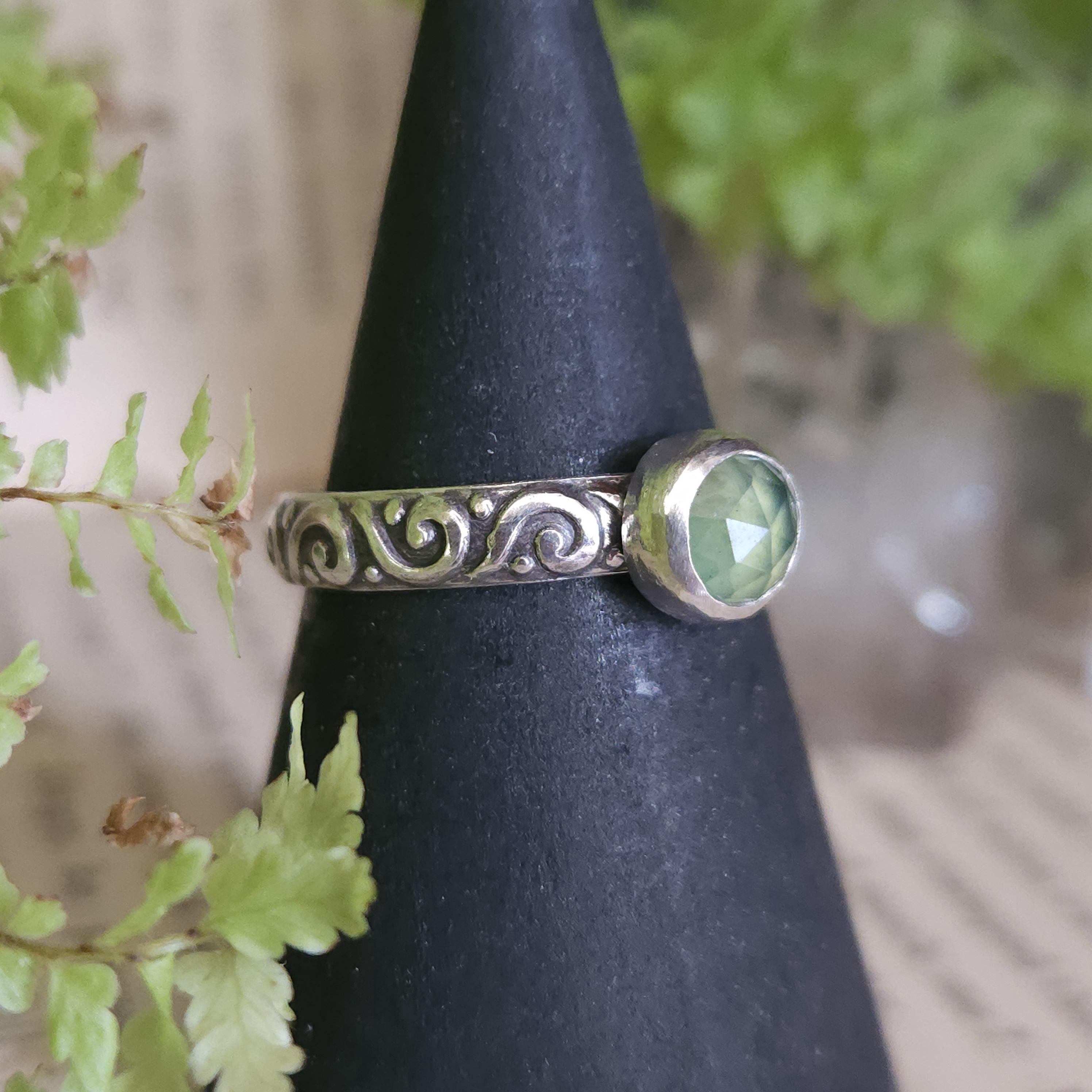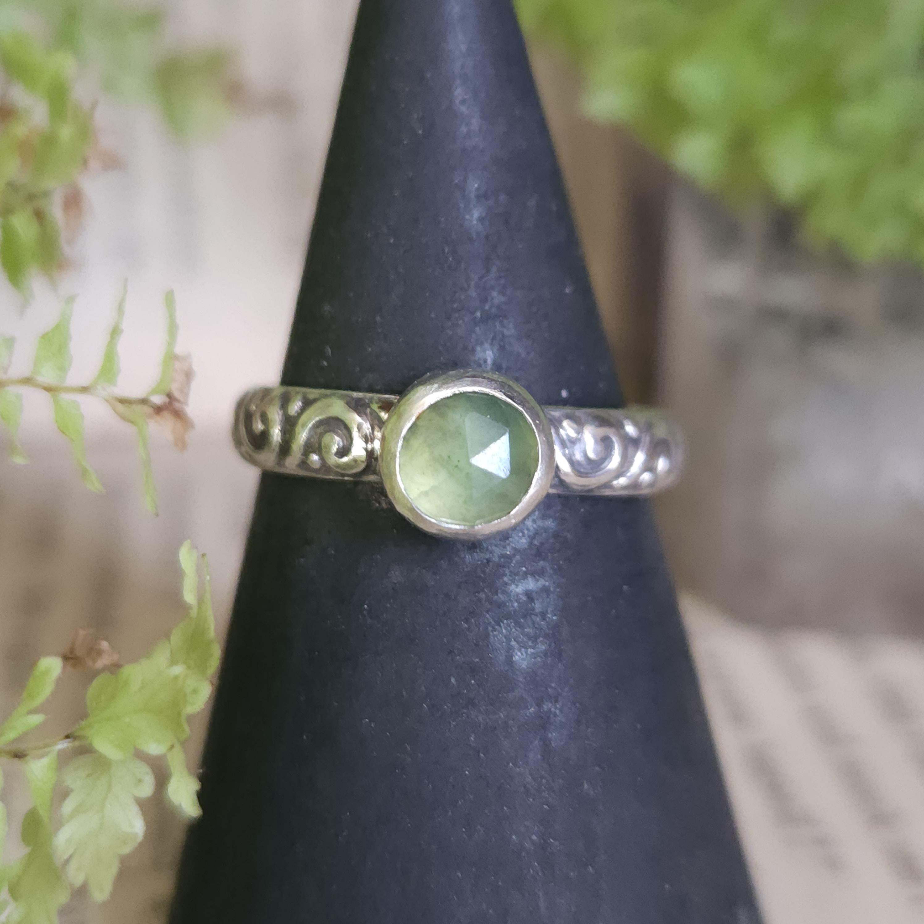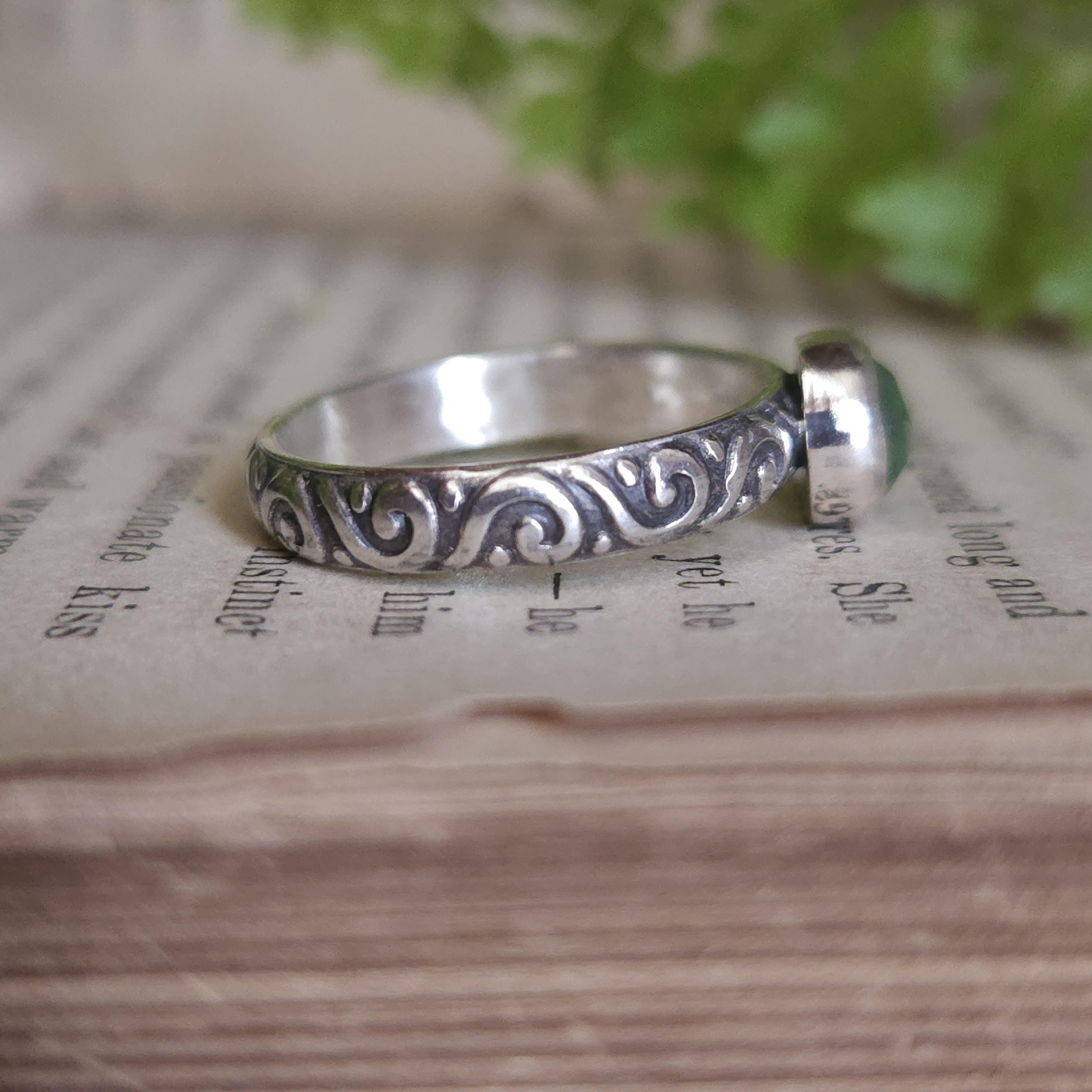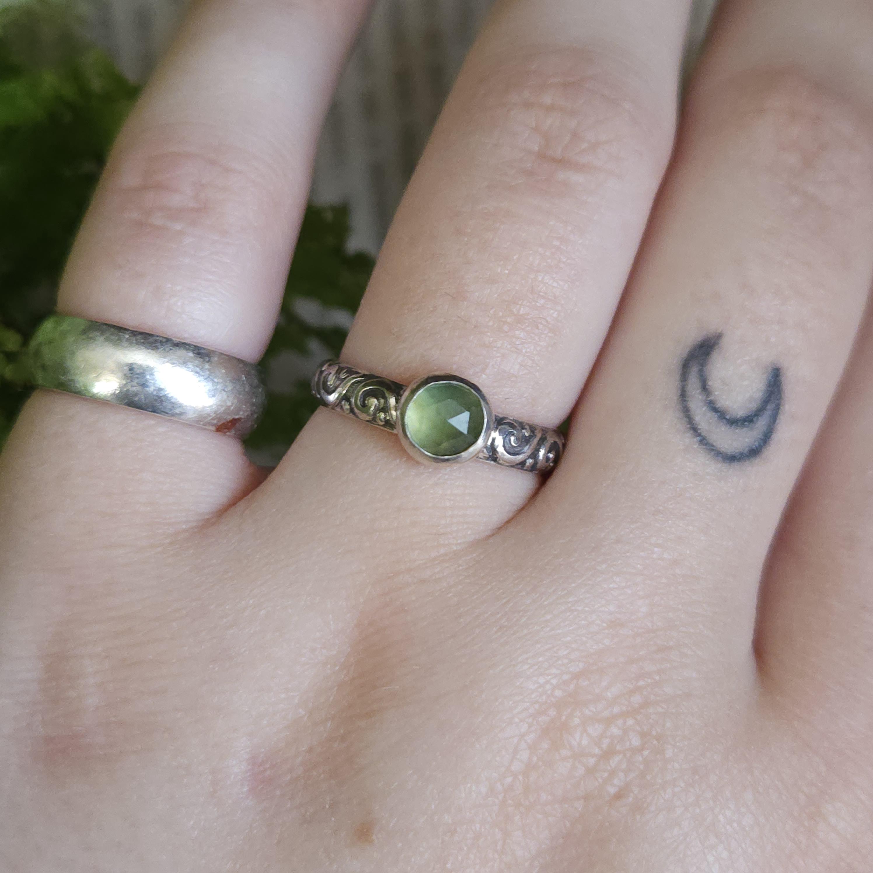 One of a kind handcrafted gemstone ring made using sterling silver and serpentine