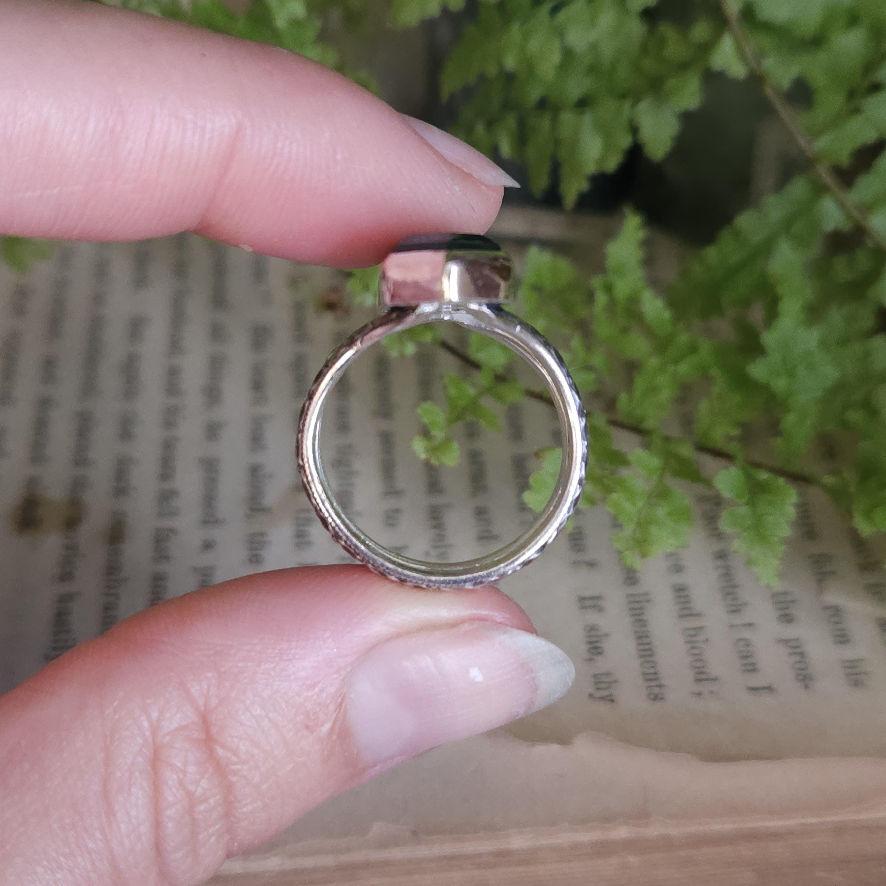 A: Depending on the style and stone type, I may be able to resize the ring for you. Please send me a message before purchasing to inquire about resizing. If I have more of the stone type on hand, I would be more than happy to recreate the ring in your size for you if it can’t be resized!
