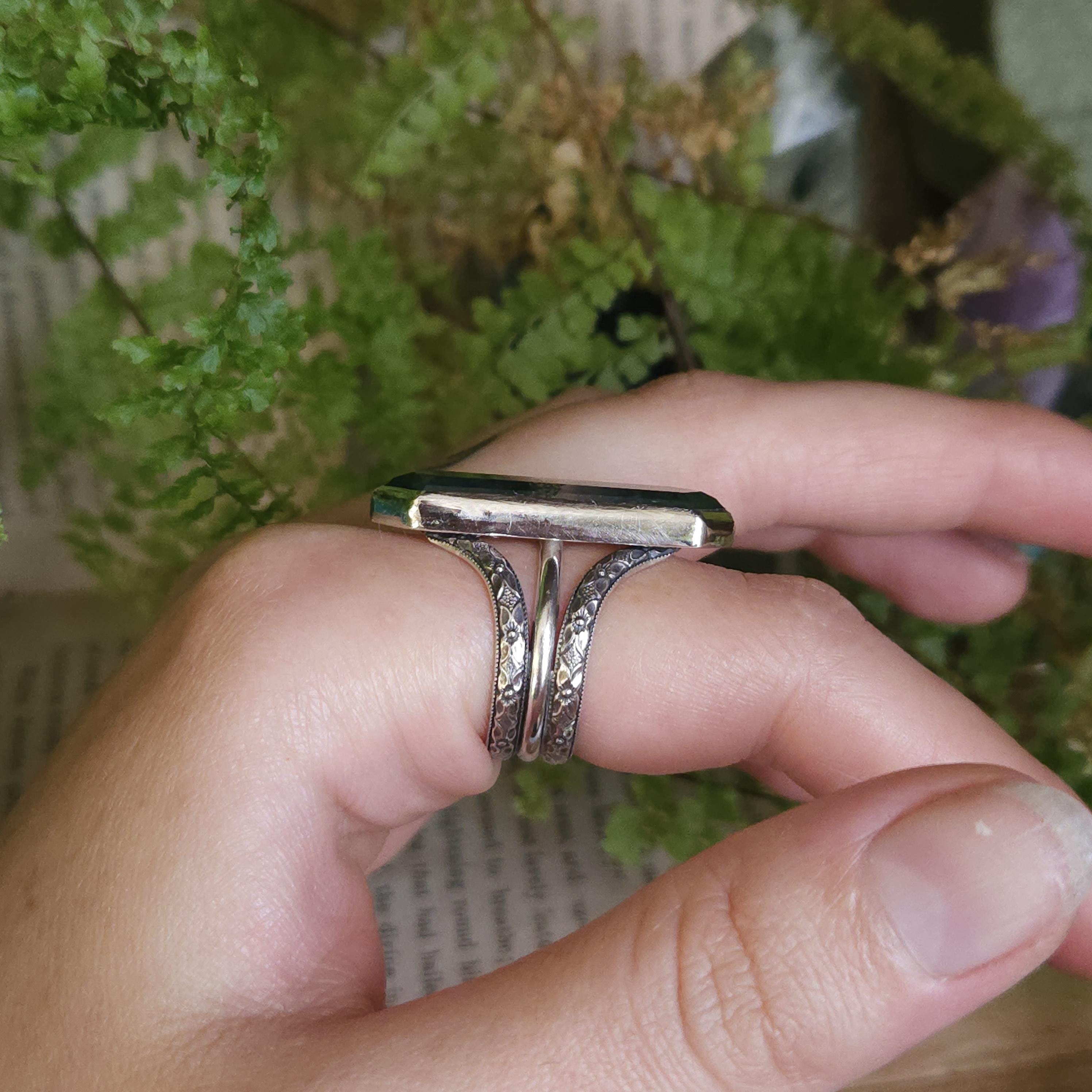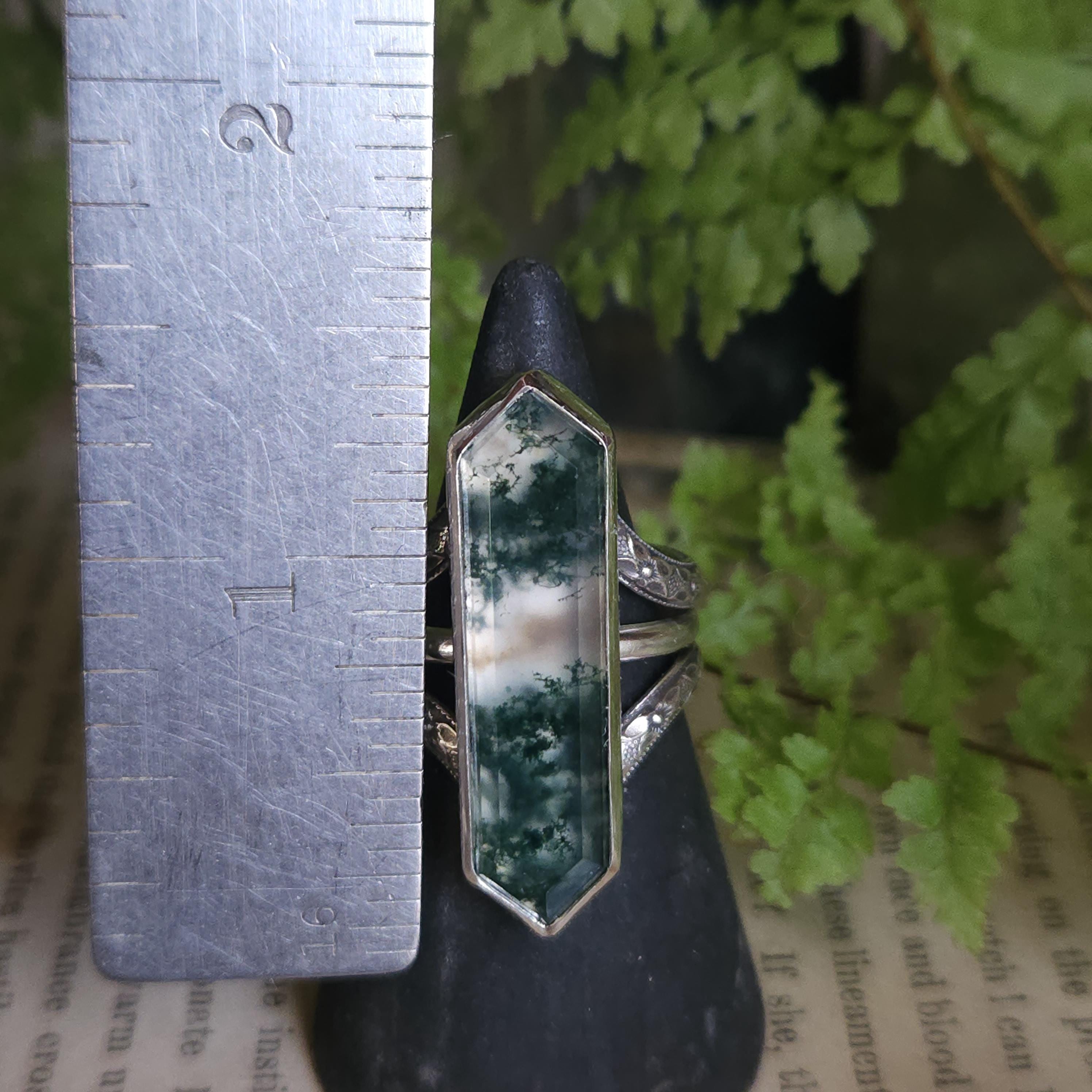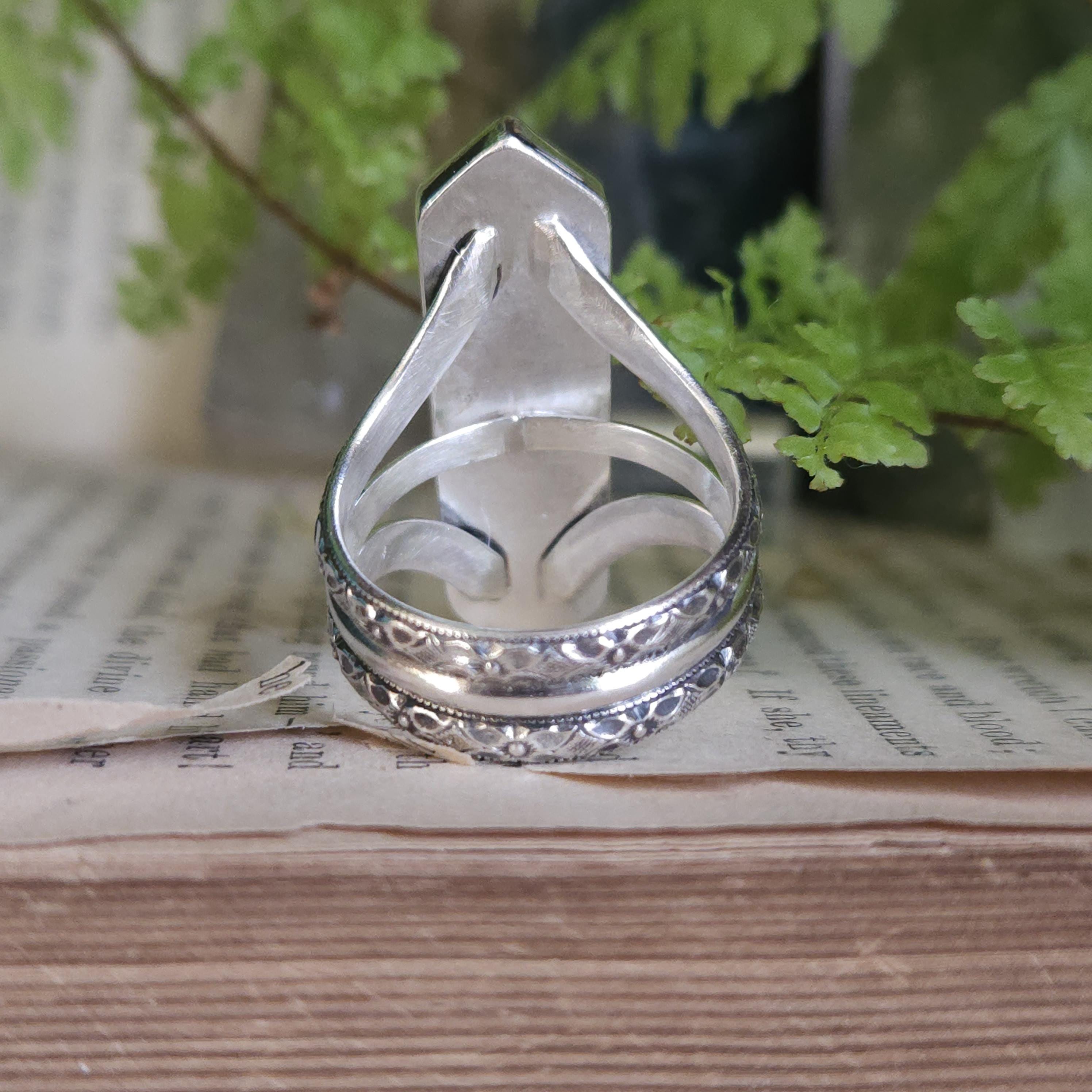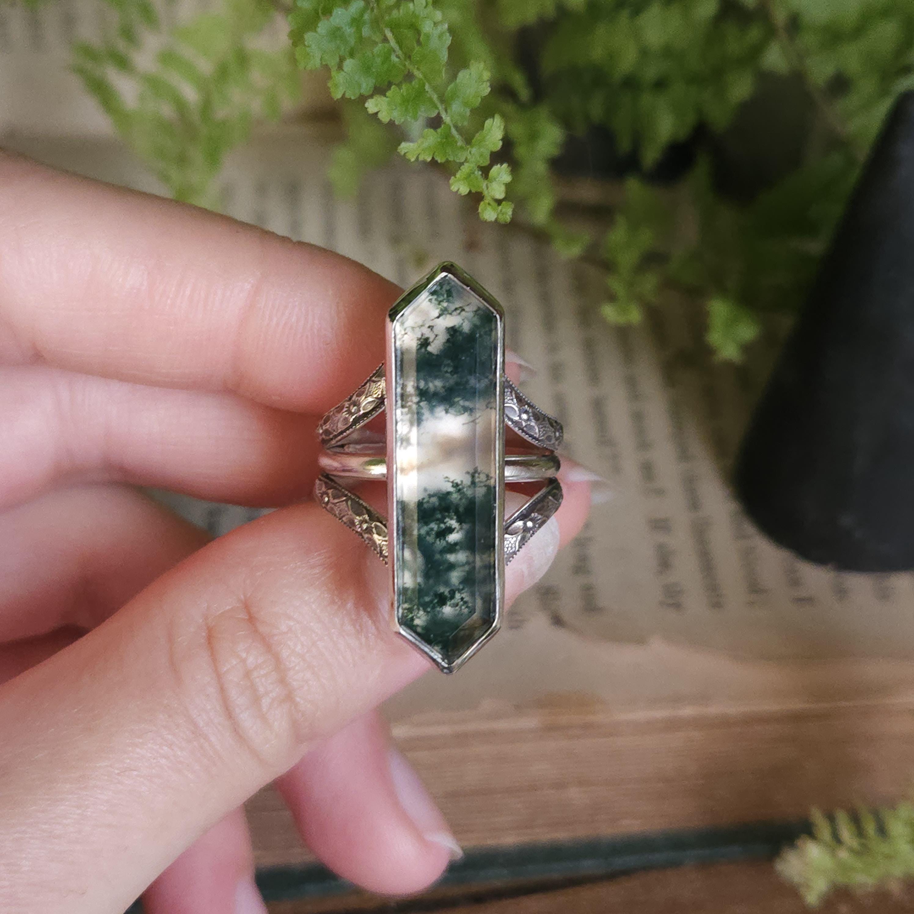 One of a kind handcrafted gemstone ring made using sterling silver and moss agate