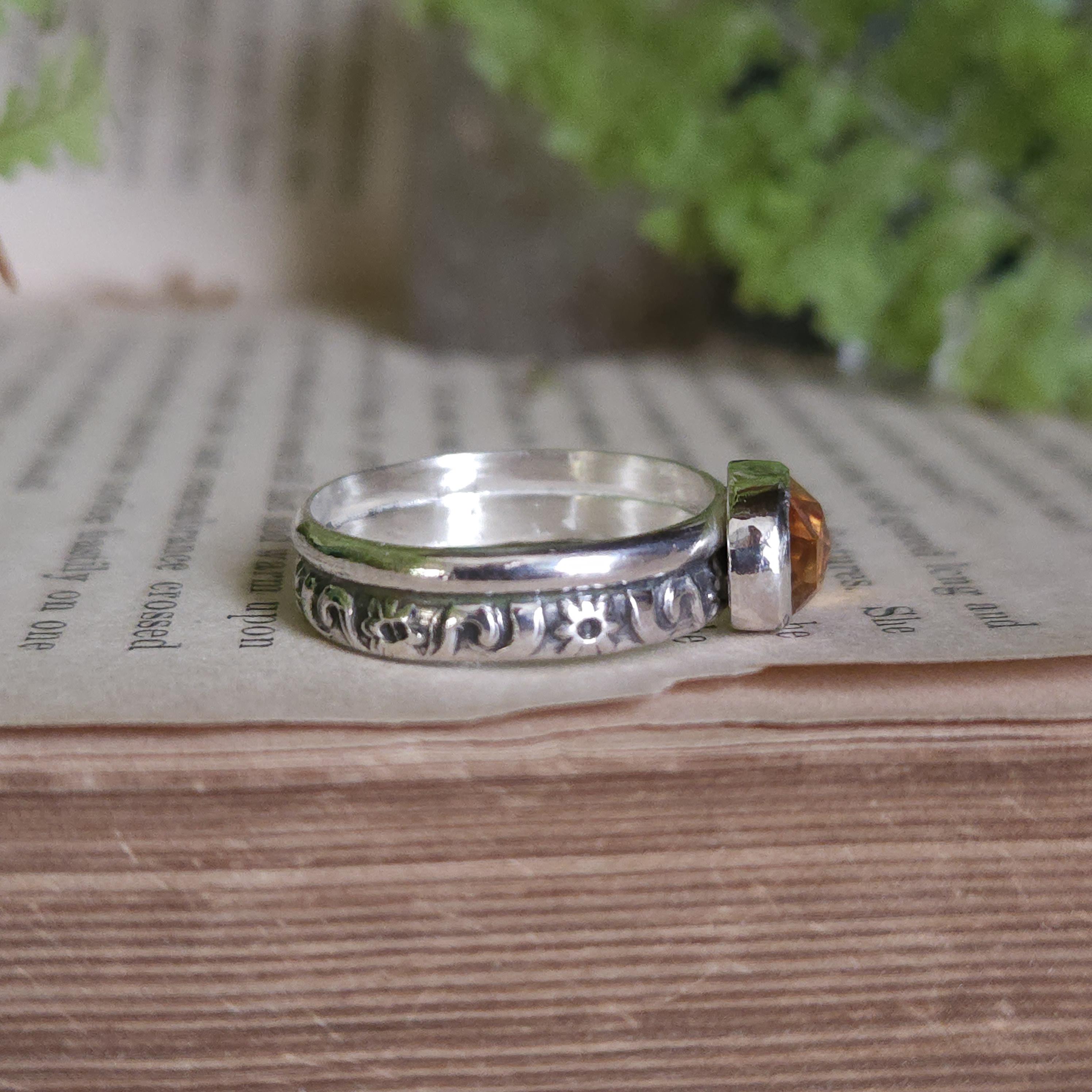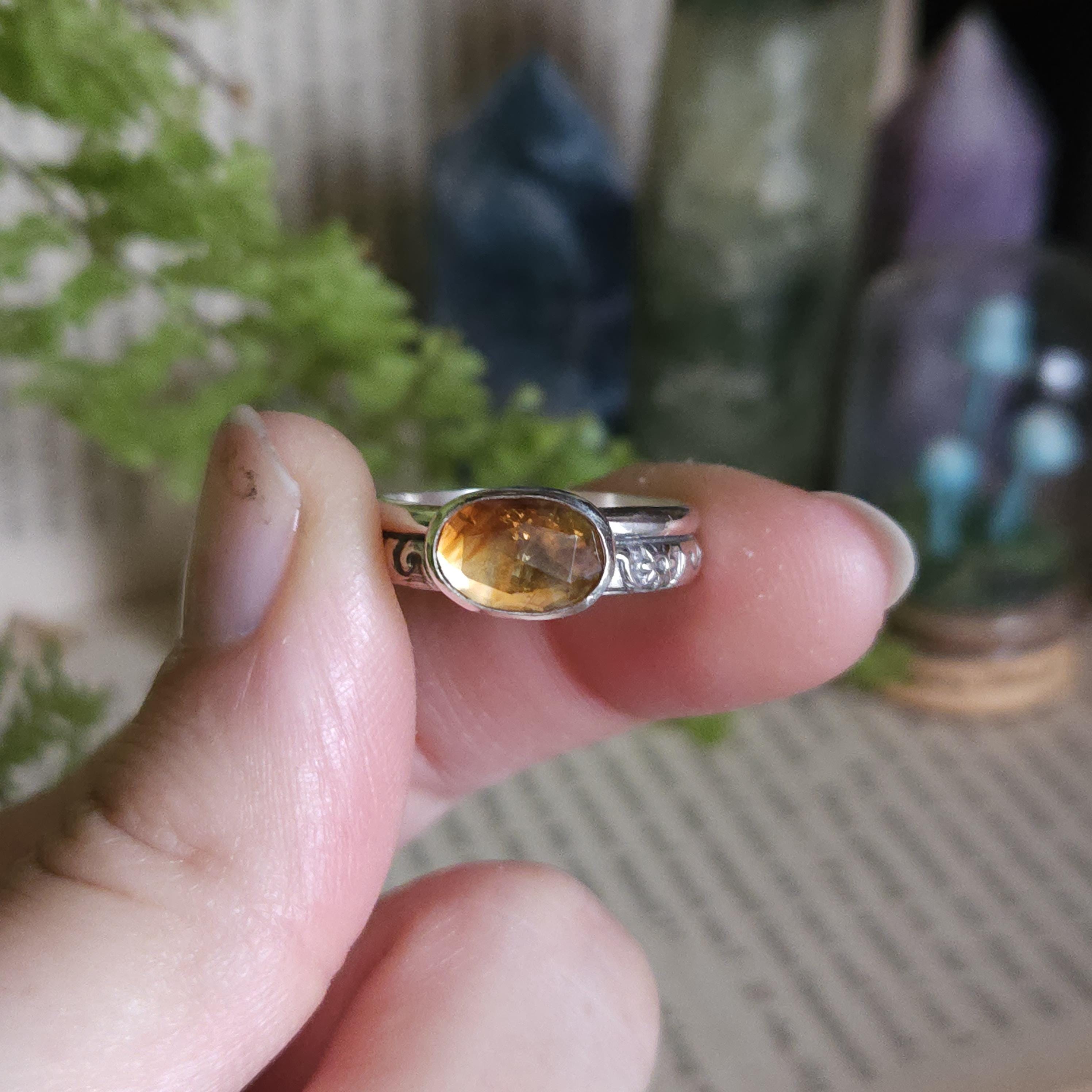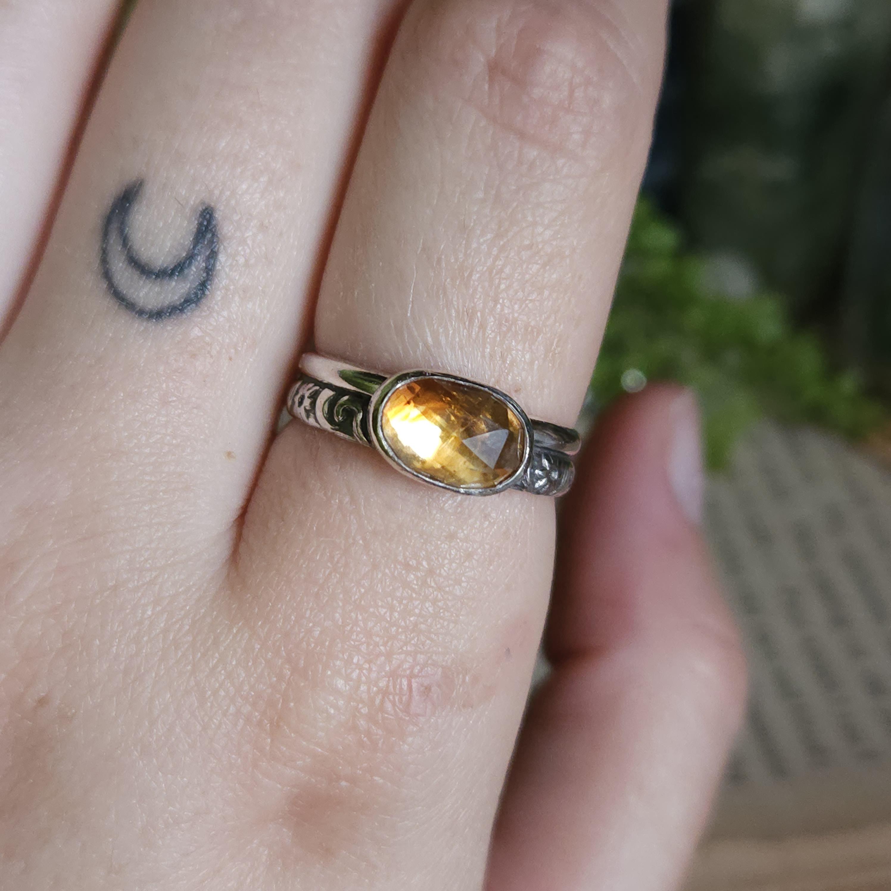 One of a kind handcrafted gemstone ring made using sterling silver and natural citrine