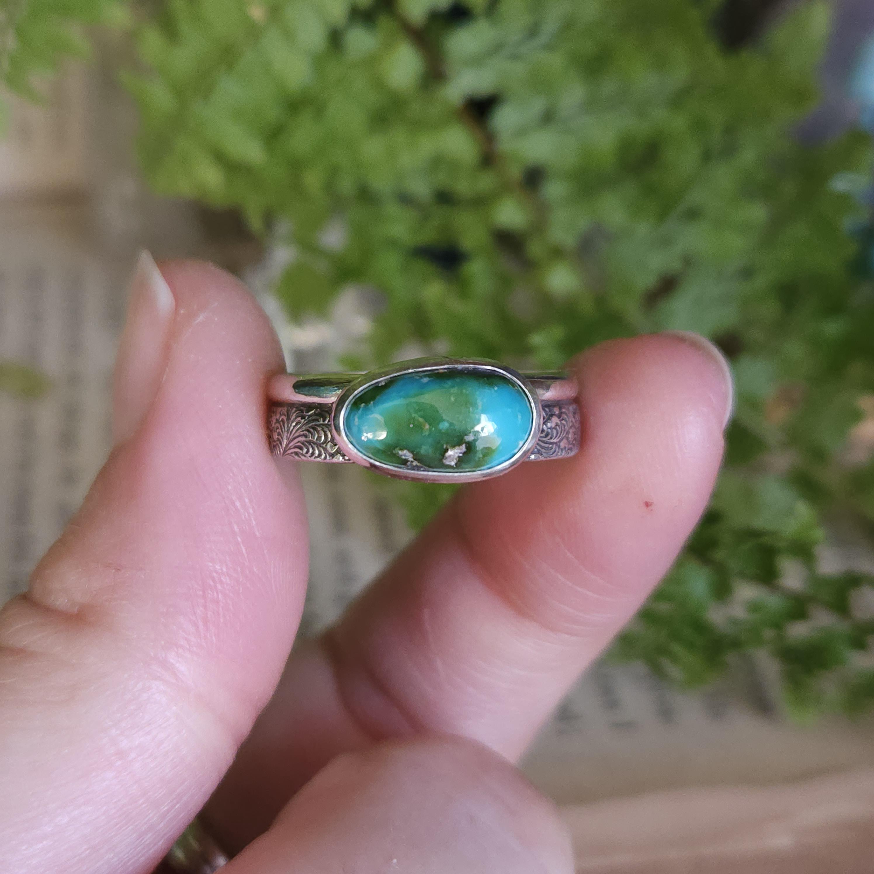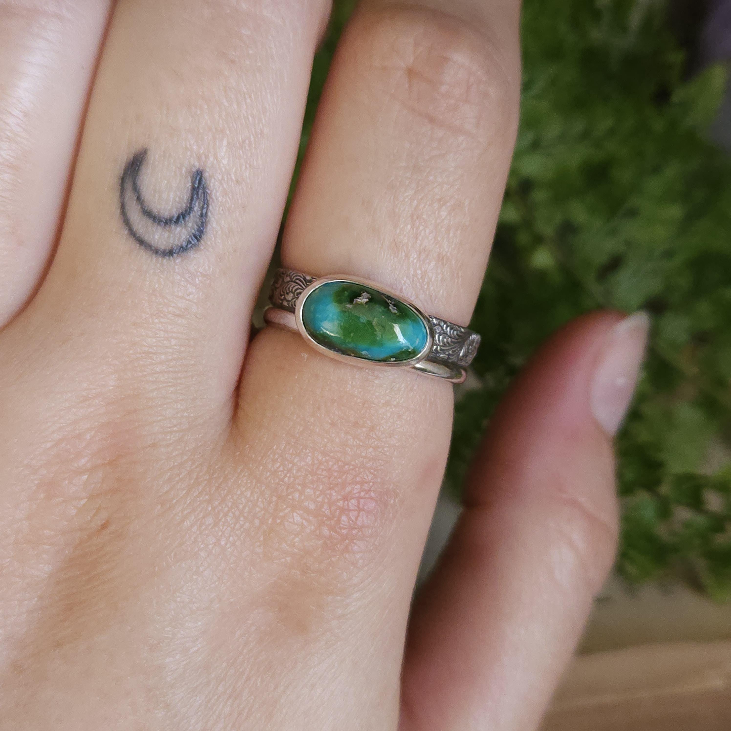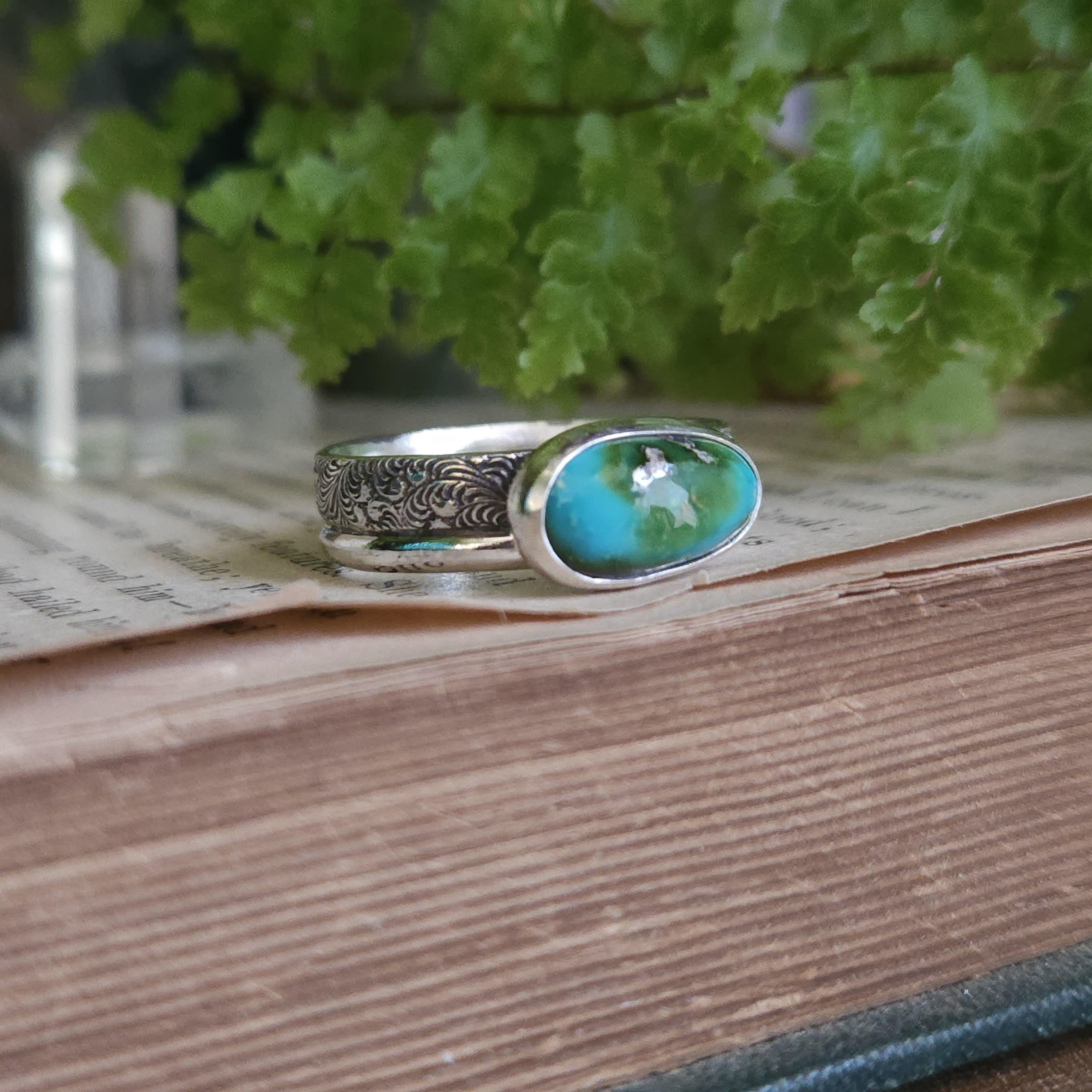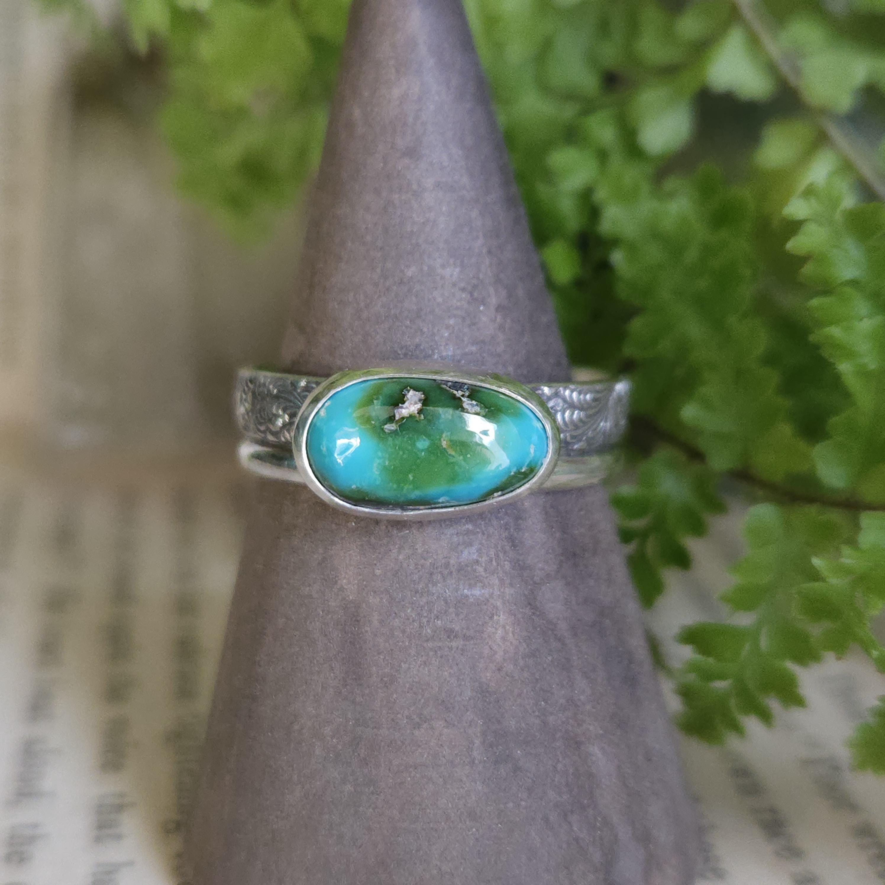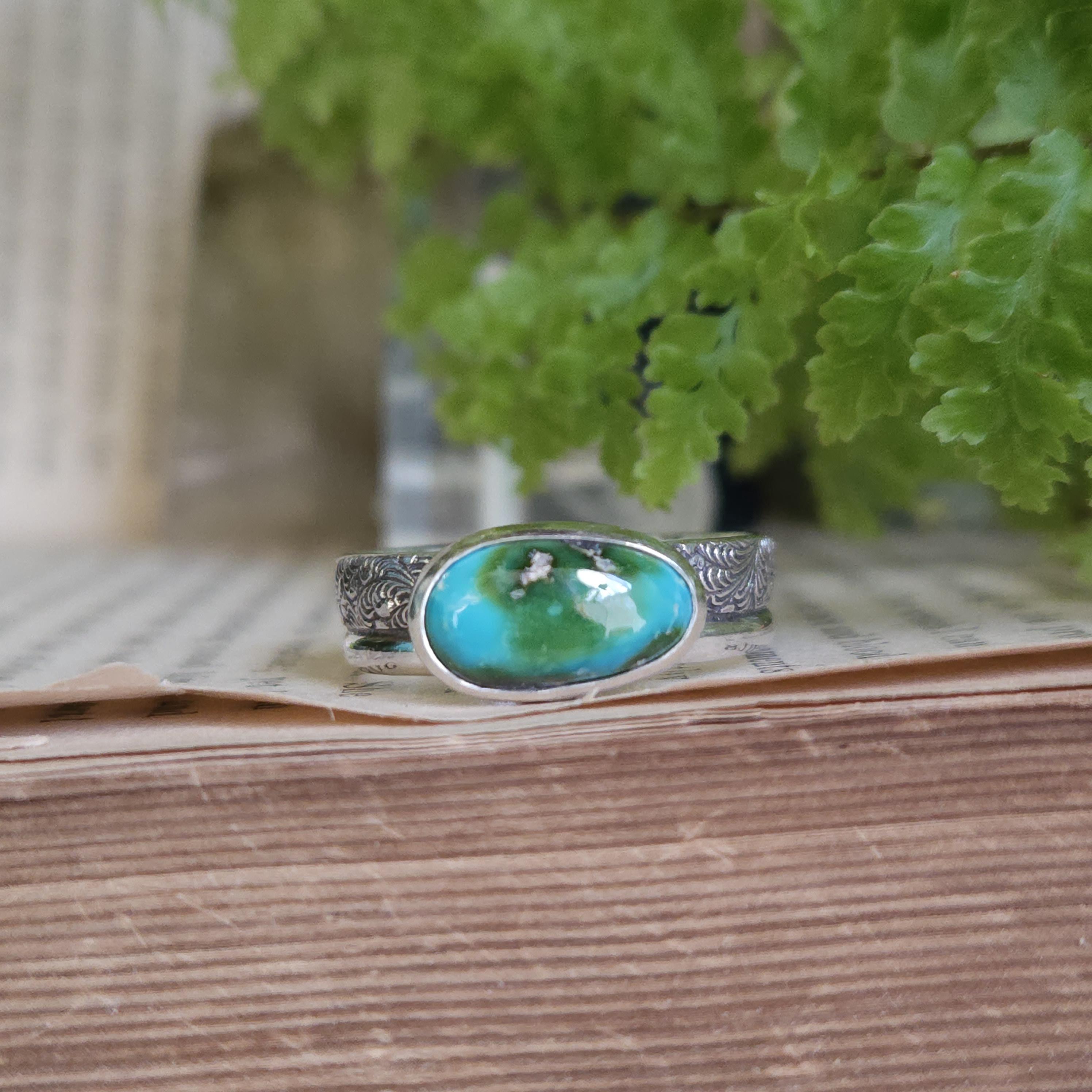 One of a kind handcrafted gemstone ring made using sterling silver and Sonoran gold turquoise