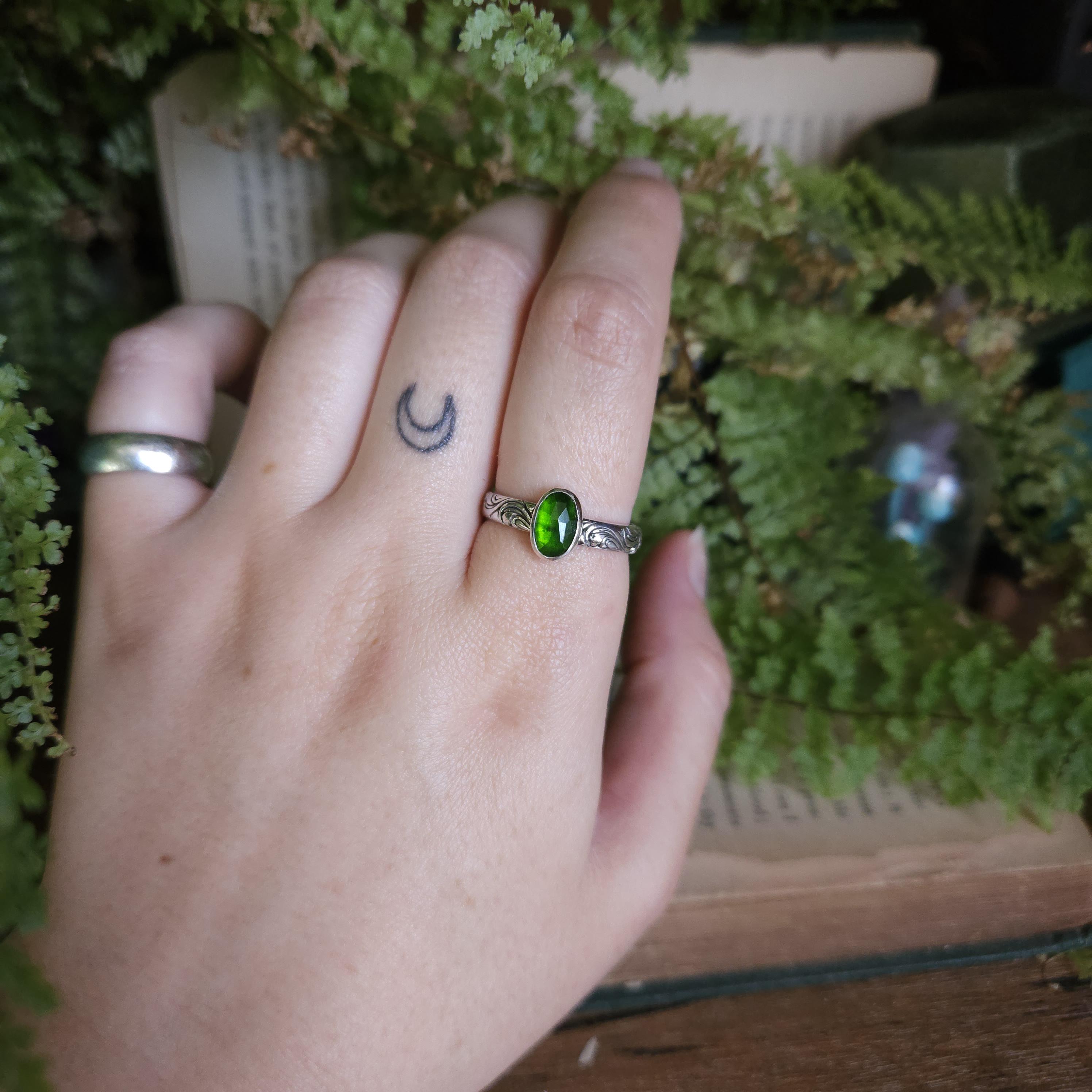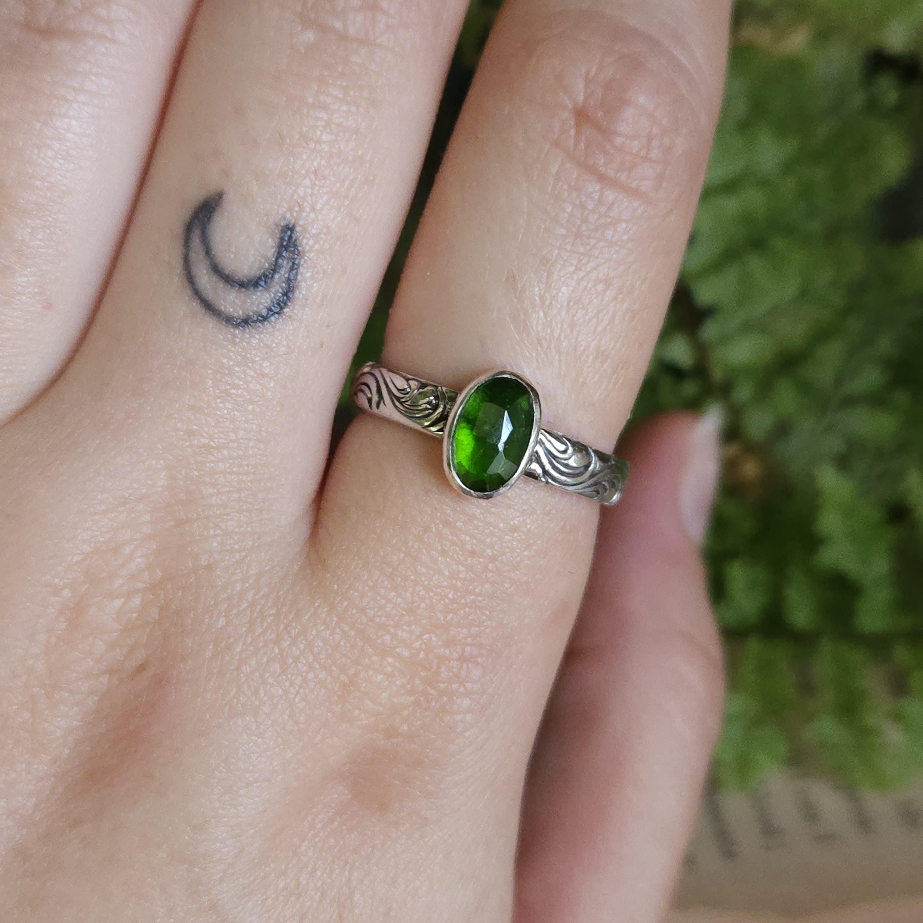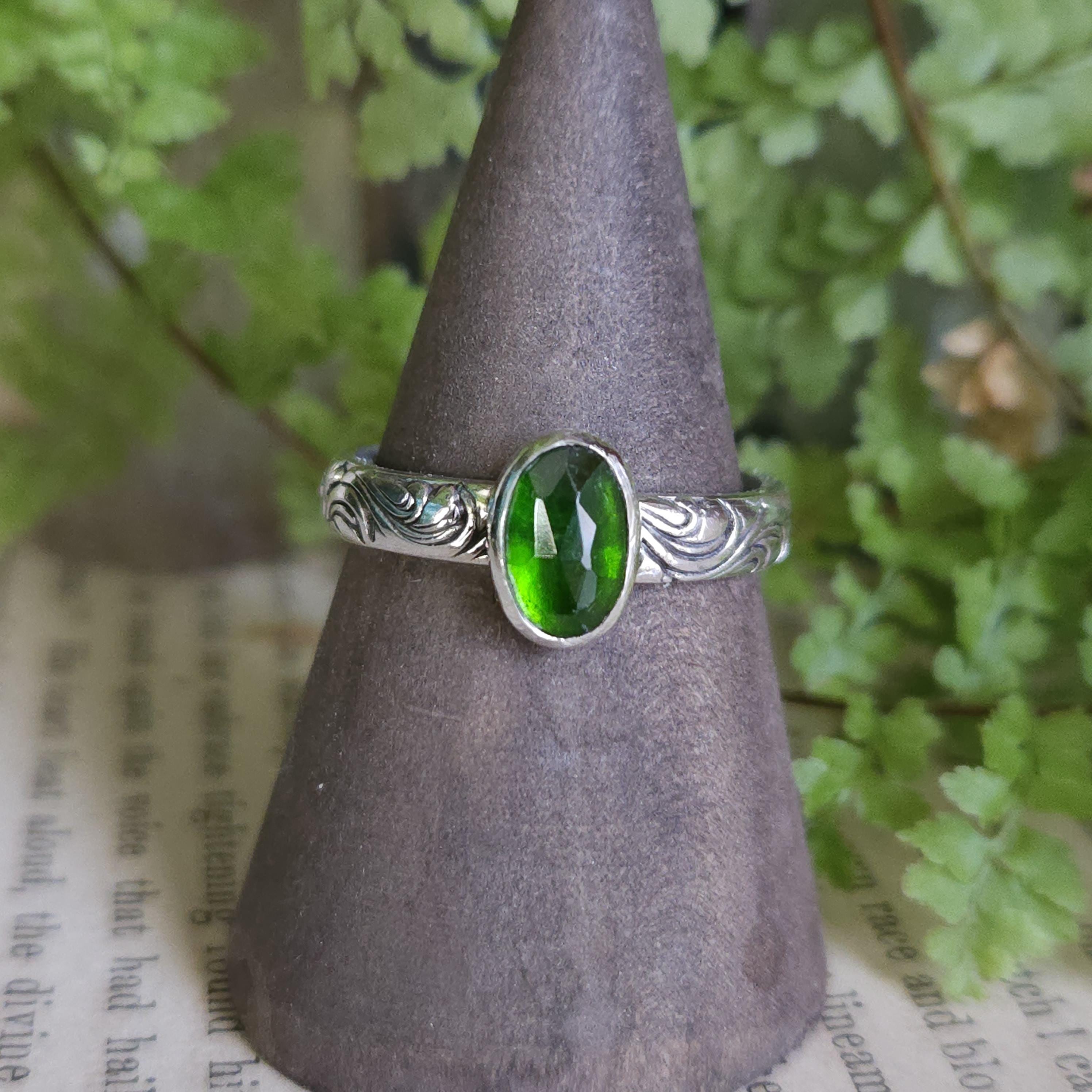 One of a kind handcrafted gemstone ring made using sterling silver and green chrome tourmaline