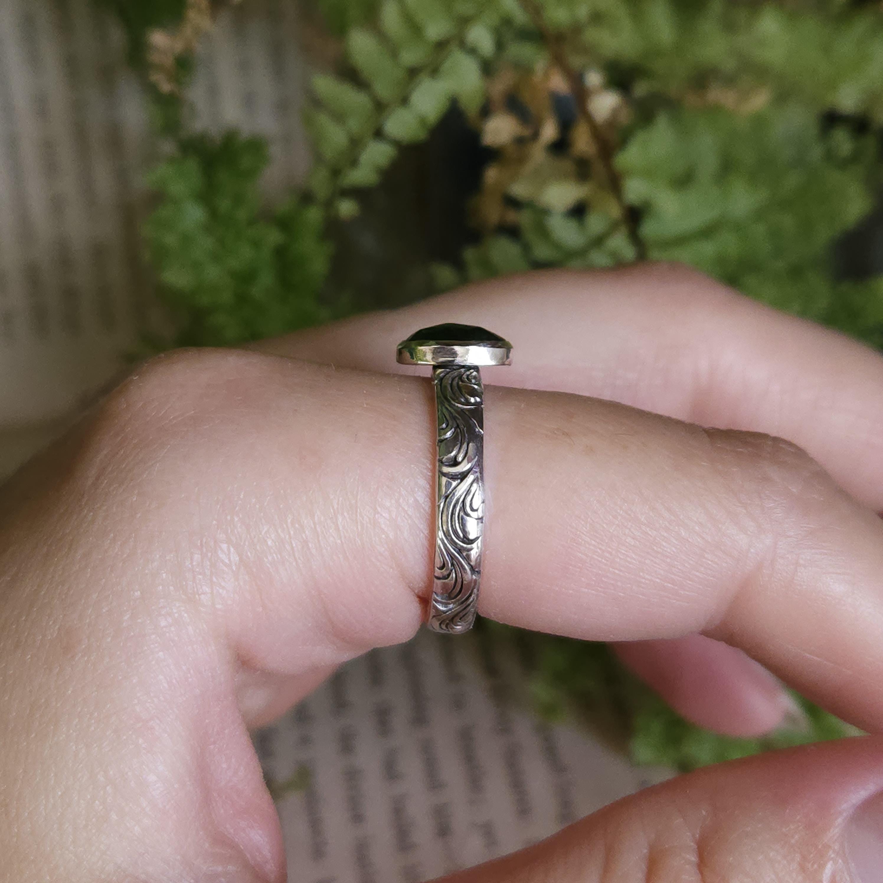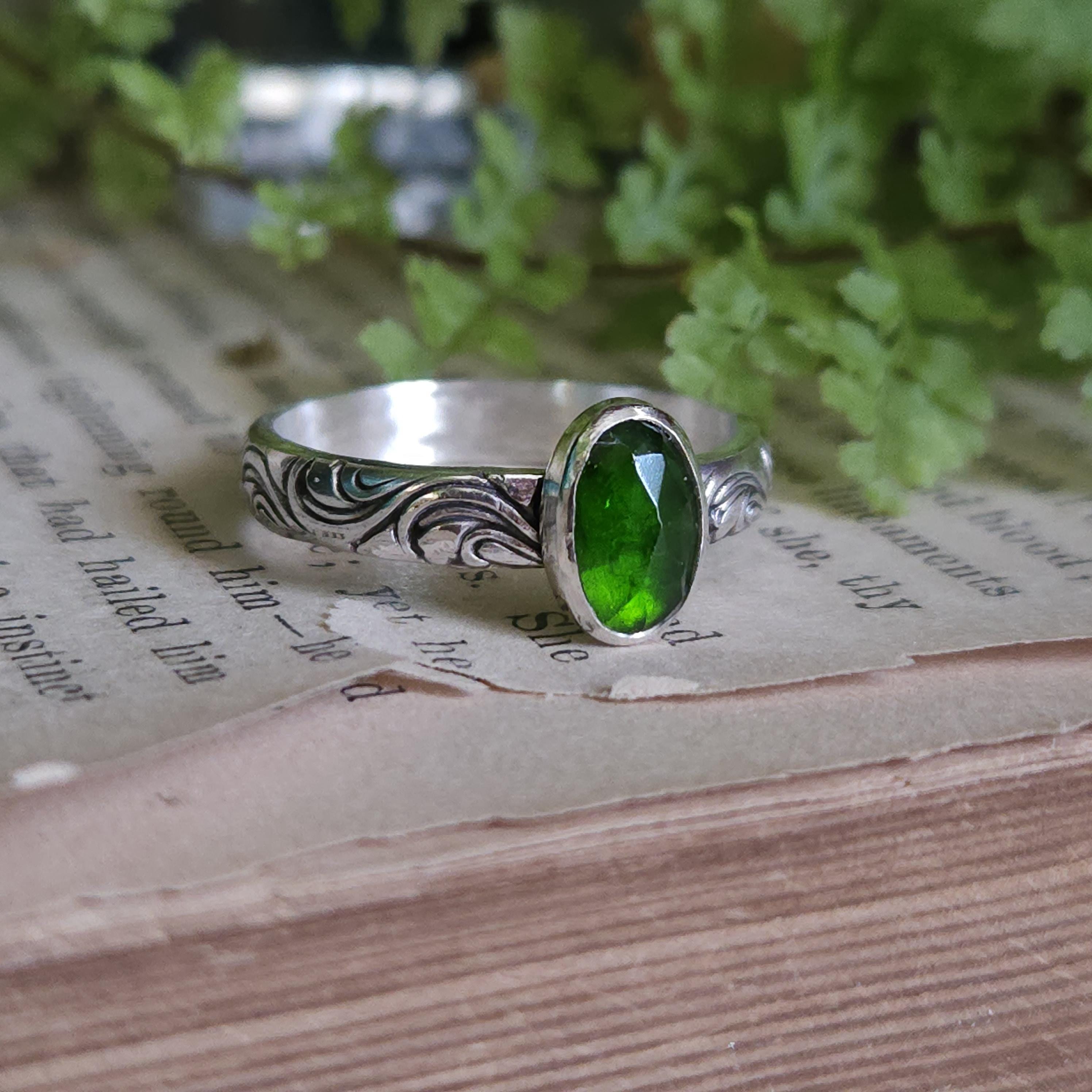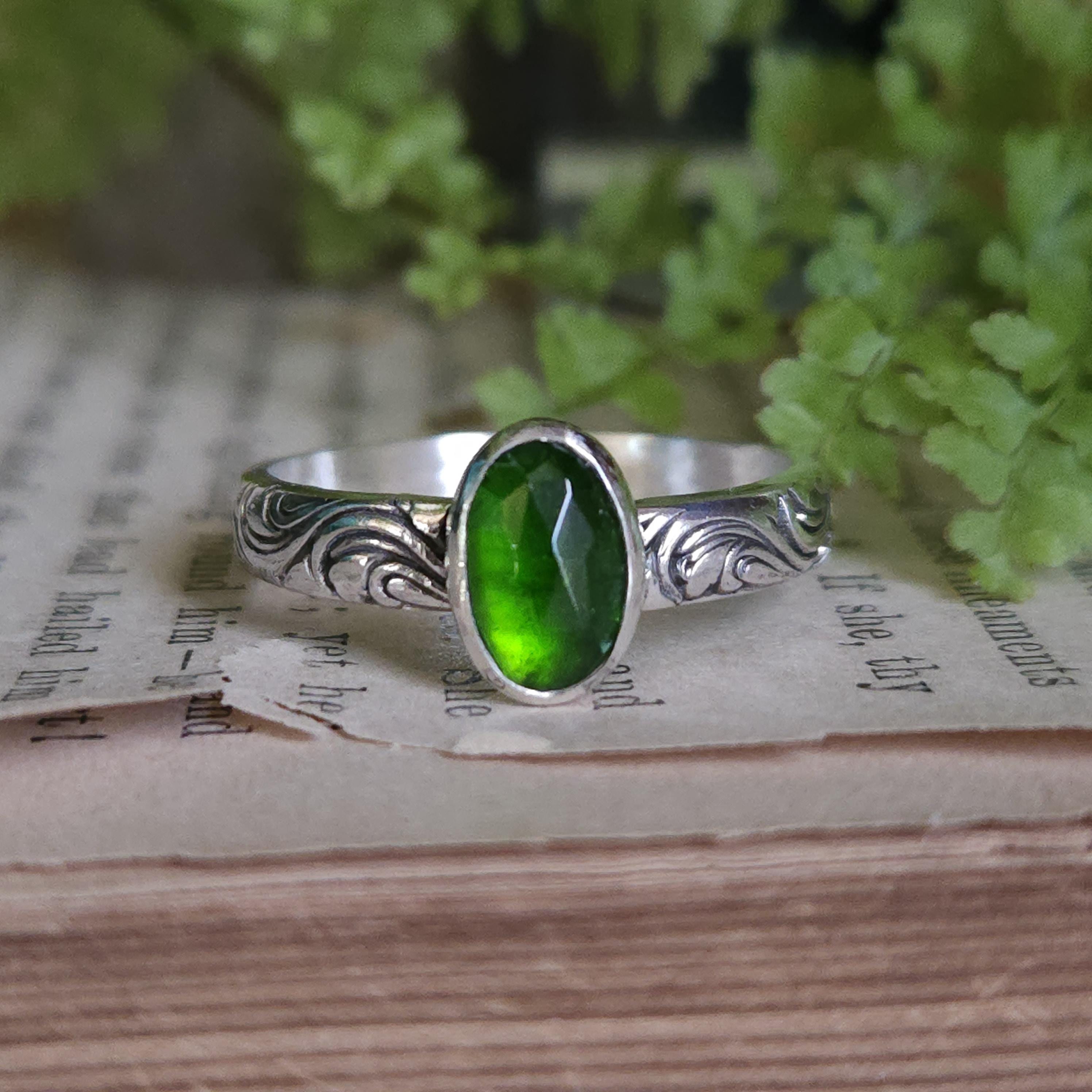 One of a kind handcrafted gemstone ring made using sterling silver and green chrome tourmaline