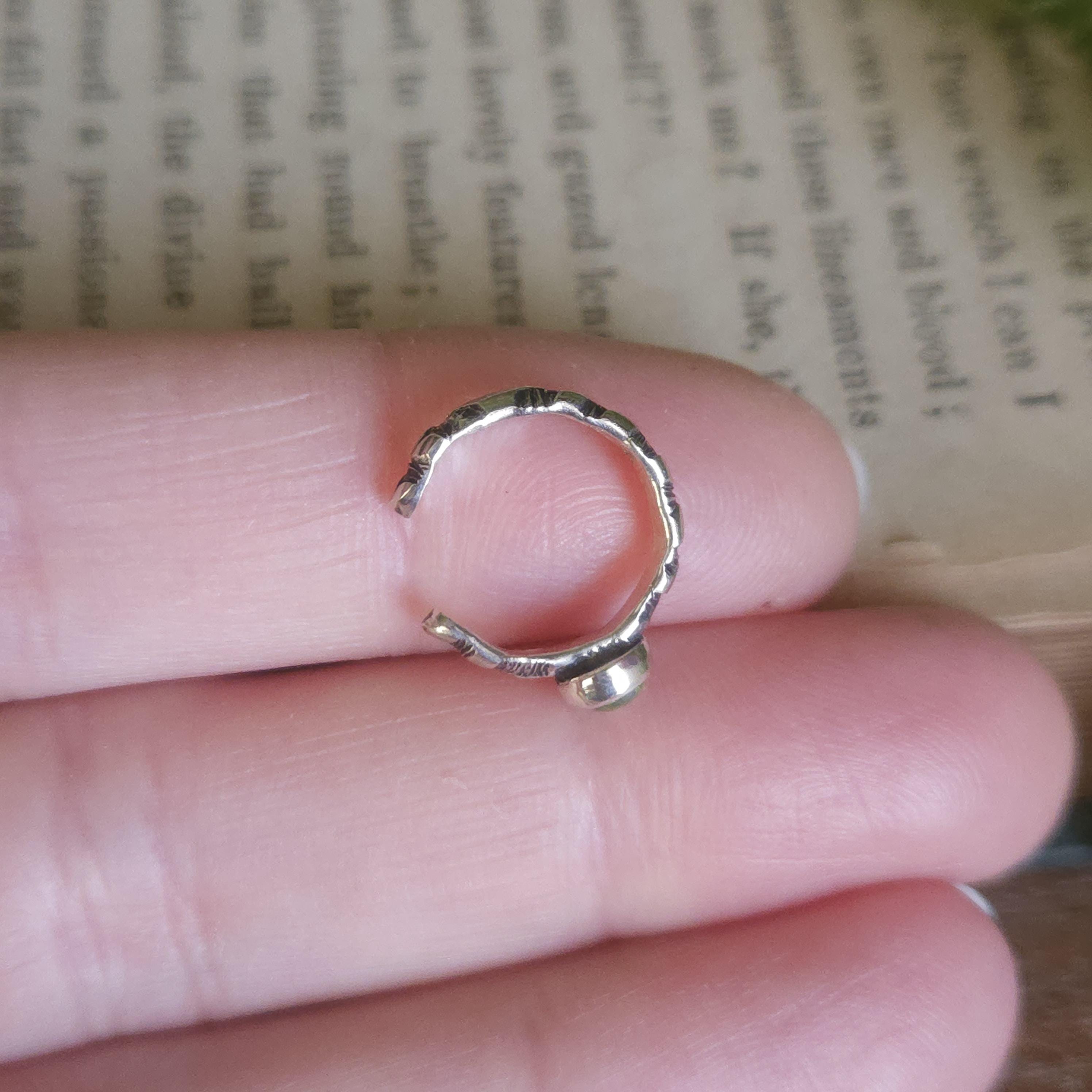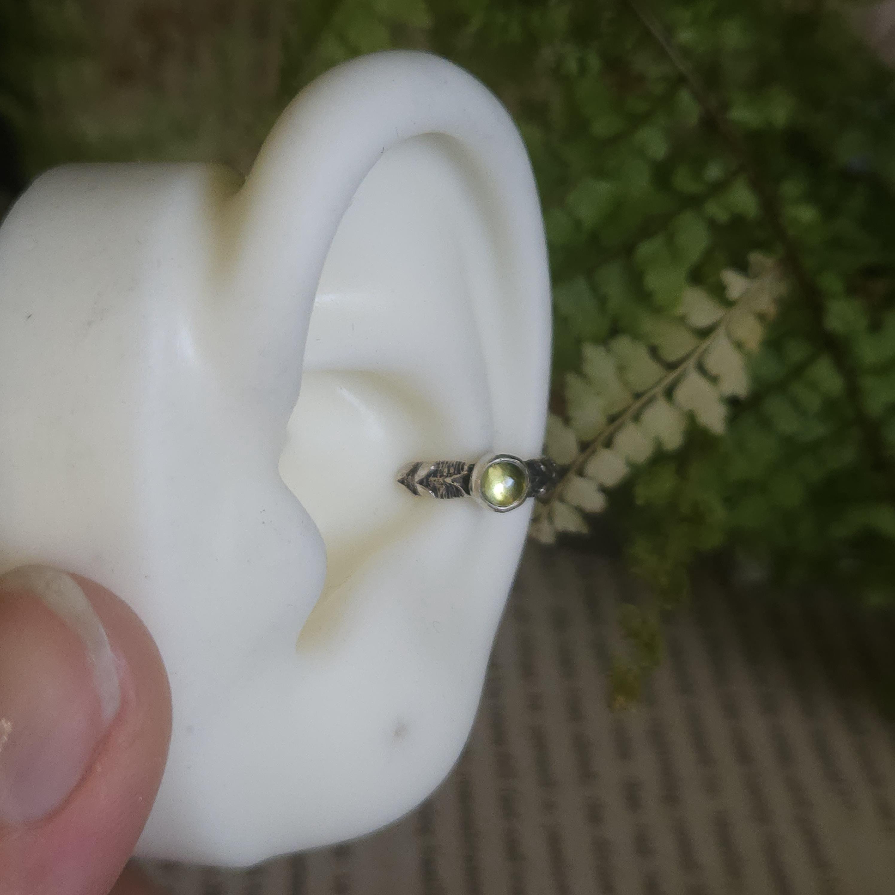 Artisan handcrafted floral ear cuff made with sterling silver and peridot