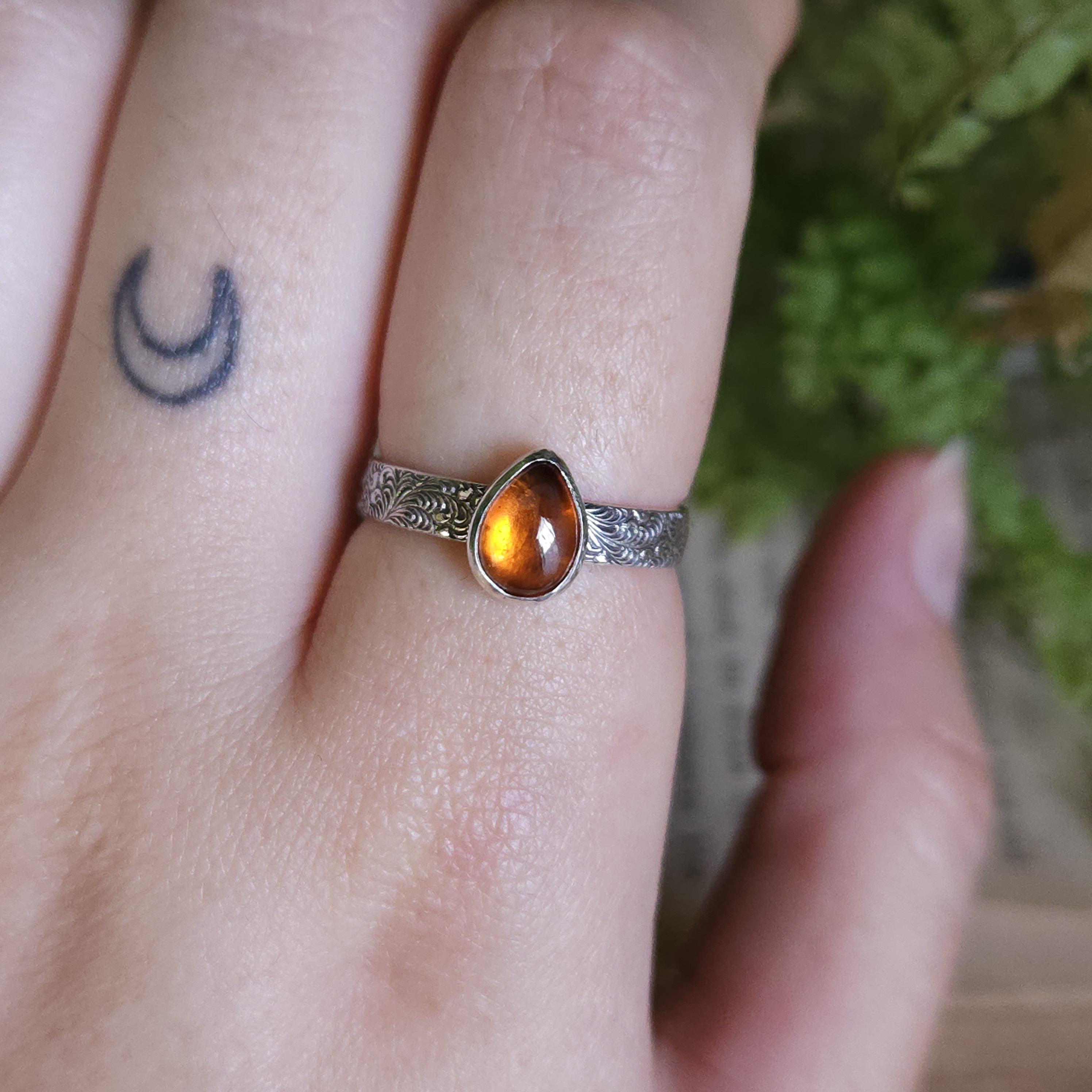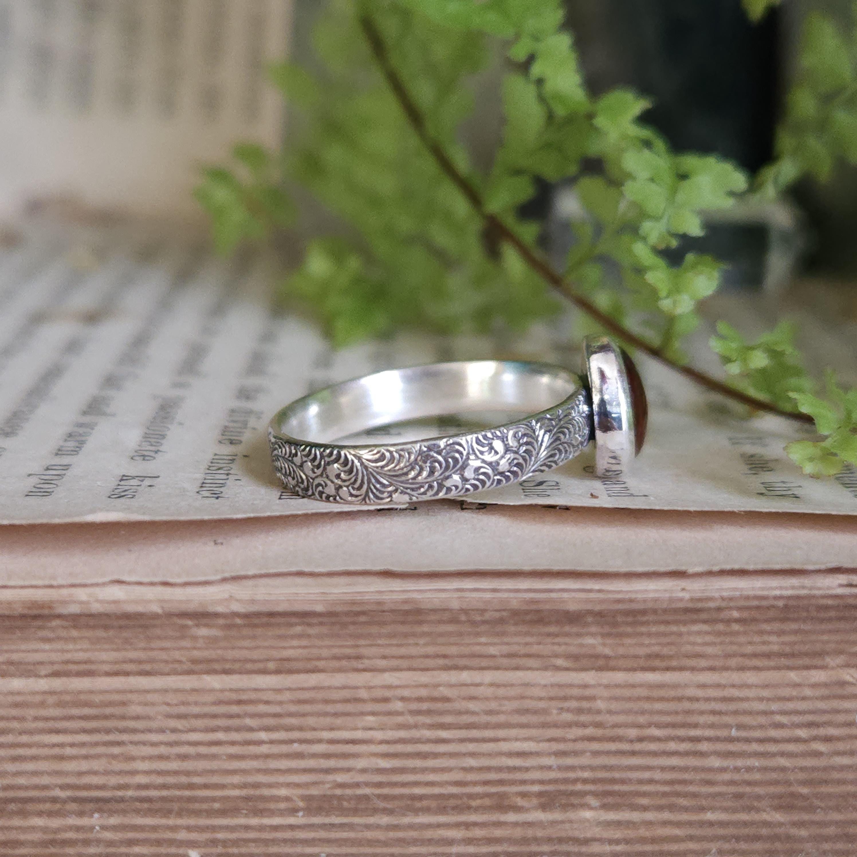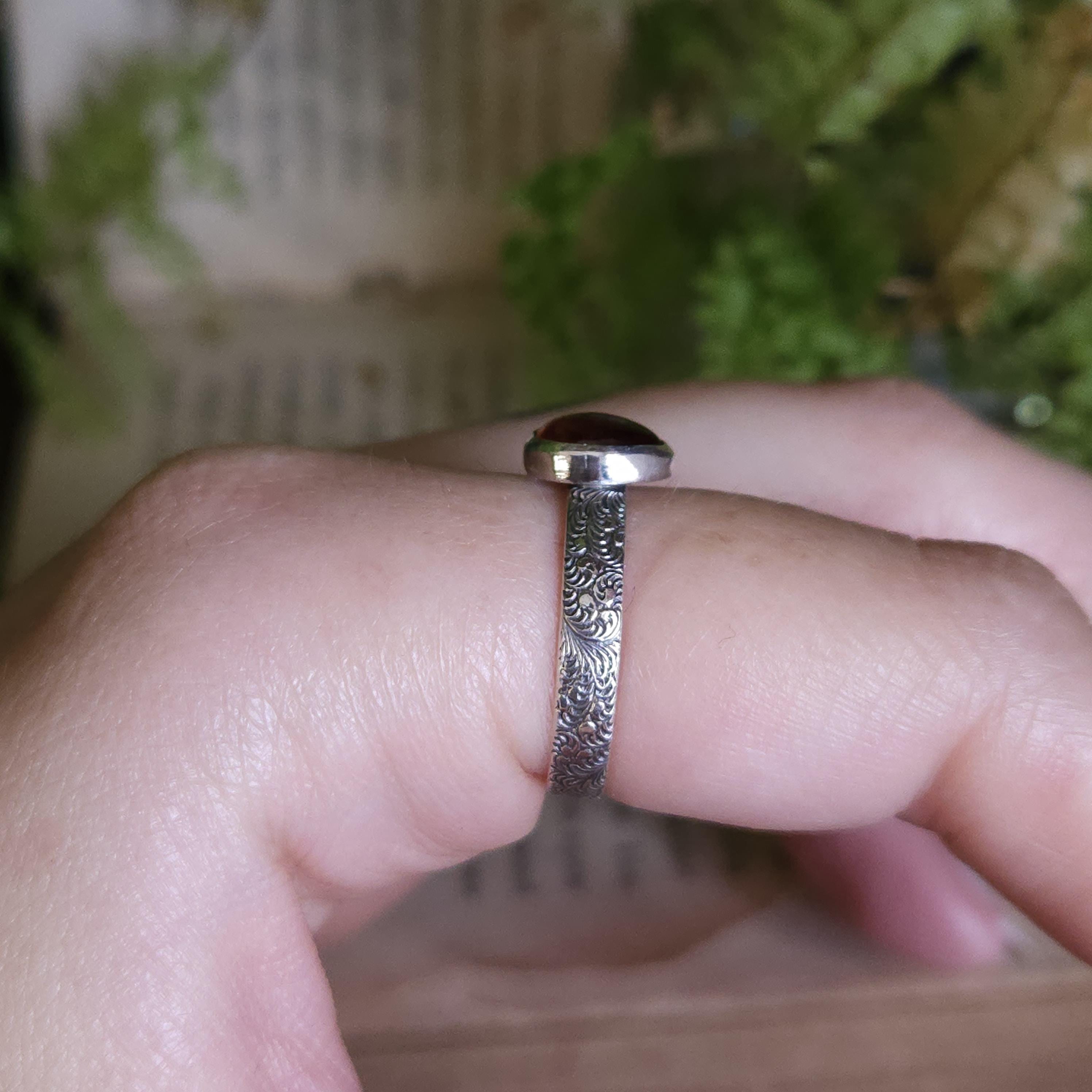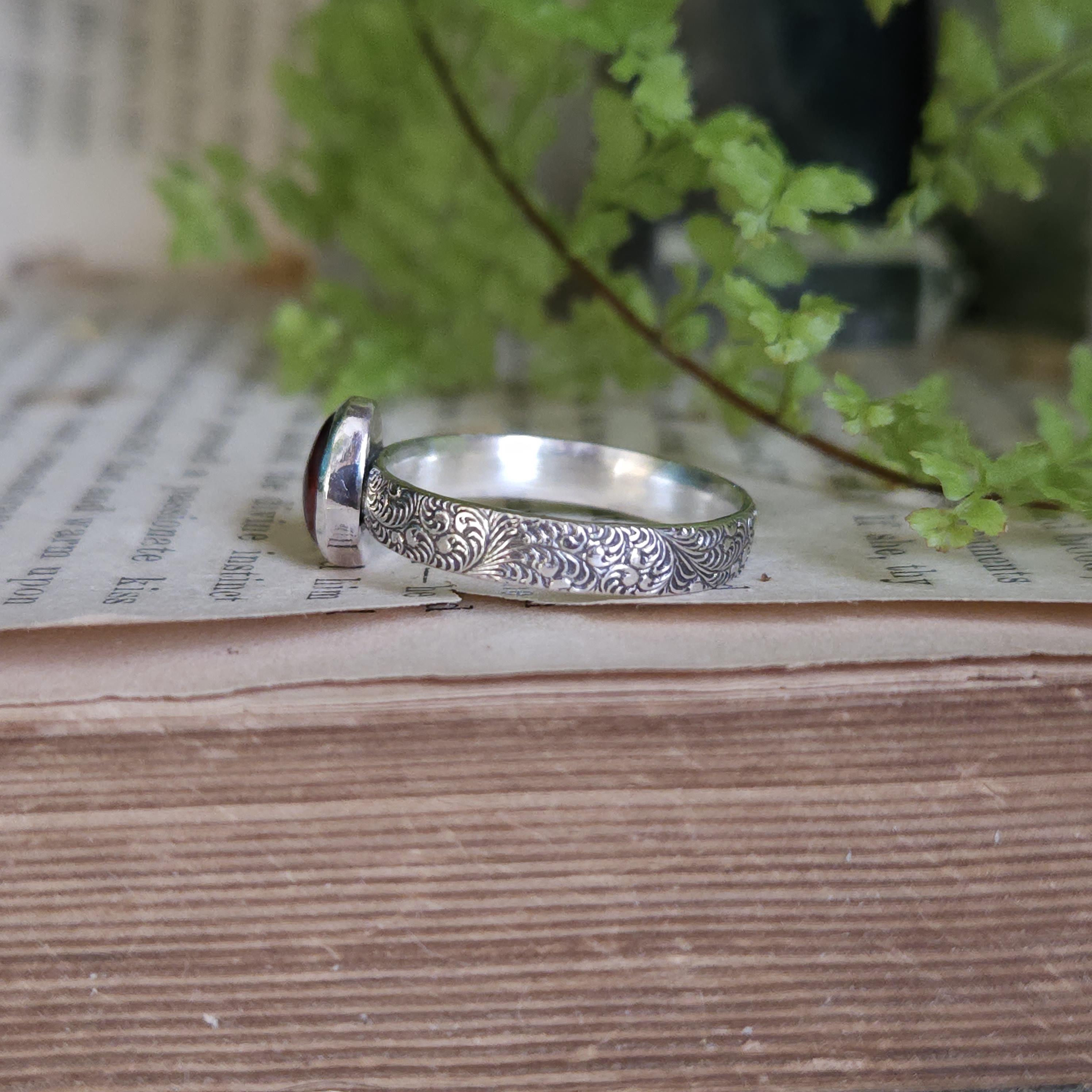 One of a kind handcrafted gemstone ring made using sterling silver and garnet