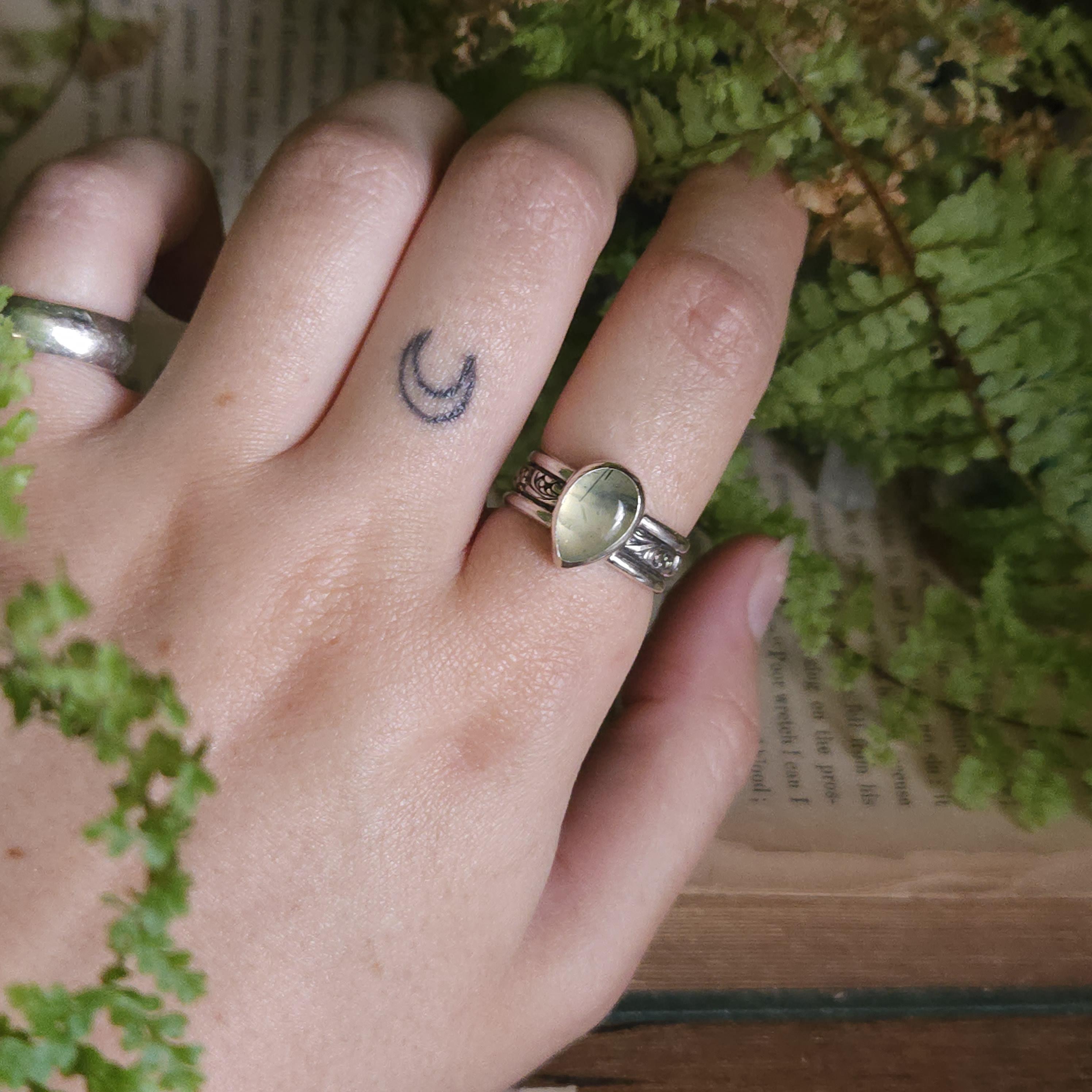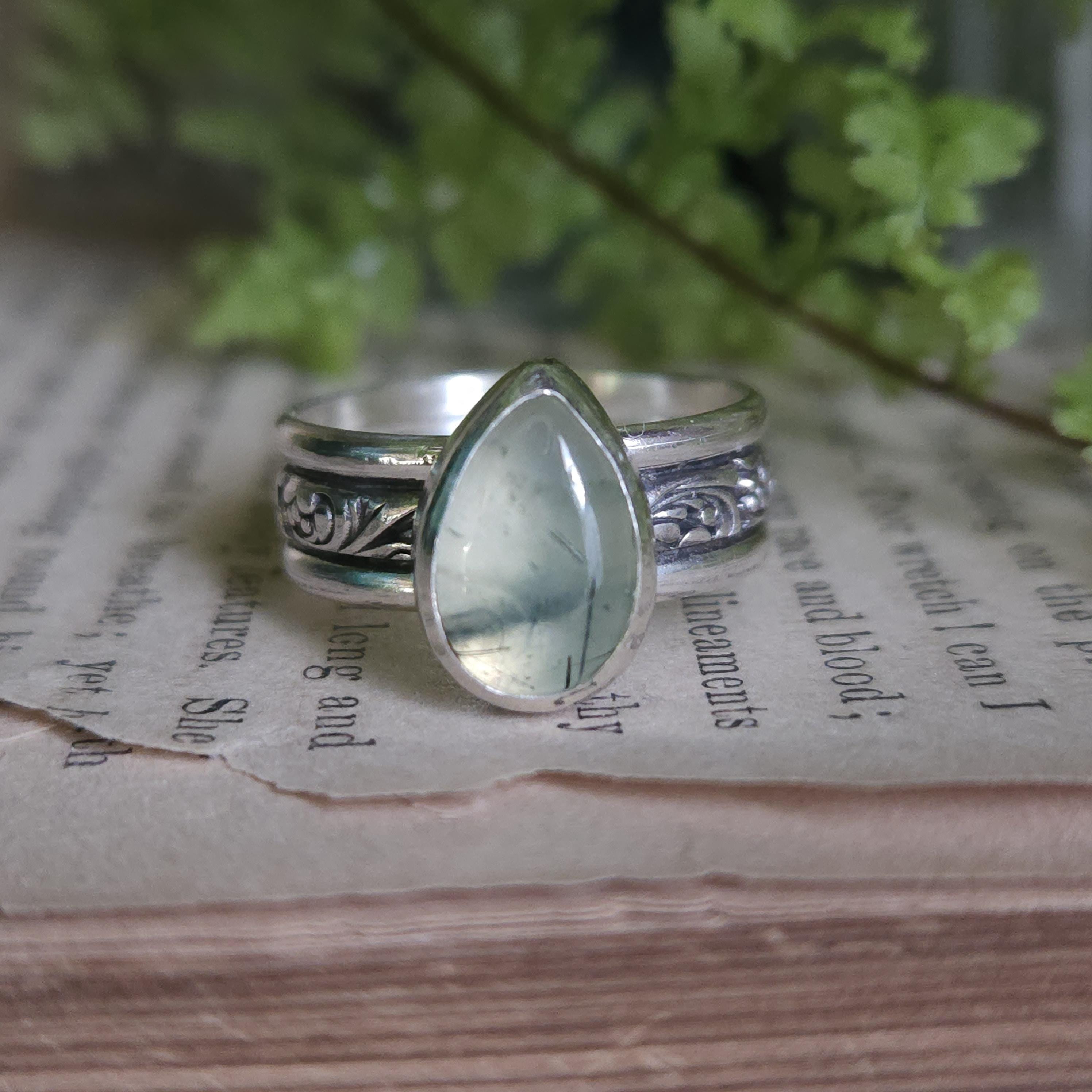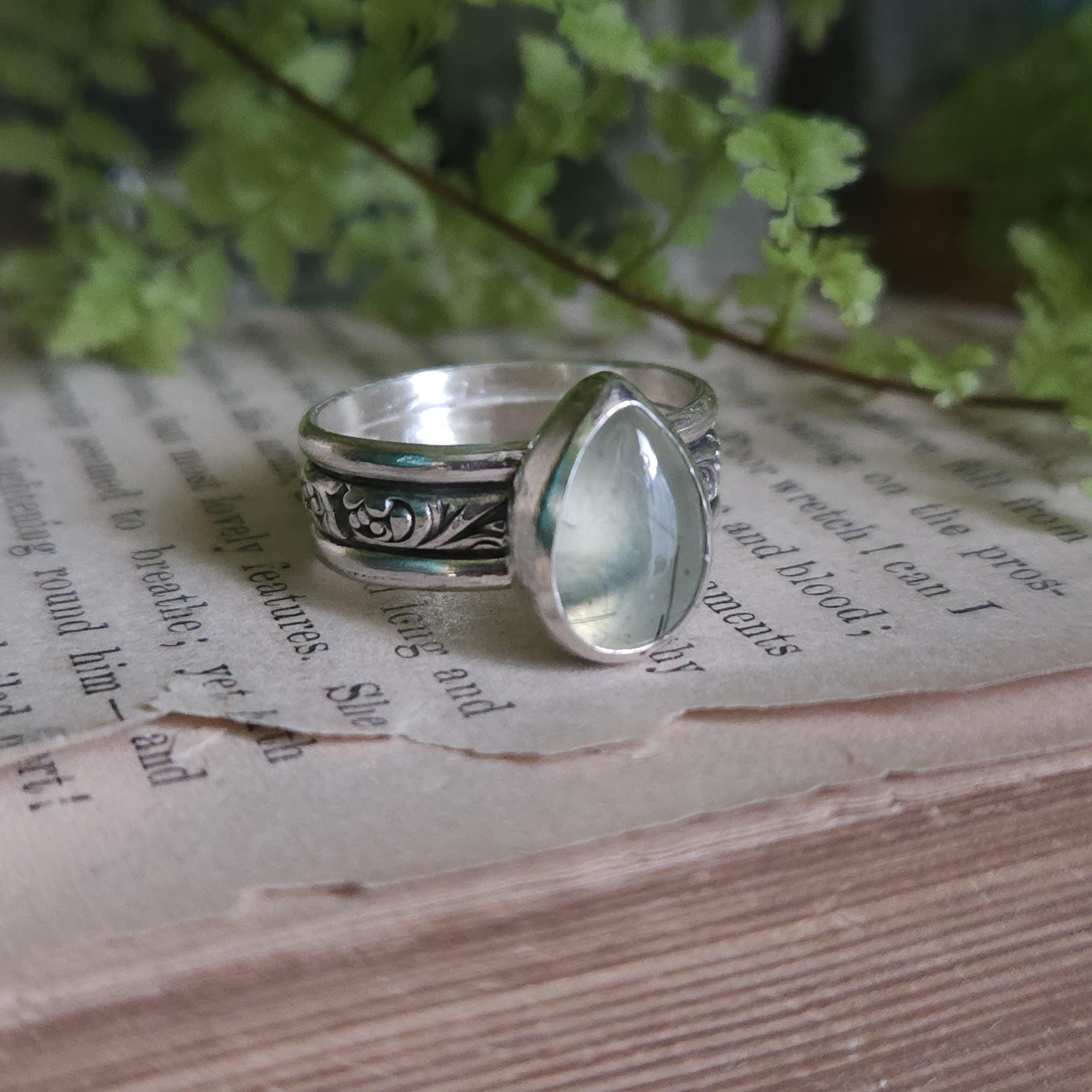 One of a kind handcrafted gemstone ring made using sterling silver and prehnite