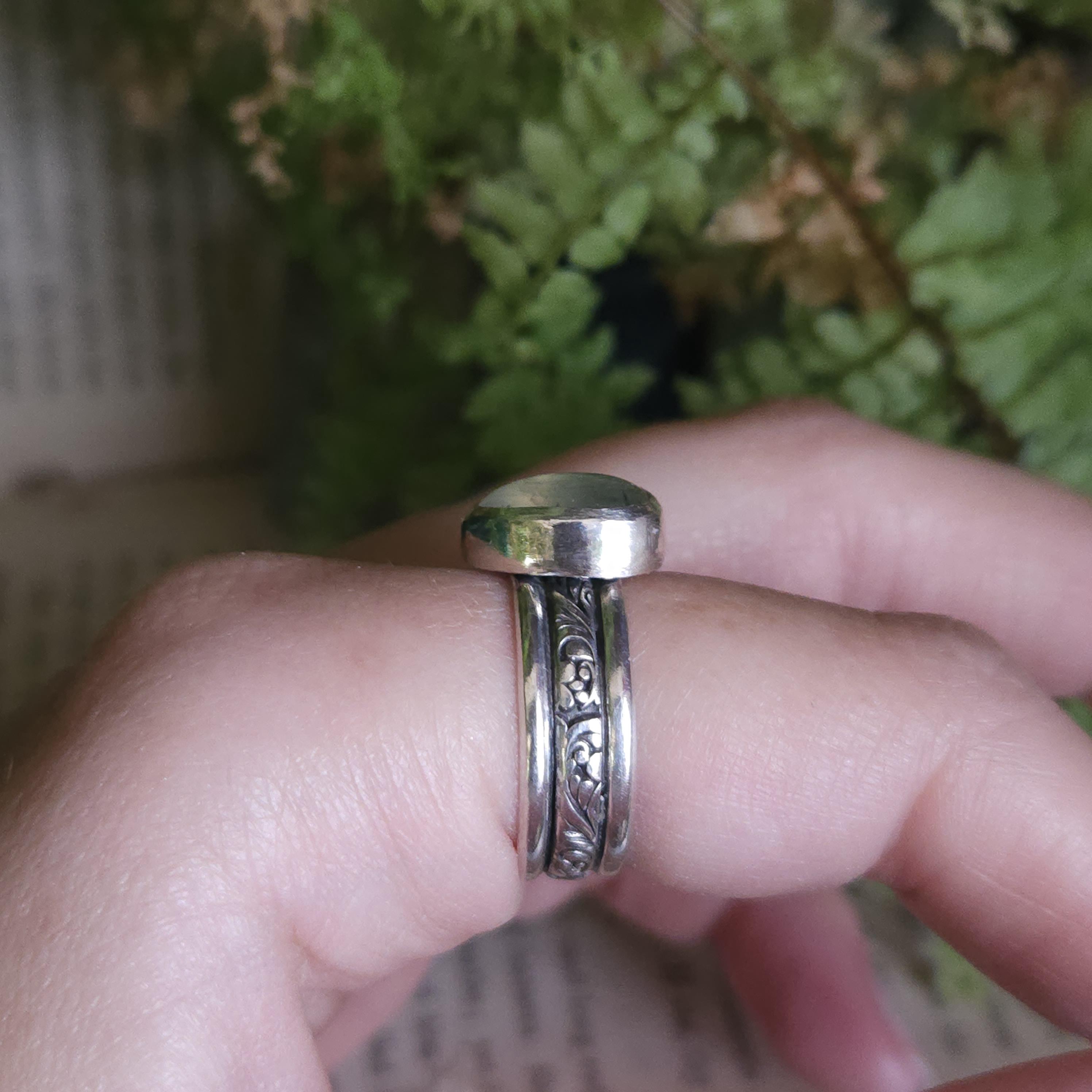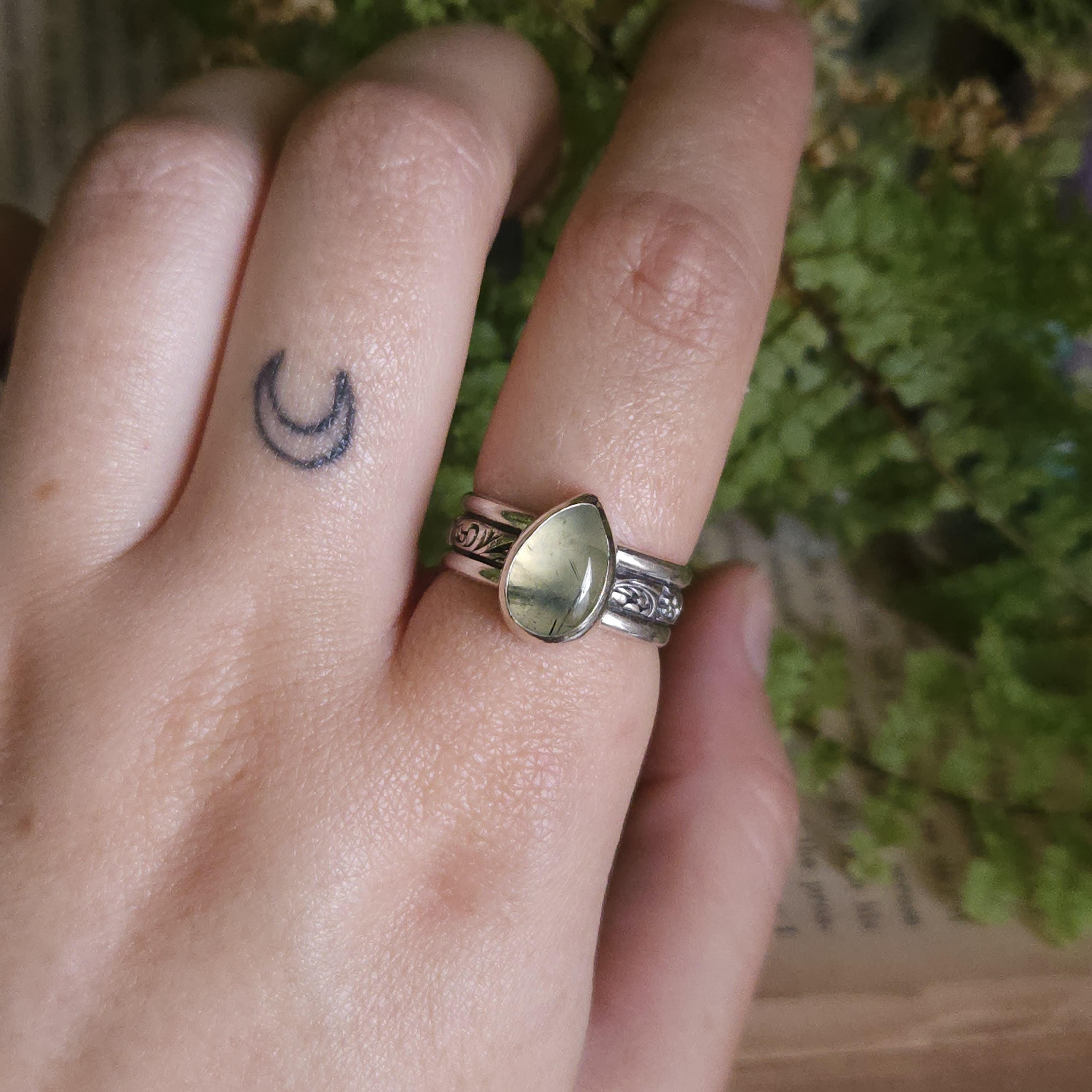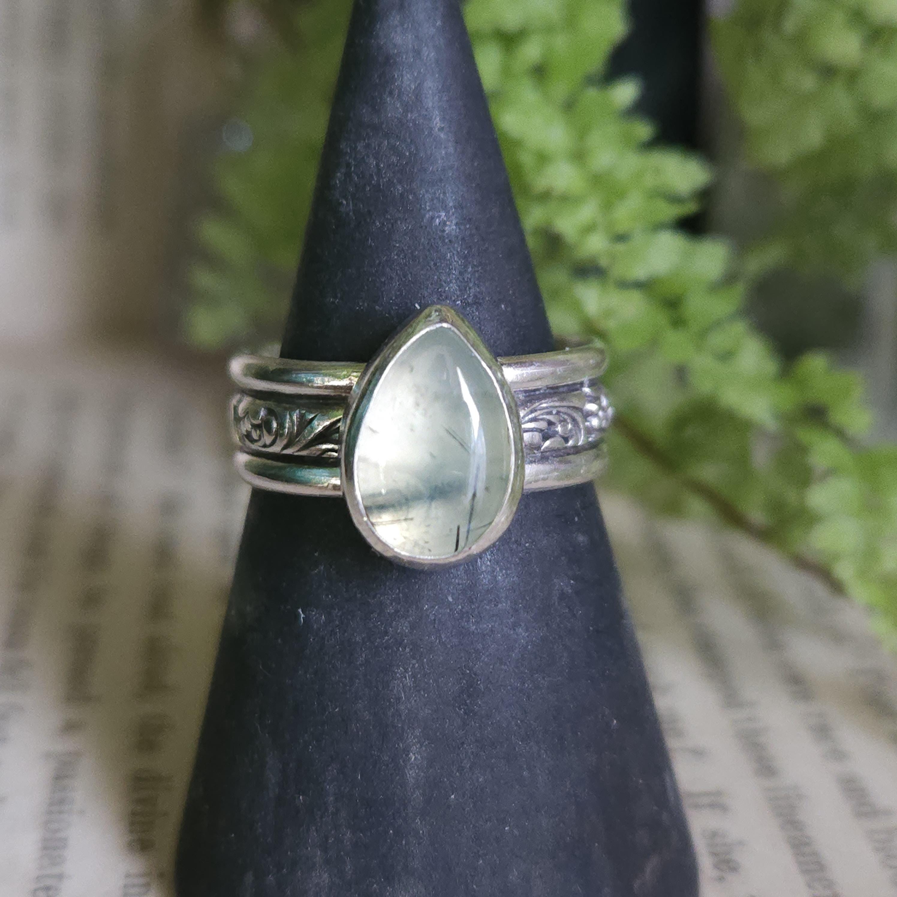 One of a kind handcrafted gemstone ring made using sterling silver and prehnite