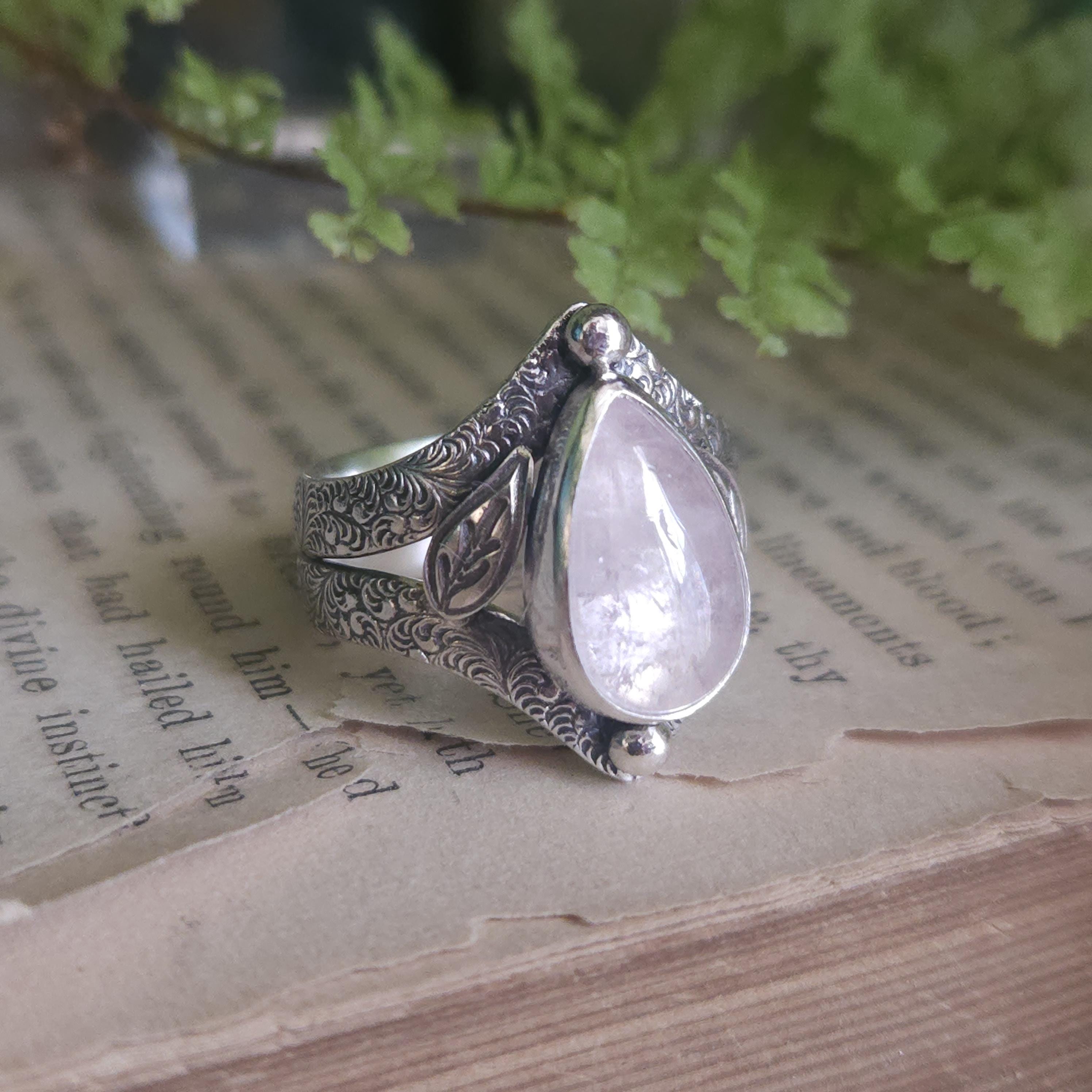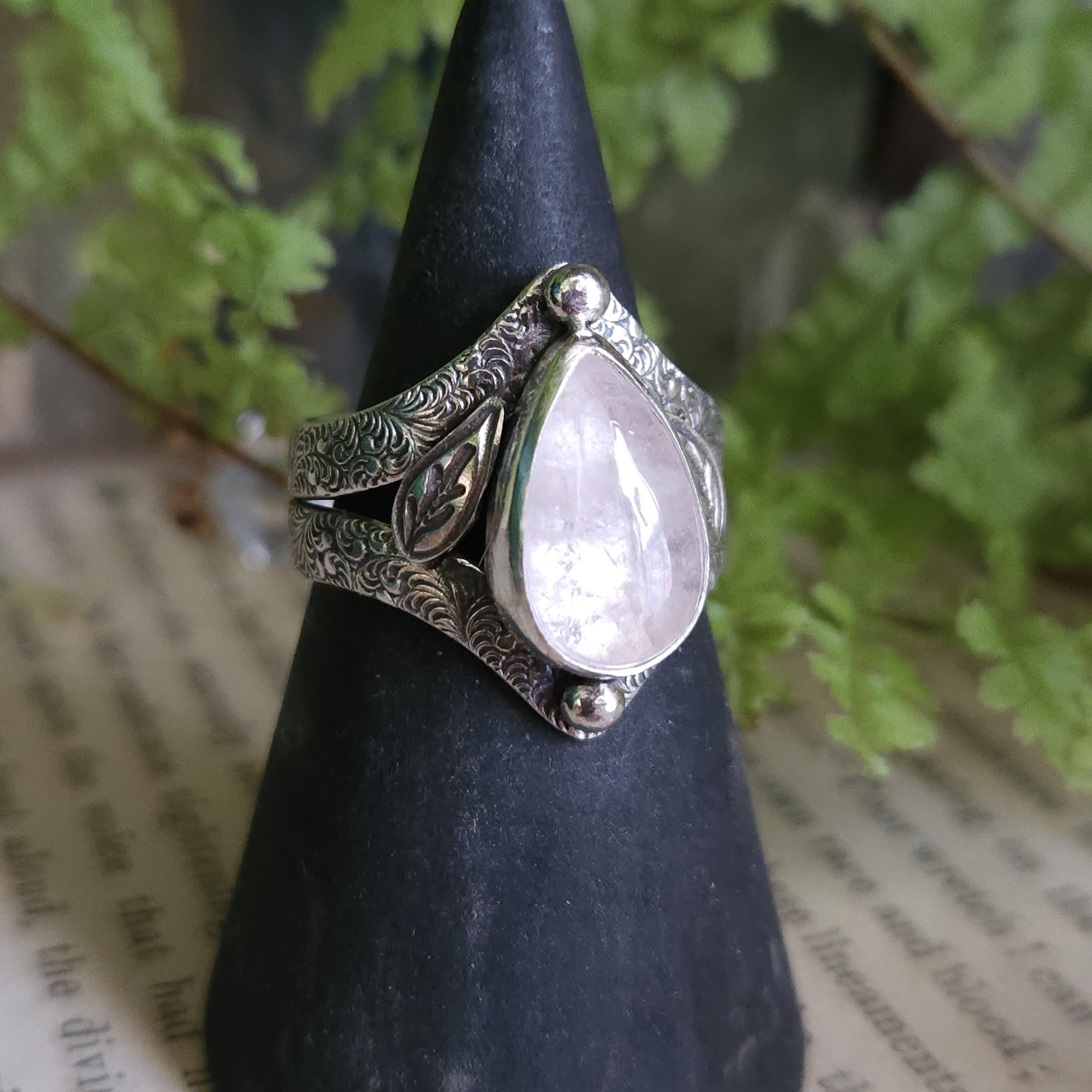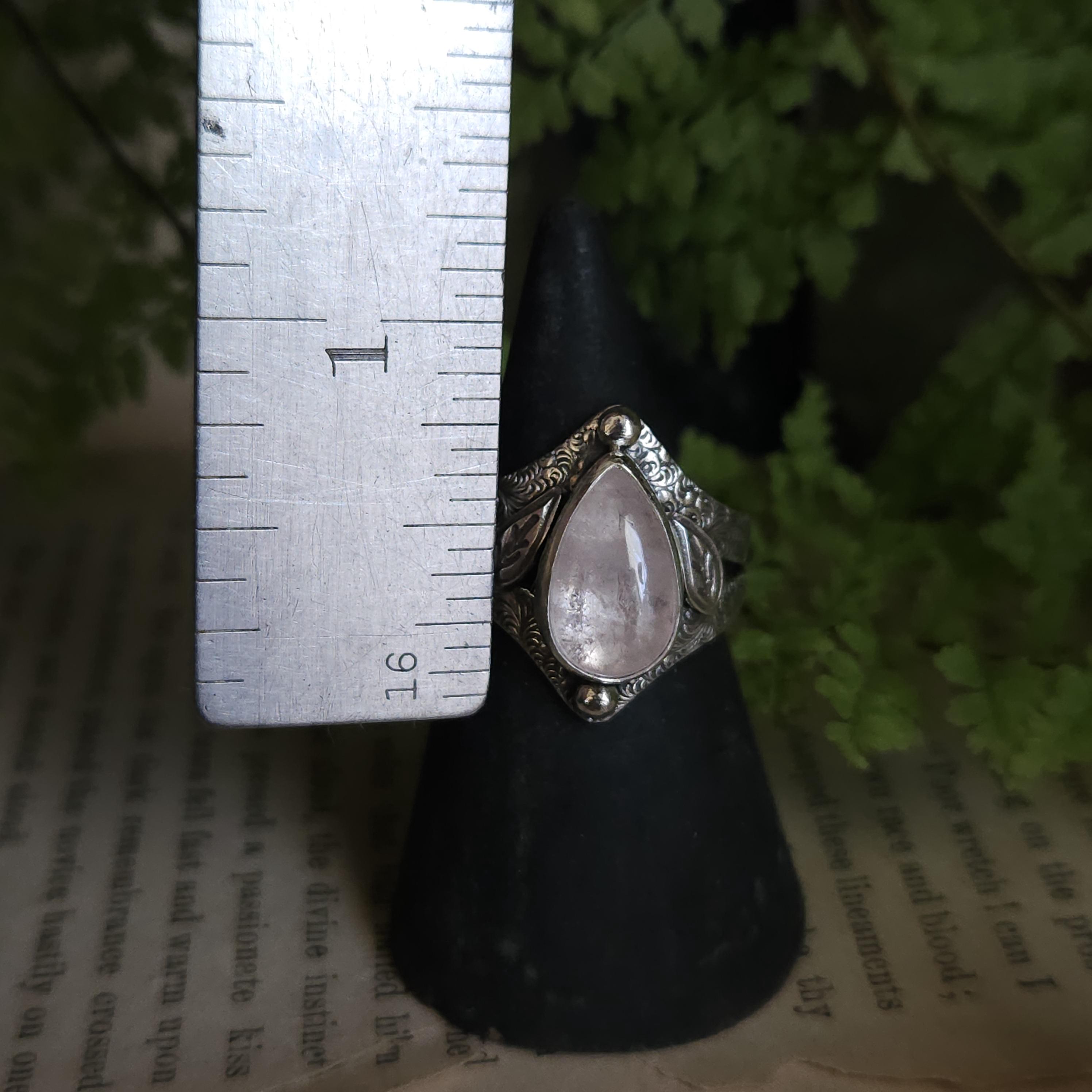 One of a kind handcrafted gemstone ring made using sterling silver and morganite.