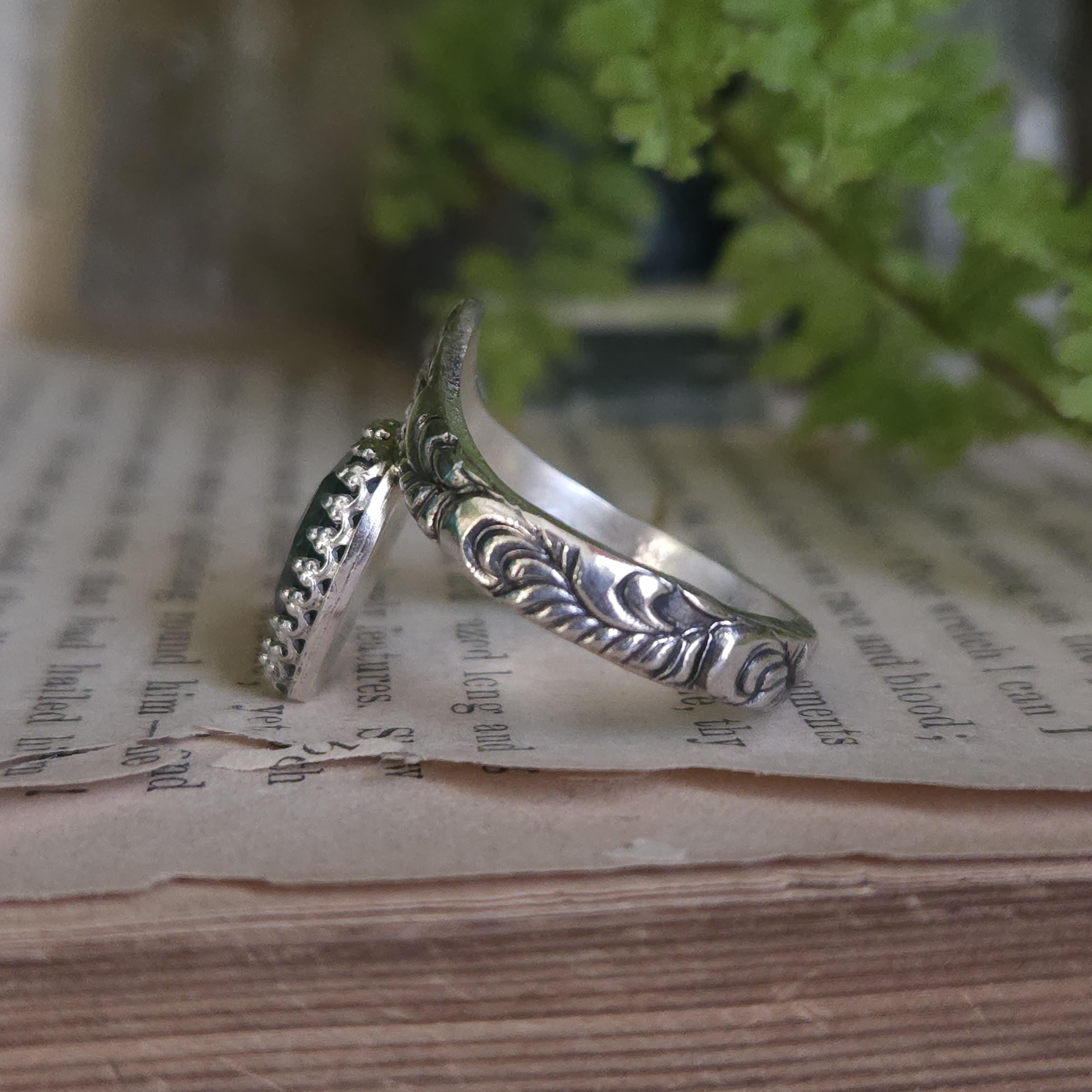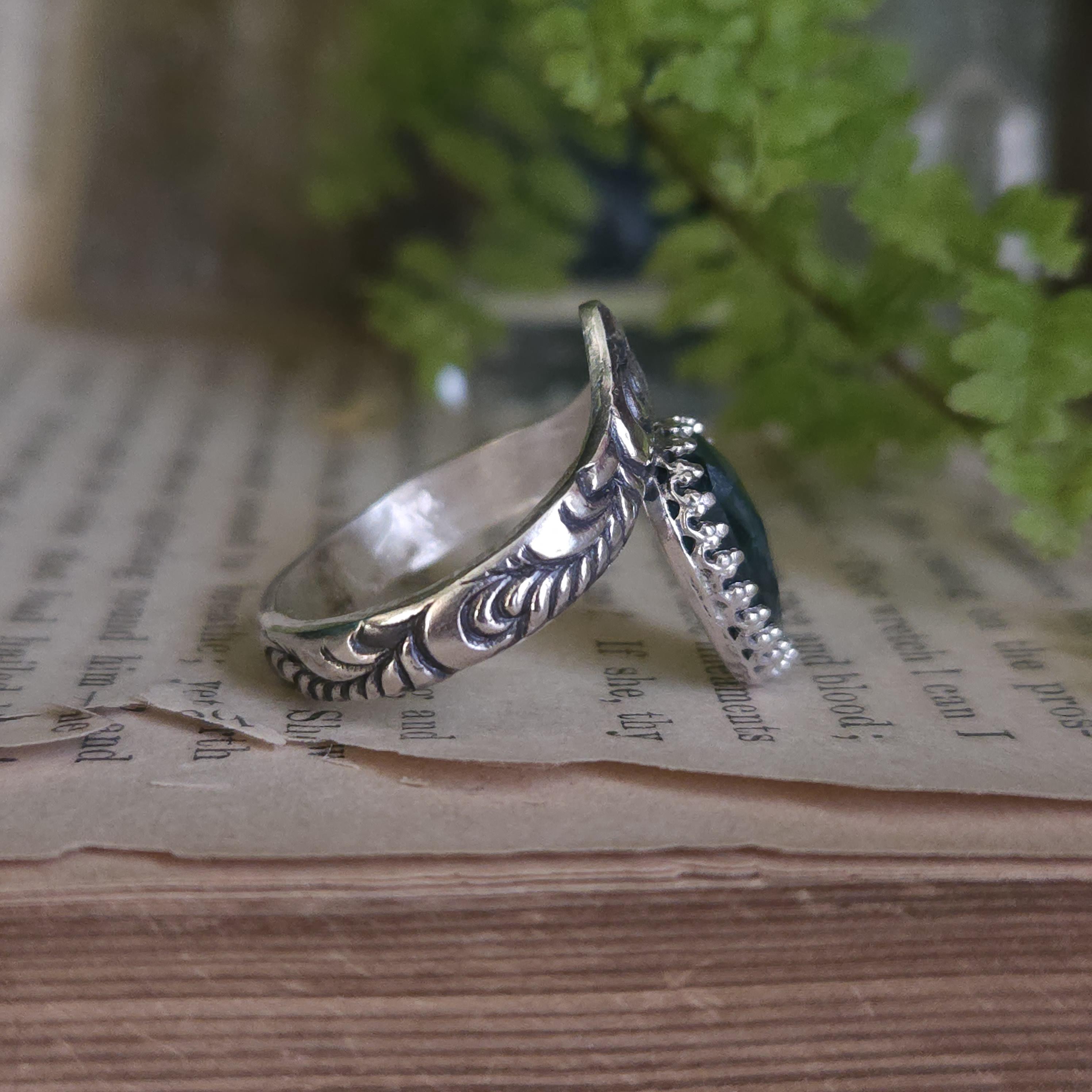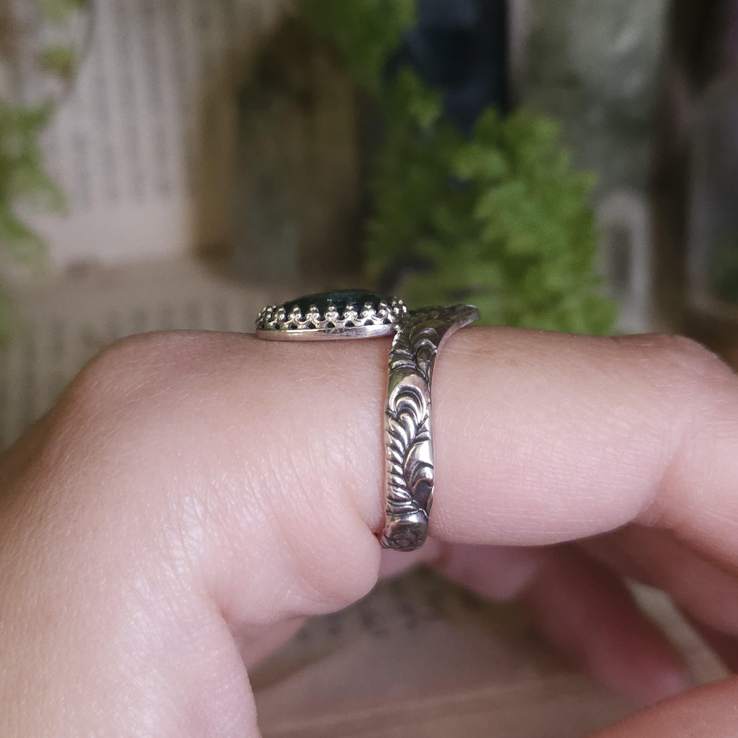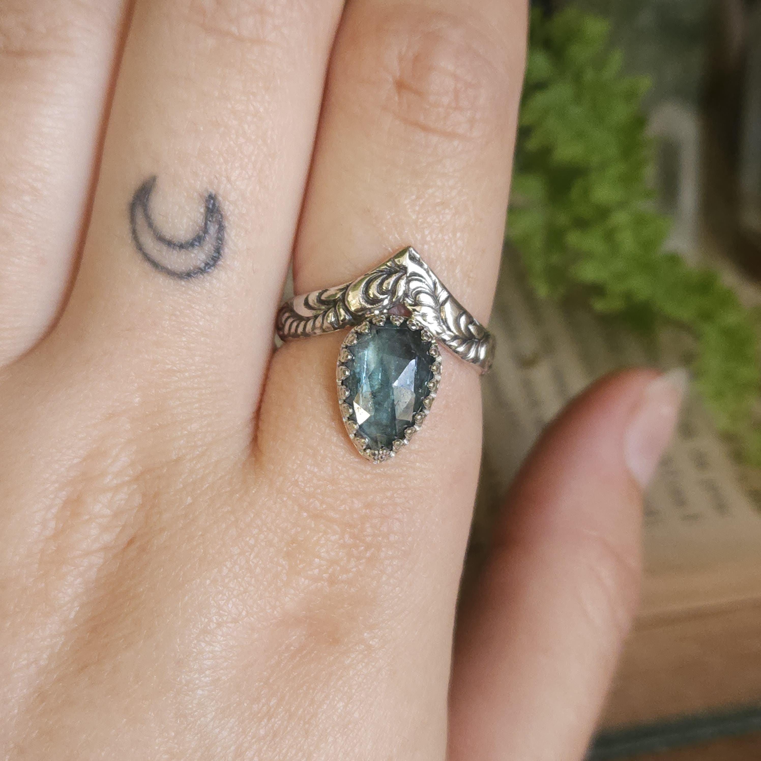 One of a kind handcrafted gemstone ring made using sterling silver and kyanite. Please keep in mind that kyanite is a relatively soft stone and avoid knocking it on anything hard.