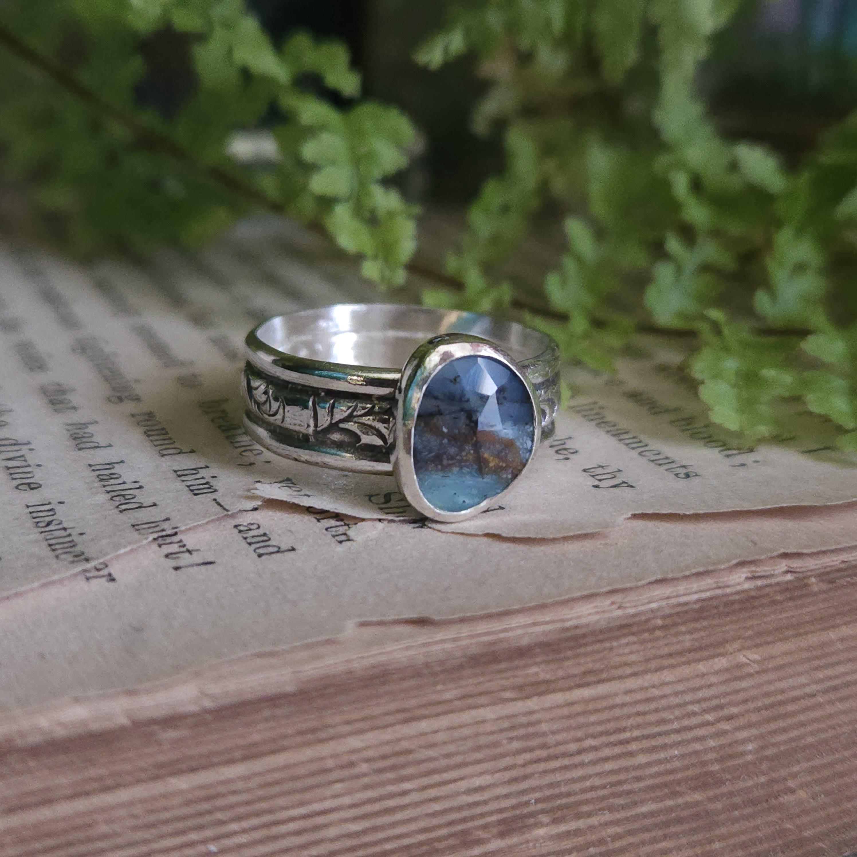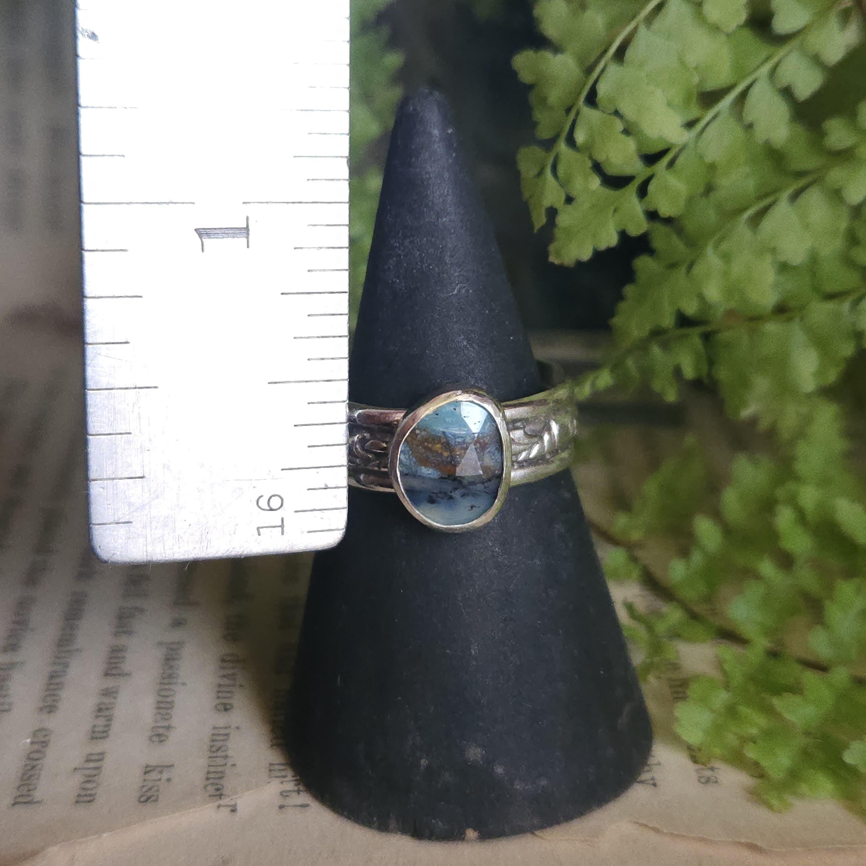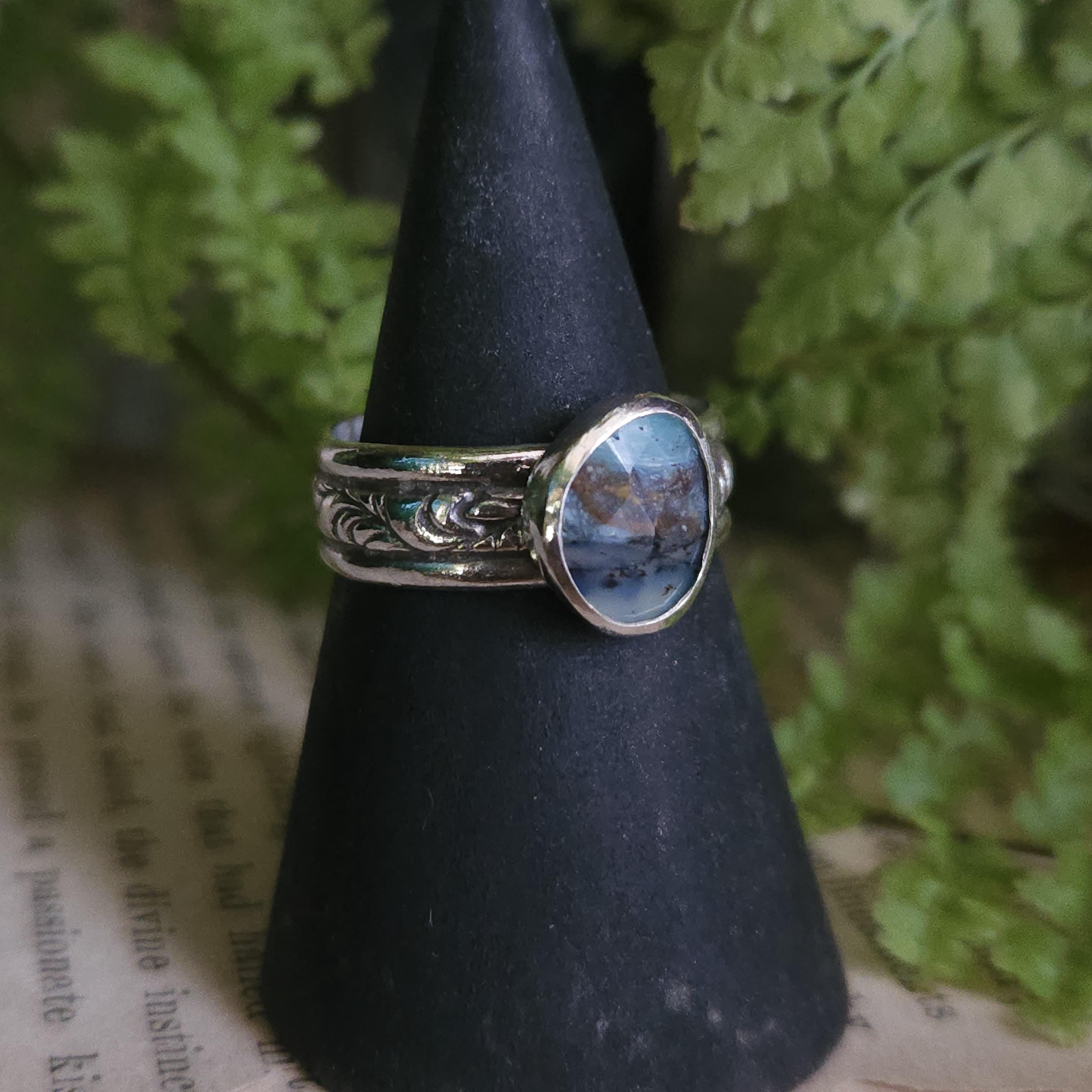 One of a kind handcrafted gemstone ring made using sterling silver and Peruvian blue opal