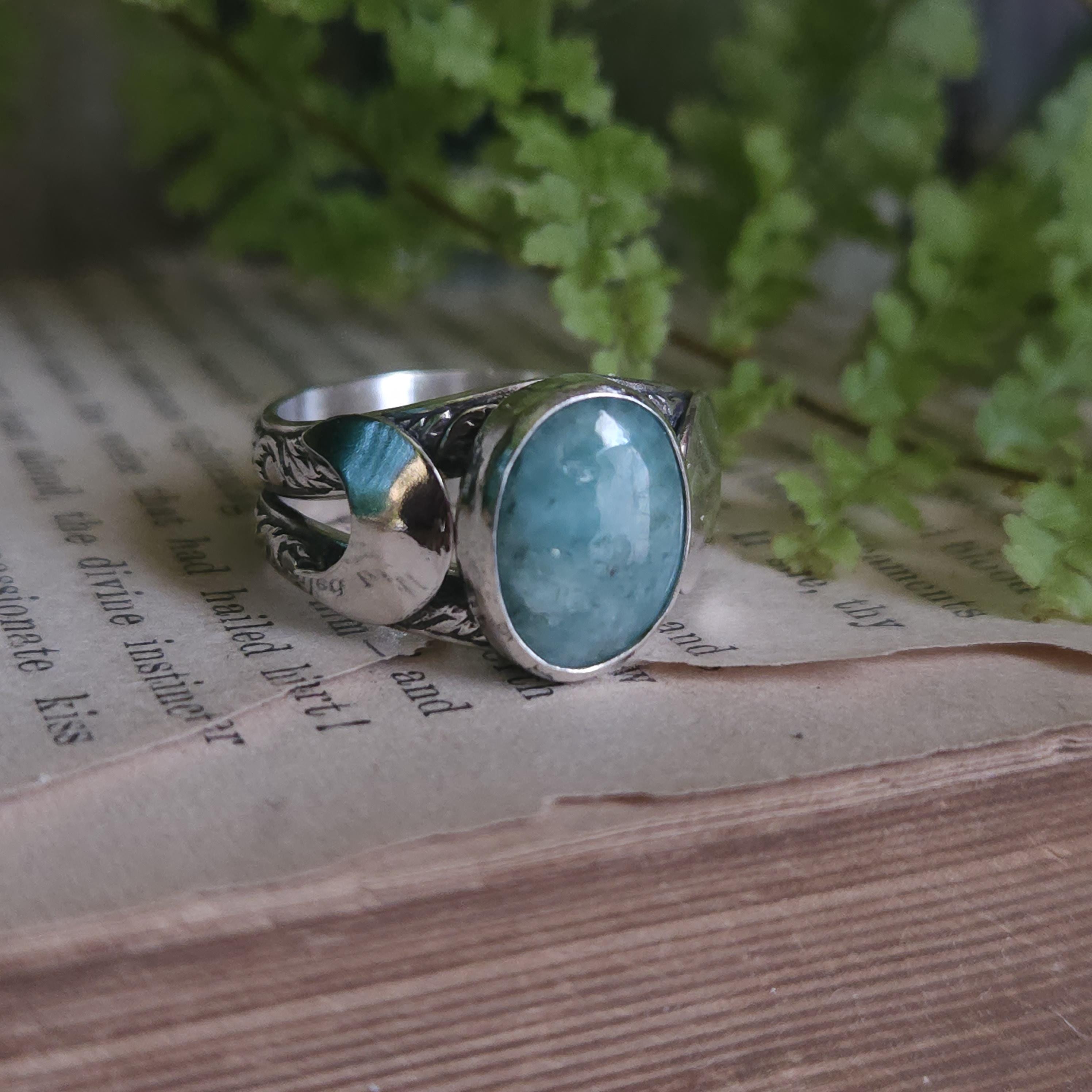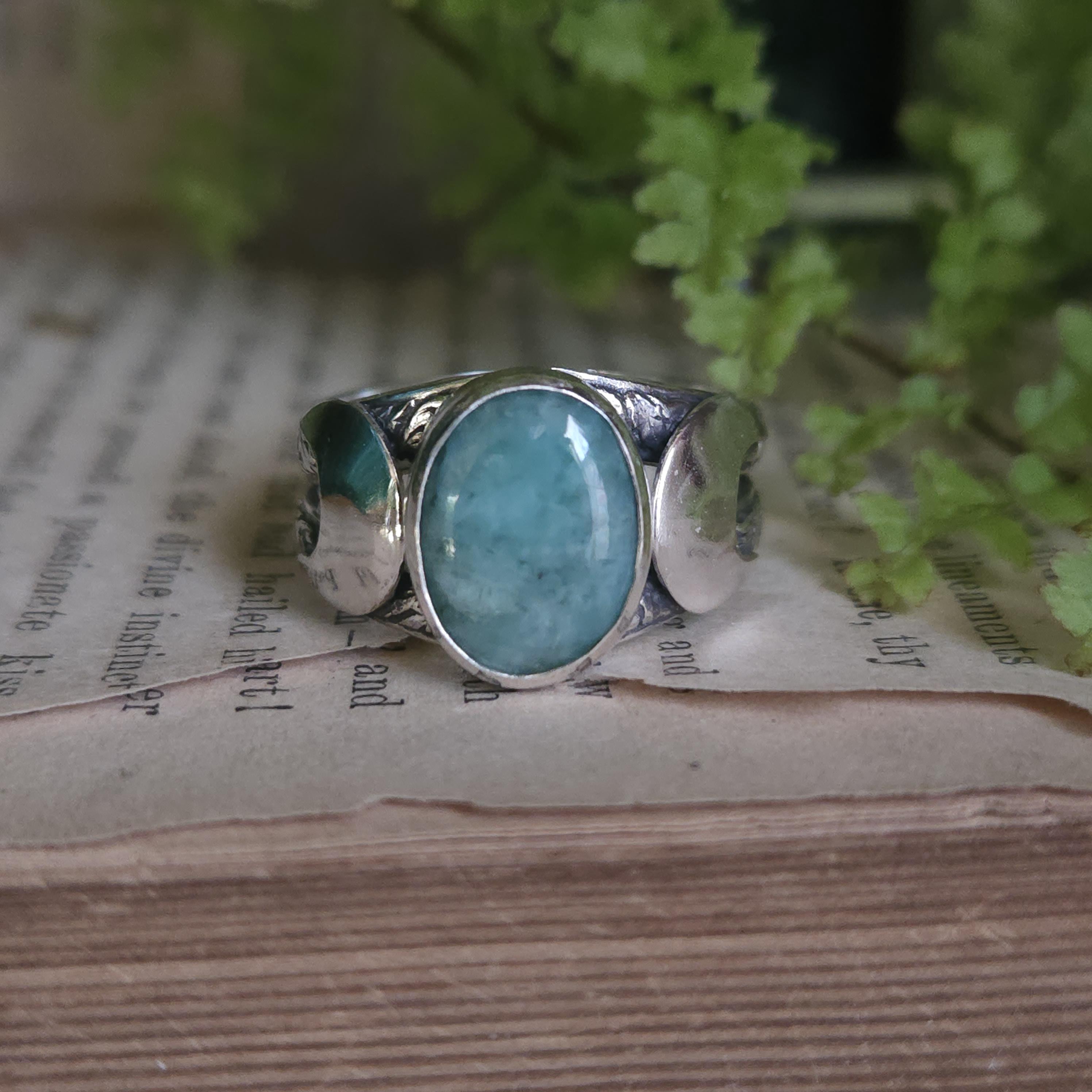 One of a kind handcrafted gemstone ring made using sterling silver and natural emerald