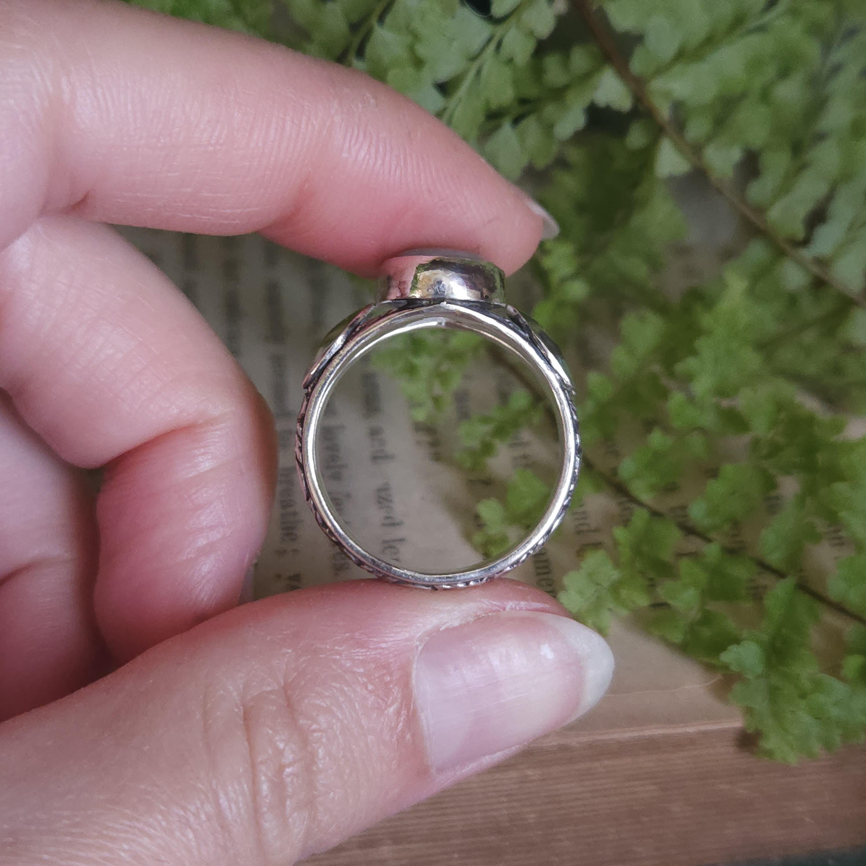 A: Depending on the style and stone type, I may be able to resize the ring for you. Please send me a message before purchasing to inquire about resizing. If I have more of the stone type on hand, I would be more than happy to recreate the ring in your size for you if it can’t be resized!