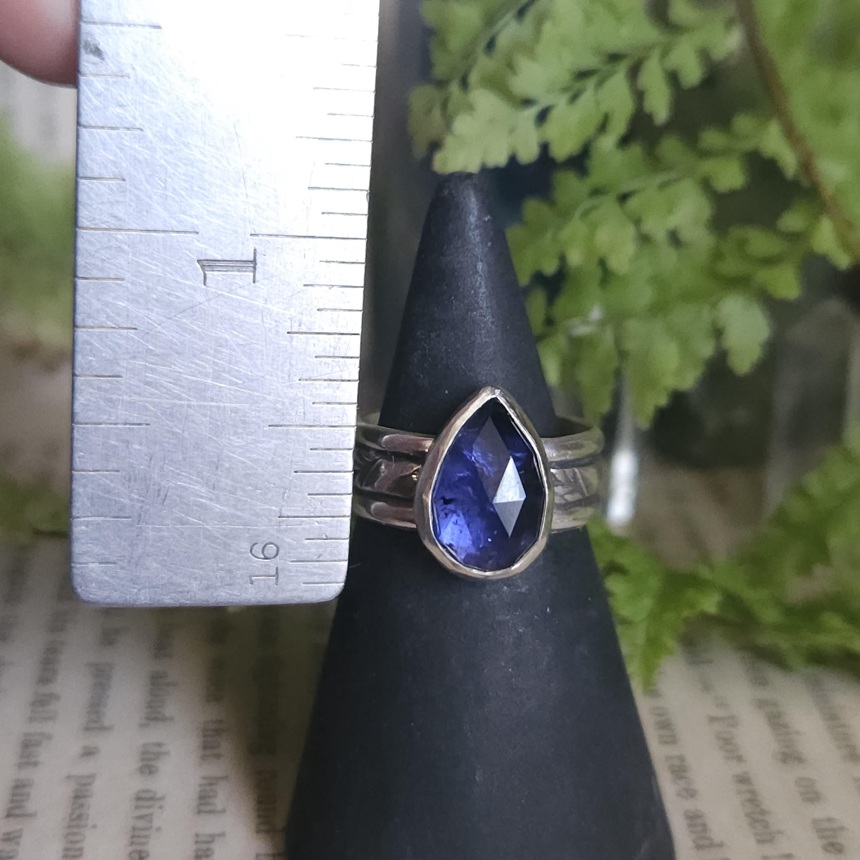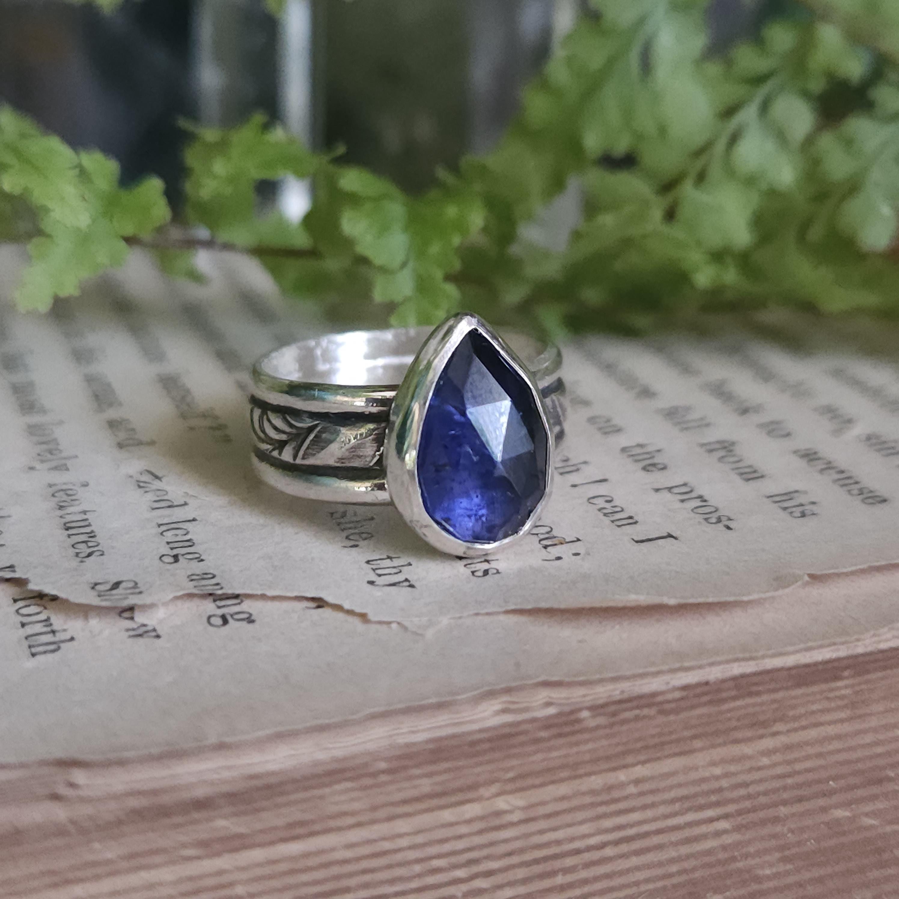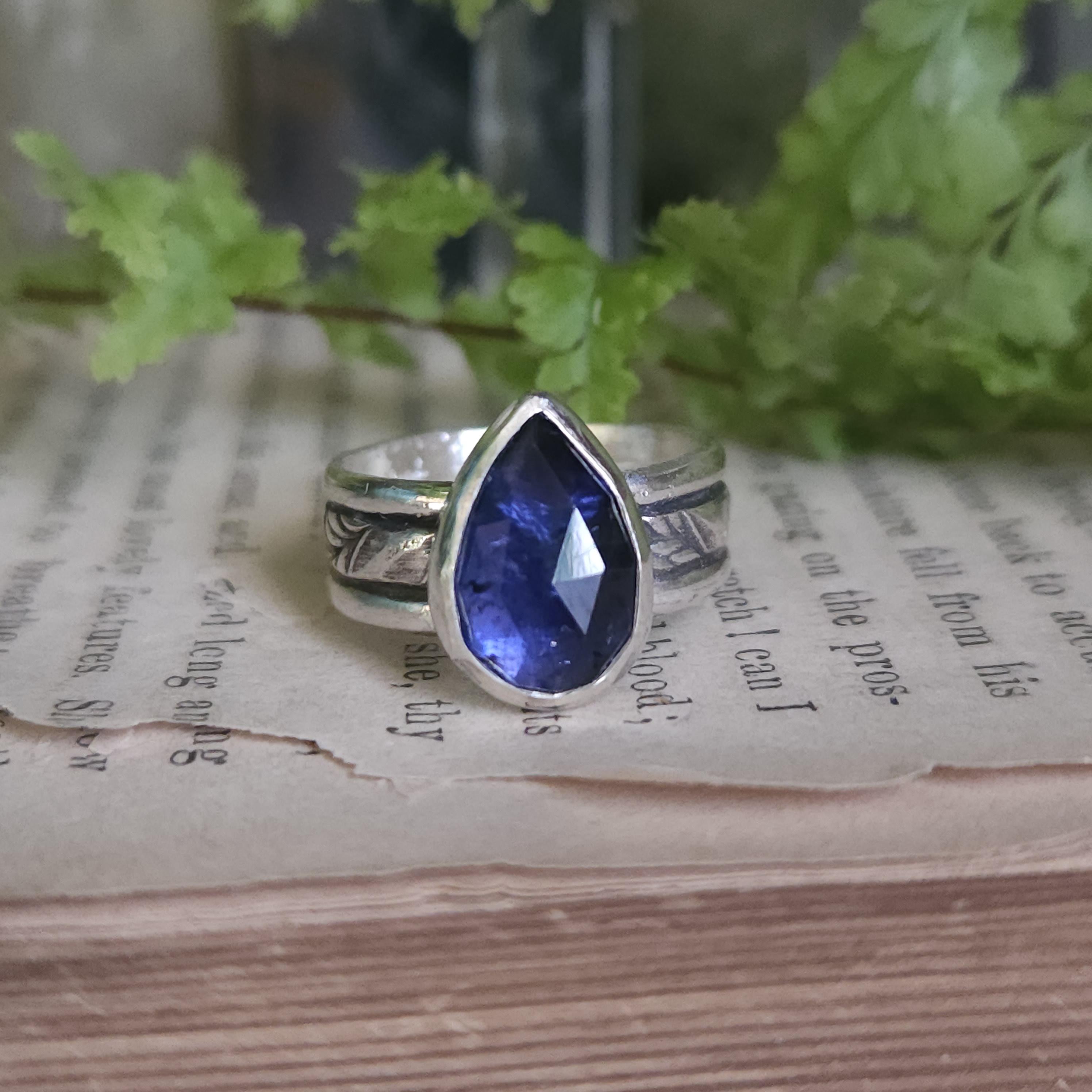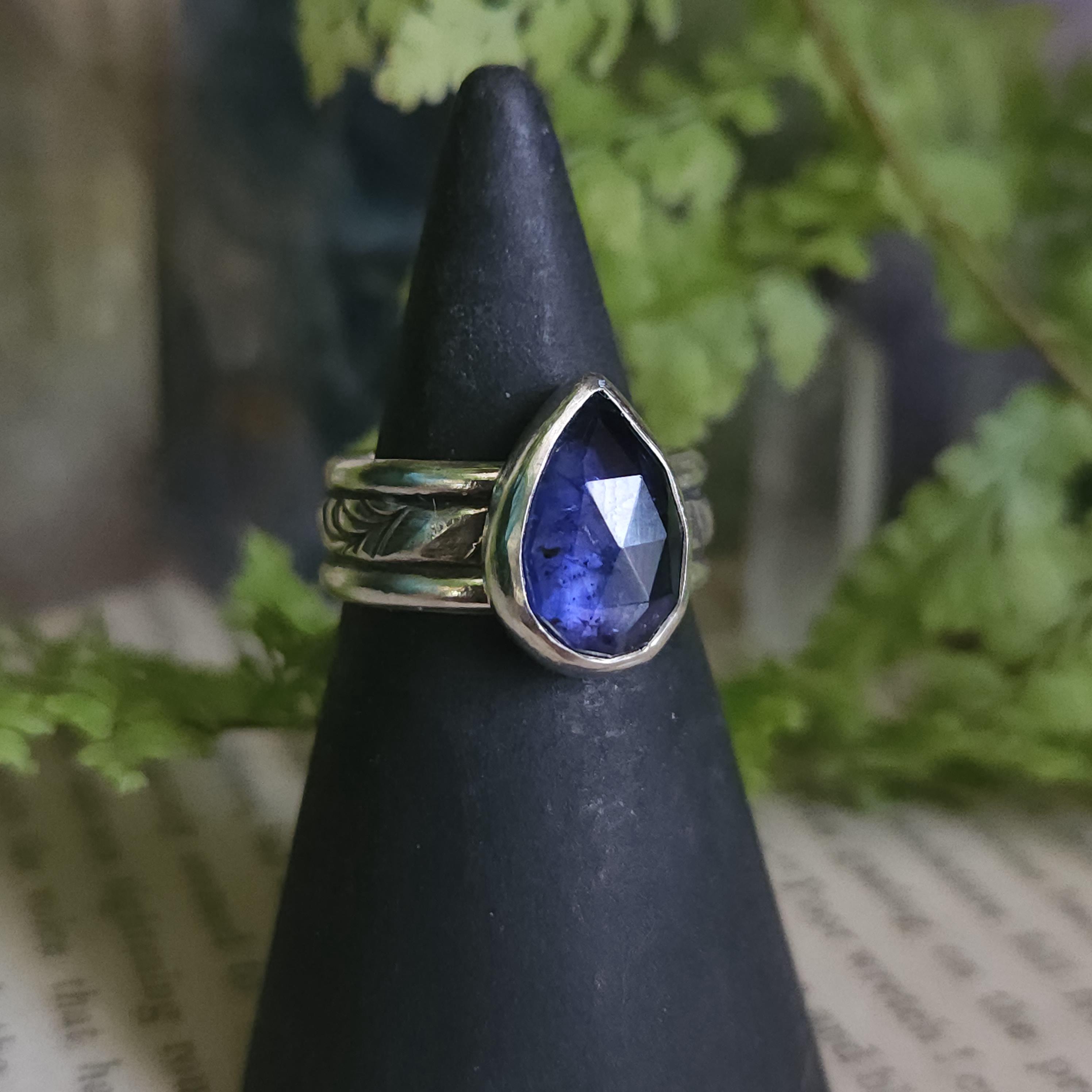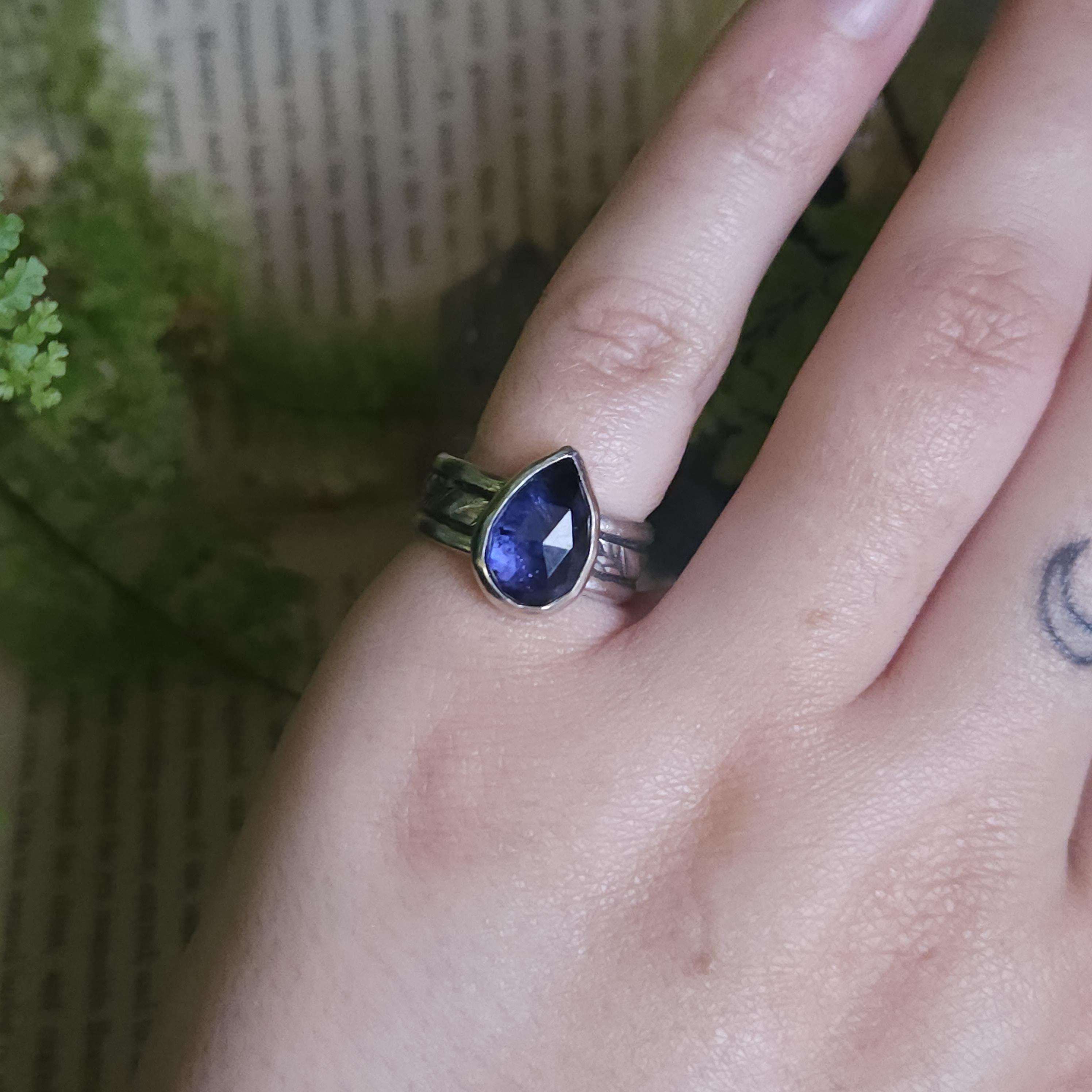 One of a kind handcrafted gemstone ring made using sterling silver and iolite