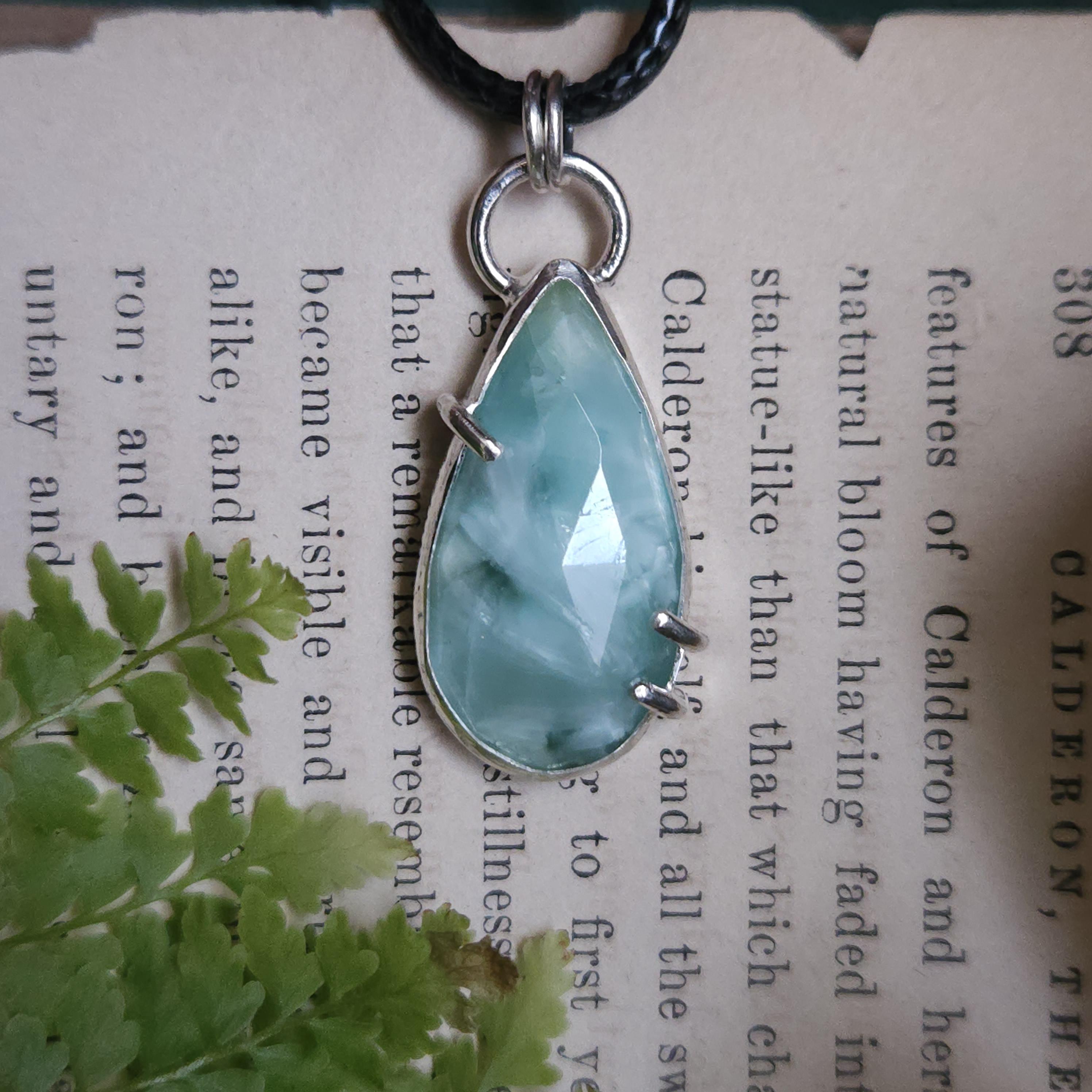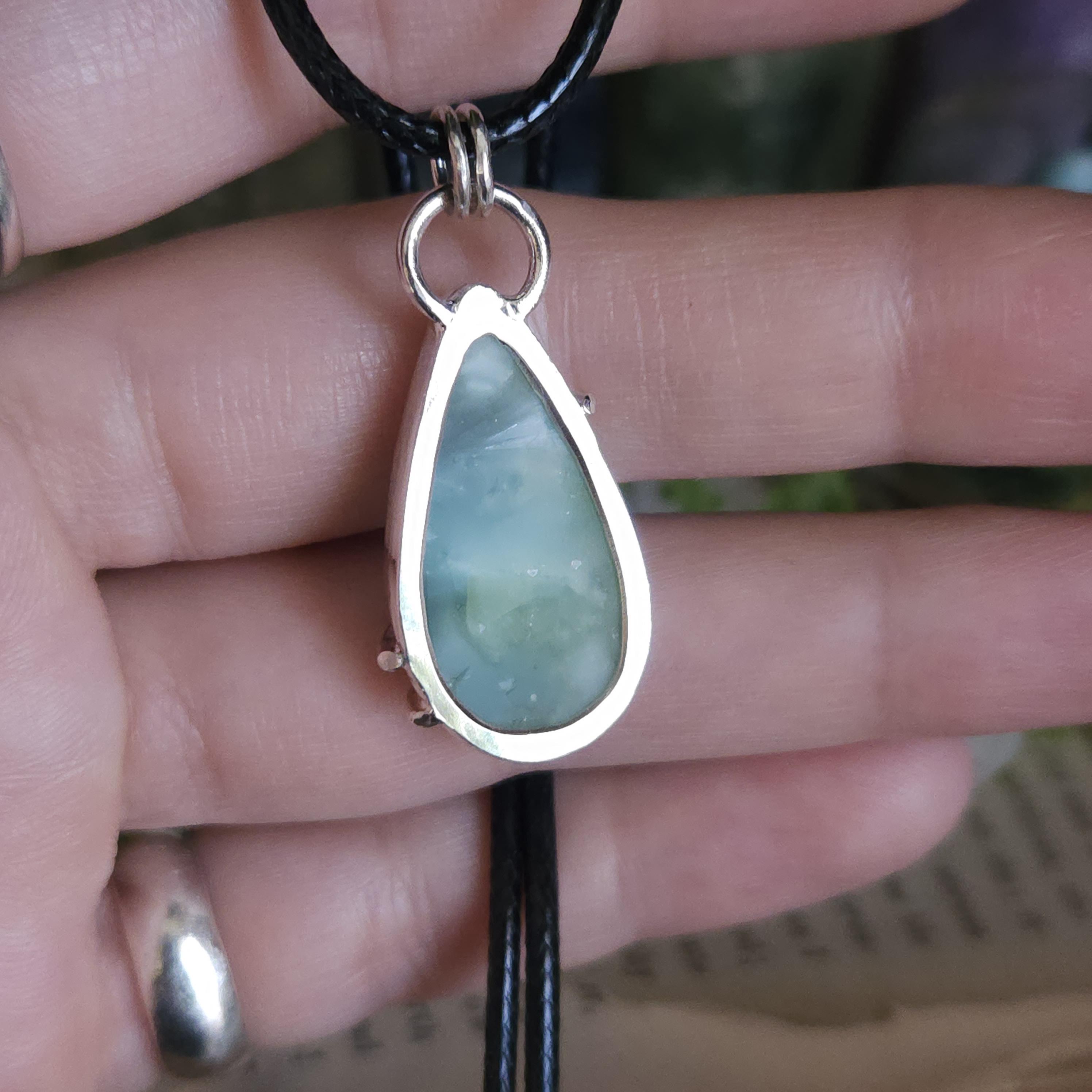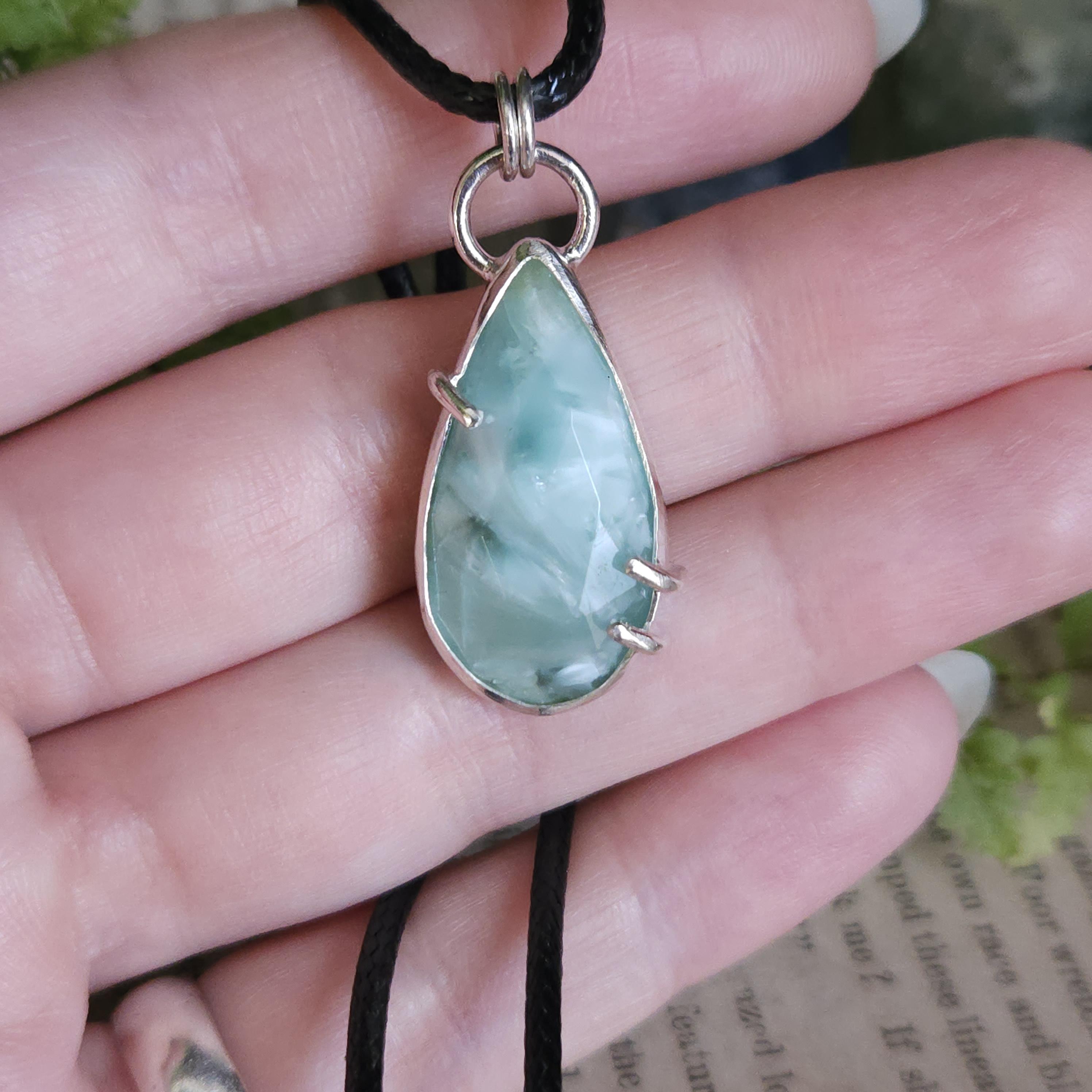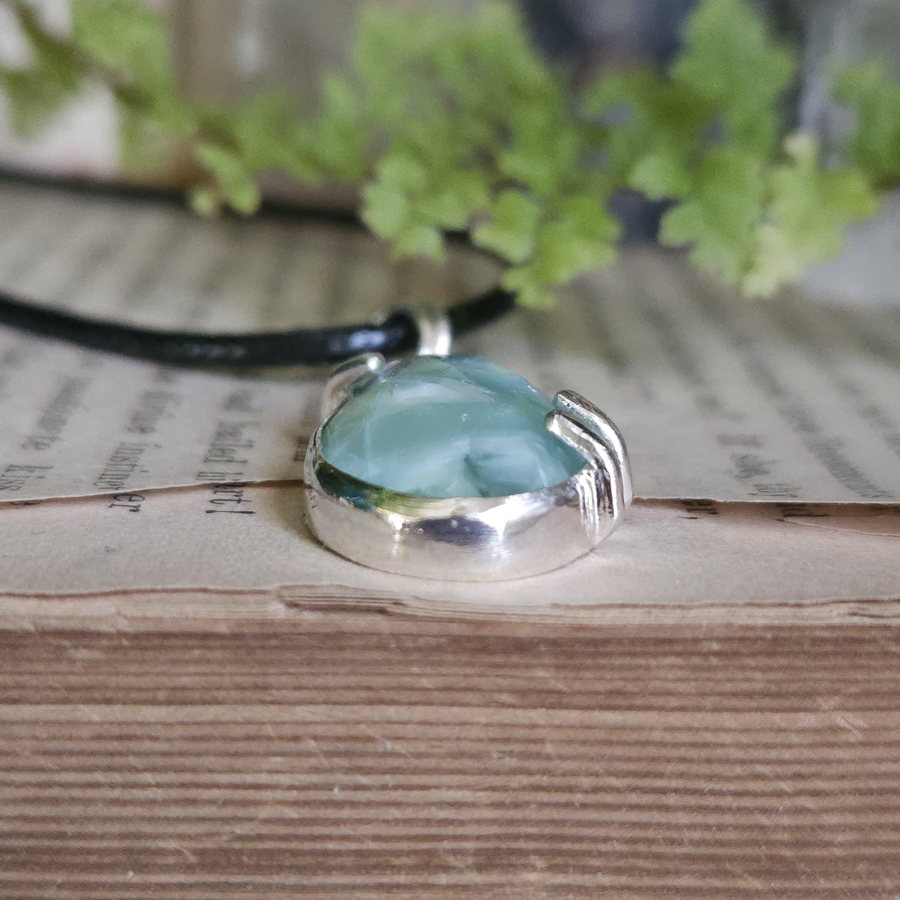 One of a kind artisan handmade gemstone pendant made using sterling silver and hemimorphite