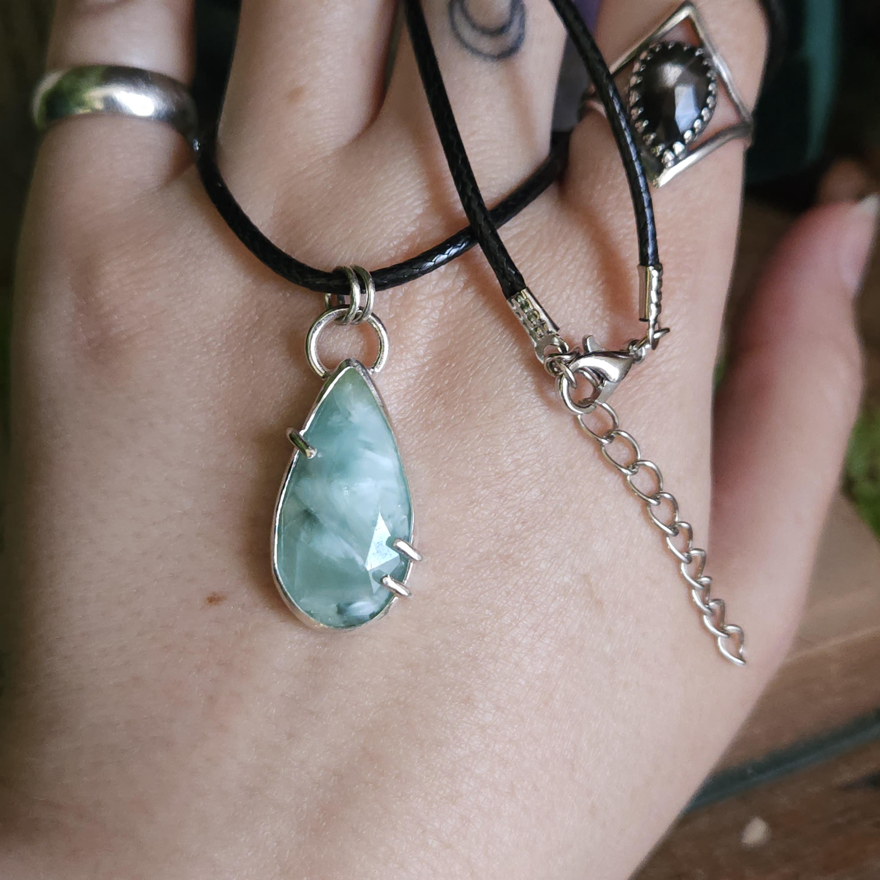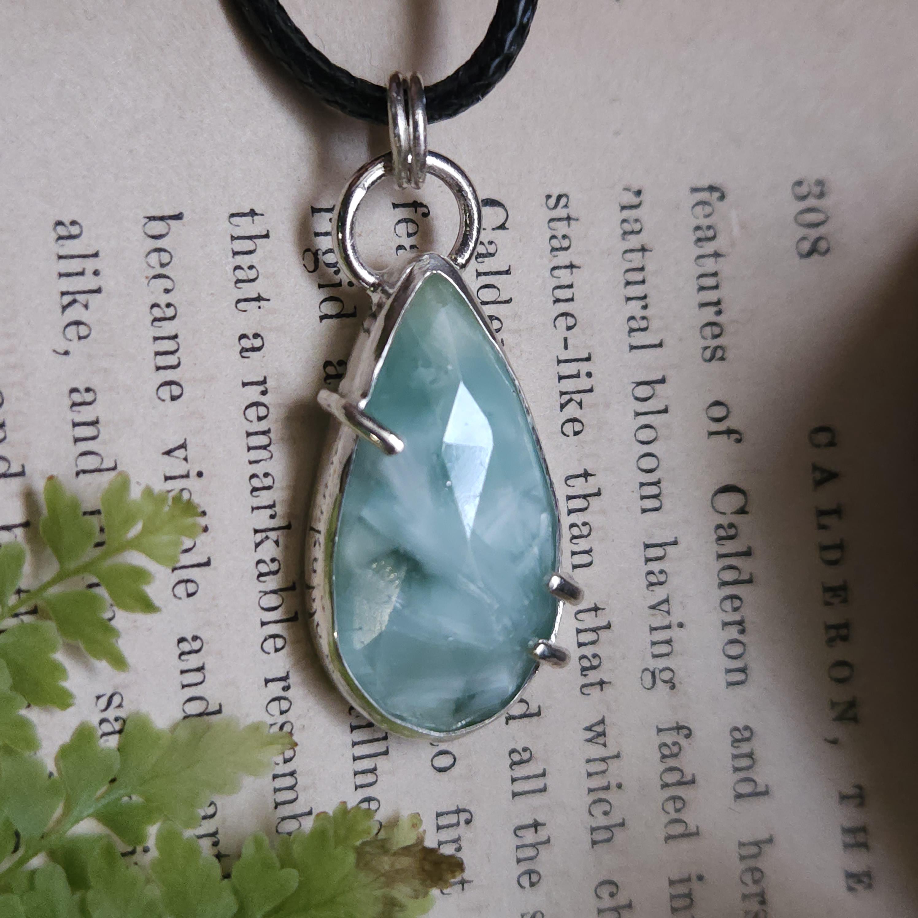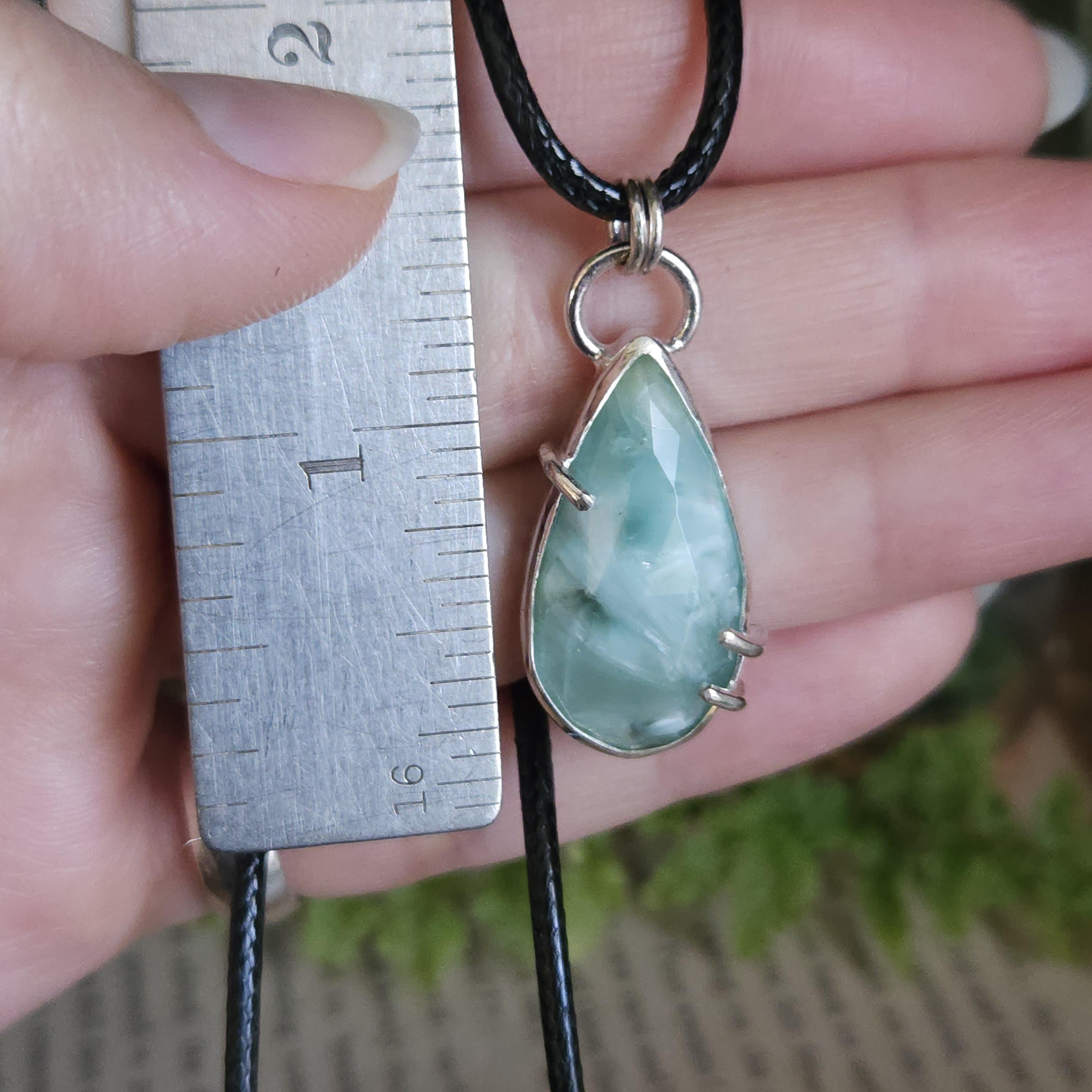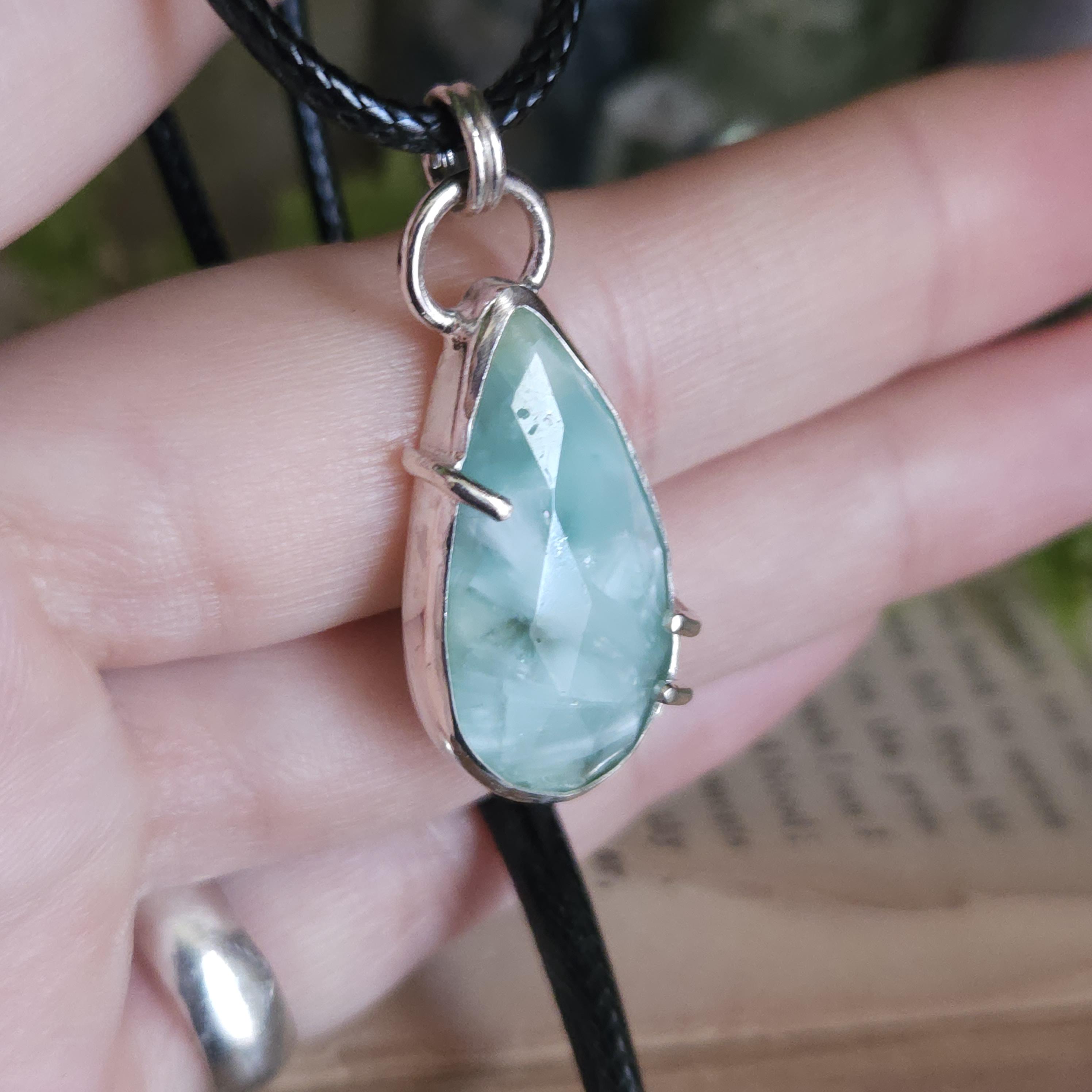 One of a kind artisan handmade gemstone pendant made using sterling silver and hemimorphite
