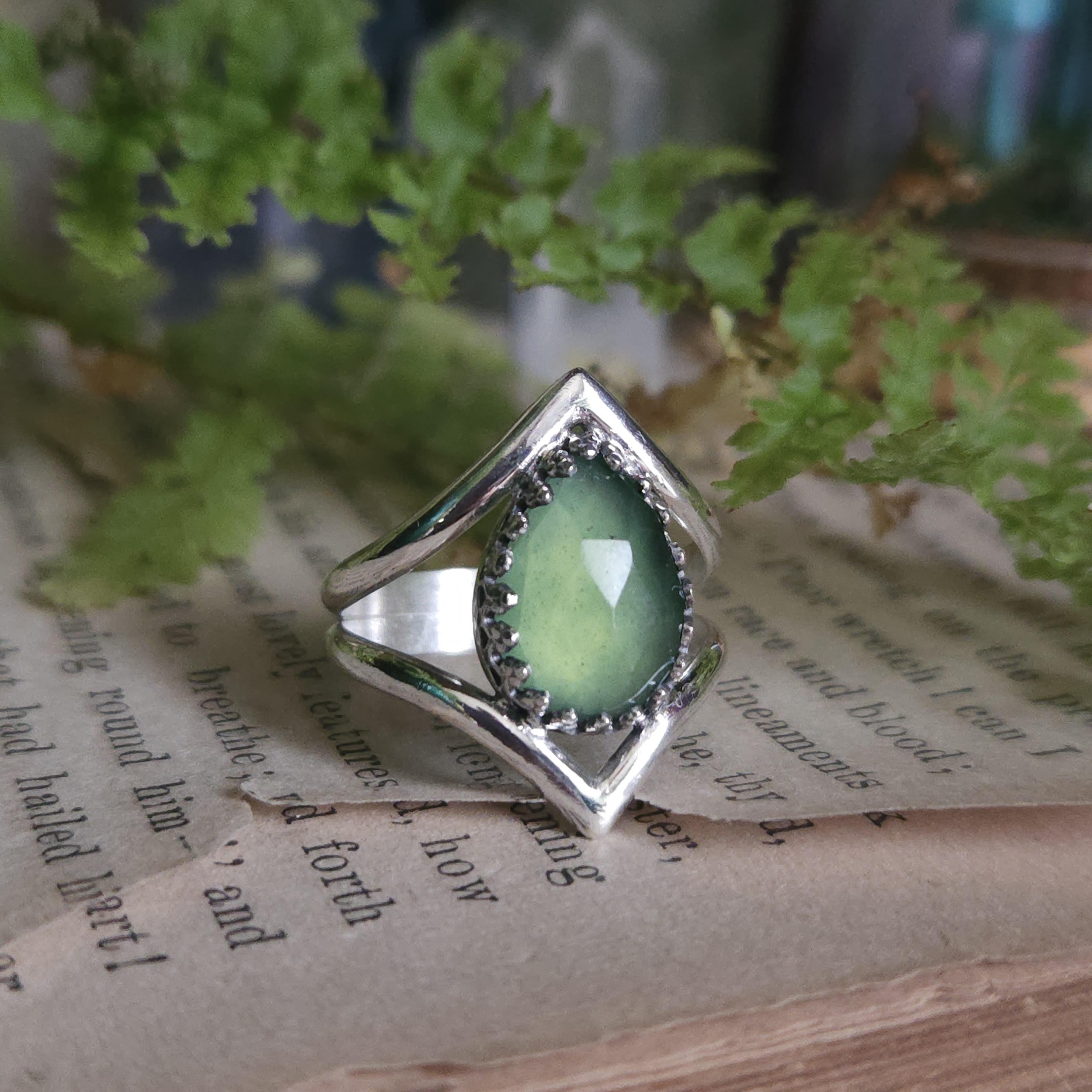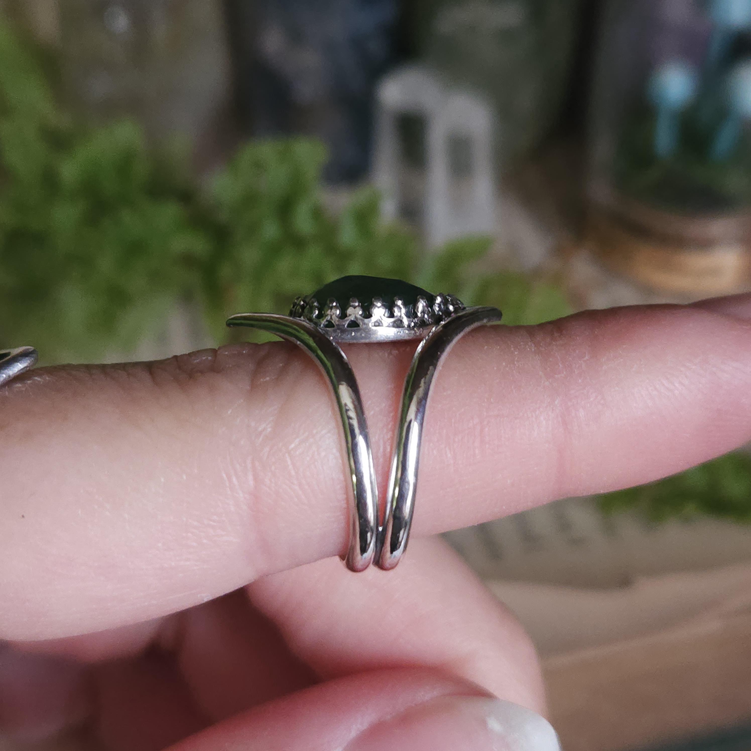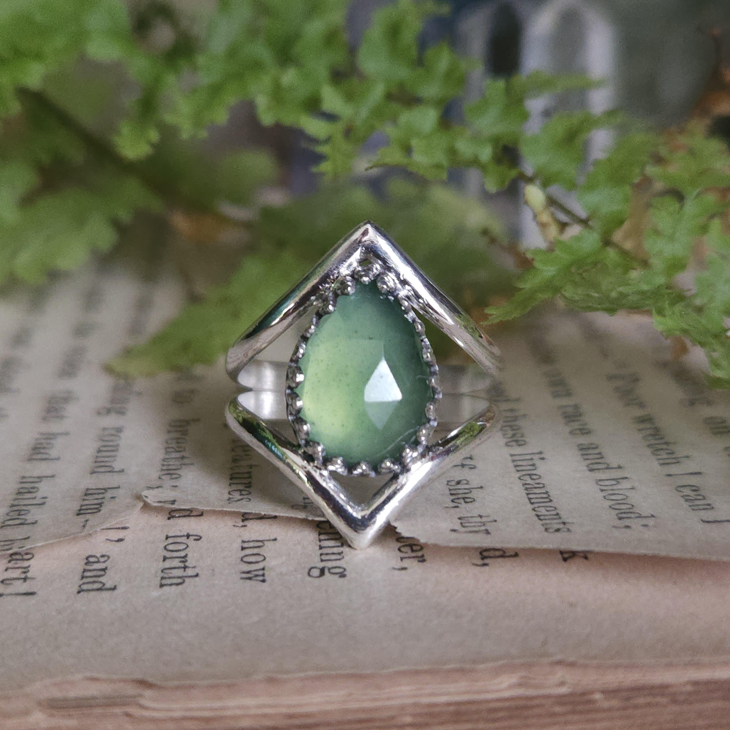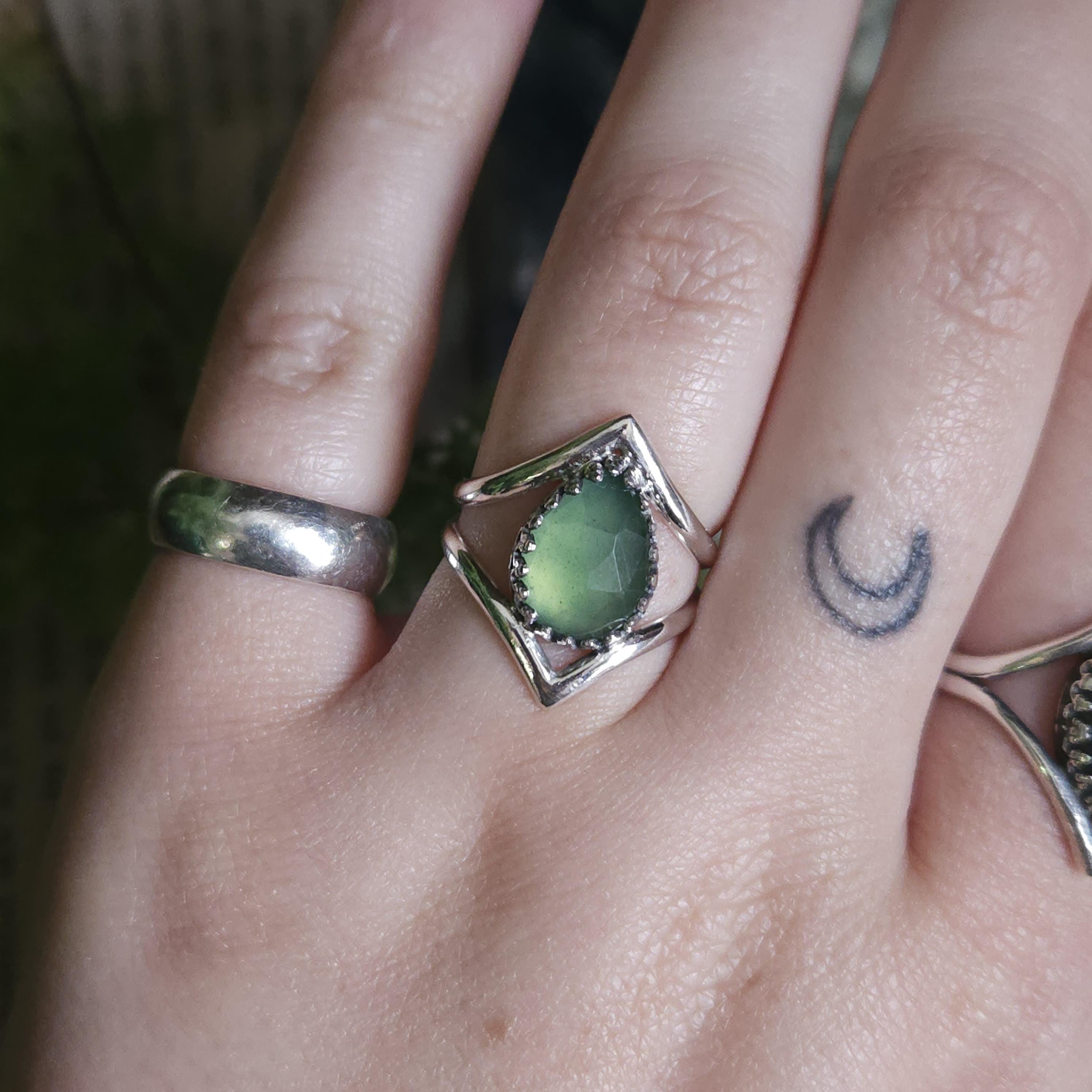 Artisan handcrafted gemstone ring made using sterling silver and serpentine