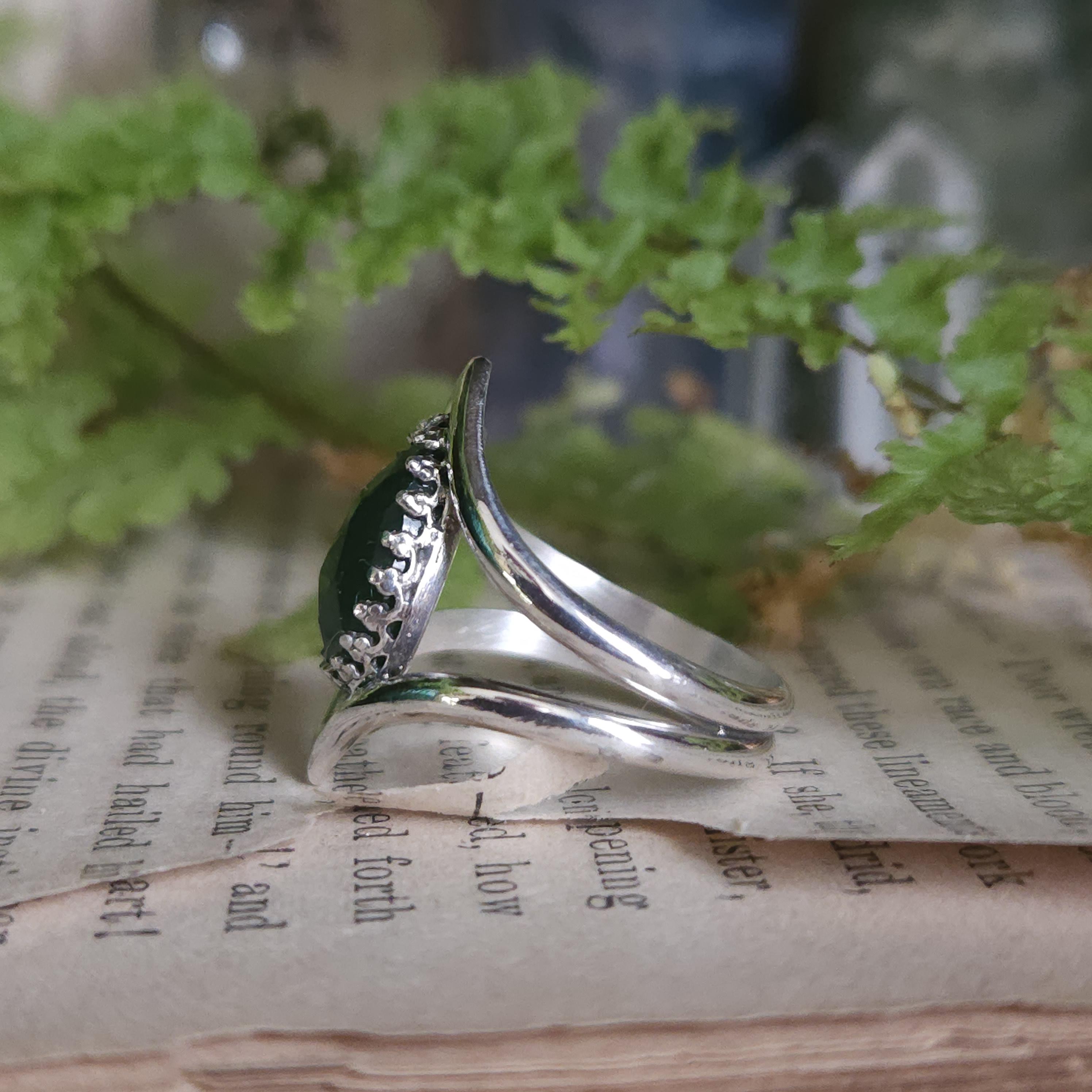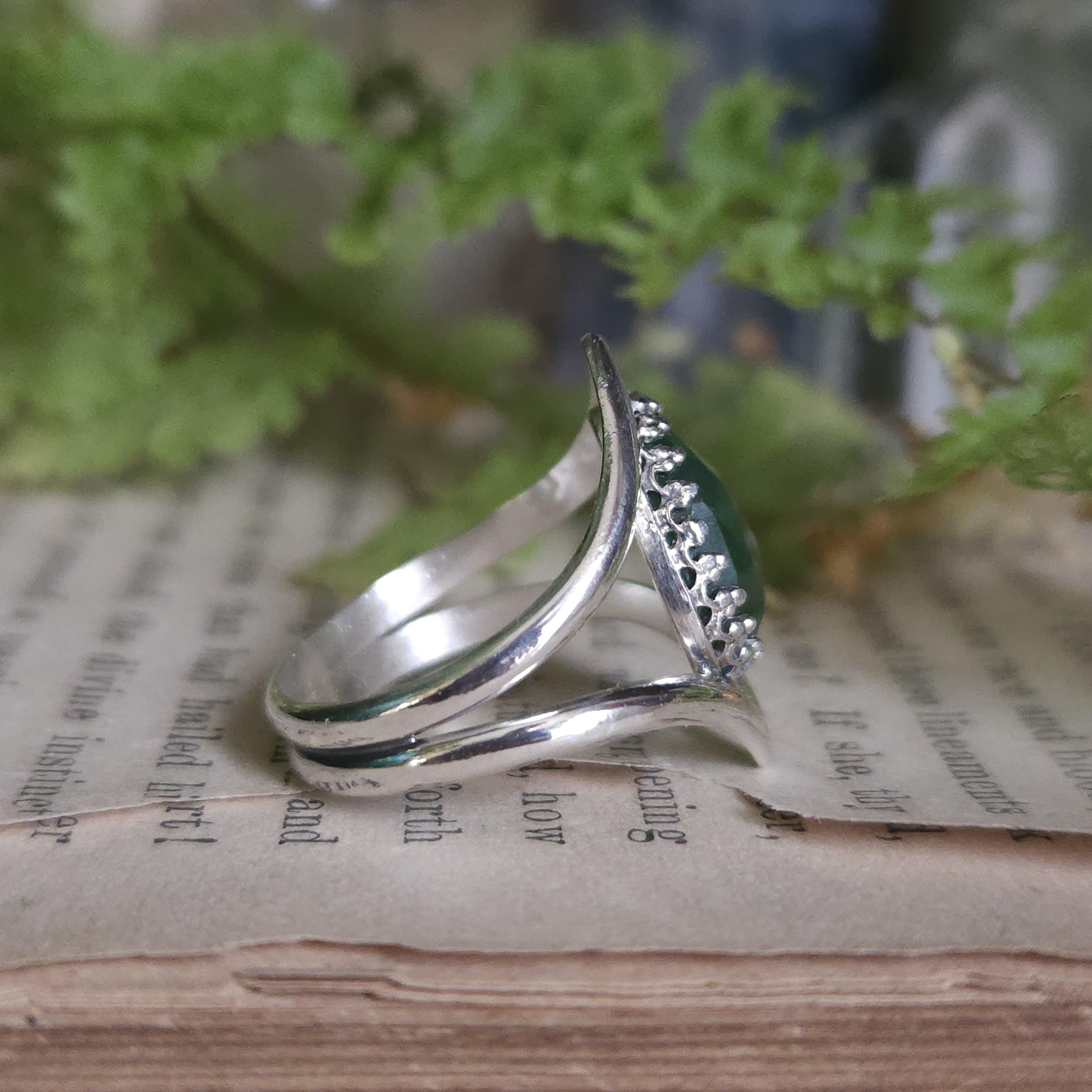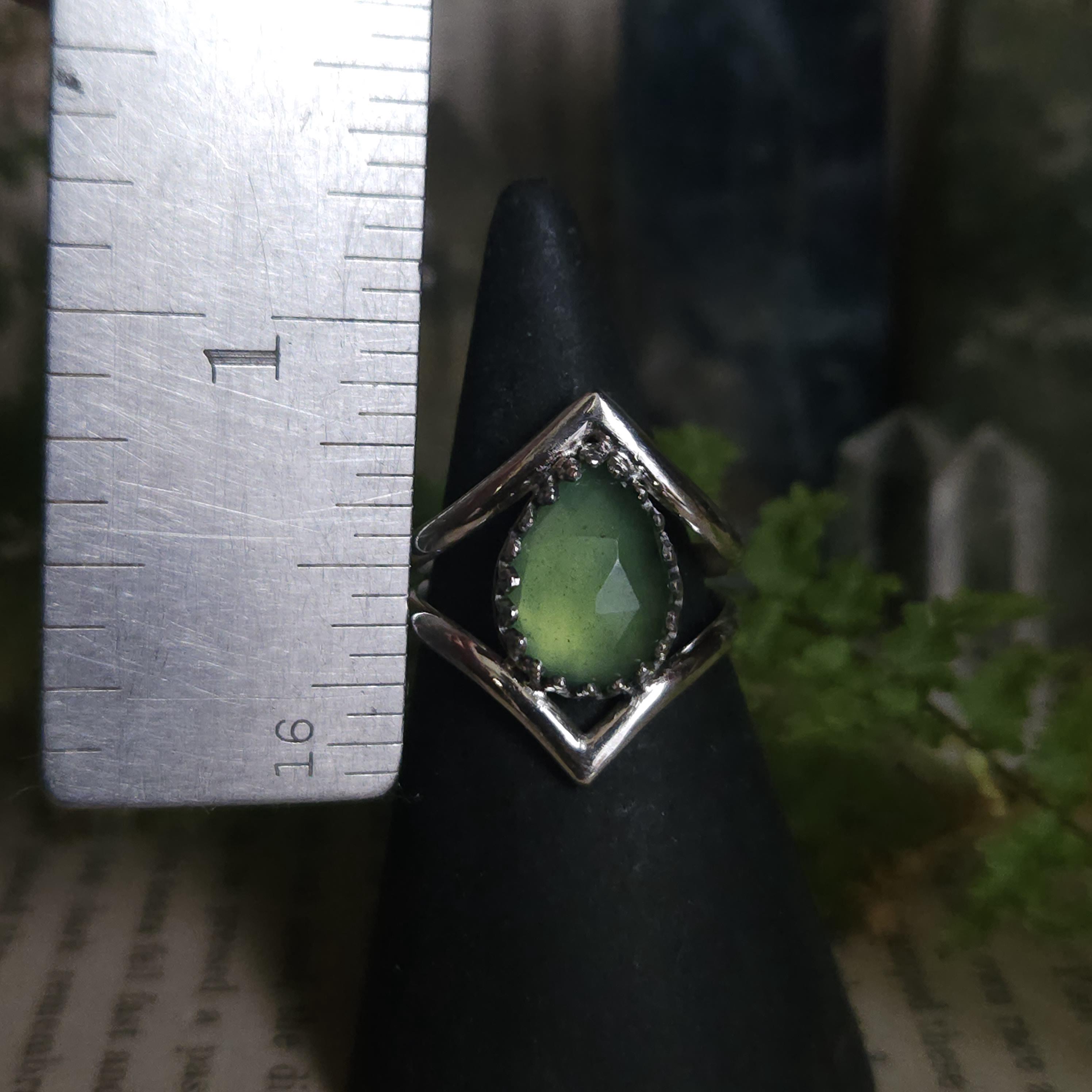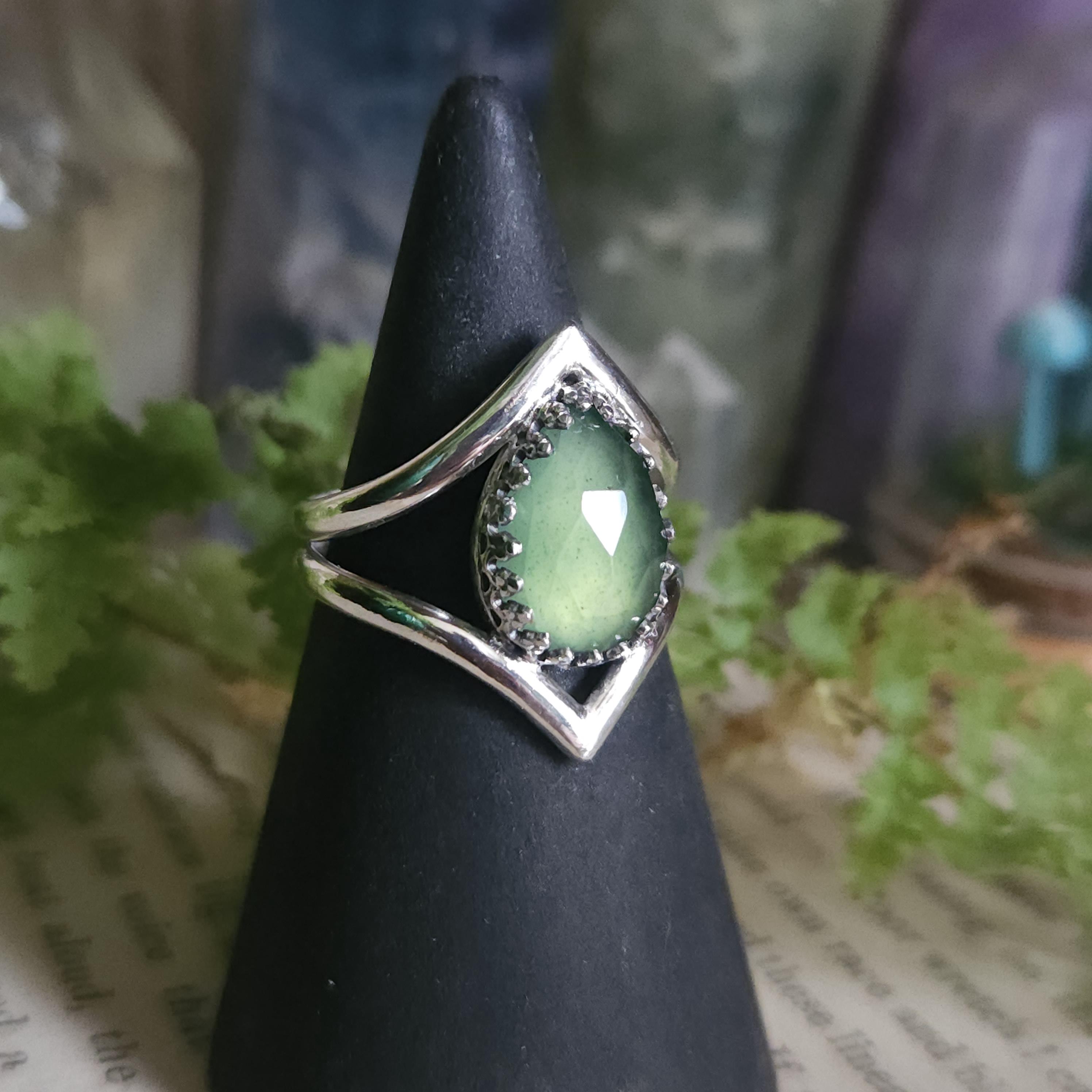 Artisan handcrafted gemstone ring made using sterling silver and serpentine