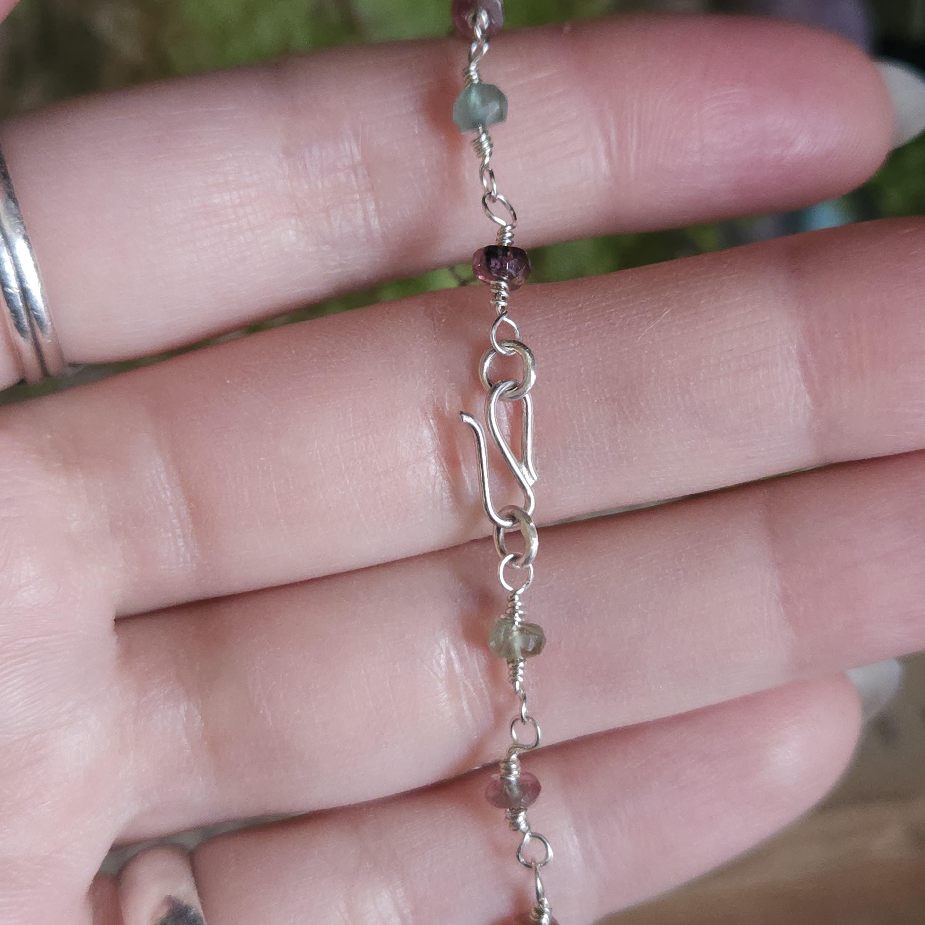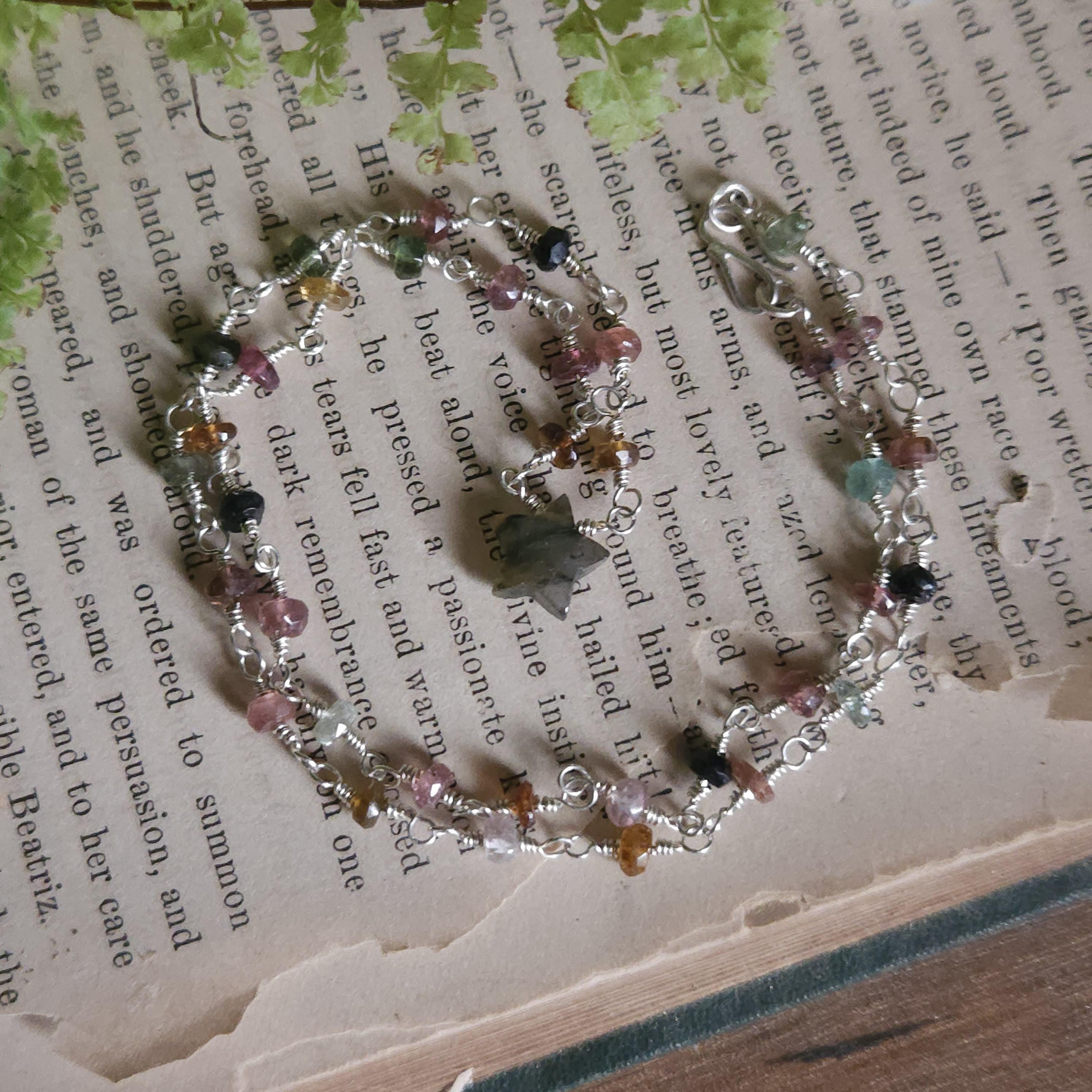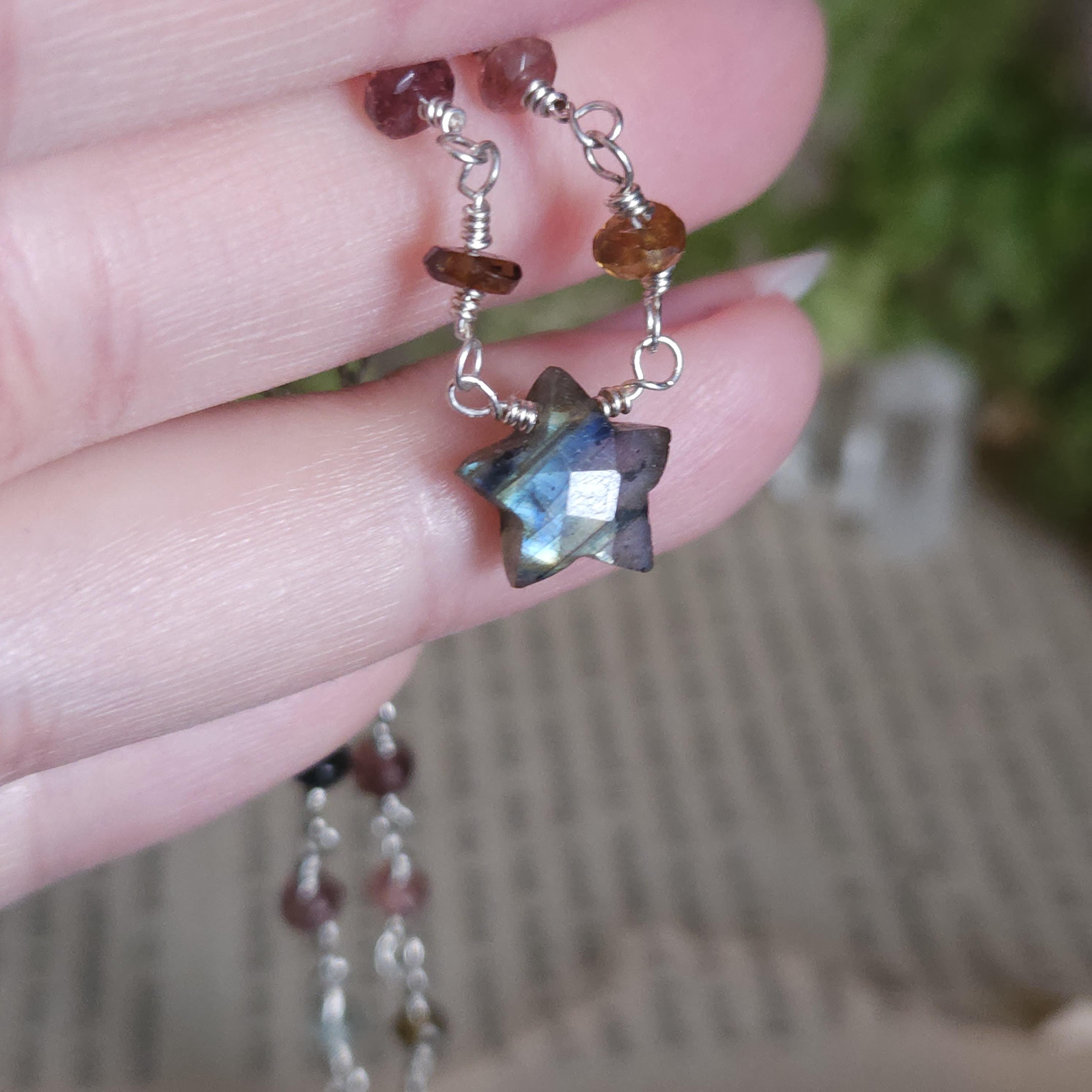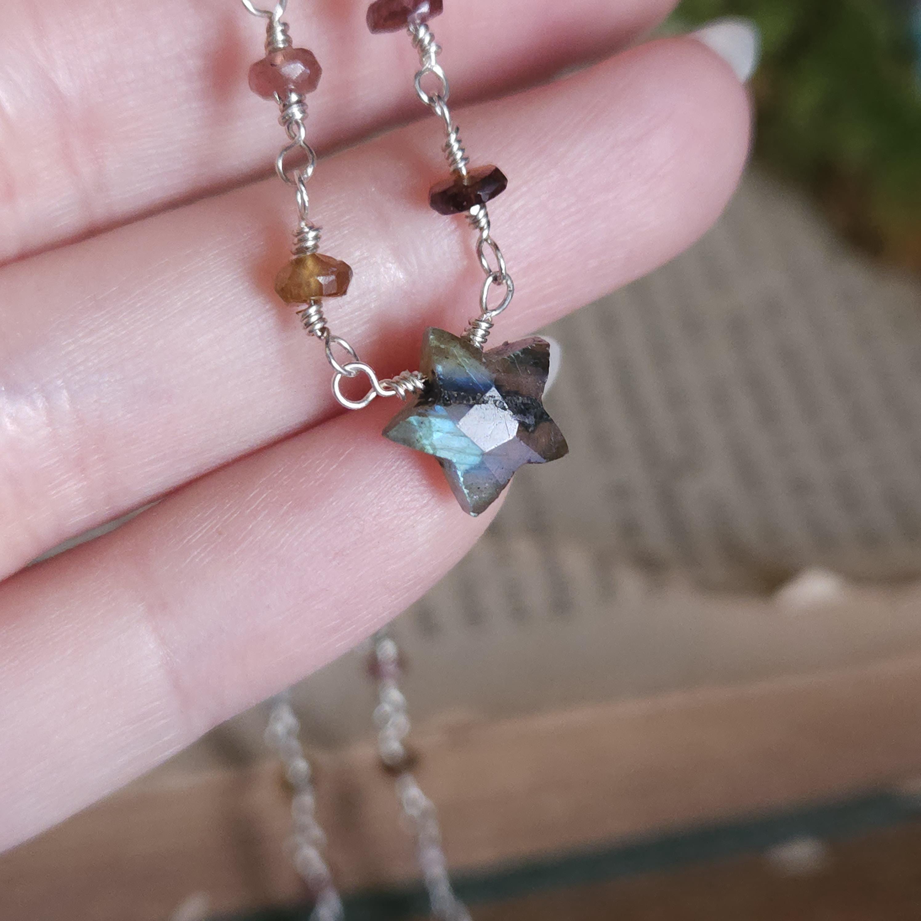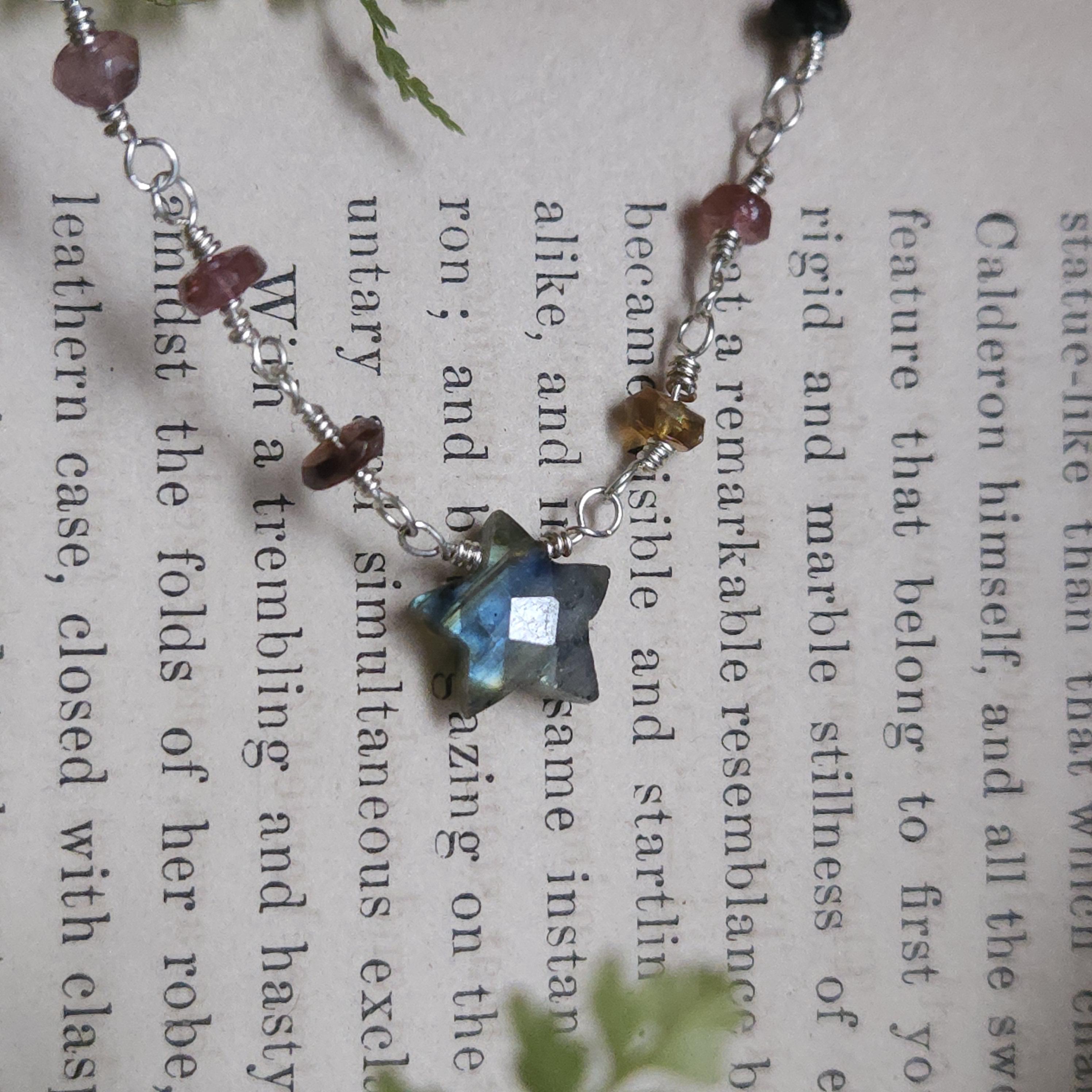 One of a kind artisan handmade gemstone pendant made using sterling silver, multi tourmaline beads, and a star shaped labradorite