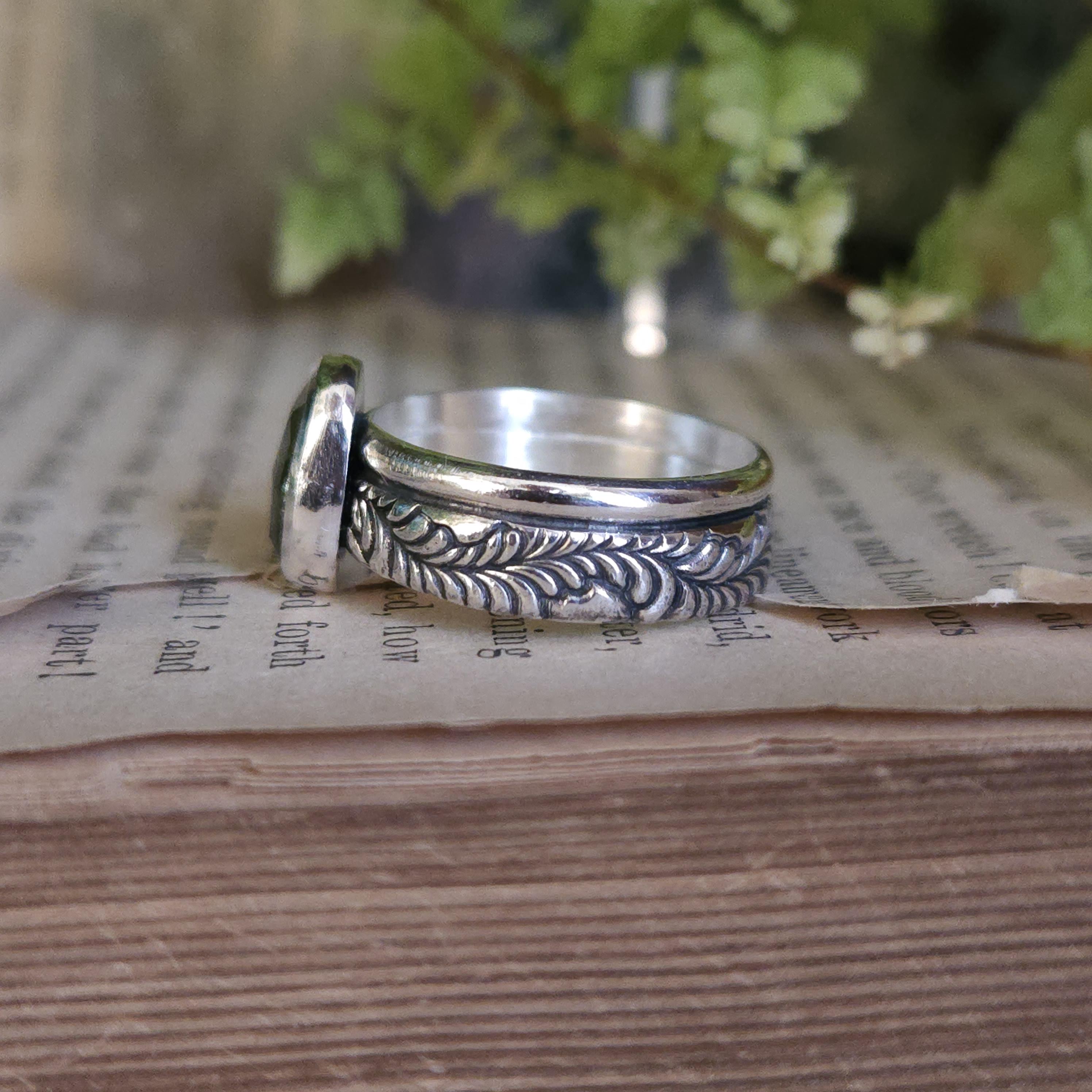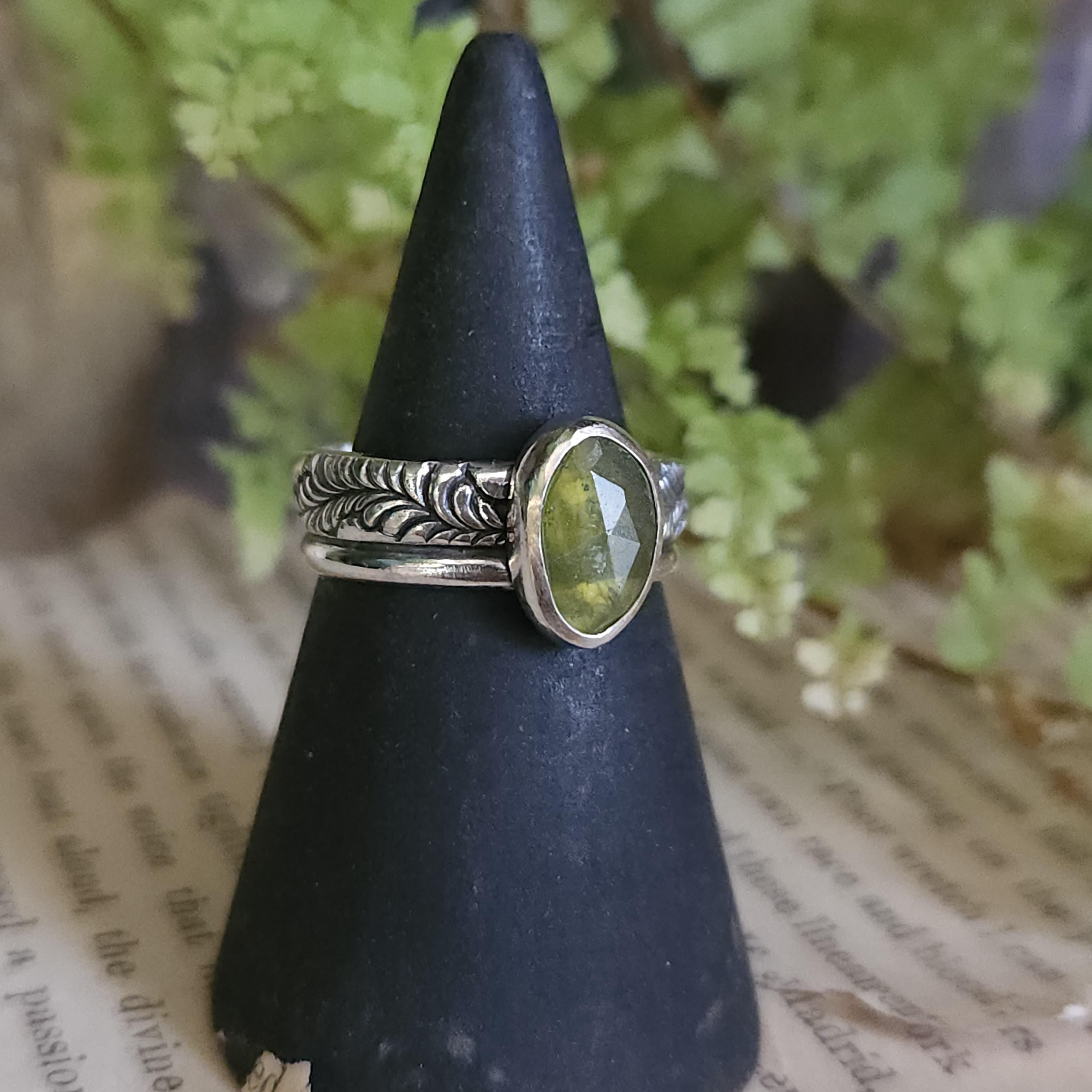 One of a kind handcrafted gemstone ring made using sterling silver and vesuvianite/idocrase