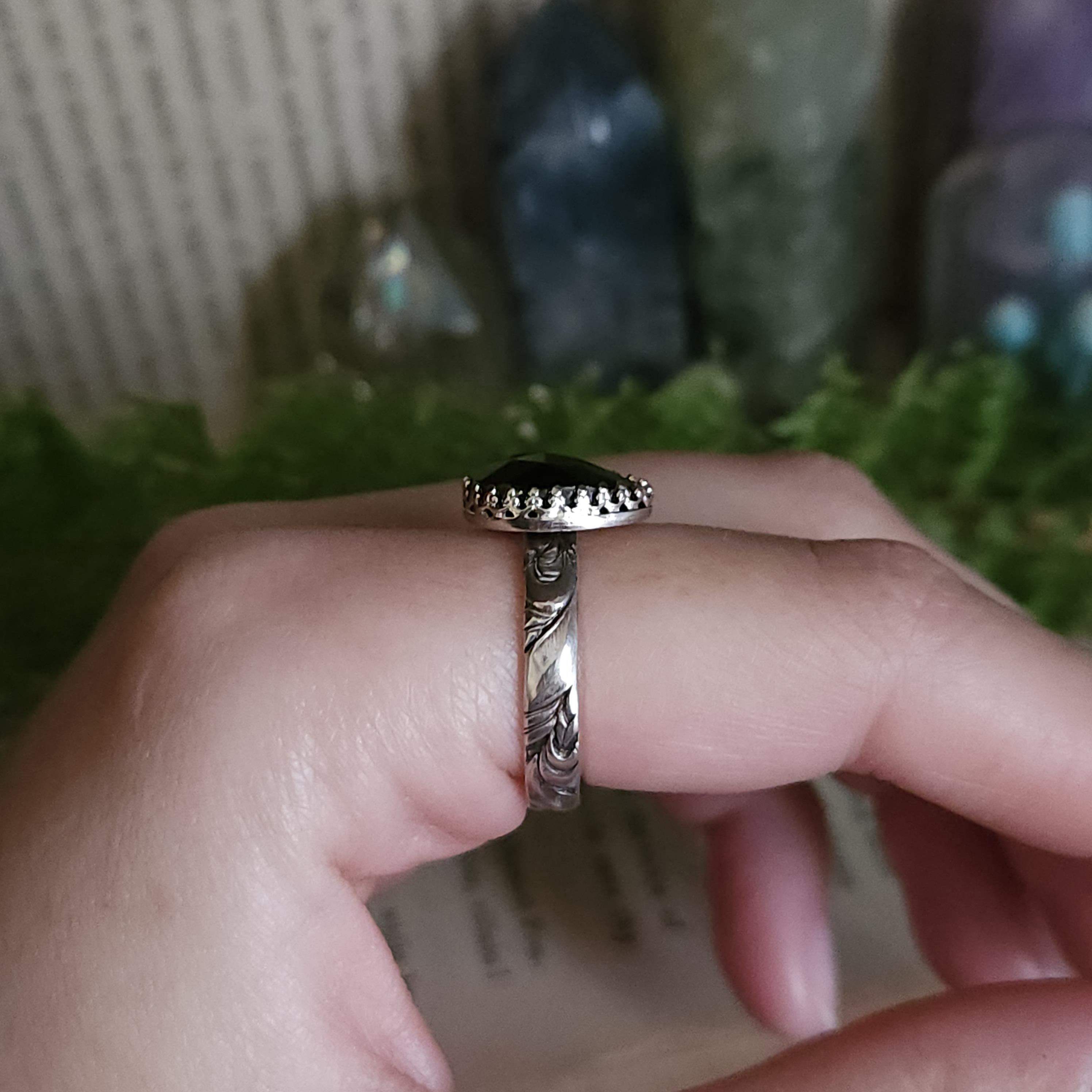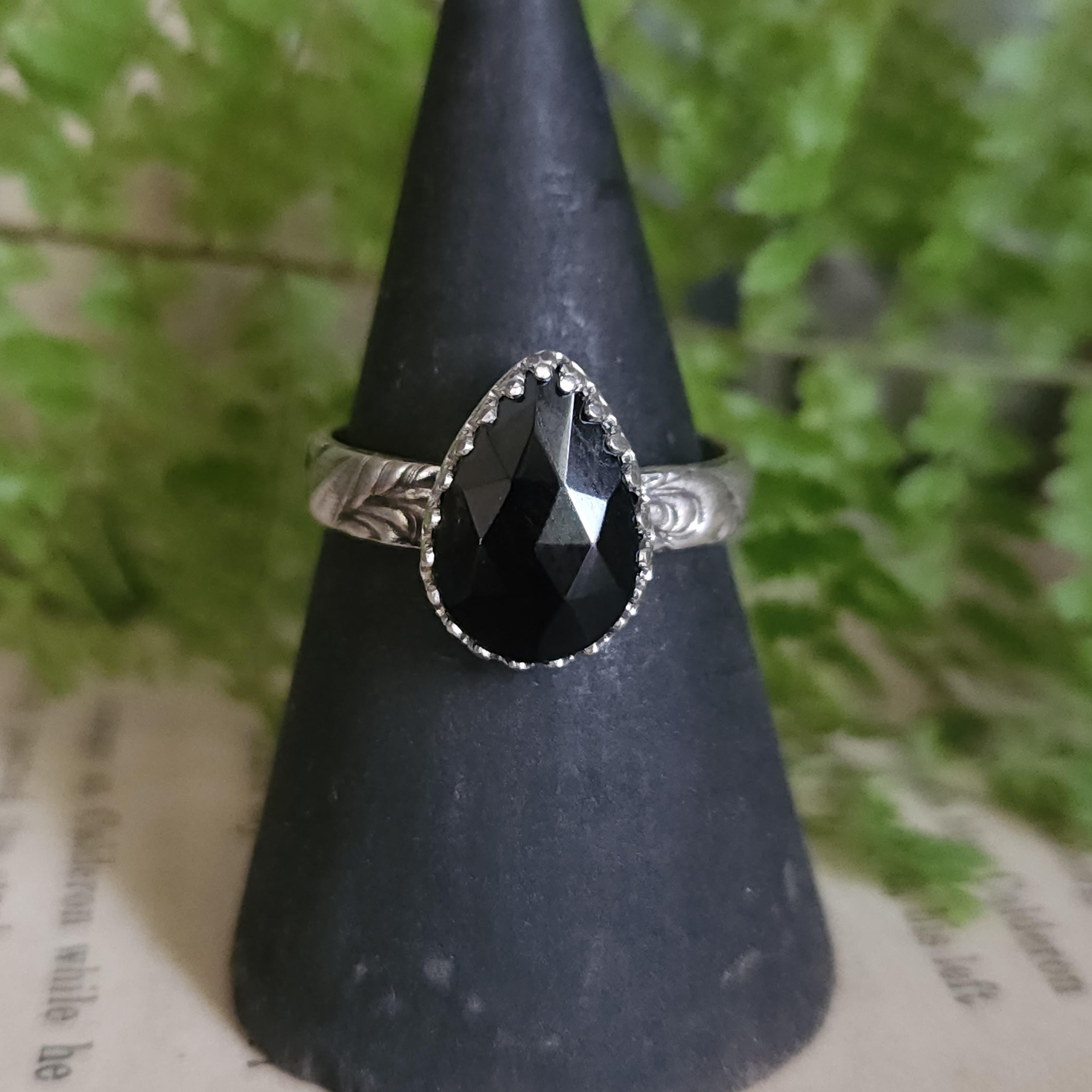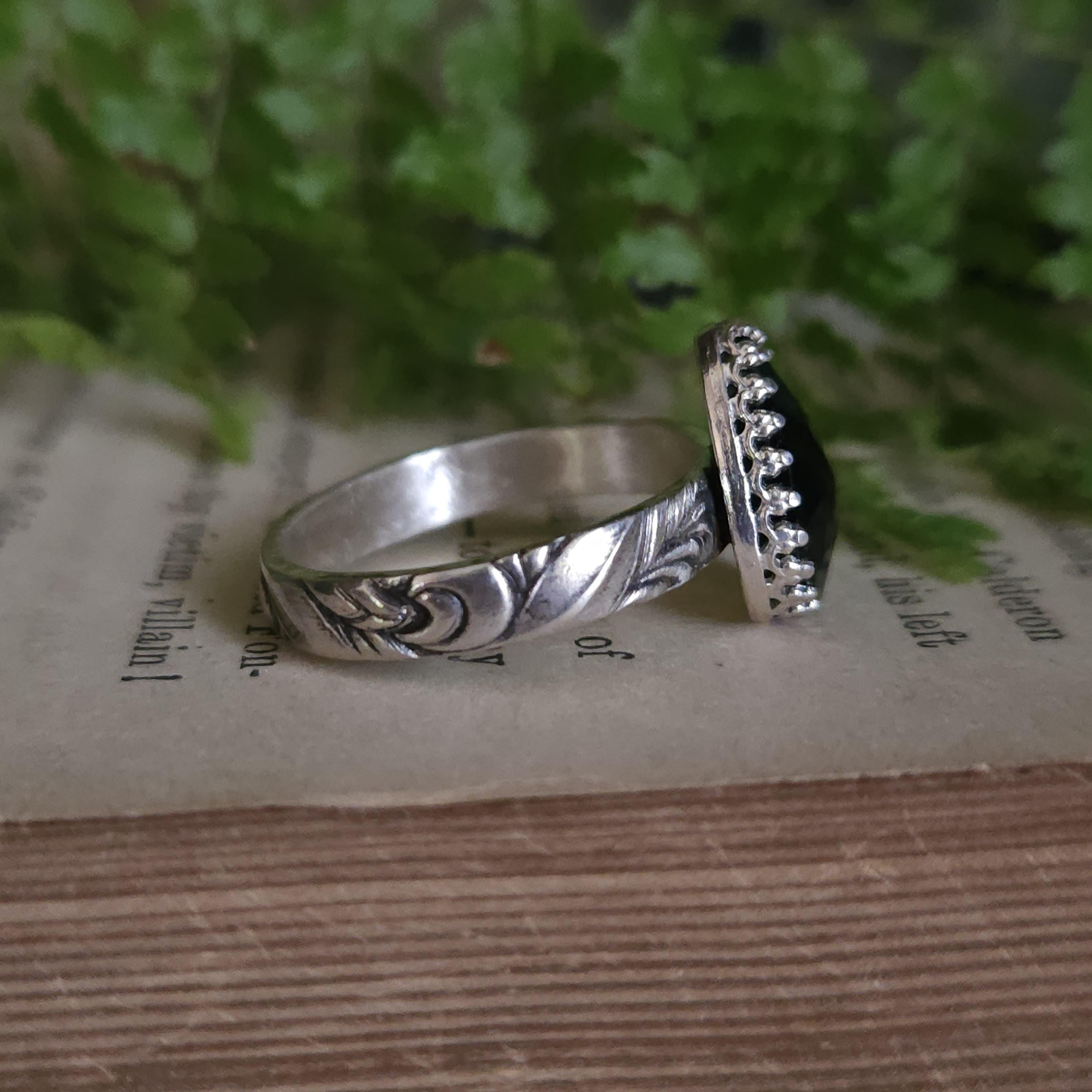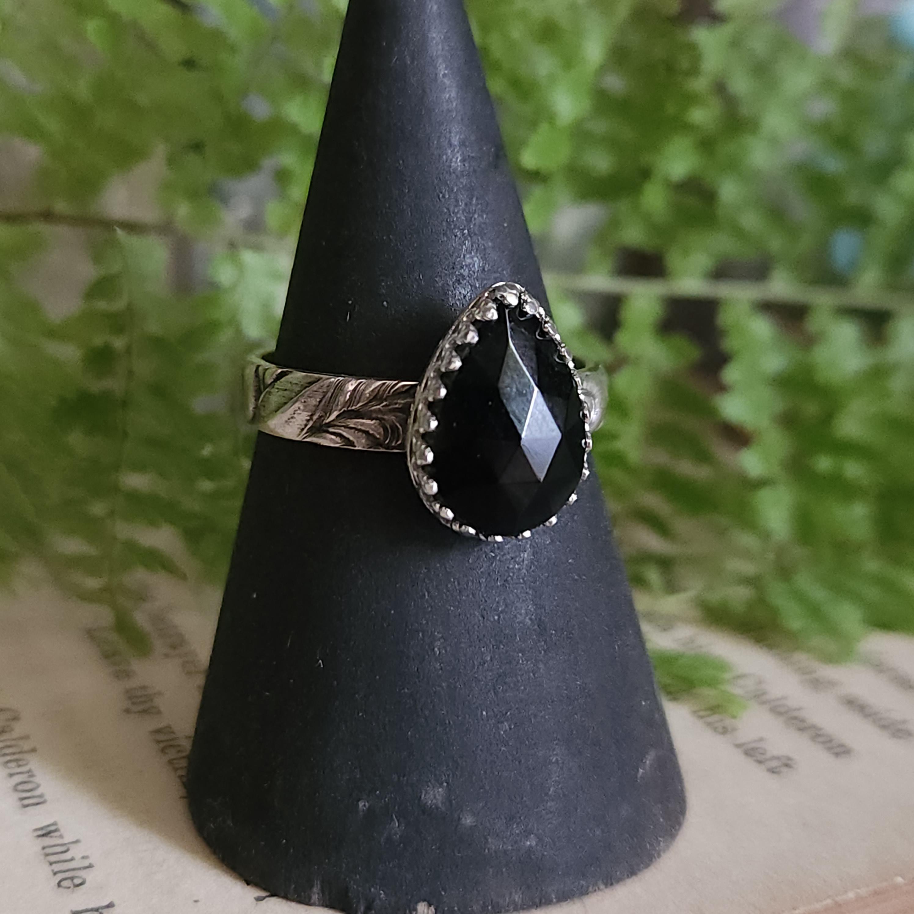 One of a kind handcrafted gemstone ring made using sterling silver and black onyx