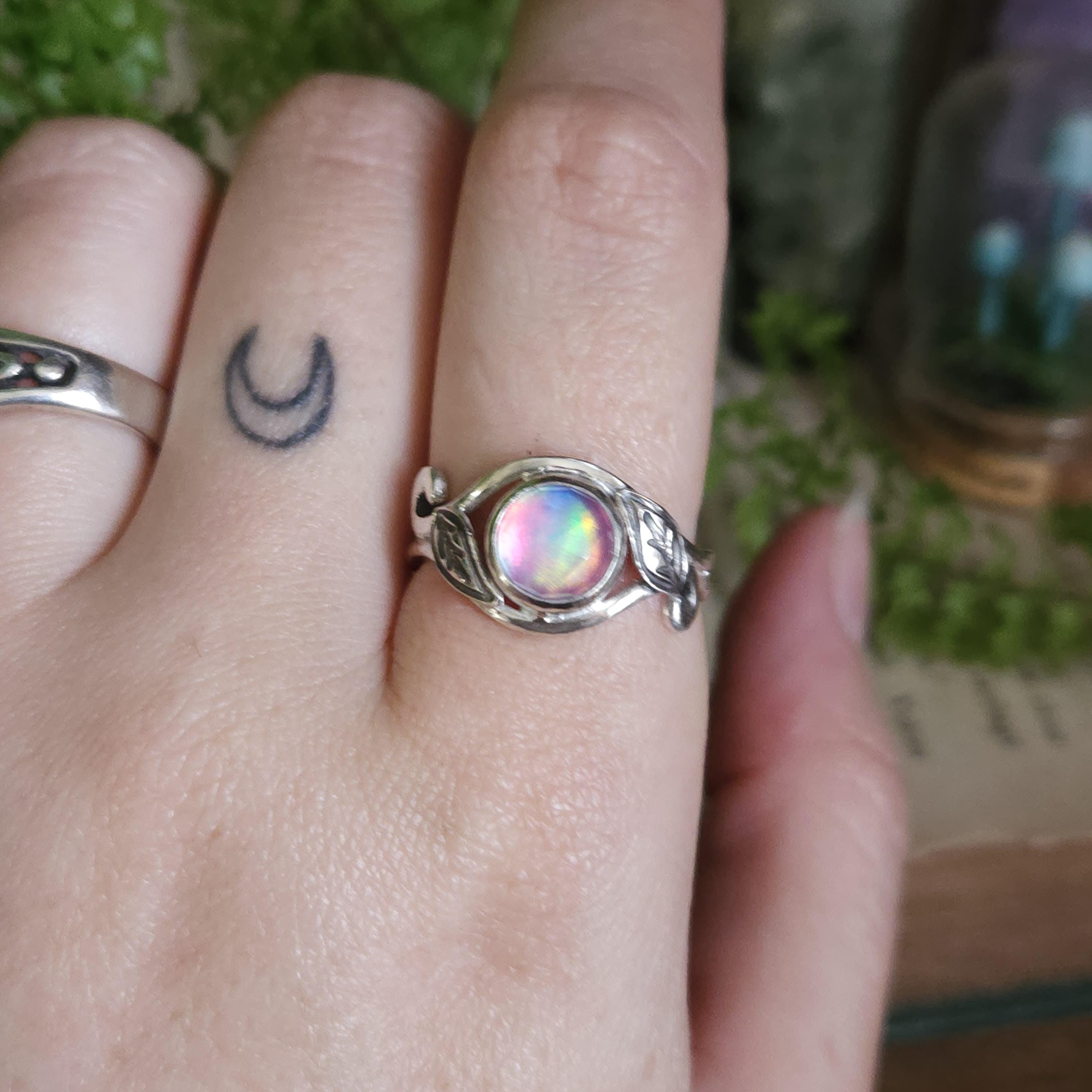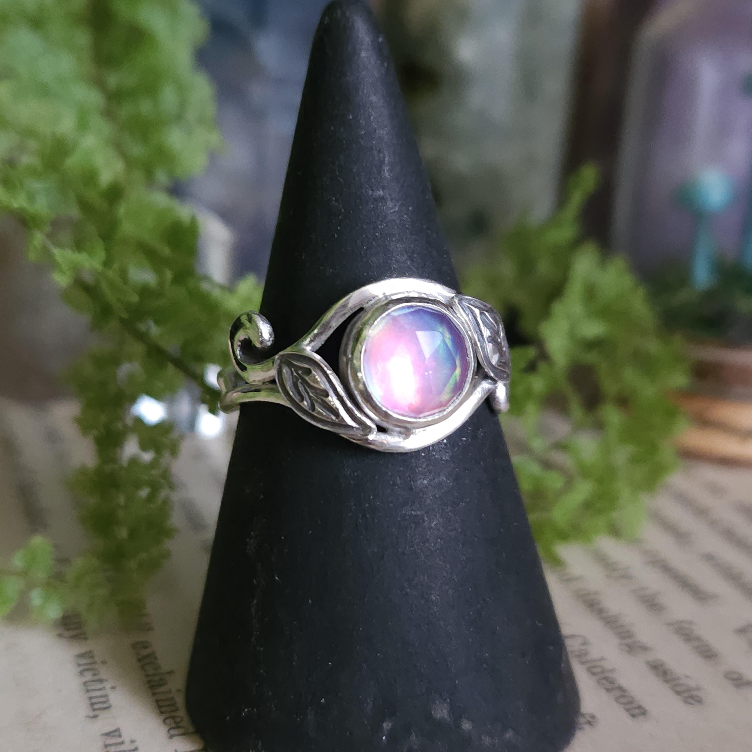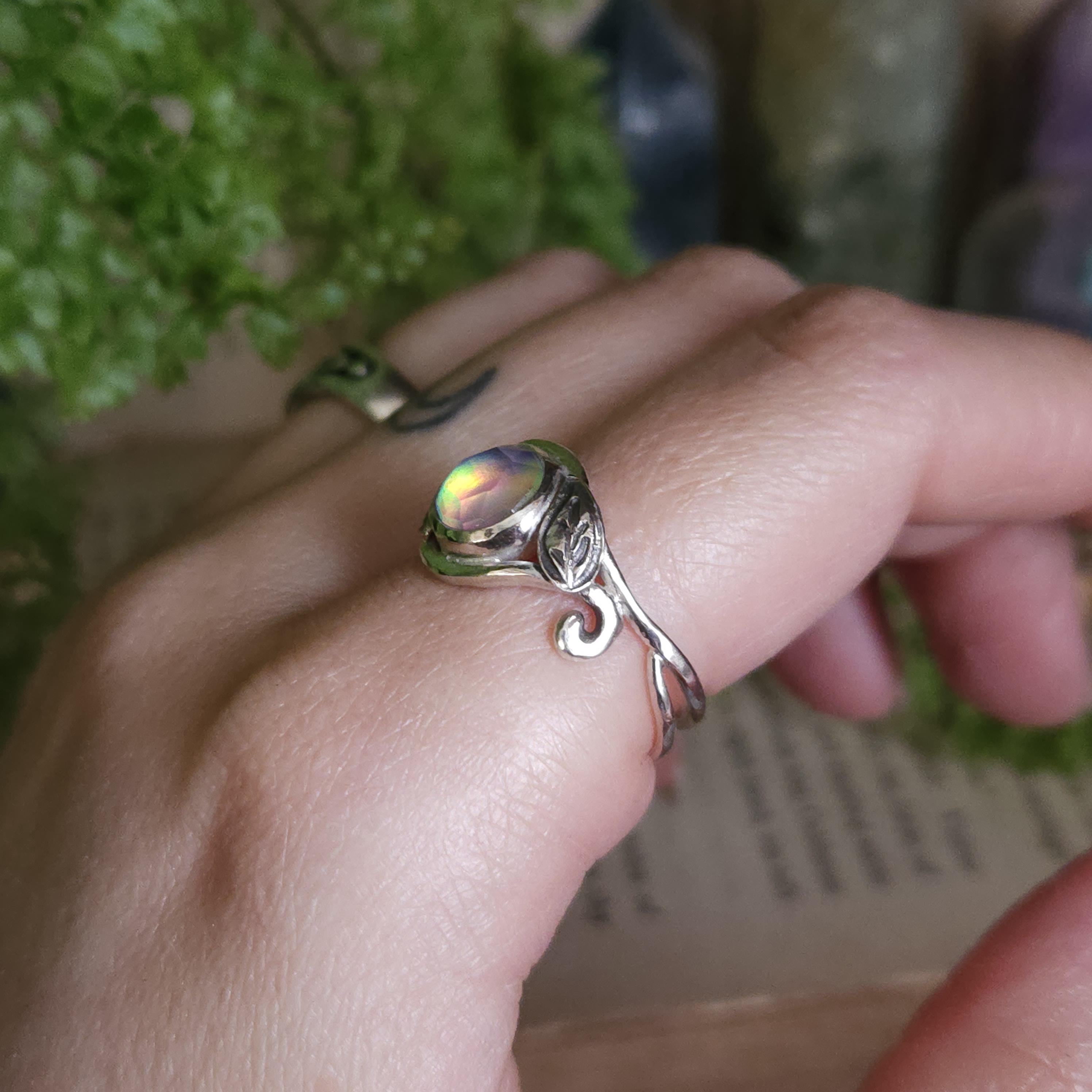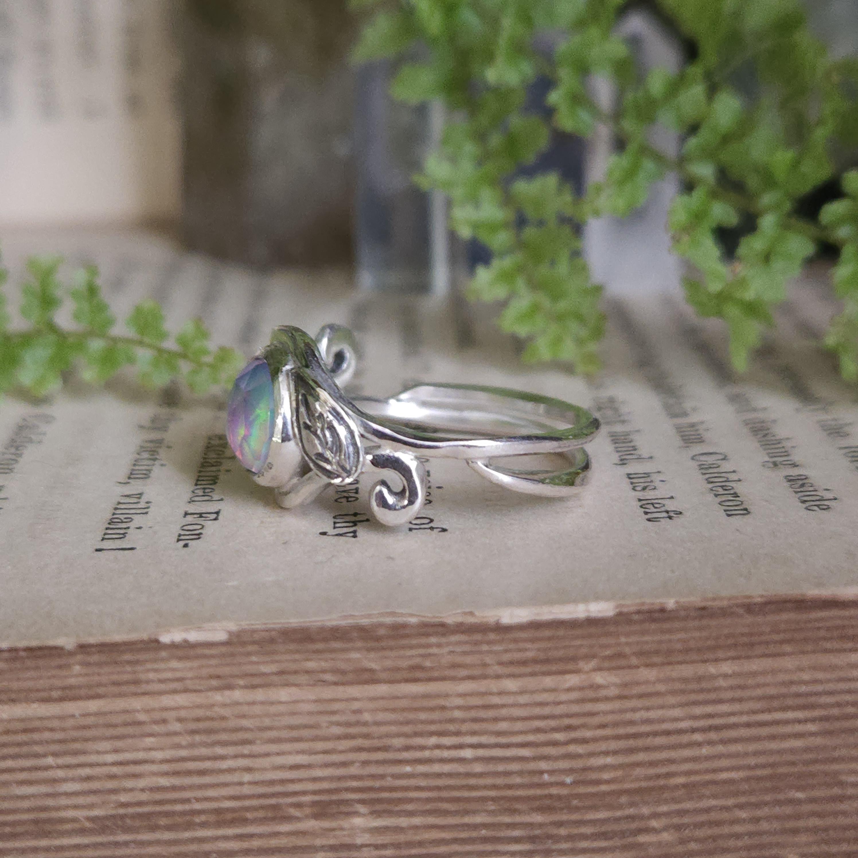 One of a kind handcrafted gemstone ring made using sterling silver and aurora opal. Aurora opals are manmade stones