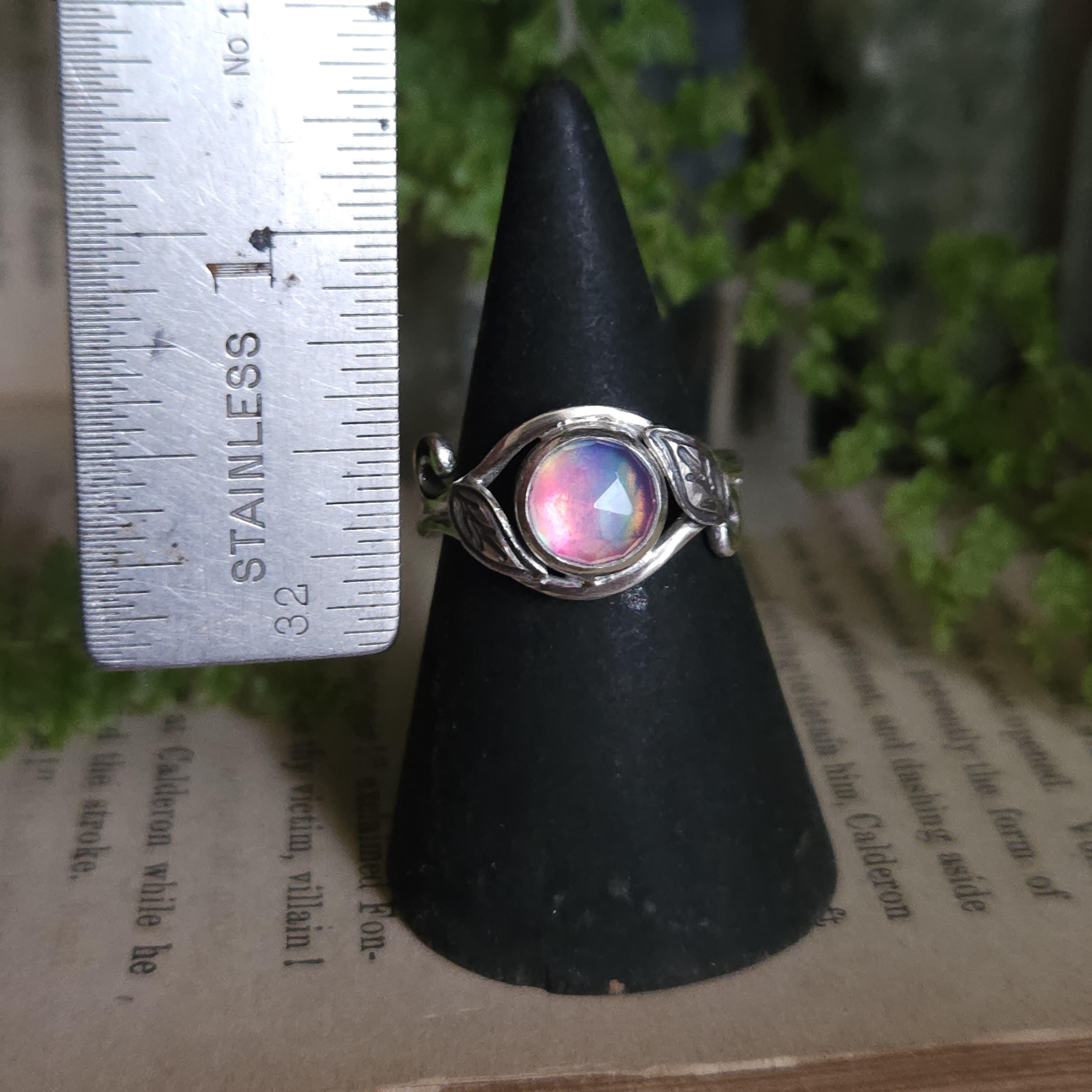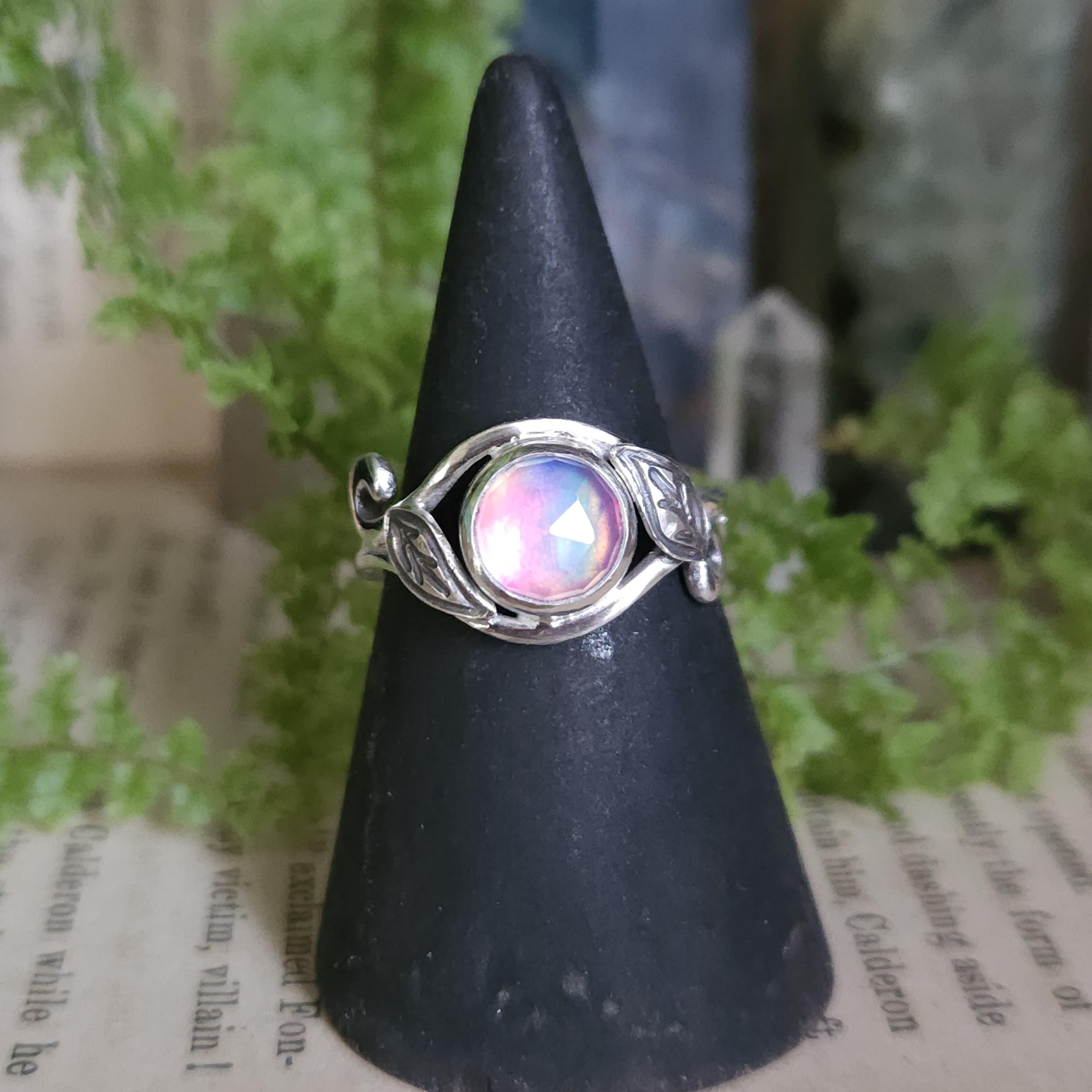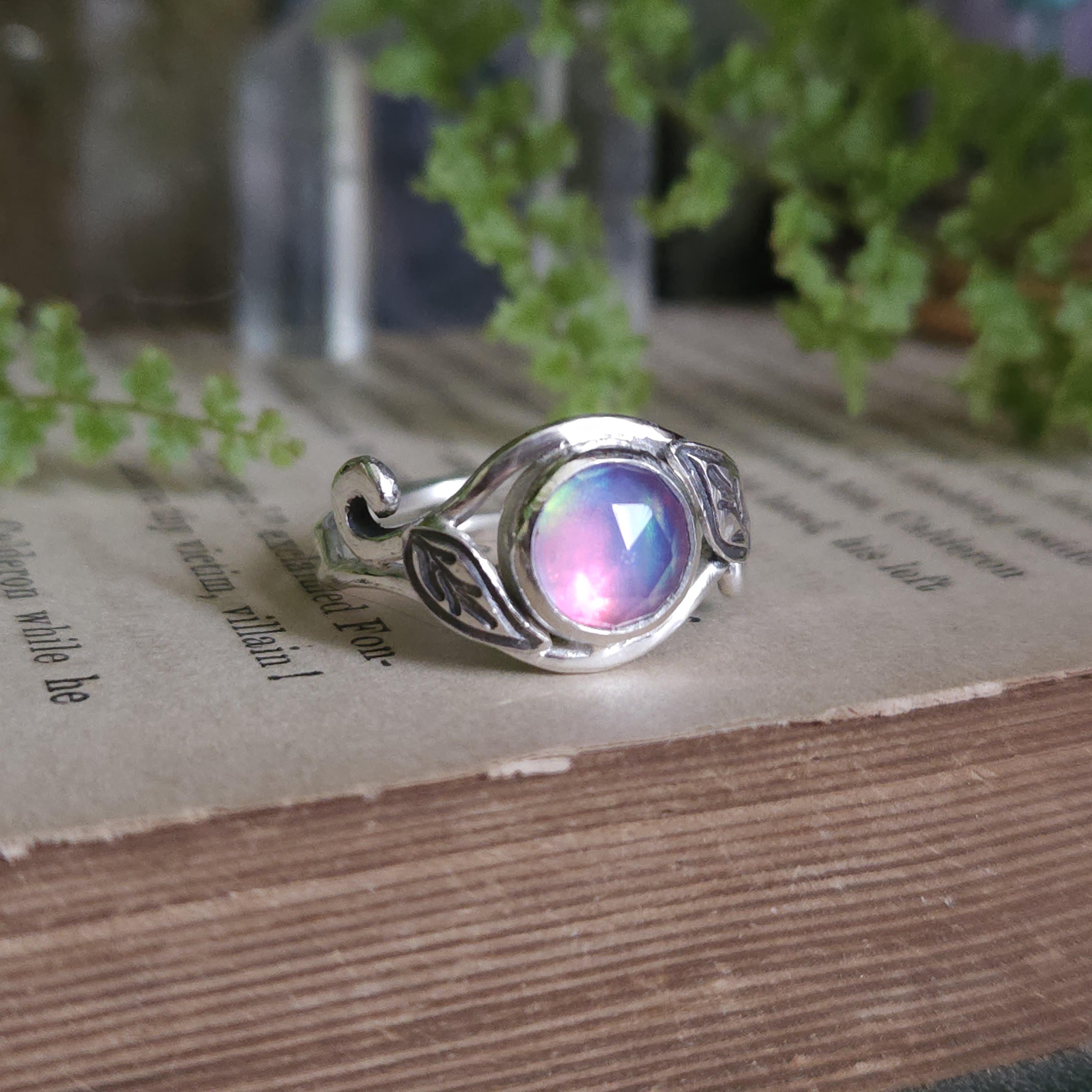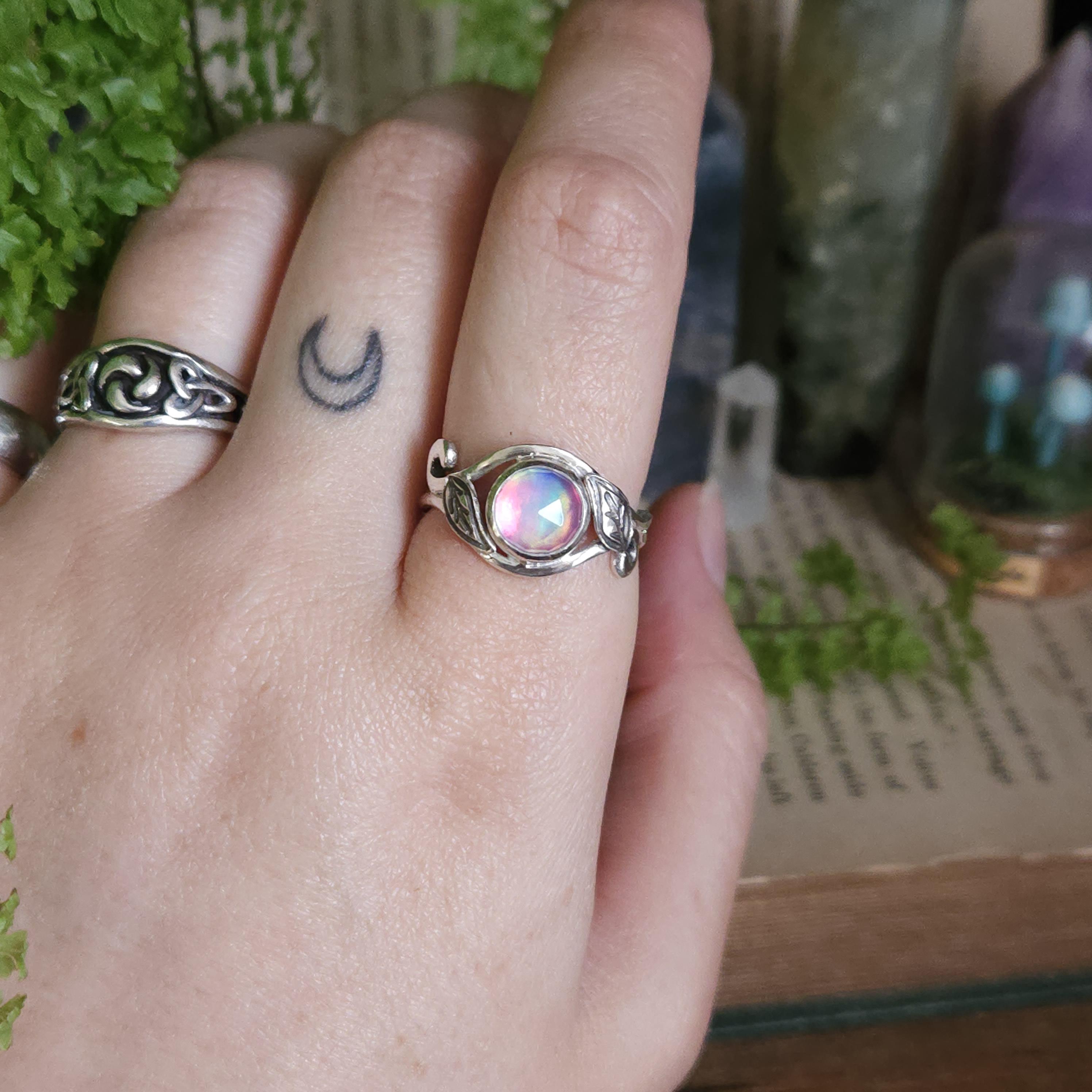 One of a kind handcrafted gemstone ring made using sterling silver and aurora opal. Aurora opals are manmade stones