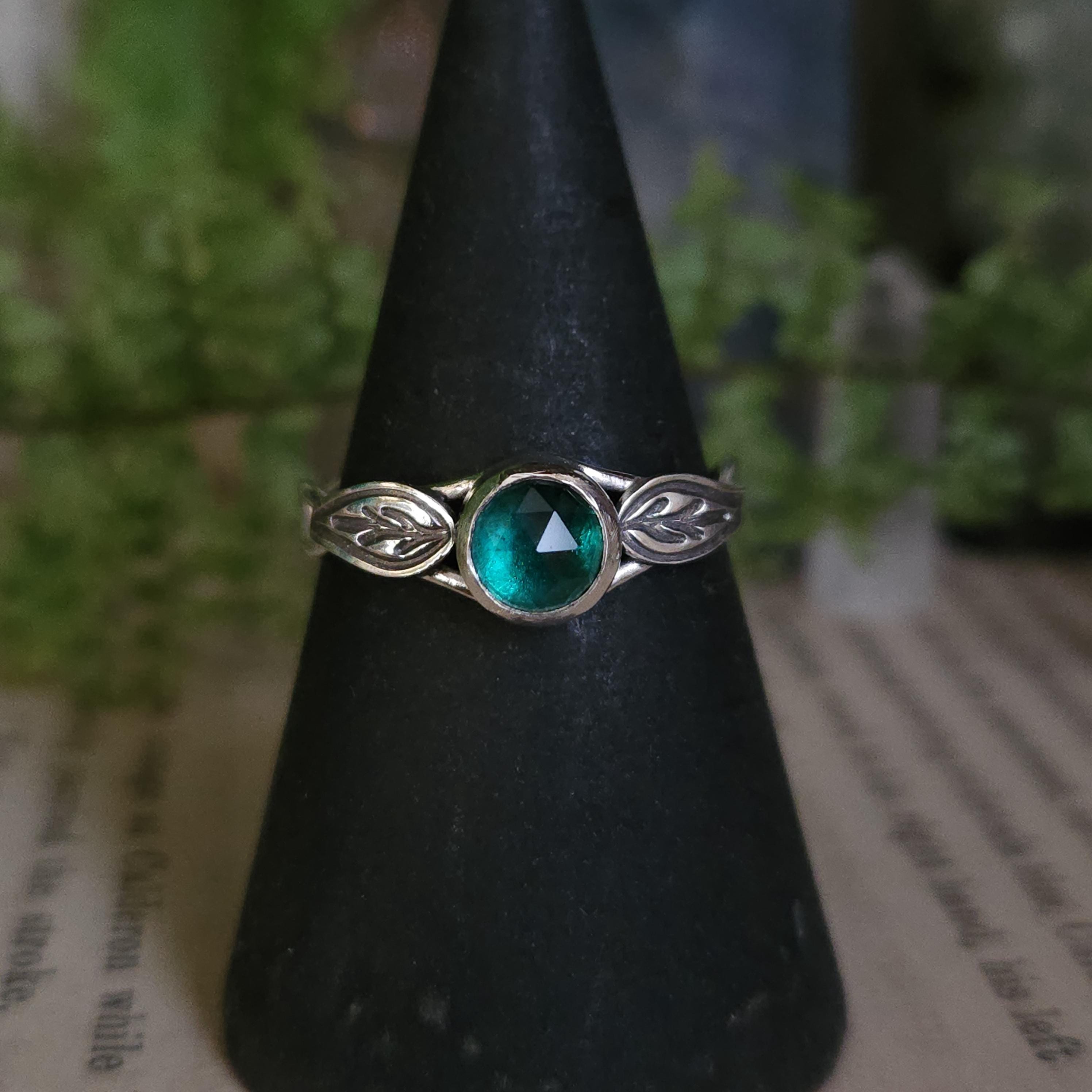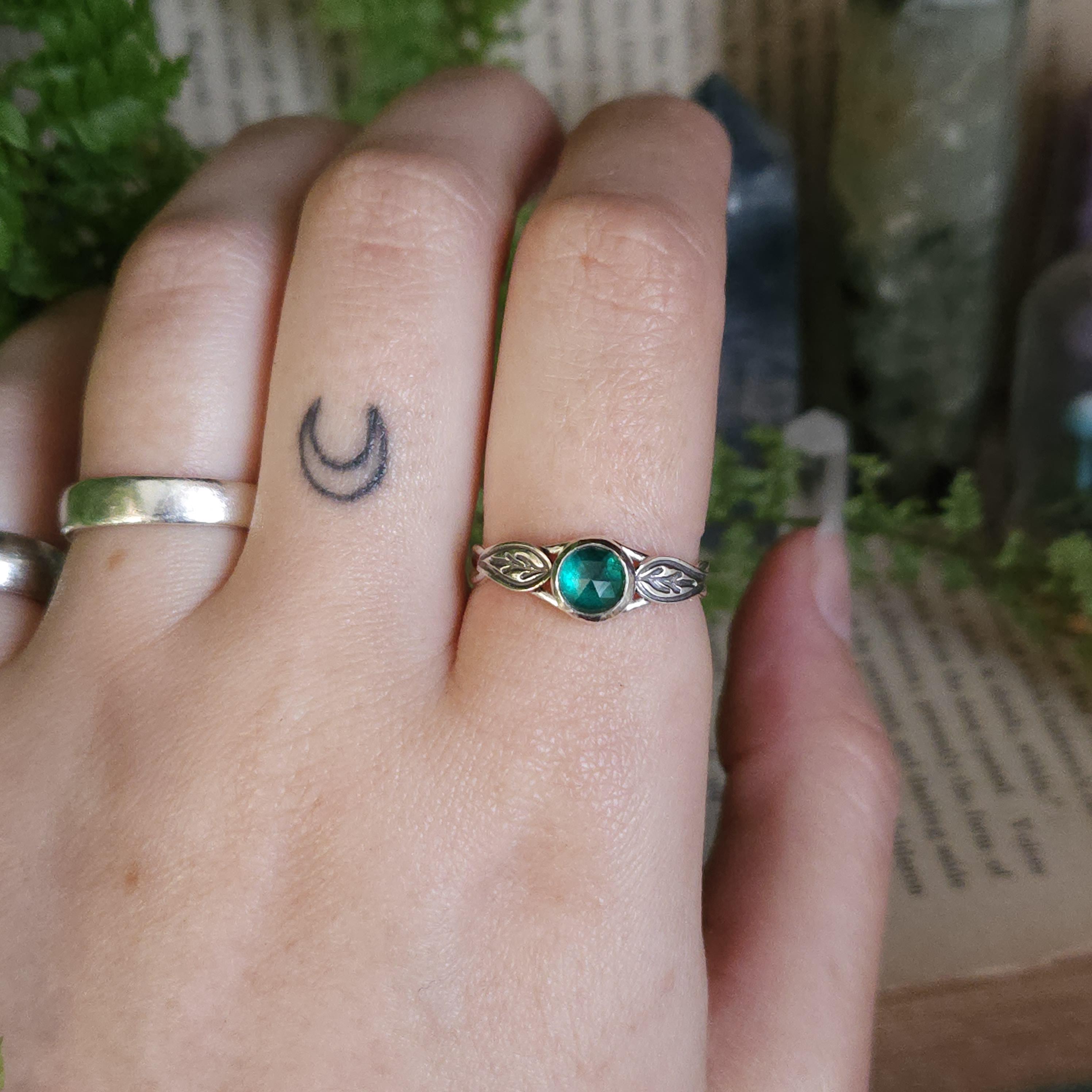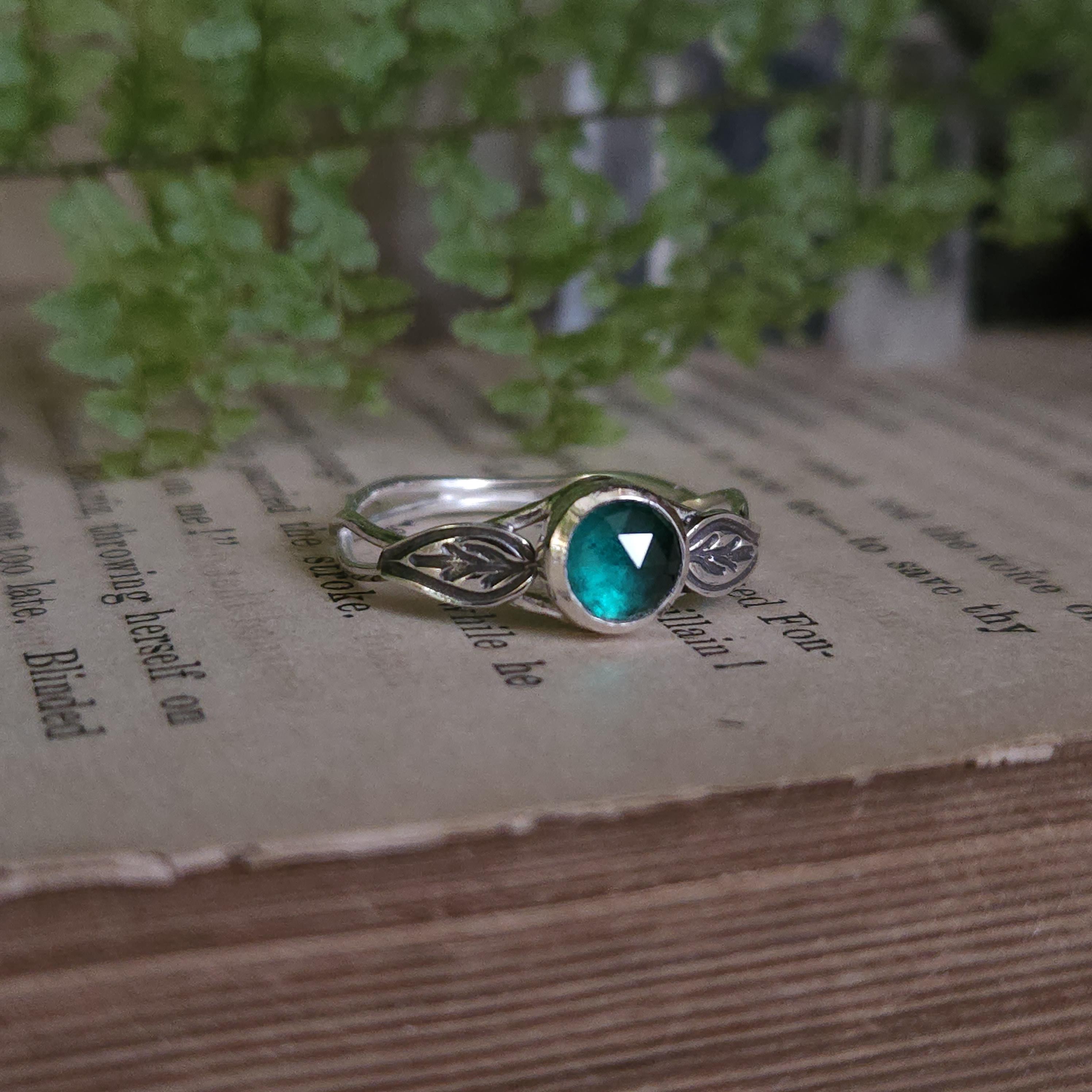 One of a kind handcrafted gemstone ring made using sterling silver and lab grown green tourmaline