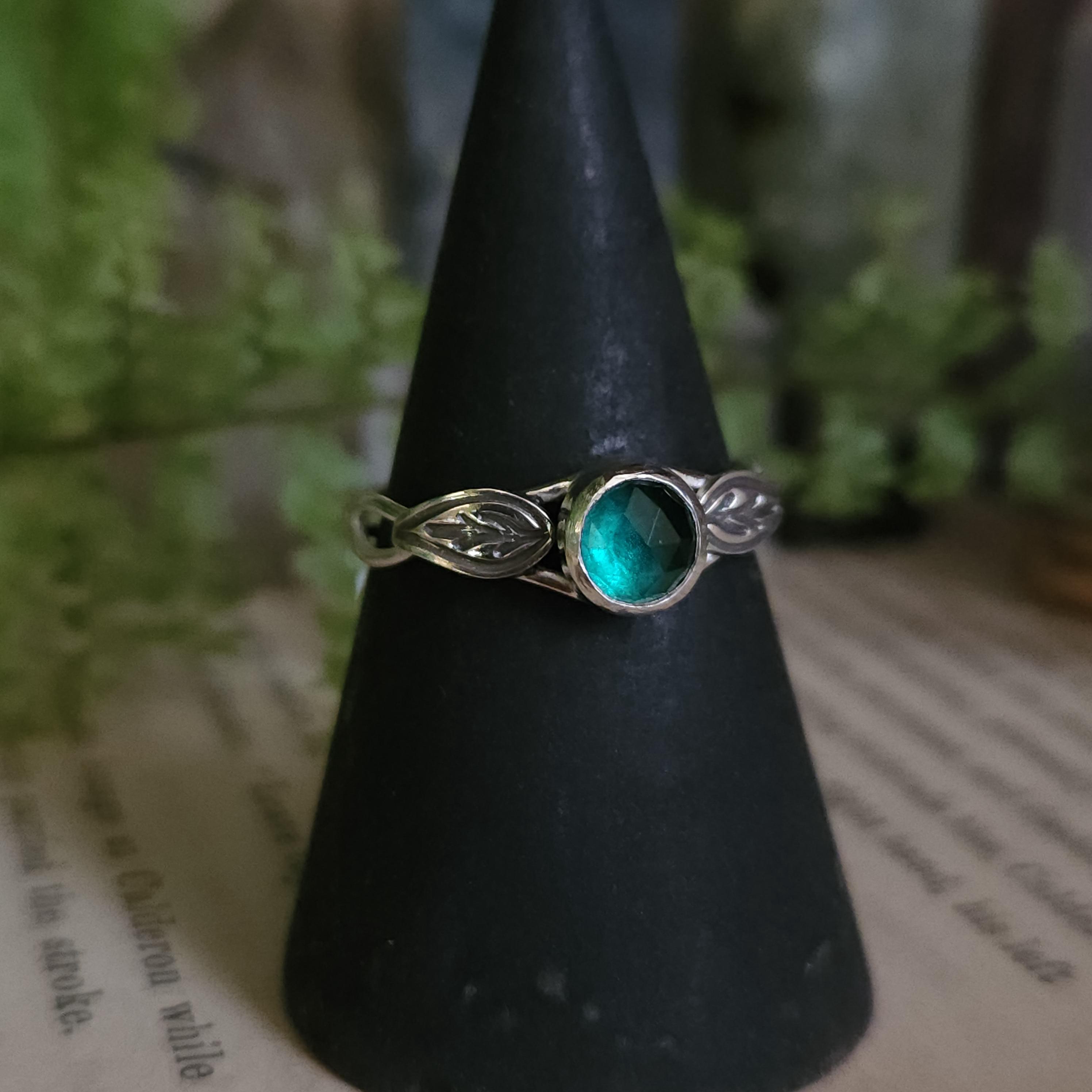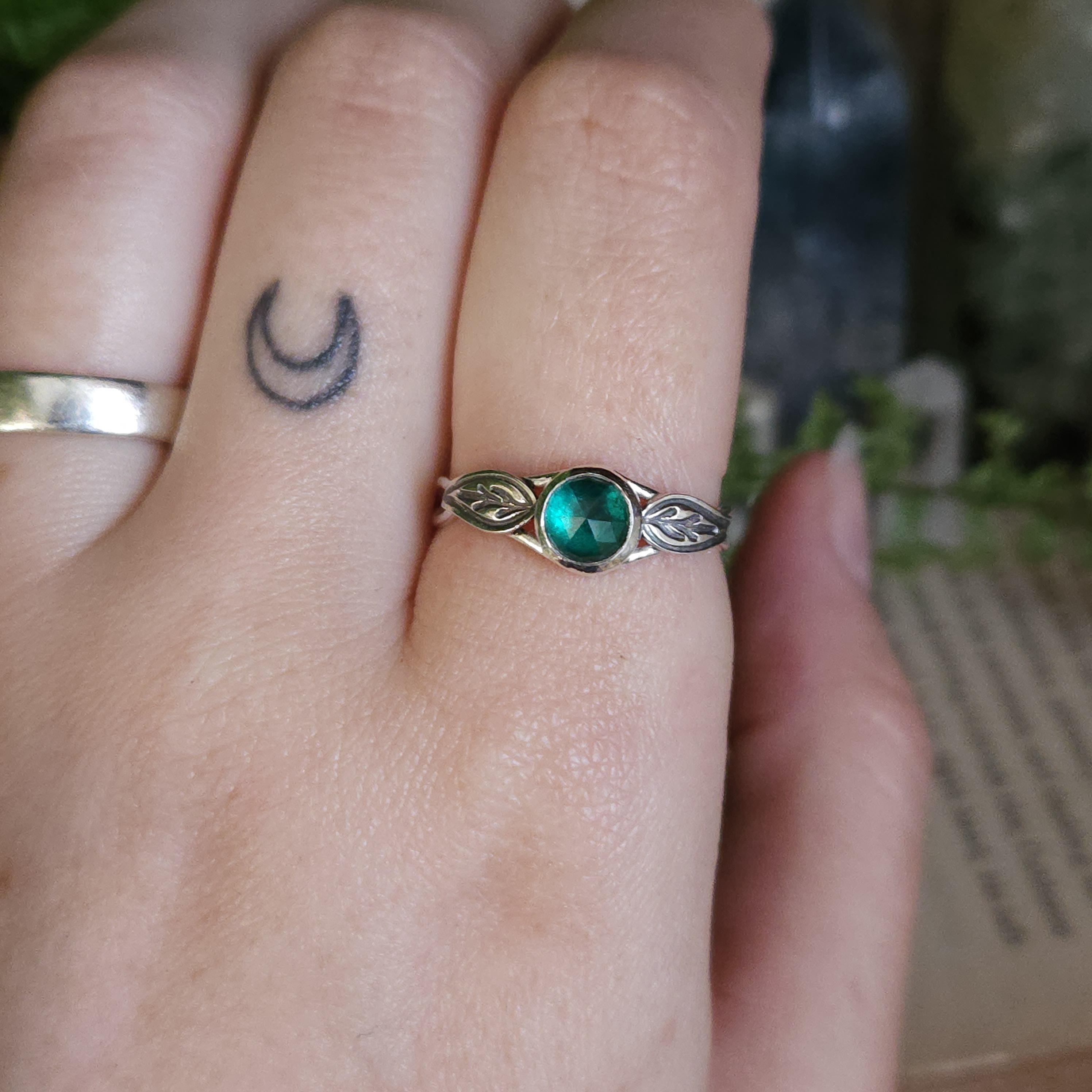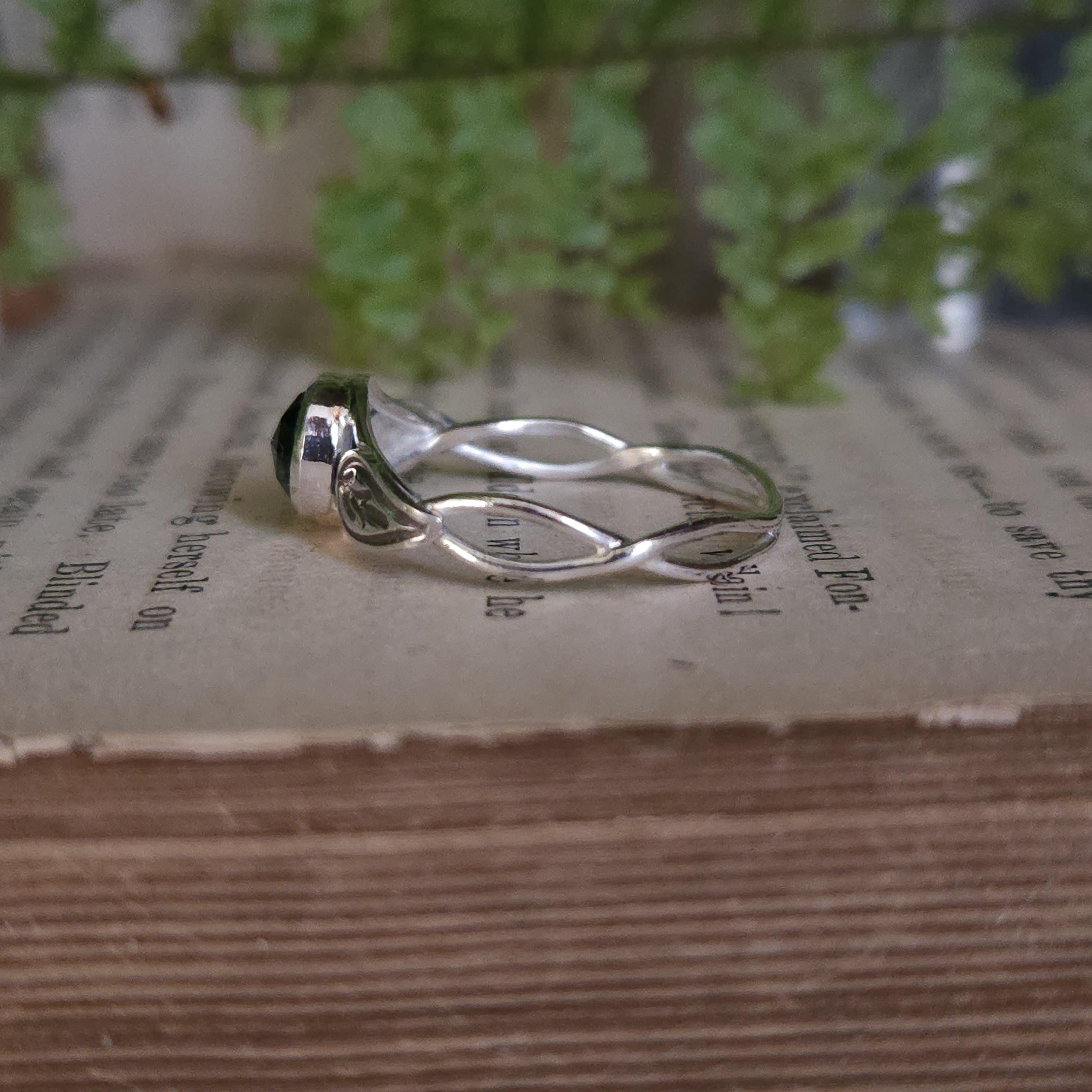 One of a kind handcrafted gemstone ring made using sterling silver and lab grown green tourmaline