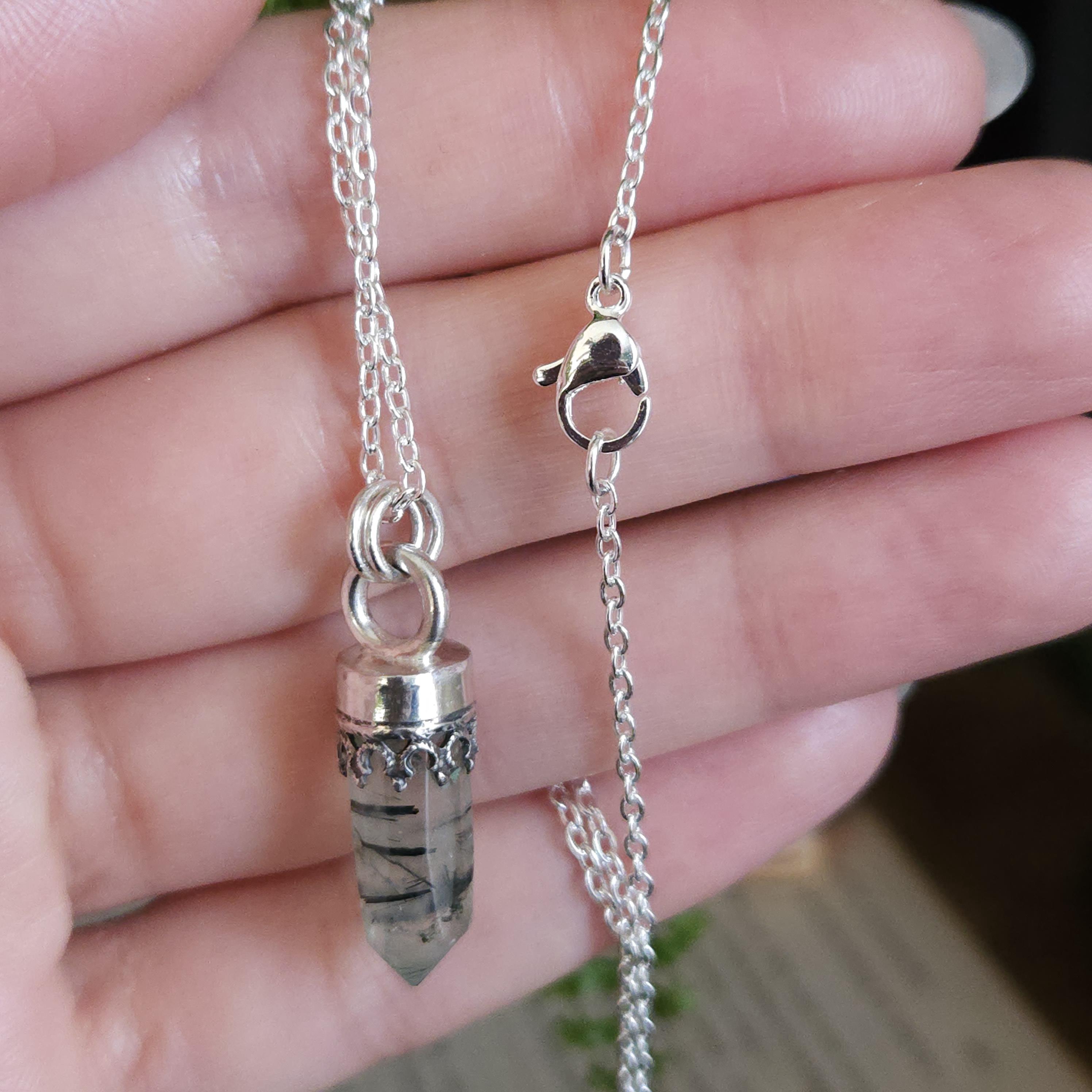This pendant comes on an 18 inch silver plated stainless steel chain. The chain is lead, nickel, and cadmium free