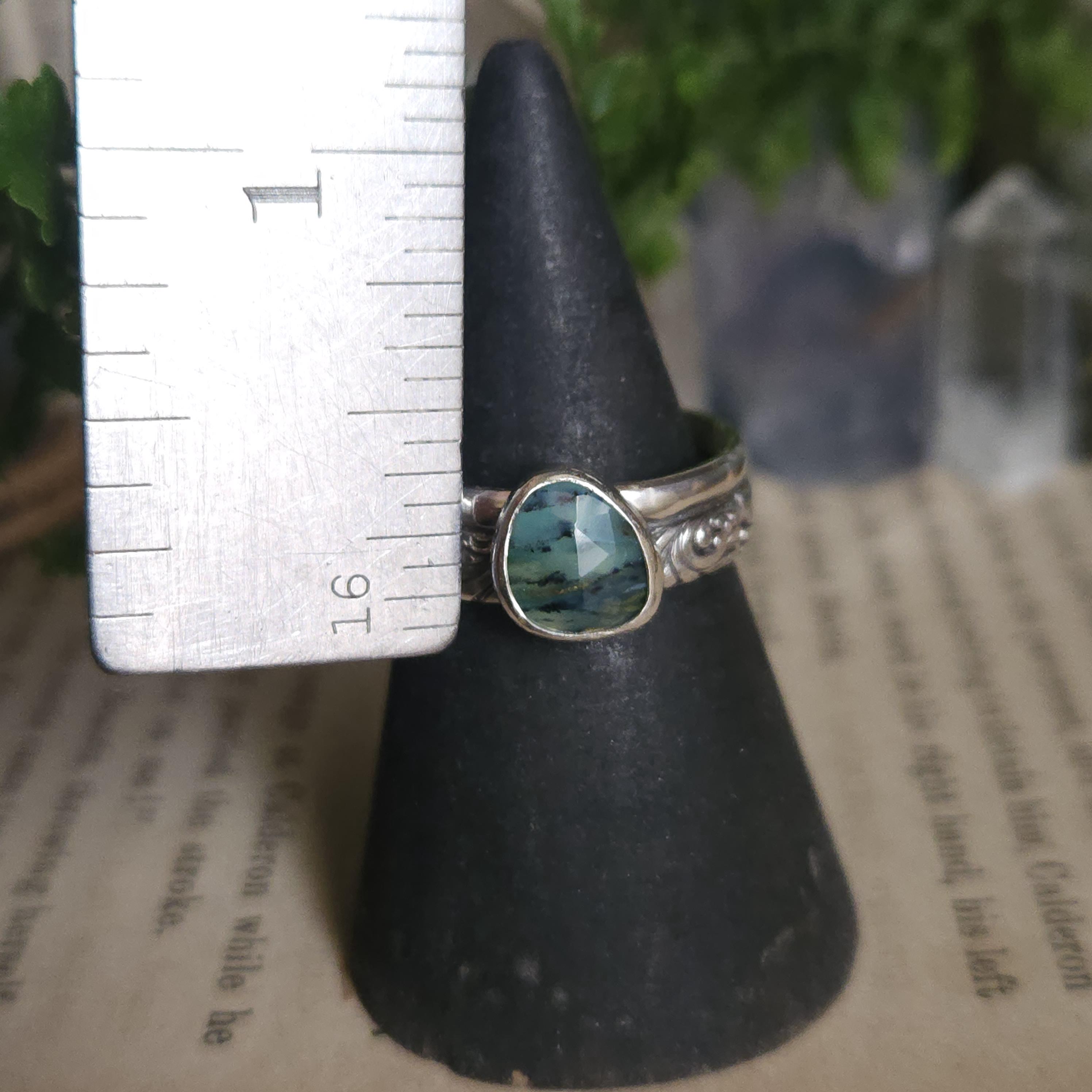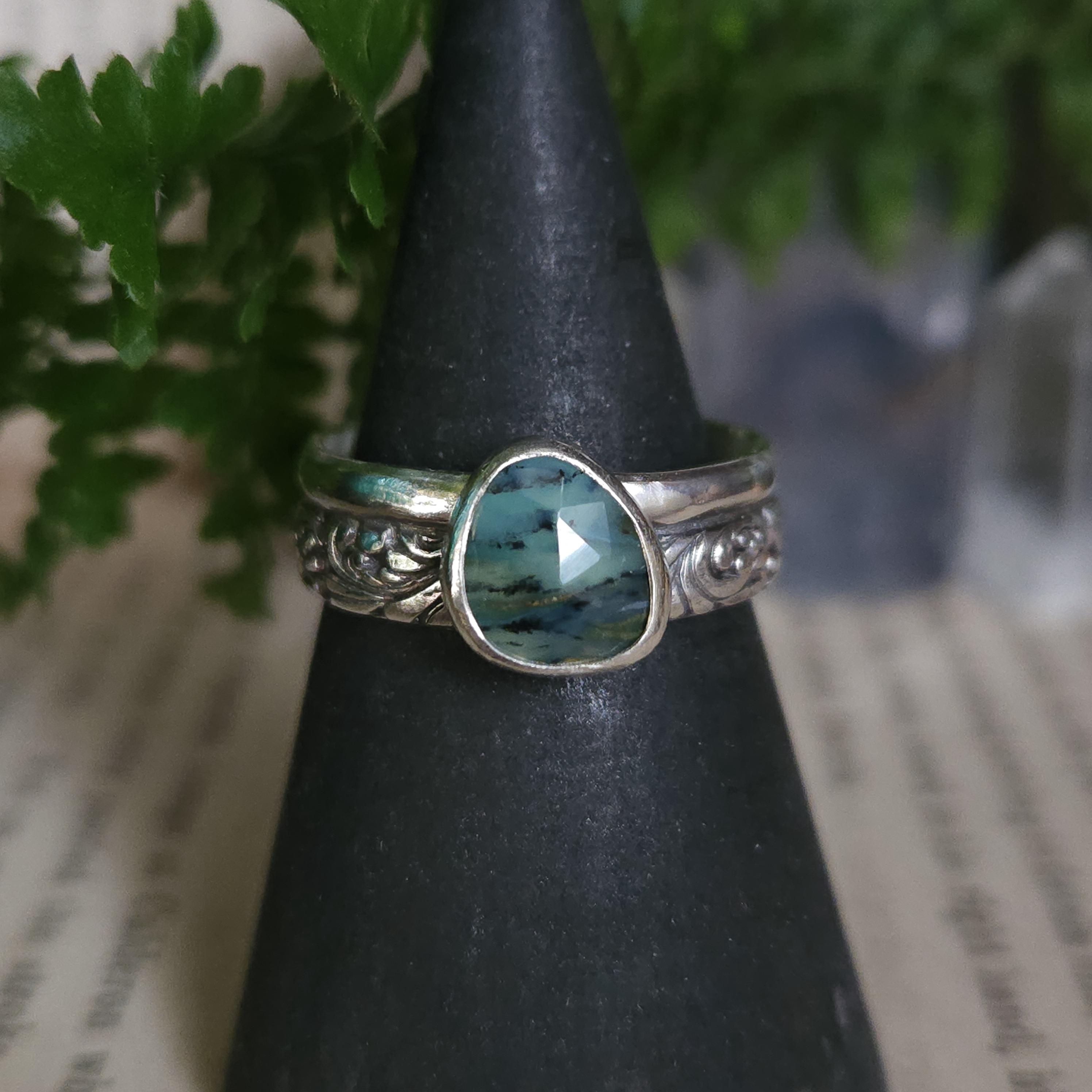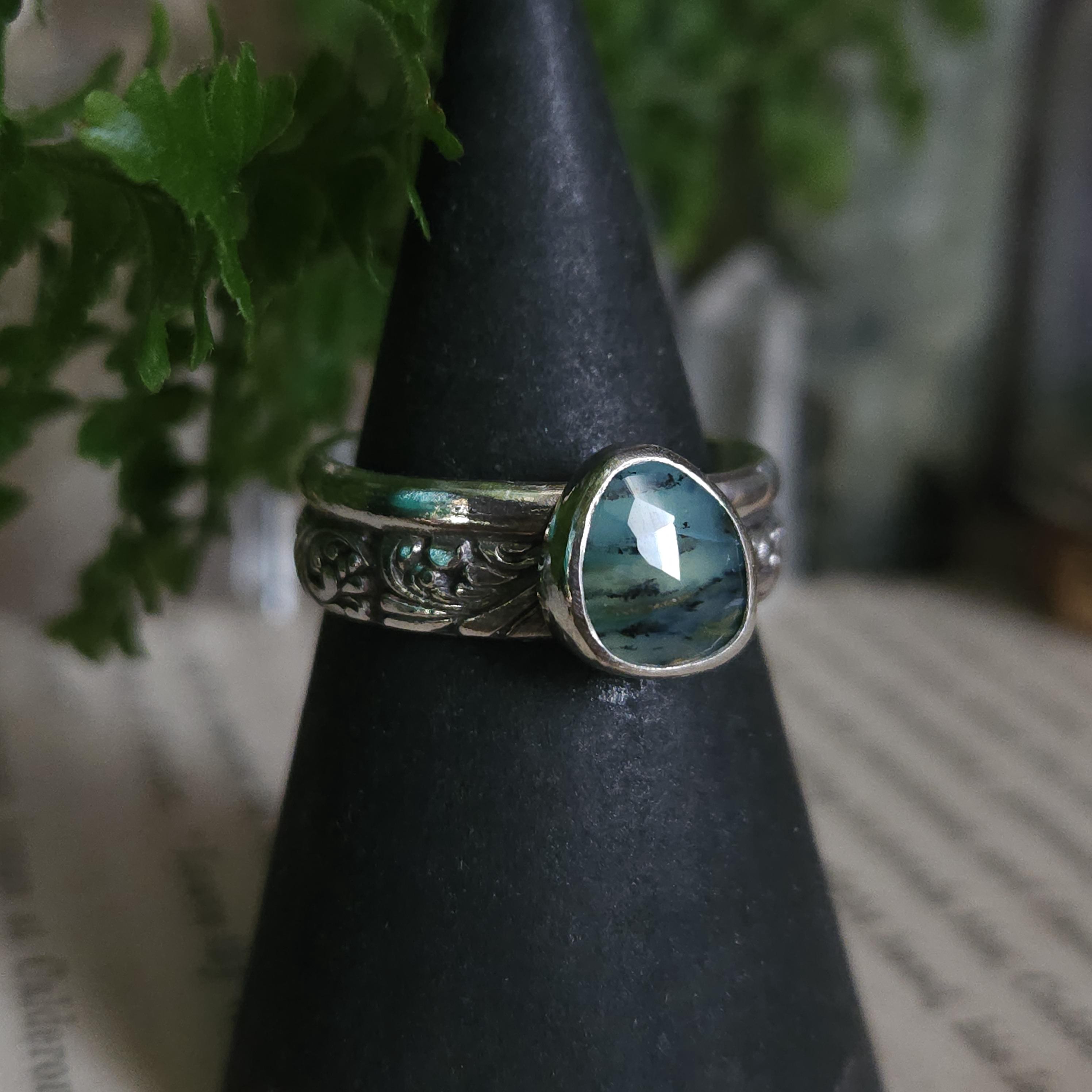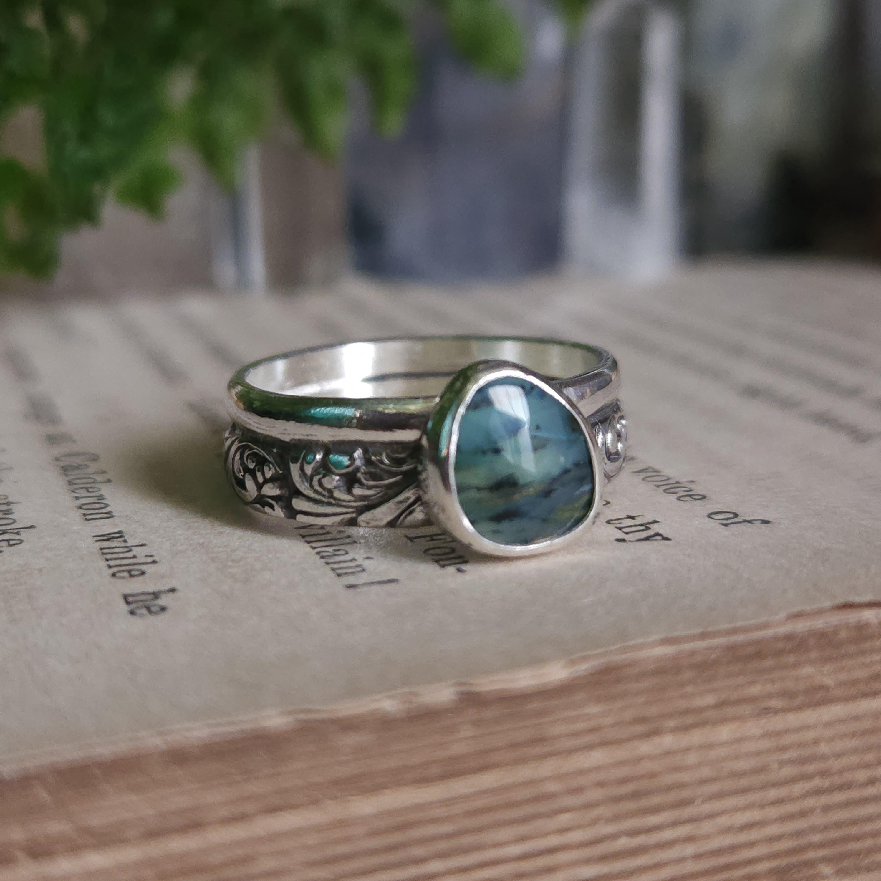 One of a kind handcrafted gemstone ring made using sterling silver and Peruvian blue opal