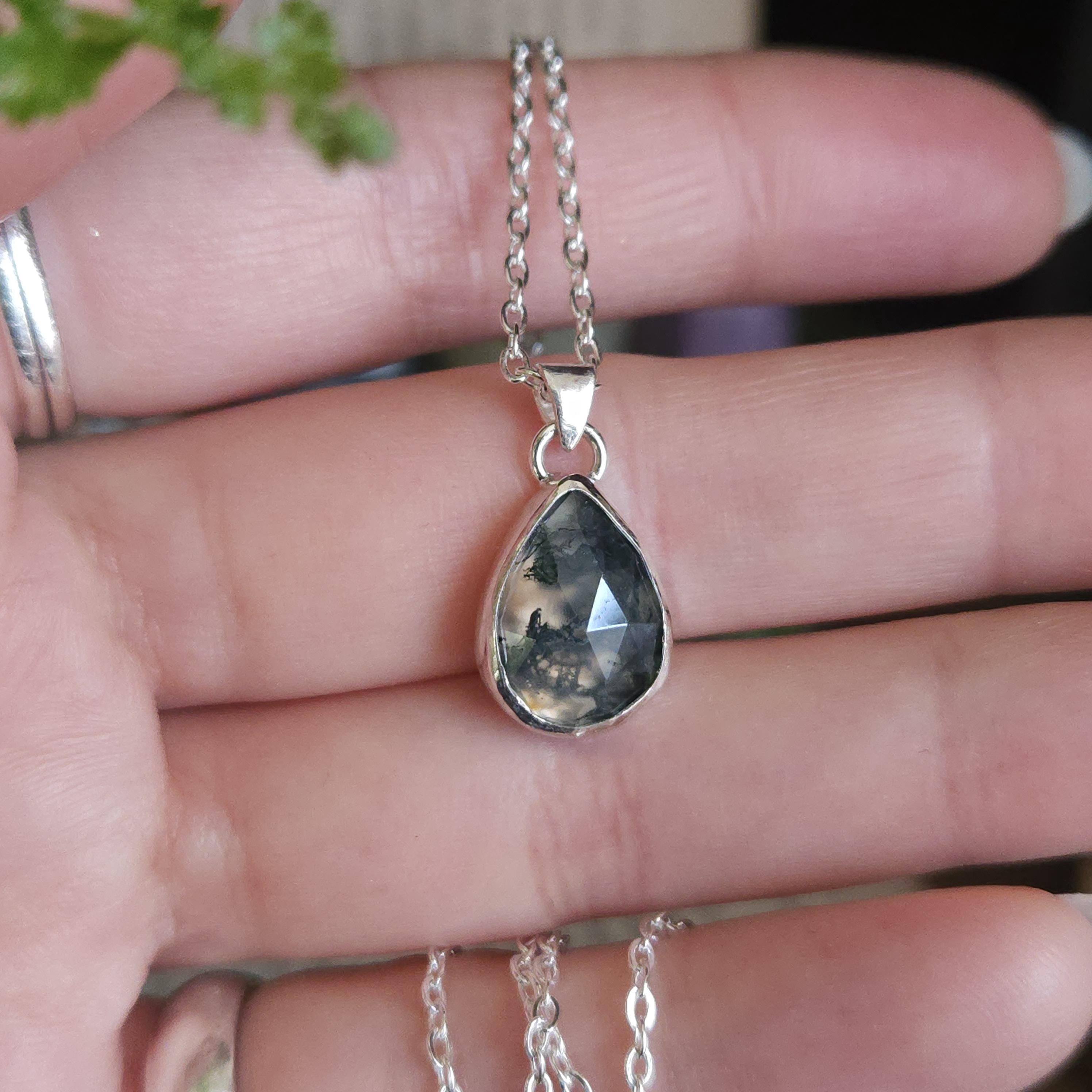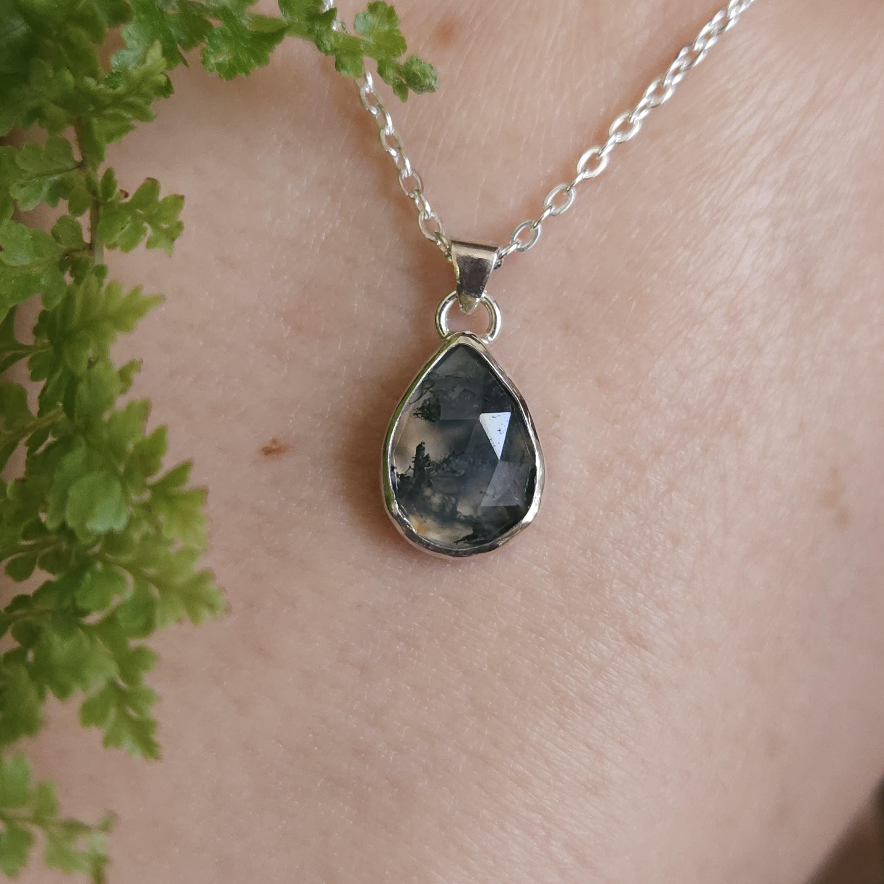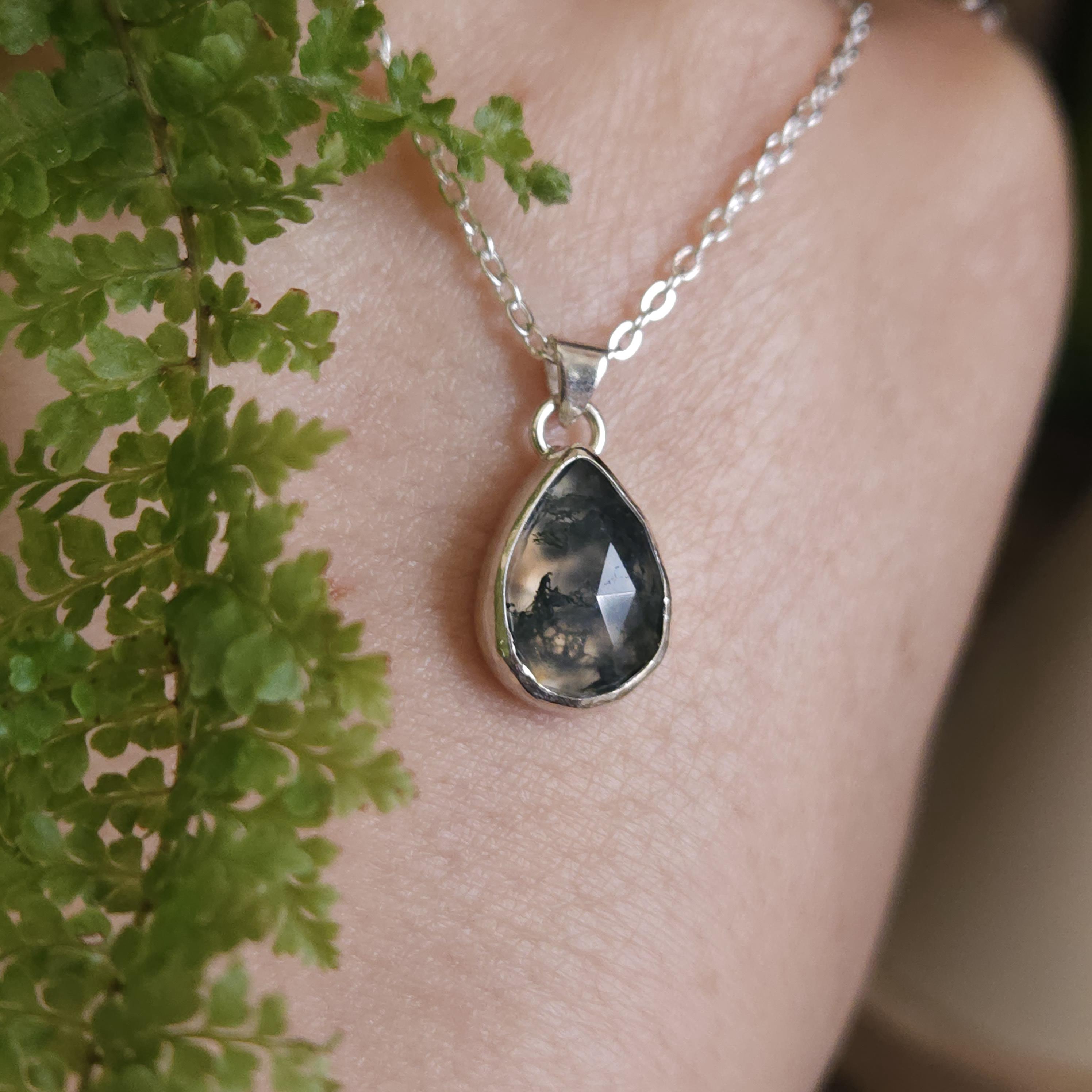 One of a kind artisan handmade gemstone pendant made using sterling silver and moss agate
