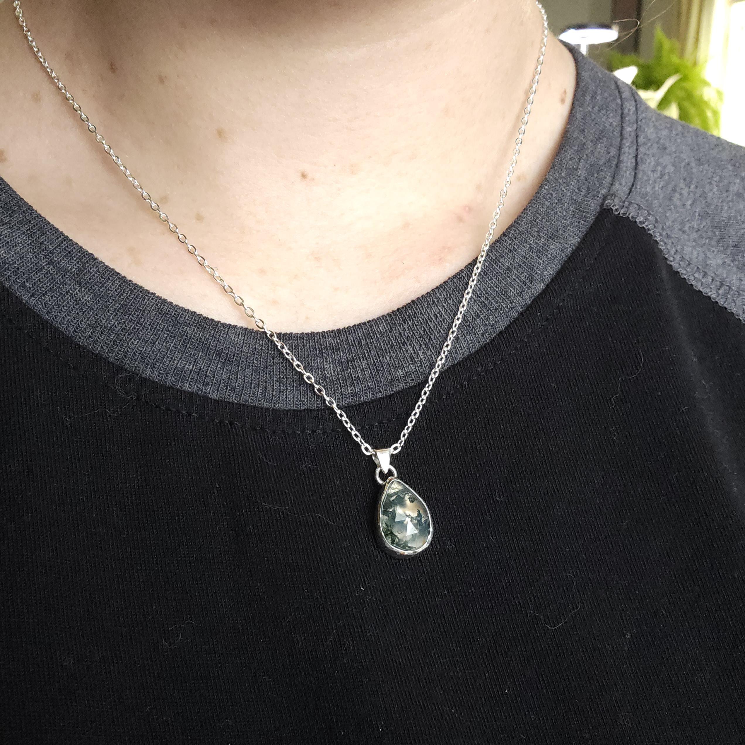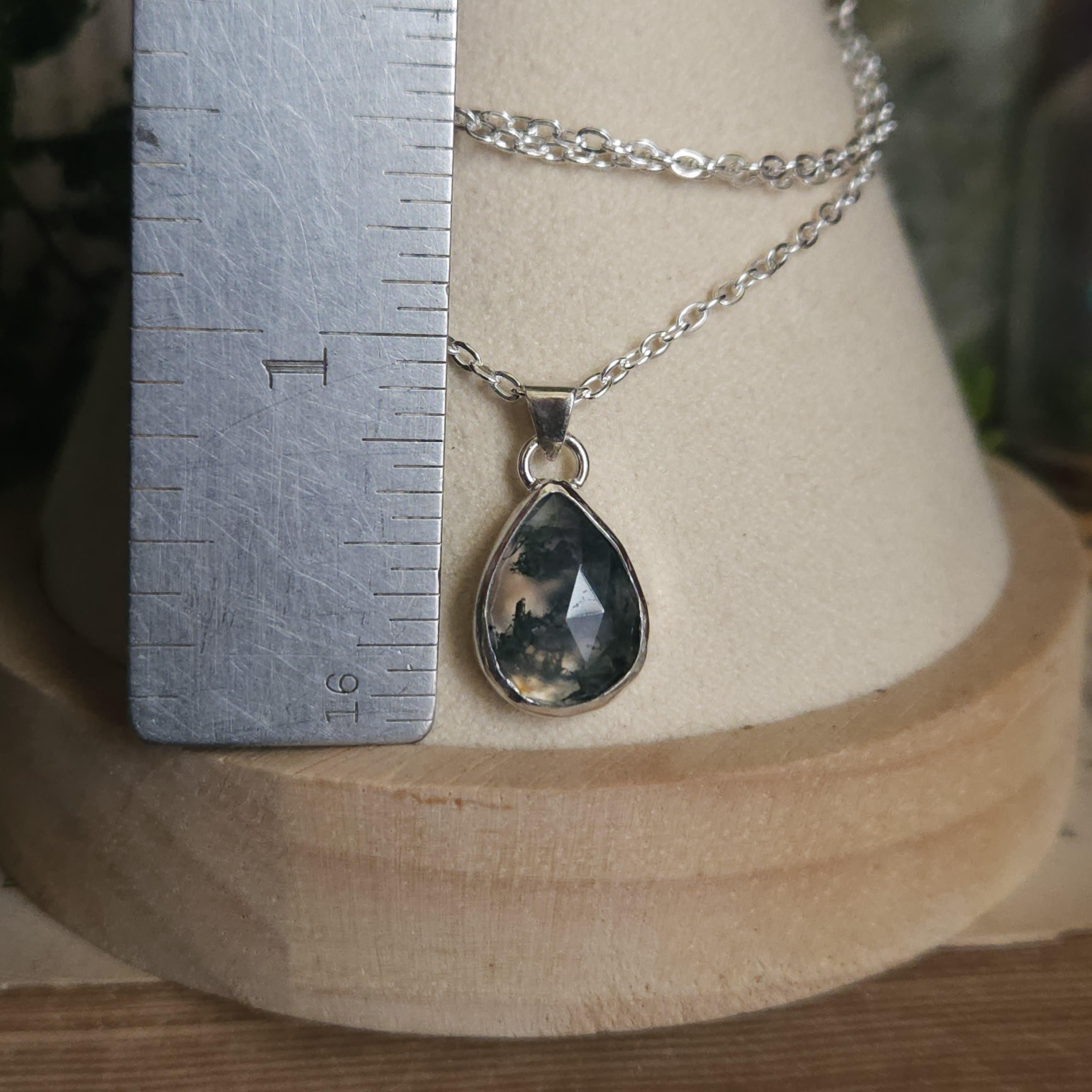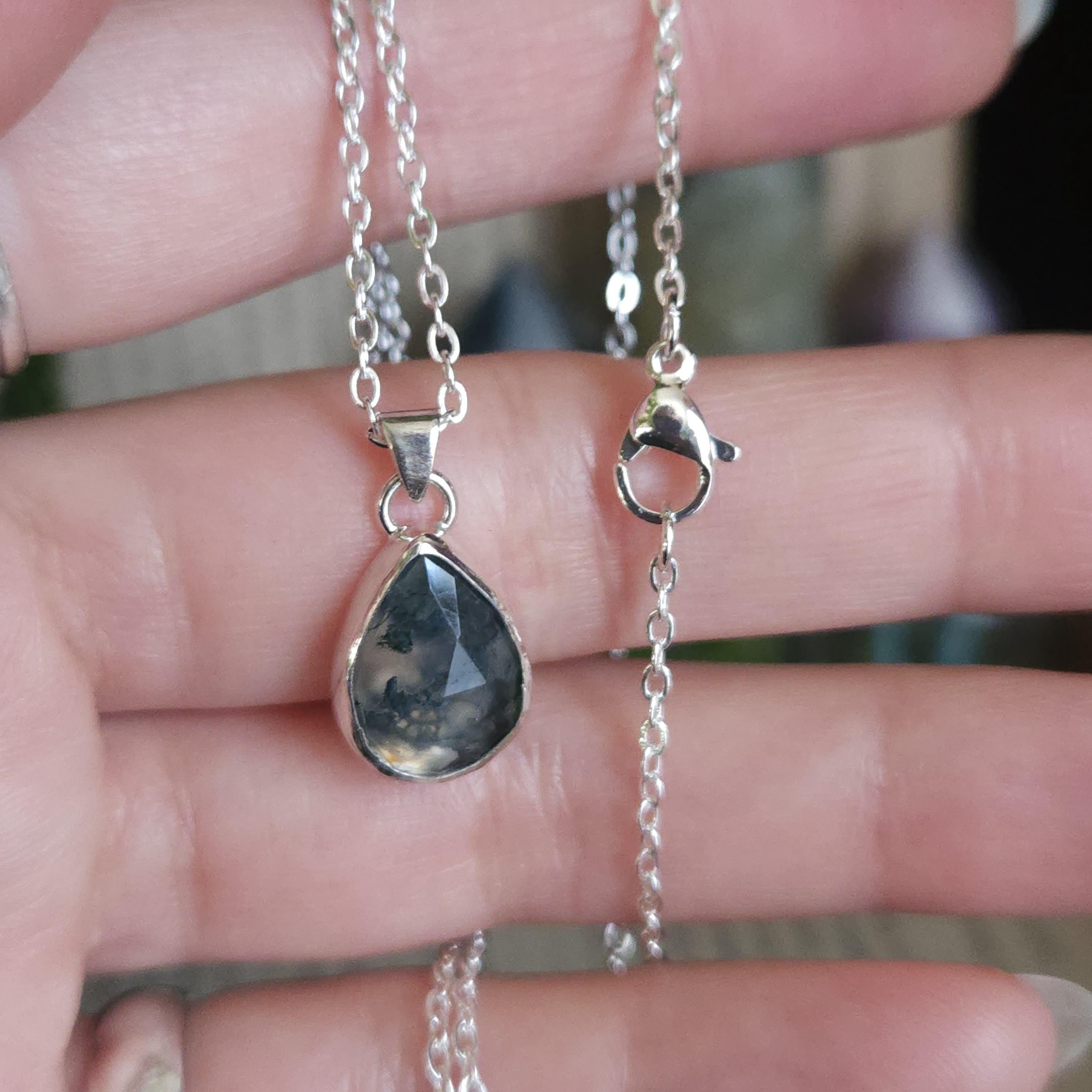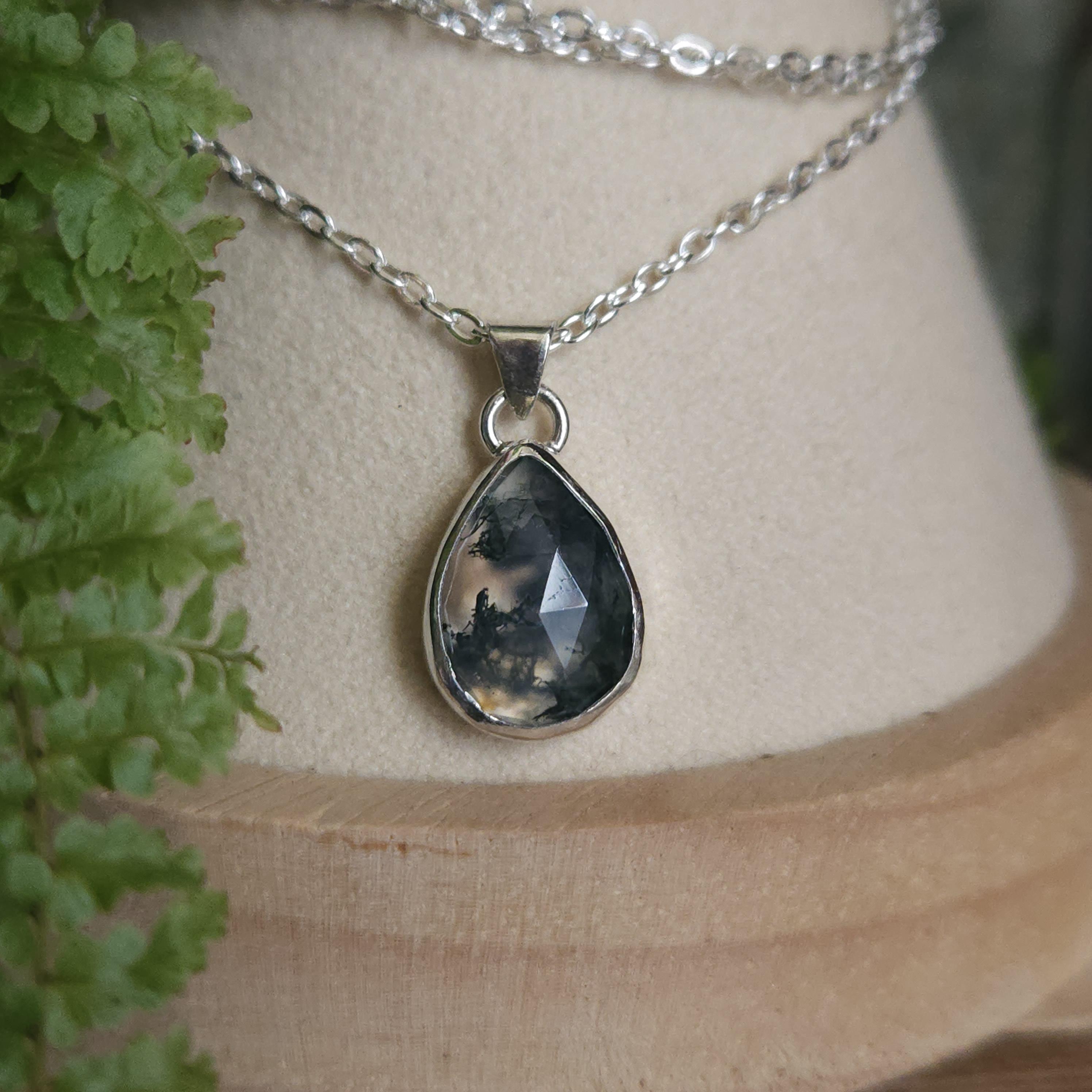 One of a kind artisan handmade gemstone pendant made using sterling silver and moss agate