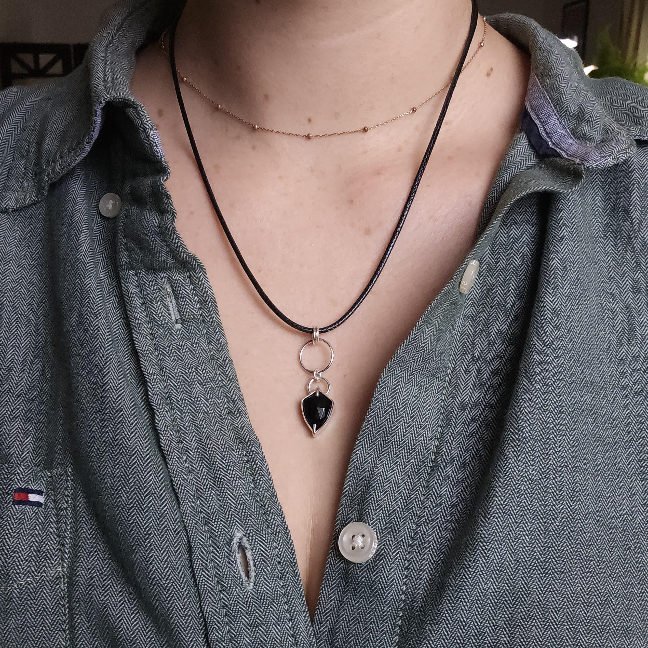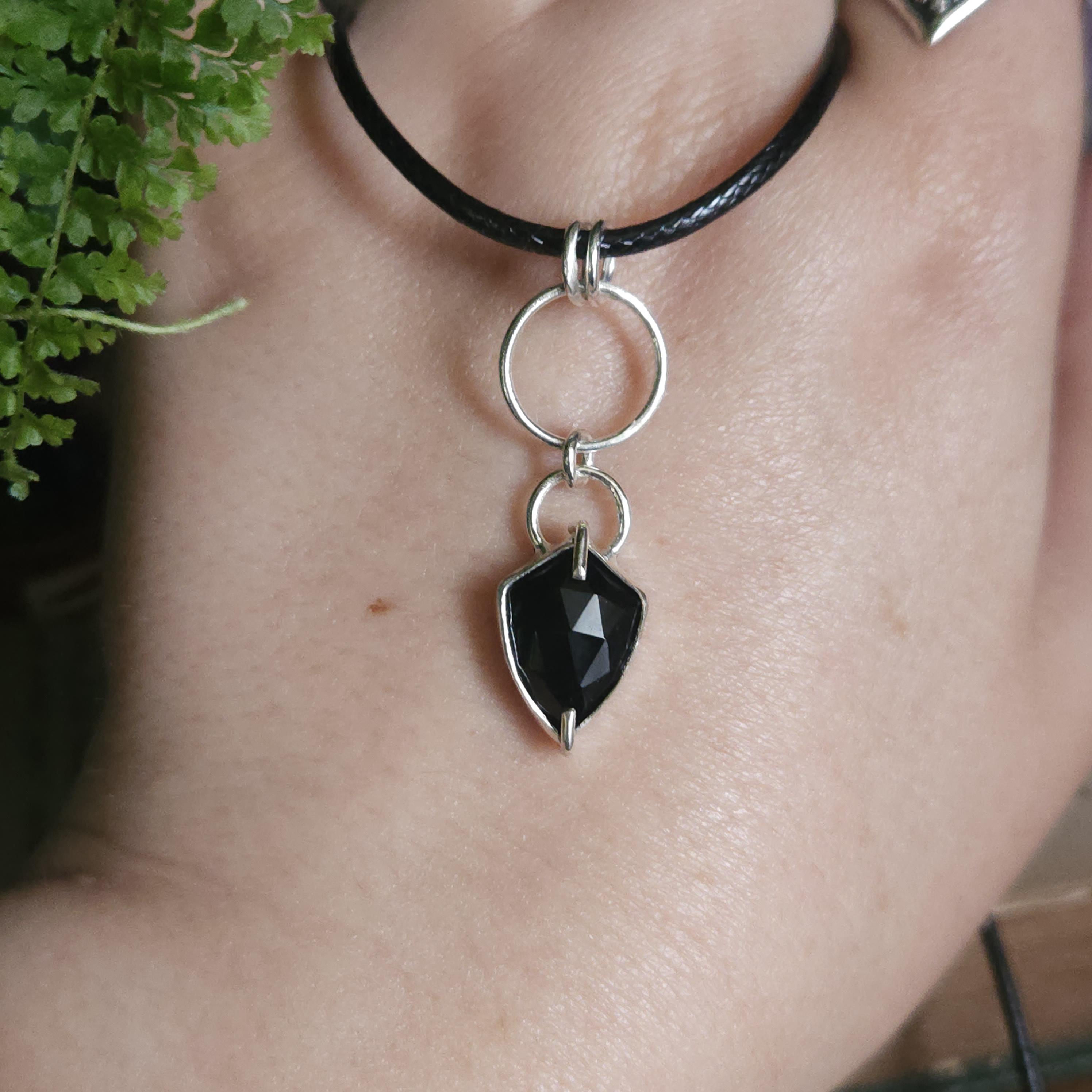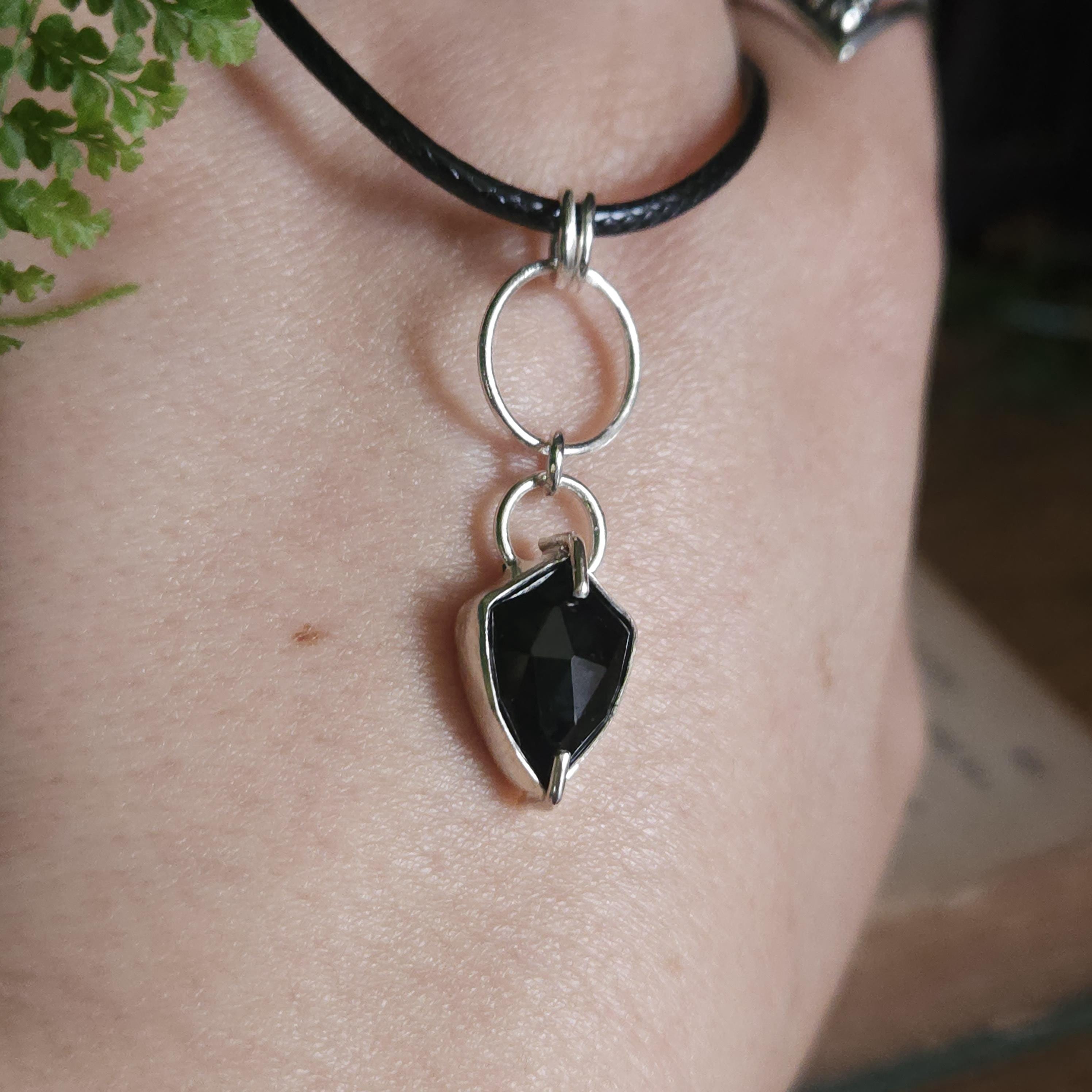 One of a kind artisan handmade gemstone pendant made using sterling silver and black onyx